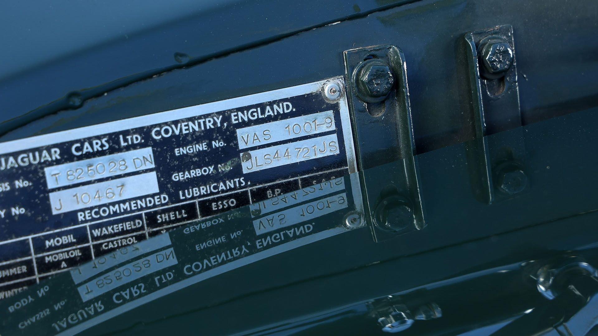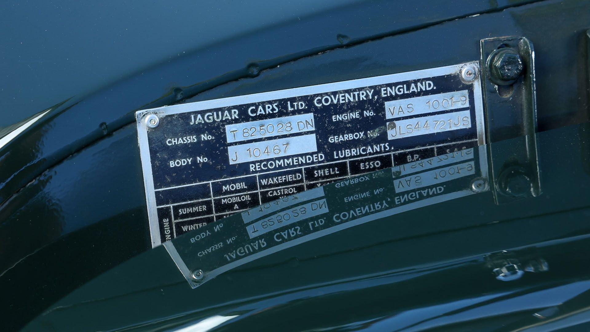 Chassis No. T825028DN Engine No. VAS1001-9 Body No. J10467 At the end of 1959, Jaguar upgraded the respected XK 150 with the twin-carbureted 3.8-liter engine from the Mark IX luxury sedan, giving the already-potent inline-six a significant boost to 223 horsepower. An optional and more desirable XK 150 S motor further expanded output to 268 horsepower thanks to triple SU carburetors, making it the most powerful XK variant yet. Out of the nearly 9,400 XK-150s produced, just 275 were equipped with the highest performance specification “S” 3.8-liter motor and, of these, only 150 were built as Fixed Head Coupes. This right-hand drive 1959 Jaguar XK 150 S Fixed Head Coupe was the first “S” car fitted with Jaguar’s 3.8-liter engine—rolling off the assembly line on 18 September 1959. Finished in British Racing Green over Suede Green leather seats and green wool carpeting, it was originally retained by the Jaguar Press Department and was used for press and marketing purposes until early 1961, bearing Coventry registration YHP 791. The car was notably displayed by Jaguar at the London Motor Show at Earls Court in October 1959. It was also featured in several magazine articles, including Autosport and The Motor, and appeared in Jaguar XK Series – The Complete Story by Jeremy Boyce. After a string of private owners, the Jaguar was purchased by Car Care Works LTD/Chiltern Aston Martin in March 1987, who would oversee its meticulous restoration beginning in 1987 and spanning more than a decade. The Jaguar was purchased in May 1999, while still under restoration, by Jacques Nasser, the President and CEO of Ford Motor Company, which was the parent company of Jaguar at the time. The restoration continued through Jaguar specialists Derek Watson and Don Law Jaguar, where the XK 150 received enhancements including a ported and polished head, stainless-steel exhaust, power rack-and-pinion steering, an improved cooling system with electric fan, high-flow radiator, air conditioning, and a modern radio installed in the trunk. Upon completion, this significant example was displayed at the Jaguar Daimler Heritage Trust Museum in Coventry, England, in the early 2000s before being imported into the United States in 2003. Now displaying 75,620 miles at cataloging, it is offered with a Jaguar Daimler Heritage Trust Certificate confirming it as matching-numbers and comes with its original service and owner’s manuals, tools, original set of 72-spoke painted wire wheels with Avon Speed tires, plus cases of paperwork and documentation. An exceptional offering in every respect, this 1959 Jaguar XK 150 S Fixed Head Coupe stands apart as the very first XK 150 S fitted with the 3.8-liter engine and Jaguar’s official press representative for the potent new inline-six. Further bolstered with matching-numbers status, ownership by Ford President Jacques Nasser, documented factory provenance, and thoughtful upgrades, this XK 150 S is a perfect balance of historical significance and refined usability.