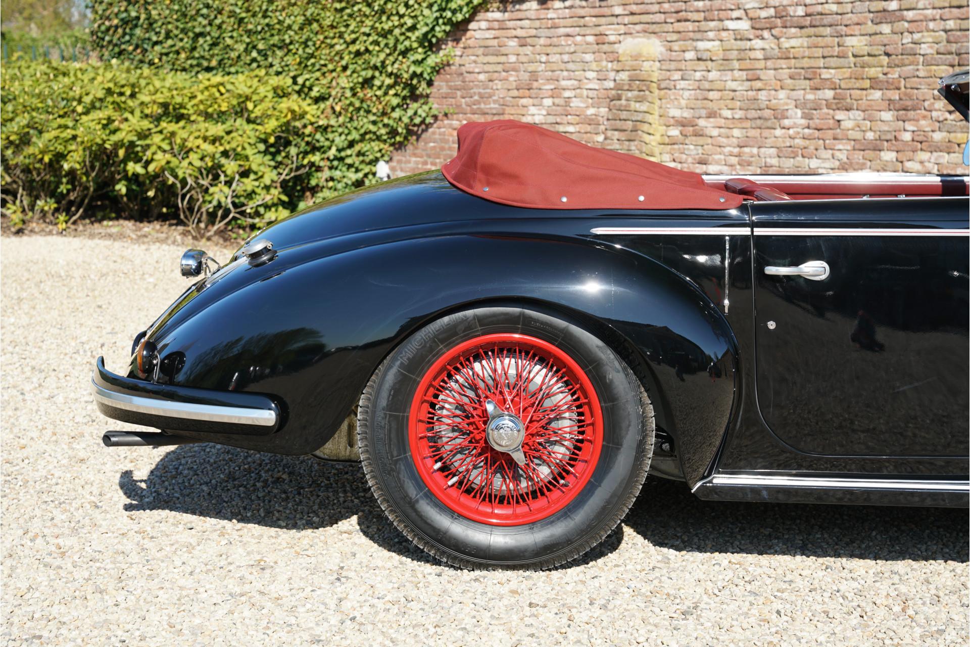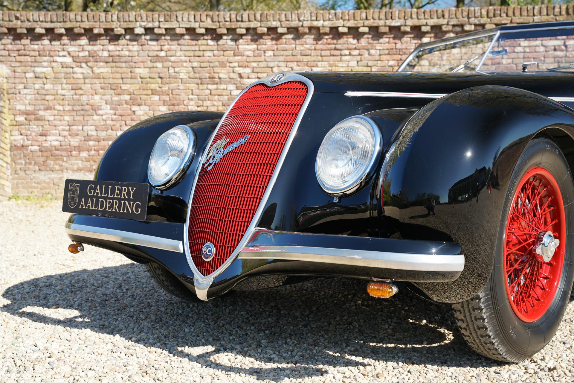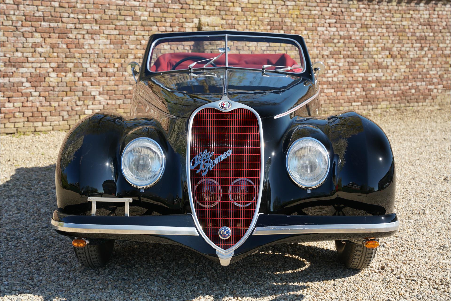 An immaculate and rare Alfa Romeo meticulously restored with all the period-correct parts and details. A distinguished prewar automobile that allows you to participate in the great events of the classic car world.