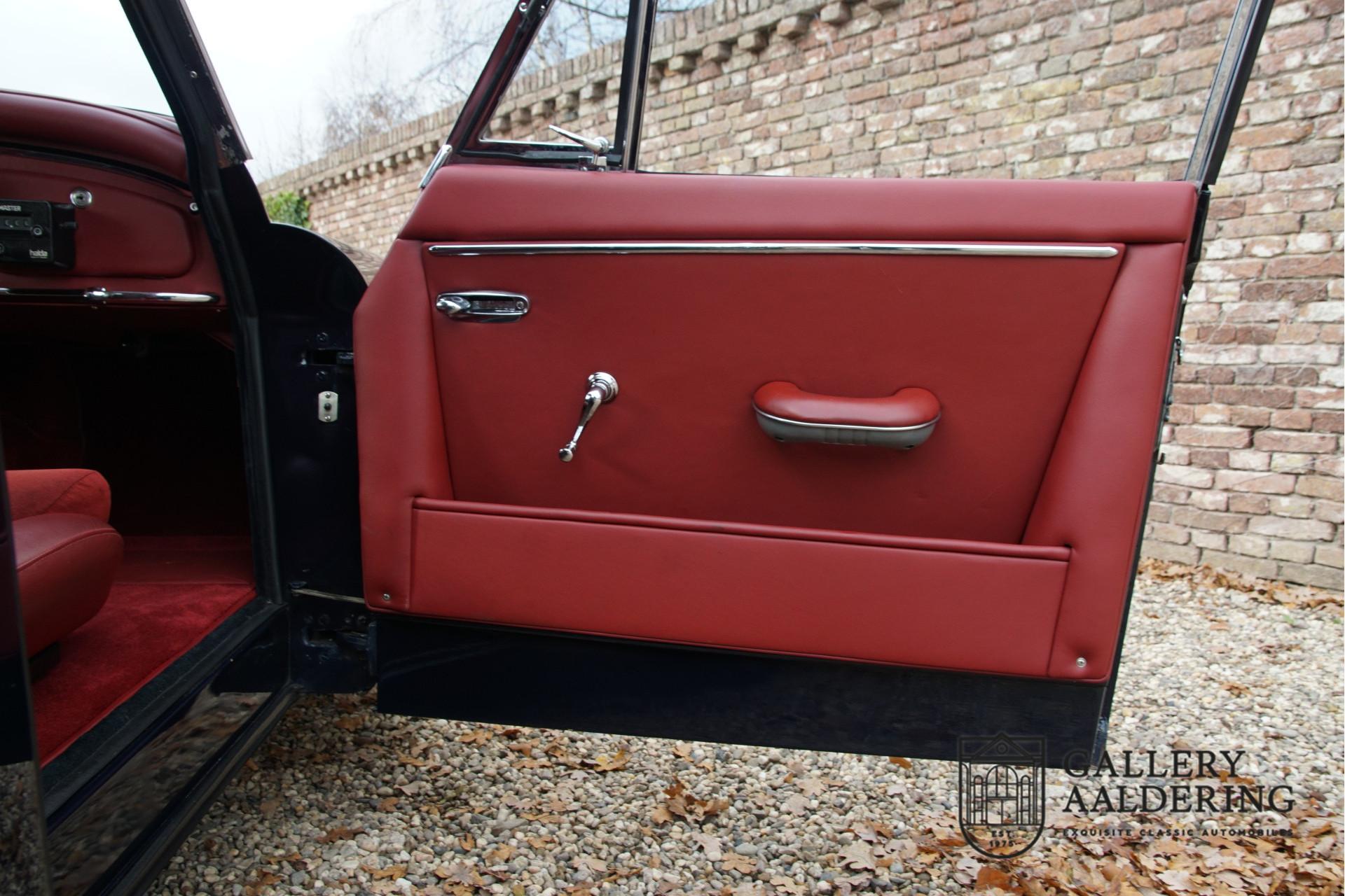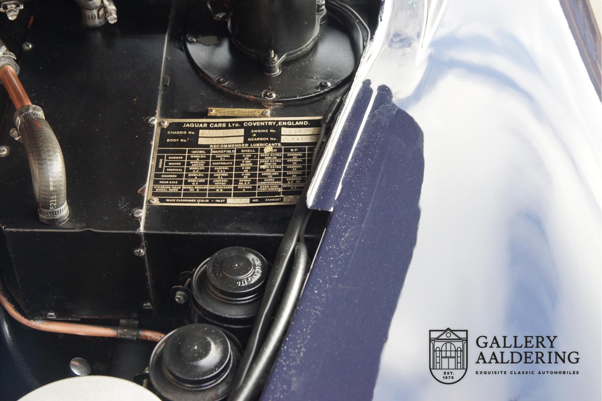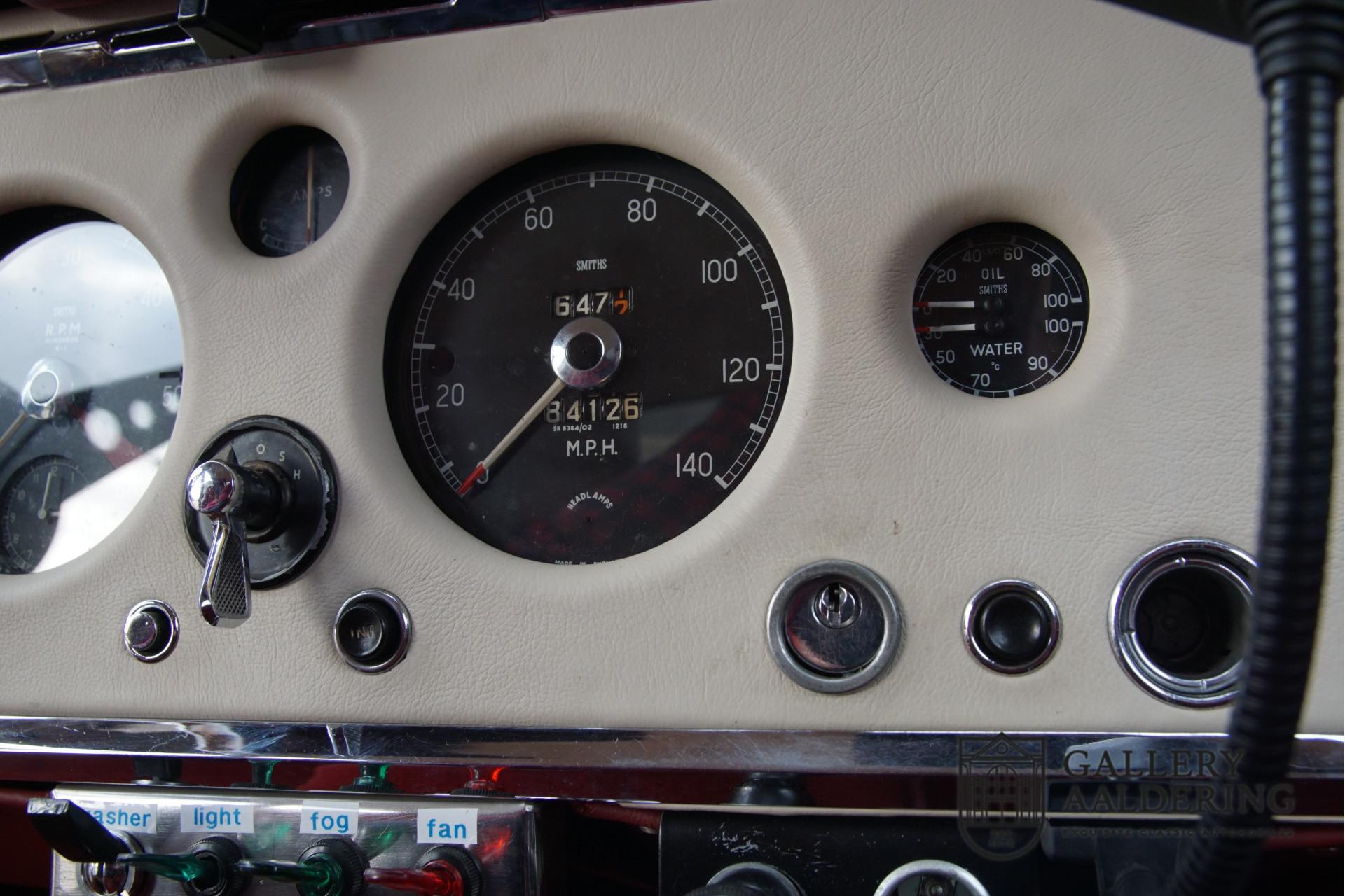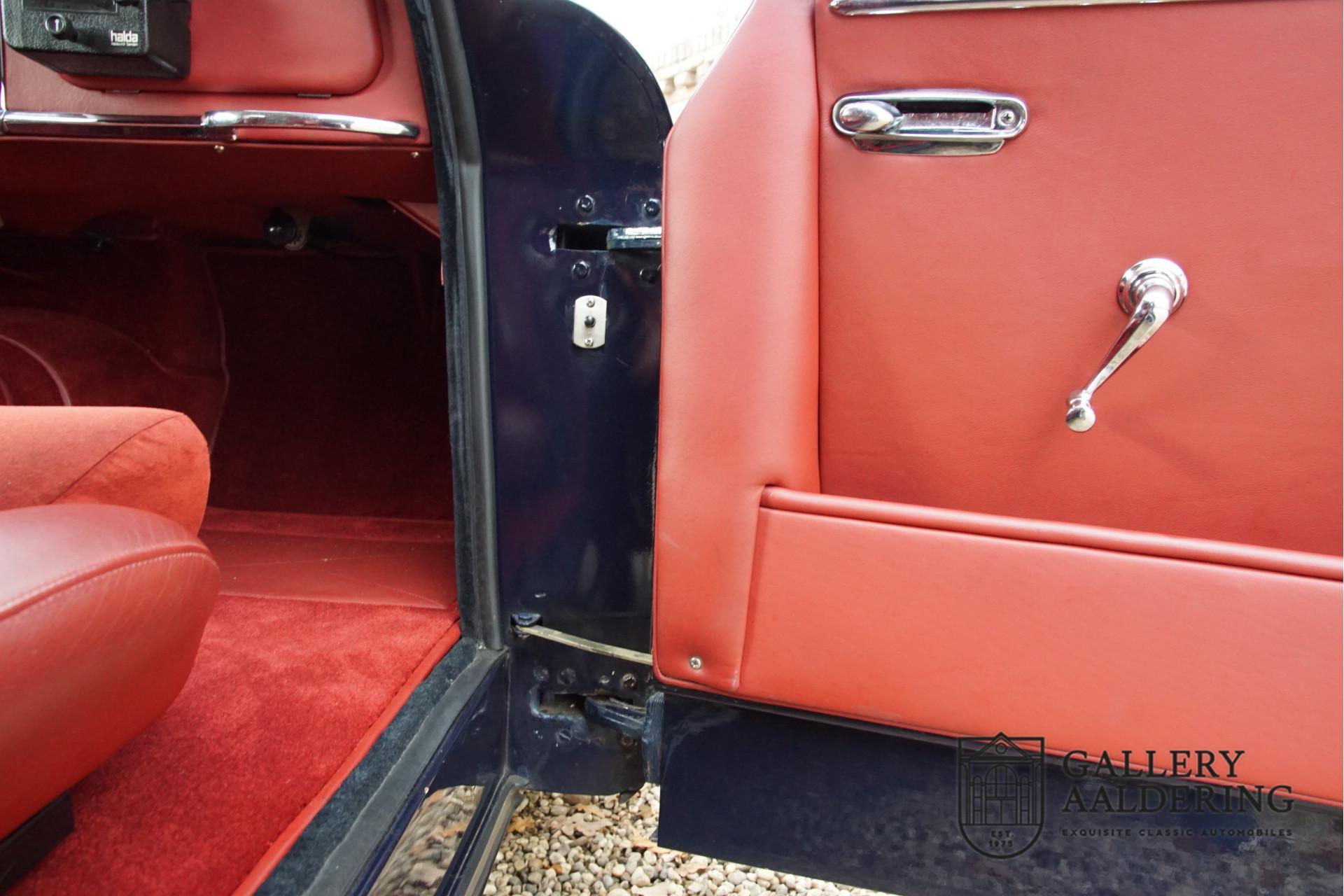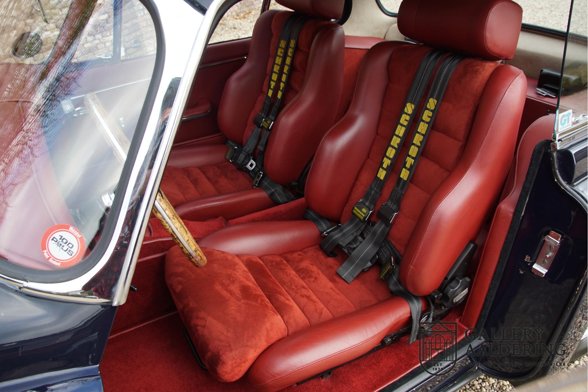 The car underwent an extensive restoration and overhaul several years ago, where every detail was not left untouched. During this restoration, various rally accessories were added, including a tripmaster, a Kenlowe fan, a reading light, and comfortable seats fitted with 4-point safety harnesses. These additions make the car ideal for rallies, without losing the classic and elegant character of a gentleman's coupe. Additionally, the car is equipped with reversing lights and a period-correct rear fog light, further enhancing its functionality and safety.