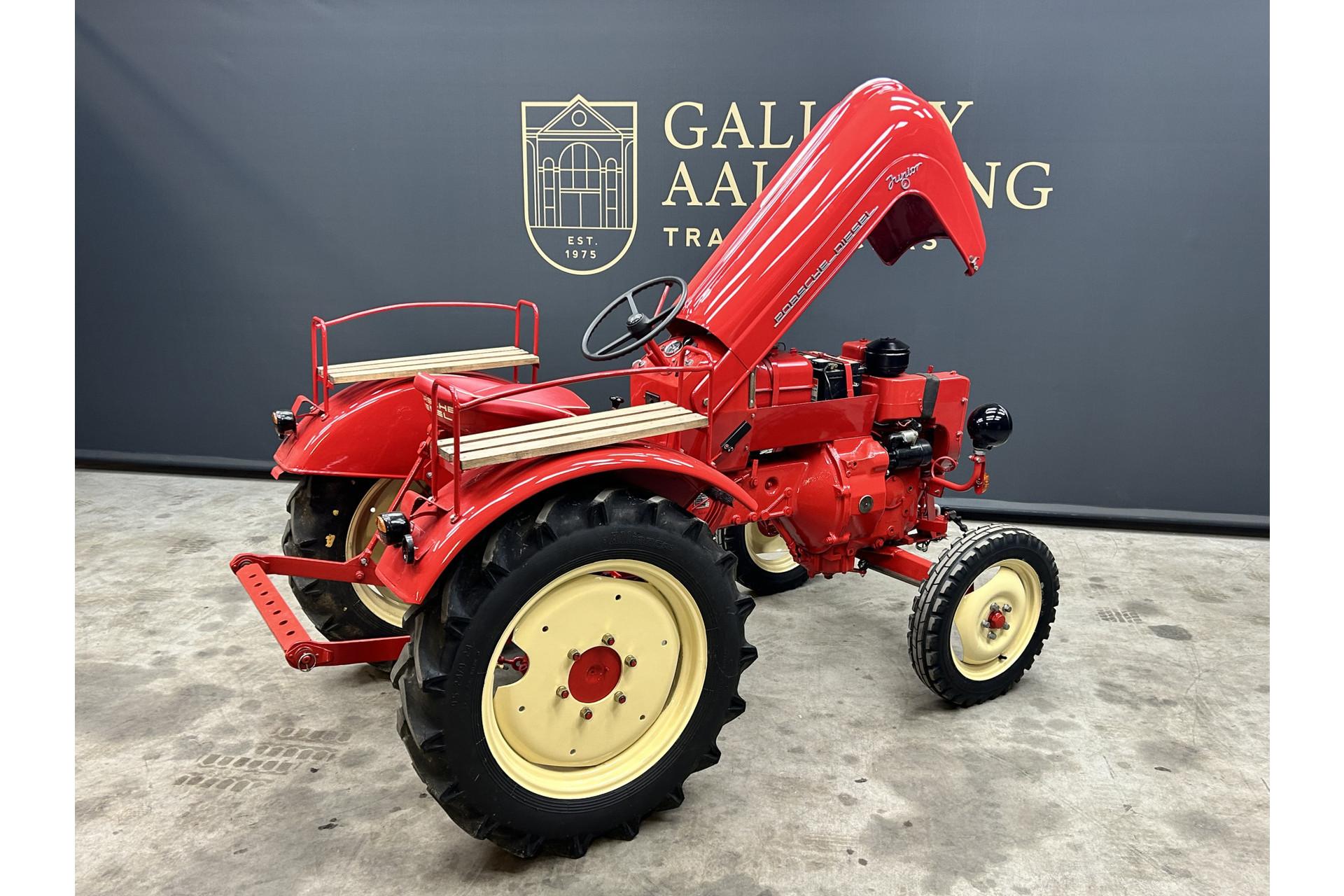 The Porsche Diesel Junior was the smallest and most elegant of four tractors produced by Porsche between 1956 and 1963 at the old Zeppelin factory in Friedrichshafen-Manzell. Featuring groundbreaking technology like a fluid coupling and an advanced Bosch hydraulic lift system (introduced in 1960), this tractor was ahead of its time. The result? A user-friendly and reliable machine, equally impressive in the field or at a collector's show.