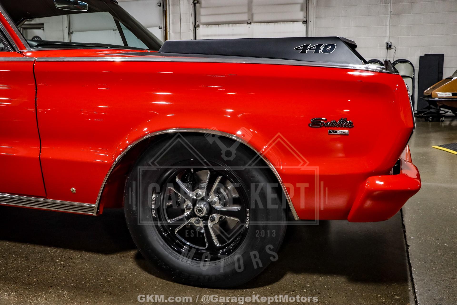 1966 Plymouth Satellite - Street Car That Is Ready For The Strip!- Built 440ci V8 performance motor w/1967 915 Heads- AED 950 CFM Carb- TTI 2" Headers- 727 Automatic Transmission w/Hughes Torque Converter- Strange Dana 60 Rear End - PST Carbon Fiber Driveshaft- Wilwood Disc Brakes Front and Rear- Wilwood Master Cylinder- 3:70 Rear Gear- Glasstek Lightweight Bumpers- Sweet Mfg. Steering Column- Red Exterior- Black Interior- Kirkey Seats - Extensive Modifications List This nut-and-boltrestored 1966 Plymouth Satellite is the perfect fusion of show-stopping presentation and uncompromising dragstrip aggression. Every inch of the car has been meticulously reworked, polished, and detailed to a standard that stands proudly among the best at any car show. The body lines are arrow-straight, the paint is deep and flawless, and the fit and finish reflect the kind of craftsmanship that only a full, frame-off restoration can achieve. Yet behind that pristine exterior lies a machine built with one clear purpose-dominance.At the heart of this beast is a built 440ci V8 performance engine, delivering the kind of torque and throttle response that made Mopar legends in the first place. This big-block is built for some serious power, roaring to life with the unmistakable sound of the naturally aspirated motor. Paired with a 727 automatic transmission and a Hughes torque converter, the setup ensures explosive launches and seamless power delivery, whether cruising the boulevard or sprinting down the quarter-mile.Supporting the powertrain is a bulletproof Strange Dana 60 rear endan industry standard for high-horsepower reliability. With a 3.70 rear gear, the Satellite offers a perfect balance between street manners and strip-ready acceleration. A PST carbon fiber driveshaft links it all together, reducing rotational mass and adding strength where it matters most, allowing the drivetrain to transfer power with maximum efficiency and minimal vibration at high rpm.Braking performance is equally impressive thanks to Wilwood disc brakes installed at all four corners. Their modern stopping power provides confidence and control, a crucial advantage when handling a car with this level of speed. Whether easing into a show lot or scrubbing off velocity at the end of a run, the braking system delivers precision and dependability far beyond what the original factory setup could offer.Finishing touches like Glasstek lightweight bumpers highlight the Satellite's drag-minded engineering, shedding unnecessary weight while maintaining classic looks. Combined with its immaculate restoration and high-end performance components, this 1966 Plymouth Satellite is far more than just a beautiful classic-it's a purpose-built muscle machine. Show it, race it, or simply admire it; this is a car that excels in every arena.