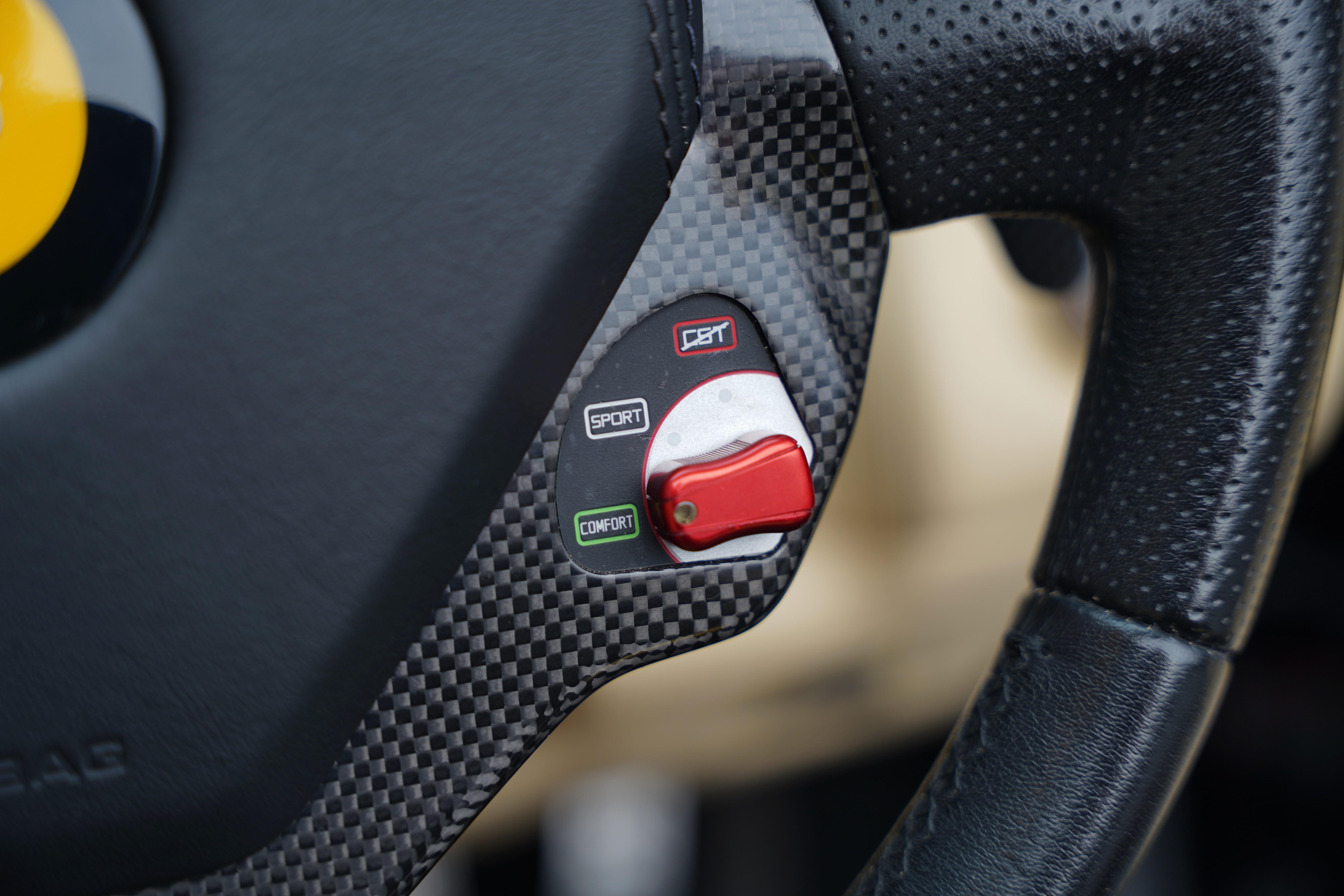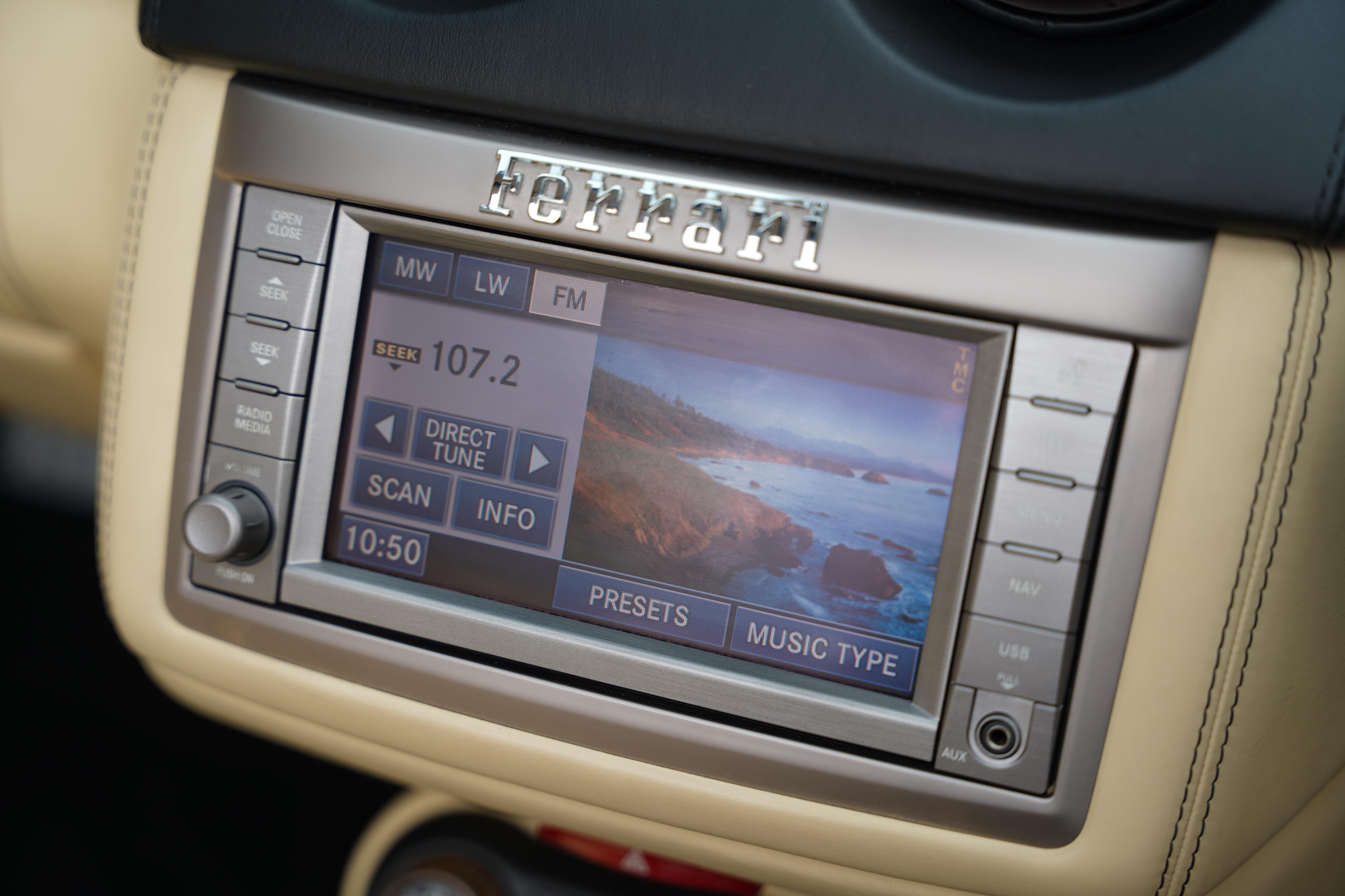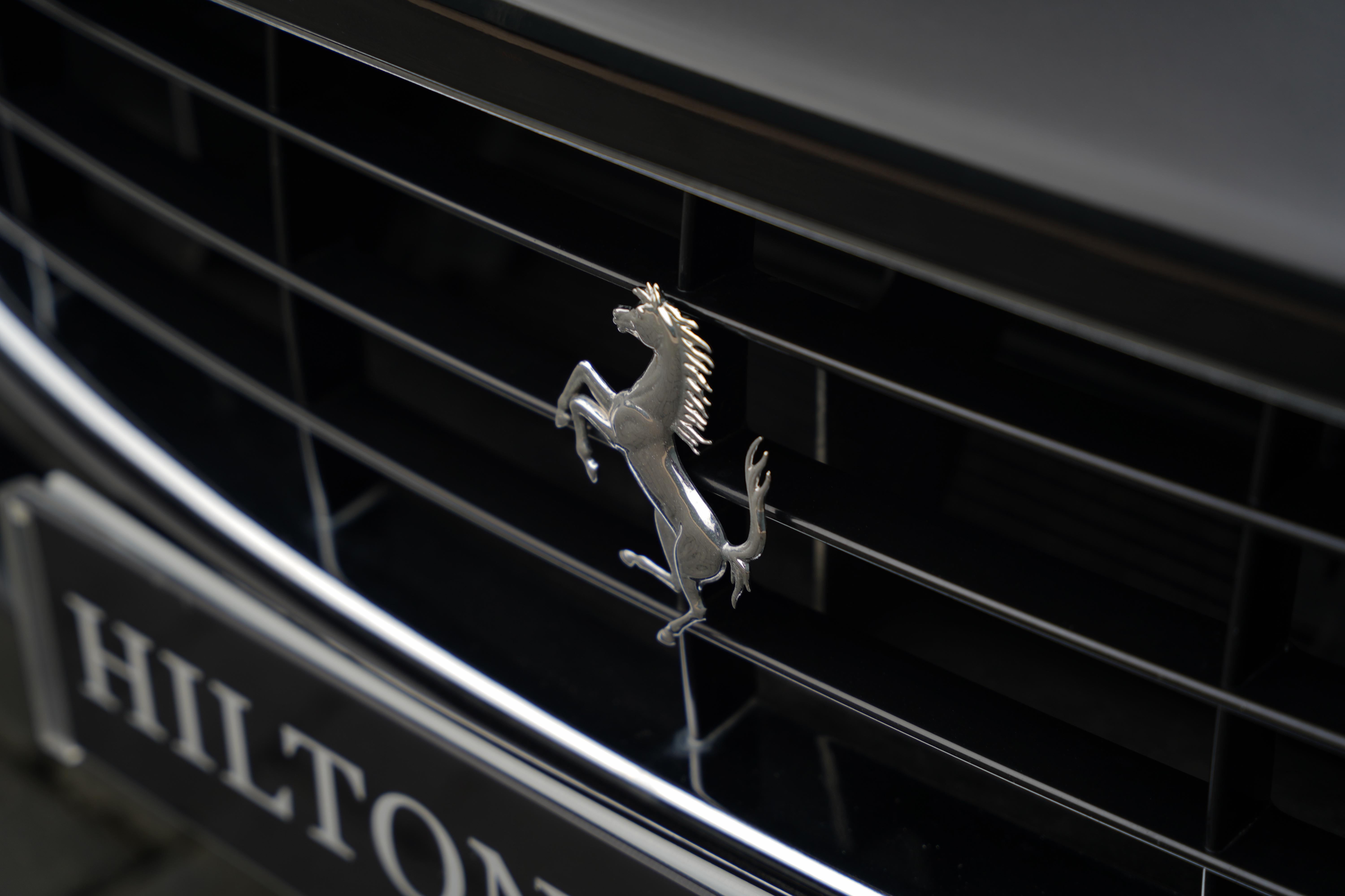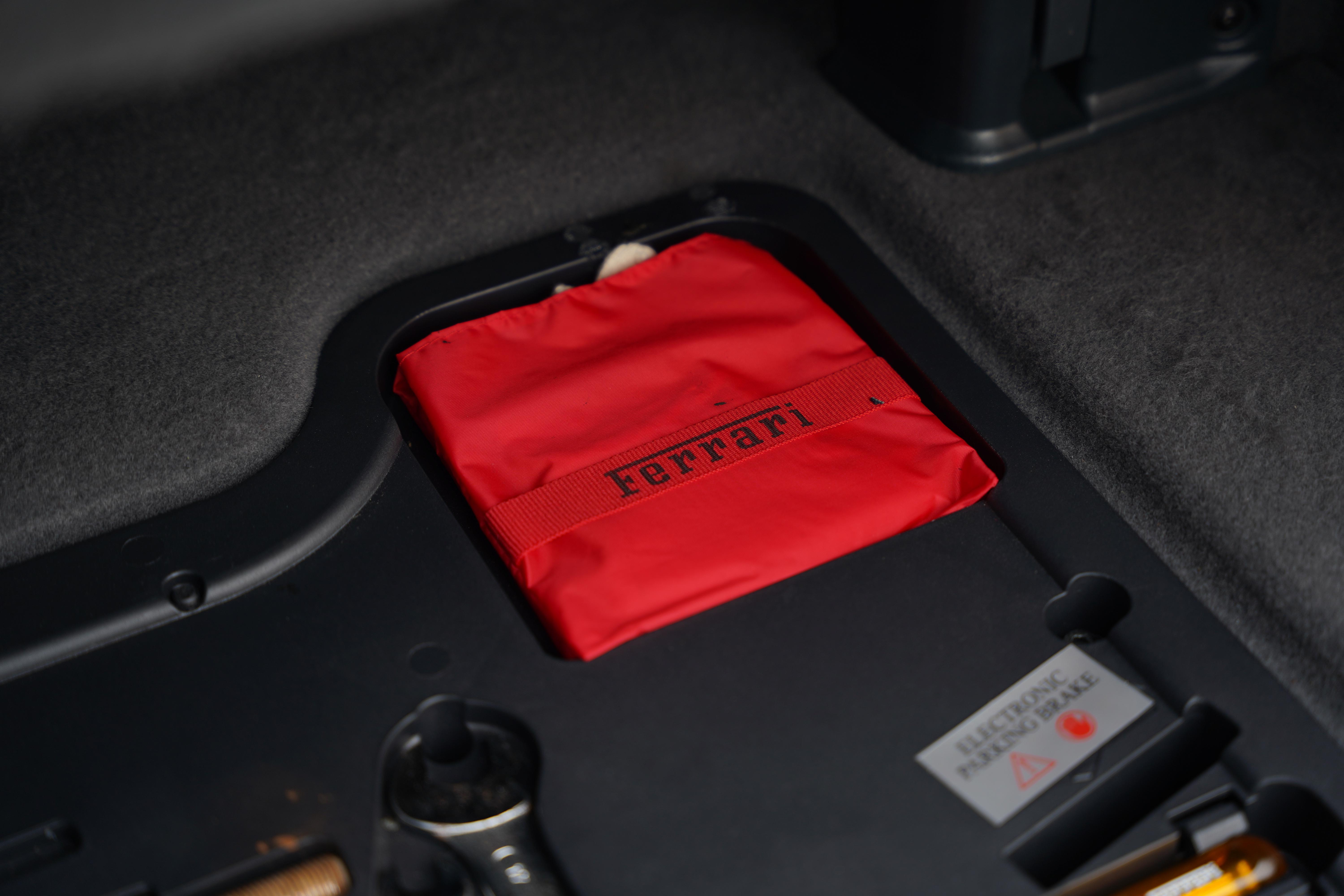 Factory options on the car include carbon ceramic brakes, Scuderia wing shields, electrically adjusting and heated Daytona style seats with memory setting, Daytona rear seats, Nero contrast stitching and piping, carbon fibre steering wheel with LED shift indicator, Giallo rev counter, infotainment system with navigation and Bluetooth and front and rear parking sensors.