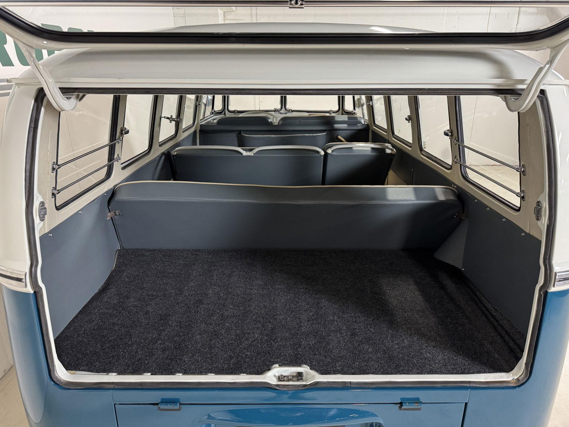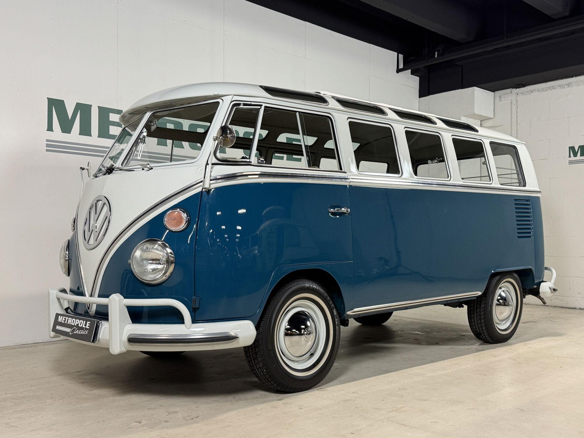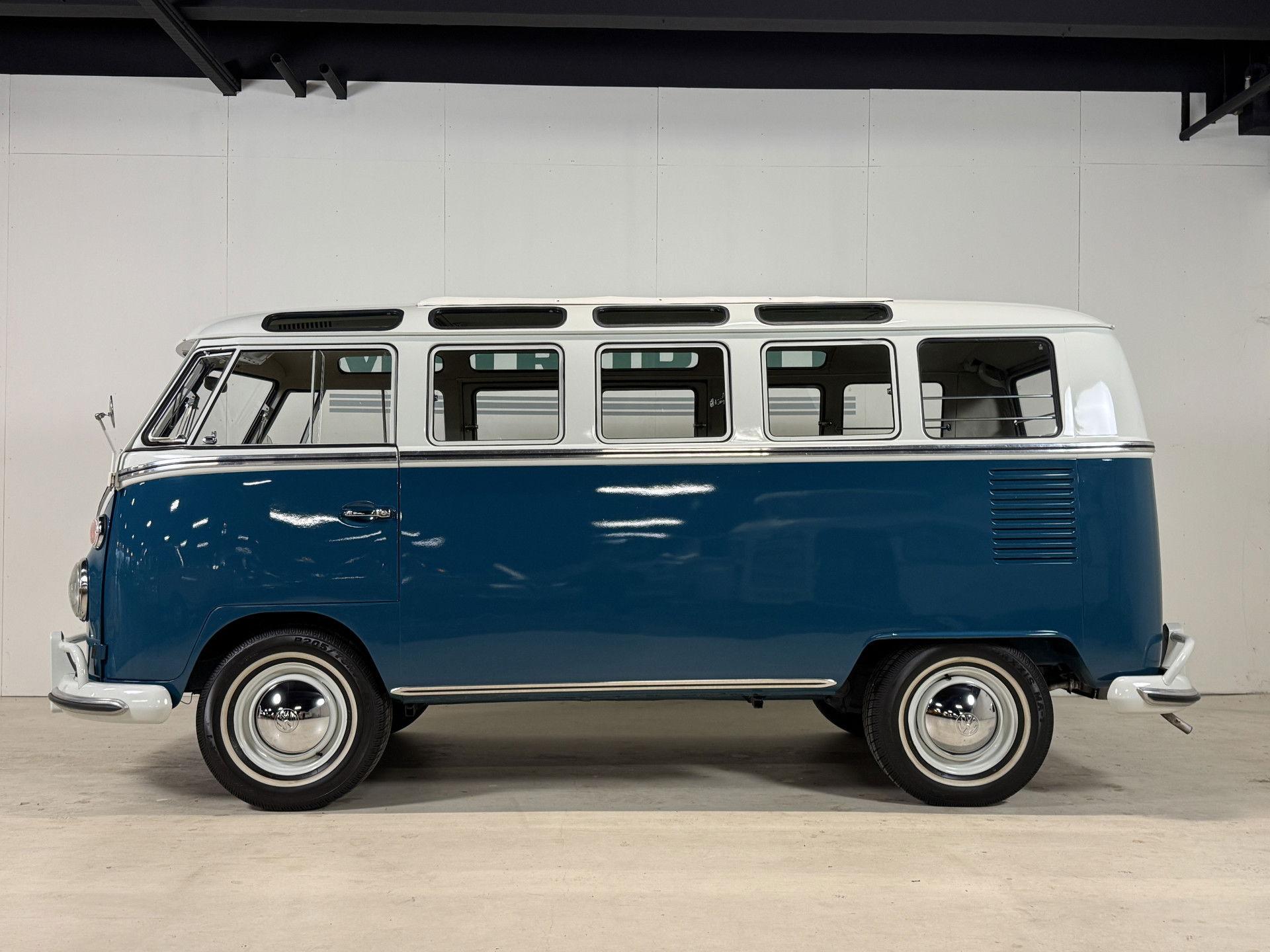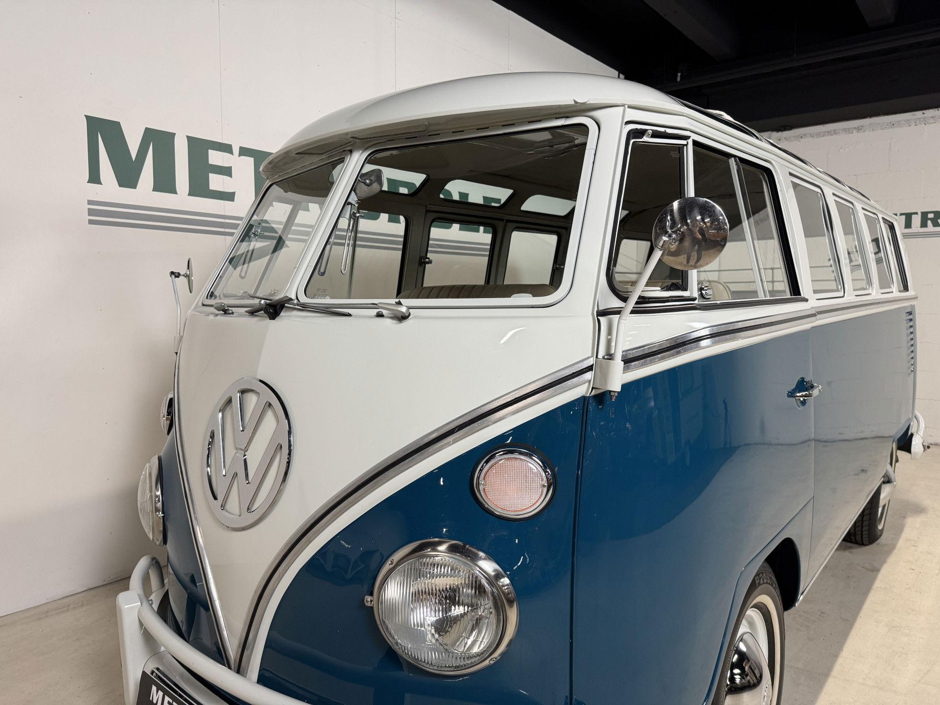 This VW Bus presented here is a real Samba Bus, executed in dark blue with a white top (cap). This bus drives great and has a 1500 cc. engine. Braking, steering and shifting are also effortless. This bus is almost concours restored and looks magnificent. For the Samba lover!