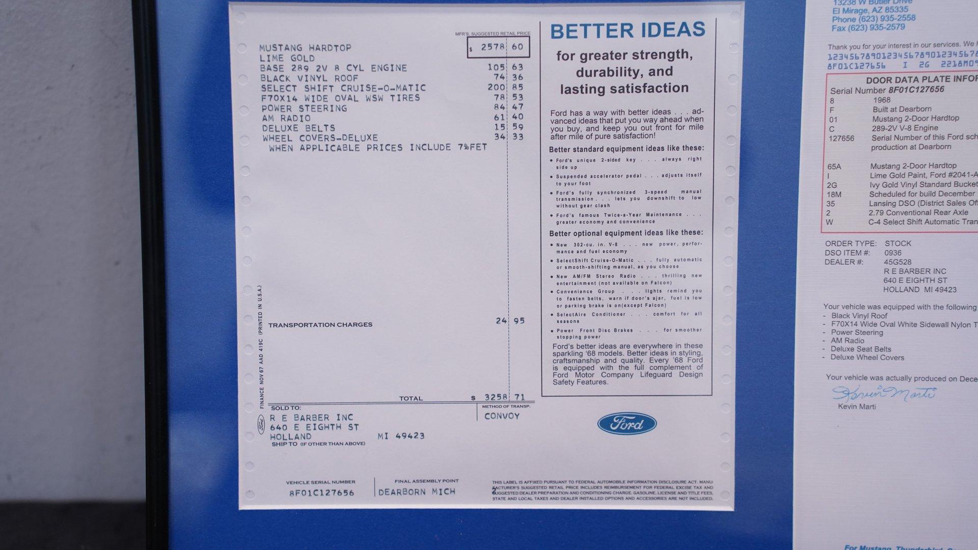 Step back in time and experience the thrill of American muscle with a vehicle that embodies freedom and classic style. Owning a classic car is more than just transportation; it's about making a statement and creating memories that last a lifetime. This 1968 Ford Mustang Restomod perfectly captures that spirit, blending iconic design with modern performance enhancements. Whether cruising down the highway or showcasing at a car meet, this Mustang invites you to be part of an enduring legacy. Don't miss your chance to own this timeless piece of automotive history. Inside, the Mustang features a well-maintained interior that balances classic charm with comfortable usability. The dashboard displays clear, easy-to-read gauges, while the upholstery remains free of rips or tears, showing only signs of gentle use. The vinyl interior complements the vintage aesthetic, and the door panels are in excellent condition. The overall cabin offers a welcoming atmosphere that invites you to enjoy every drive. Under the hood, this Mustang boasts a robust 302 V8 engine equipped with a Sniper Electronic Fuel Injection system, enhancing both performance and reliability. Originally born as a 289, the engine features upgrades like an Edelbrock intake, MSD distributor, Ford racing valve covers, and an aluminum radiator. Paired with a smooth-shifting 3-speed automatic transmission, this restomod delivers a powerful yet refined driving experience. The drivetrain is complemented by four-wheel disc brakes with Wilwood master cylinder and calipers, power steering, and adjustable QA1 coil-over front suspension with upgraded rear shocks, ensuring confident handling and stopping power. Highlights: 302 V8 Engine With Sniper EFI 3-Speed Automatic Transmission Four Wheel Disc Brakes With Wilwood Components Power Steering Adjustable QA1 Coil-Over Front Suspension Upgraded QA1 Rear Shocks Aluminum Radiator Edelbrock Intake Manifold MSD Distributor Ford Racing Valve Covers Vinyl Interior AM / FM Radio And CD Player Marti Report Documentation Financing Available Vehicle Protection Plans Available Worldwide Shipping This 1968 Ford Mustang Restomod offers a unique blend of classic style and modern upgrades, making it an excellent choice for enthusiasts and collectors alike. Ready to hit the road and turn heads, it's waiting for you to take the wheel and start your next adventure. Call, email, or come visit our showroom today!