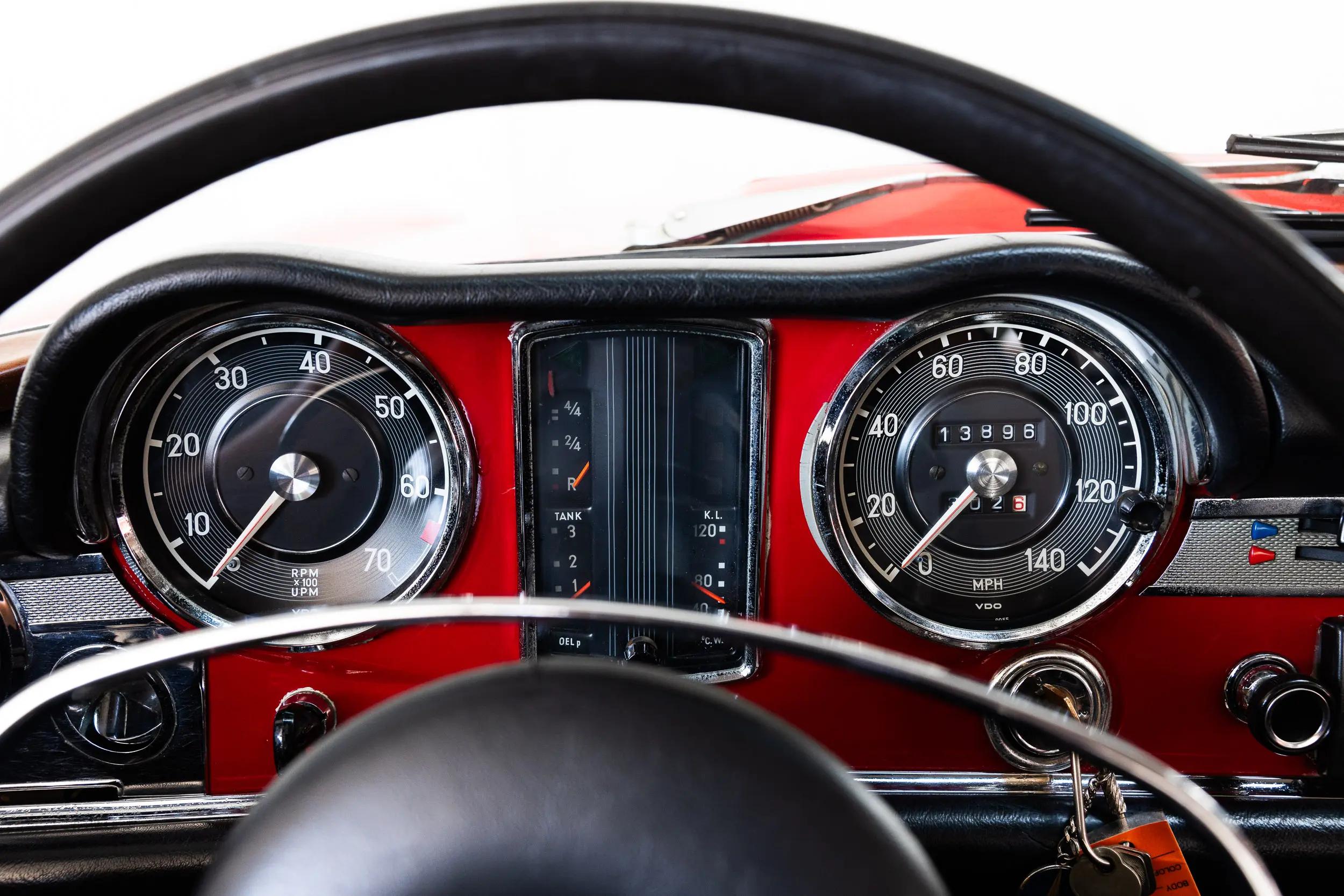 This one's a 1968 Mercedes-Benz 280 SL, originally delivered in Europe, and fitted with a rare 4-speed manual transmission. Only 10% of all W113s were built with a manual gearbox.