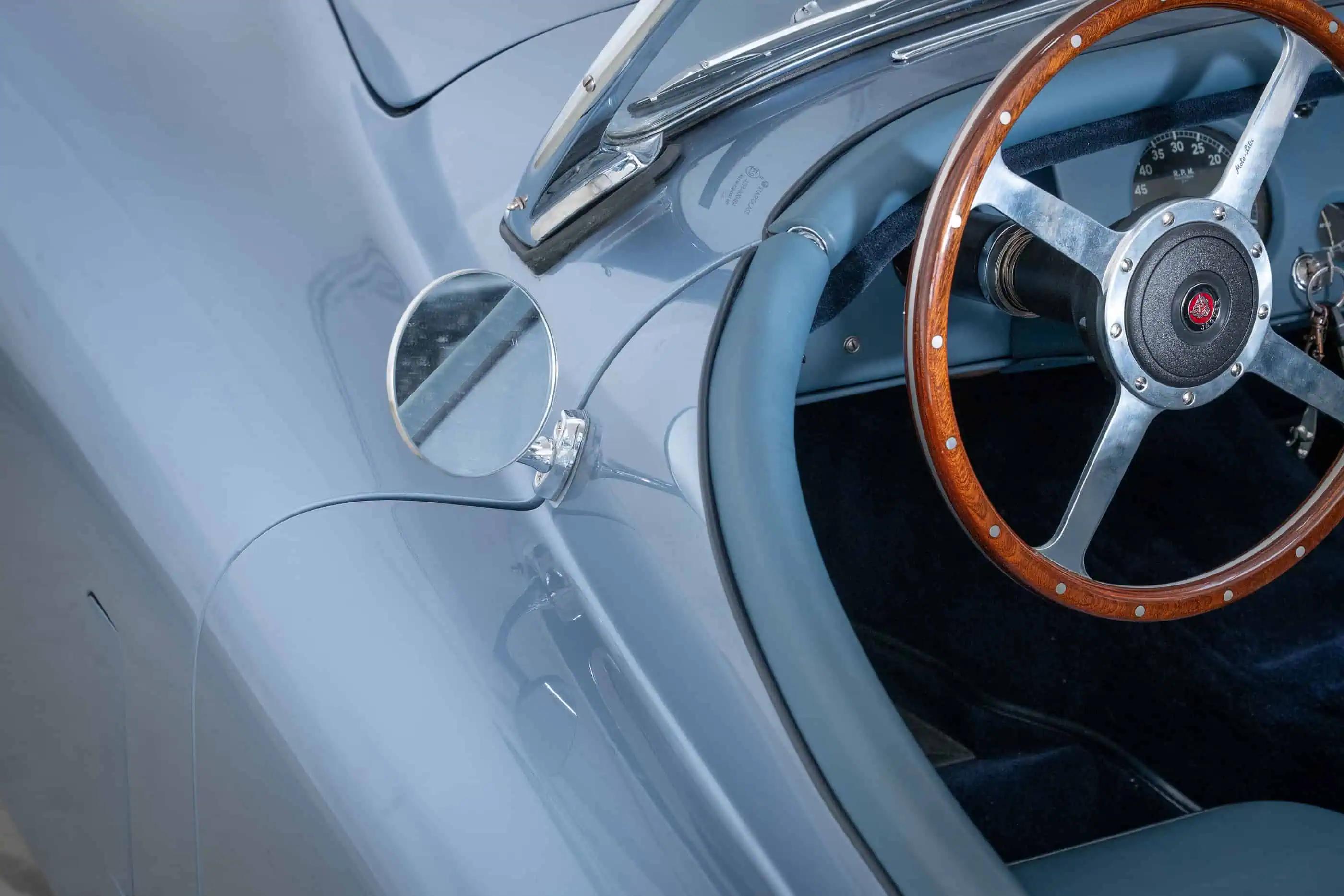 The Jaguar XK120 SE (Special Equipment) was the sporty big brother, the cool kid in class, the one you wanted to team up with during gym class. With more power (180 HP instead of 160 HP), a higher compression ratio, sportier camshafts, and a dual exhaust, the SE was faster and fiercer than its standard sibling. Add a tighter suspension, thicker torsion bars, lightweight wire wheels, and integrated fog lights, and you have a classic Jaguar party. Just a Proper JAGGG!