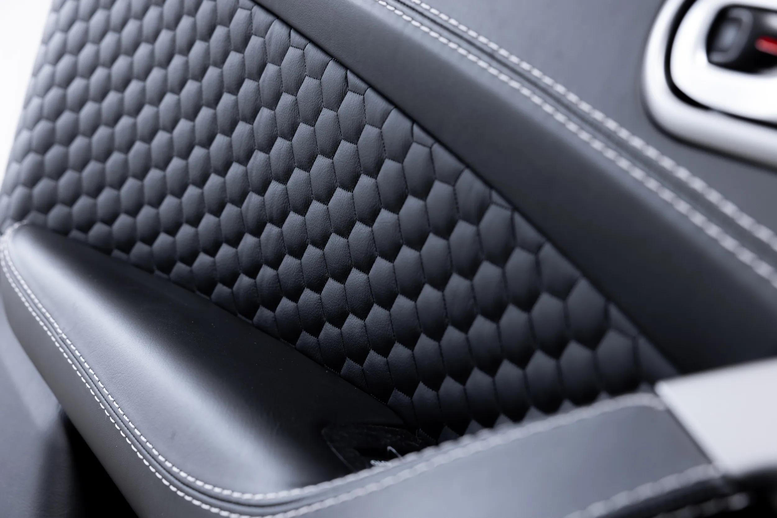 Ours? Exactly as you would expect with an Aston. We start with the interior, all soft leather and the finest alcantara. Even the bottom of the seats are upholstered. Believe it or not, but as many leather hides go into it as a BD9. She has been serviced at the dealer, tuned to 112 hp and that really makes driving a joy. She has been fully serviced and the paint and rims are glass-coated as shiny as a Buckingham Palace guard's shoes.