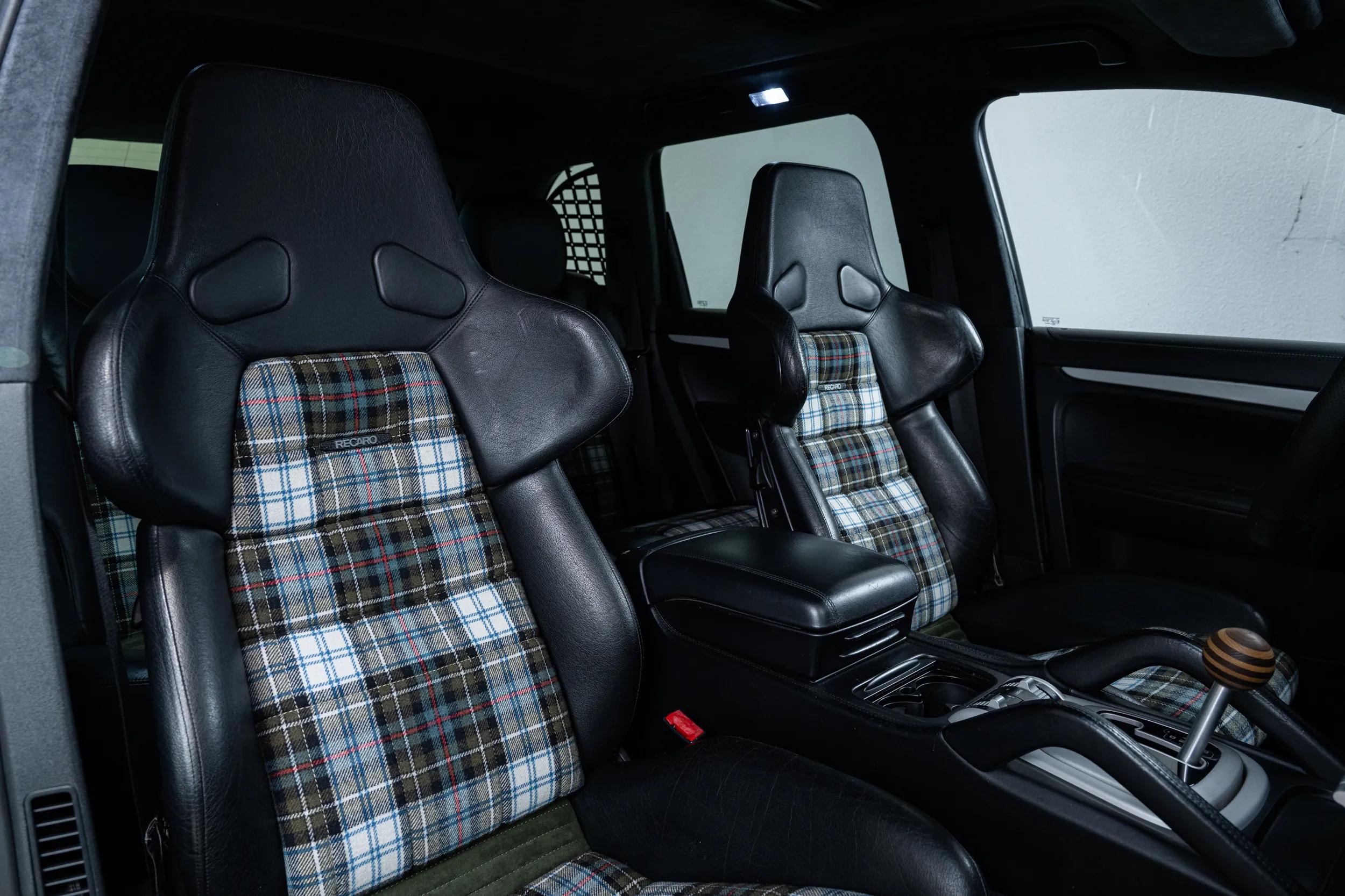 Let's start with a 3-inch Lift Kit perfect for taking abbreviated off-road routes to the restaurant at the top of the mountain.Then the surely eye-catching front end, featuring a fat Front Bull Bar with Lazer Vintage Hella lights, which is powerful enough to shine even your adolescent son out of bed. Also added is a protective undertray and a Custom Rear Exhaust with full ceramic coating. Inside, Recaro A8 Custom Interior provides a tough and unique finish.