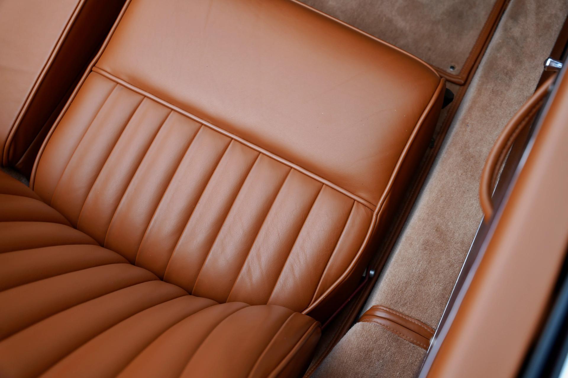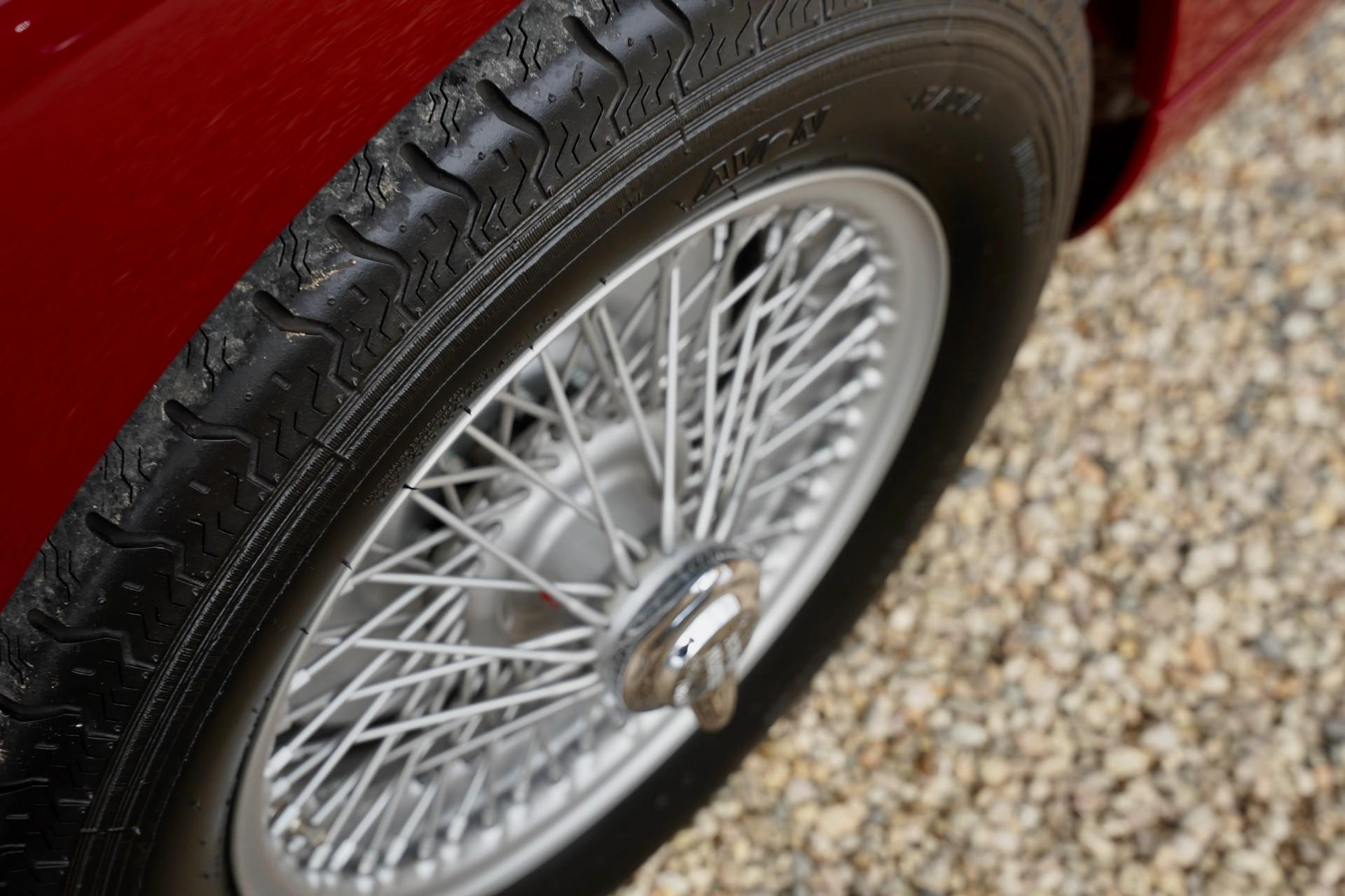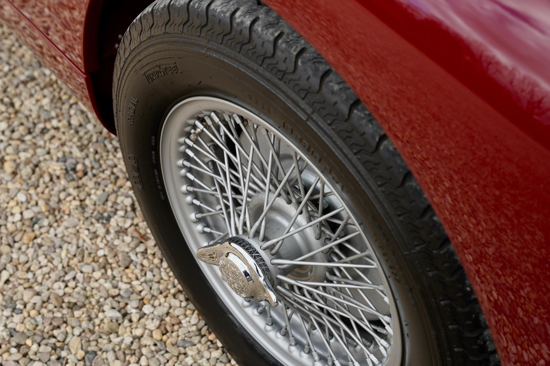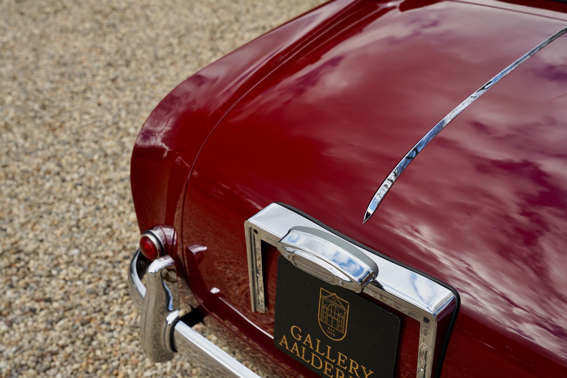 The bodywork, finished in the sophisticated and deep Imperial Crimson, displays exceptional depth and an incredible gloss. The paintwork has been applied with the utmost precision — true craftsmanship of the highest level. The elegant lines, subtle curves, and iconic grille make it clear why this Aston Martin was considered one of the most prestigious British sports cars of its time.