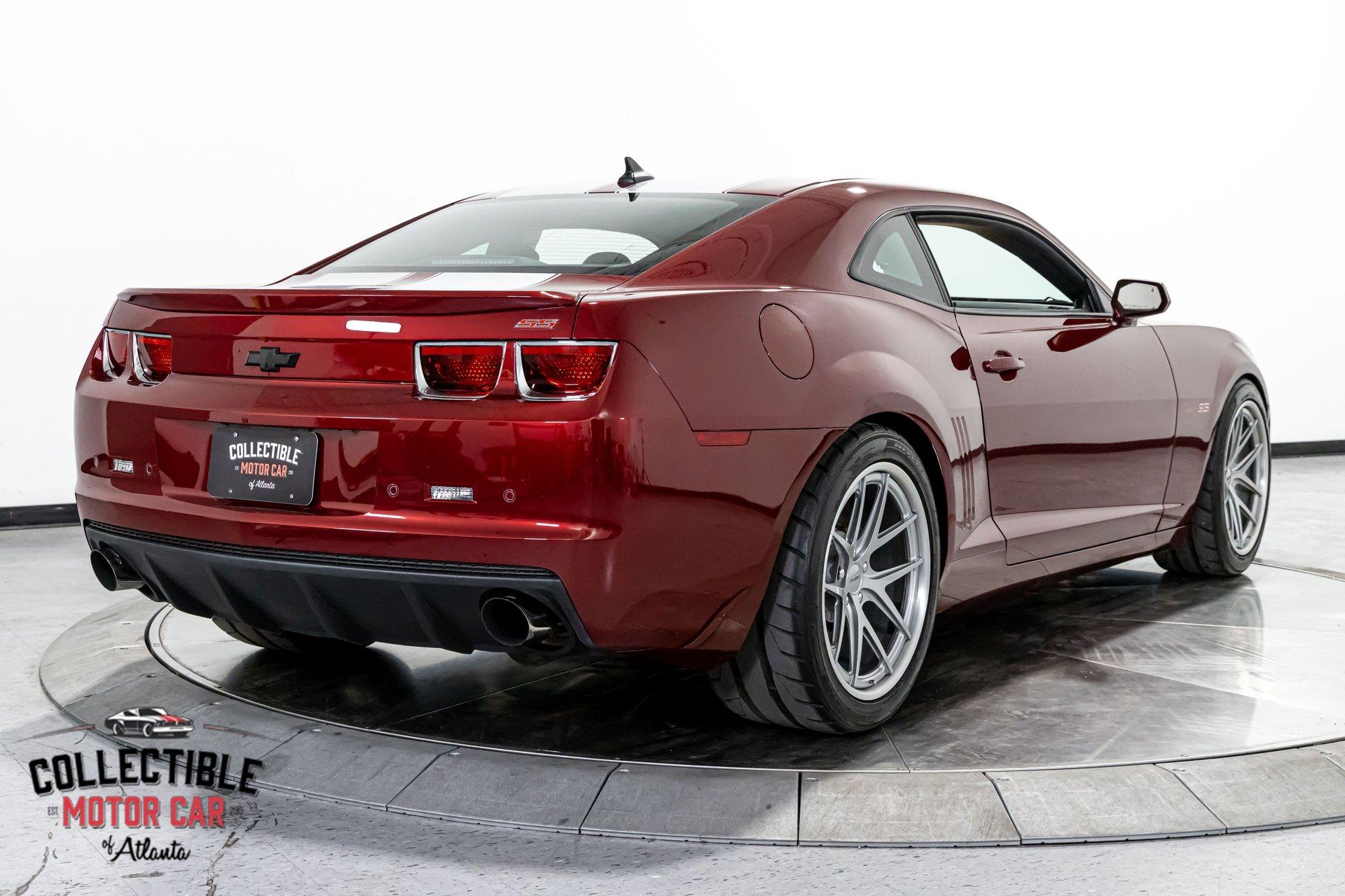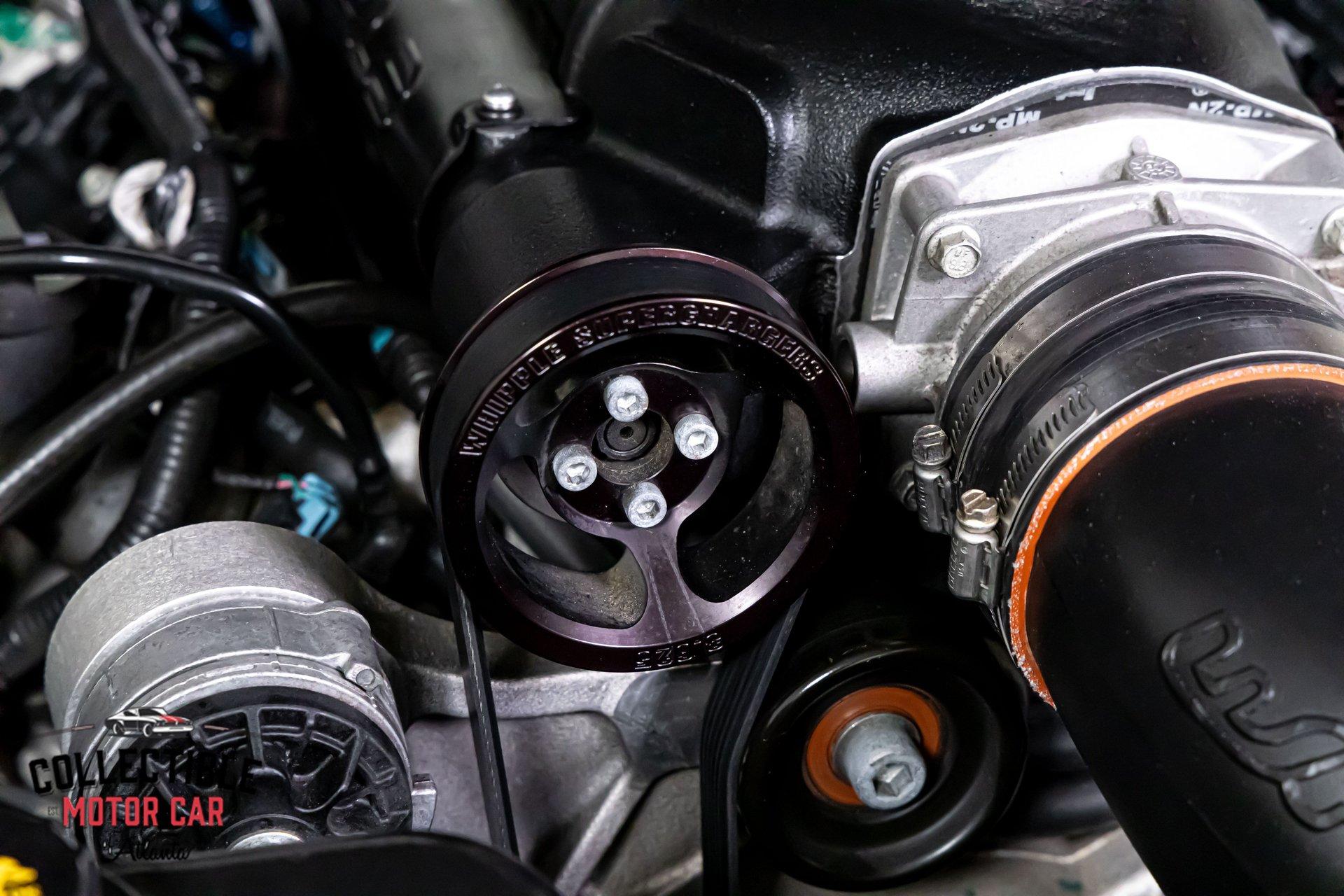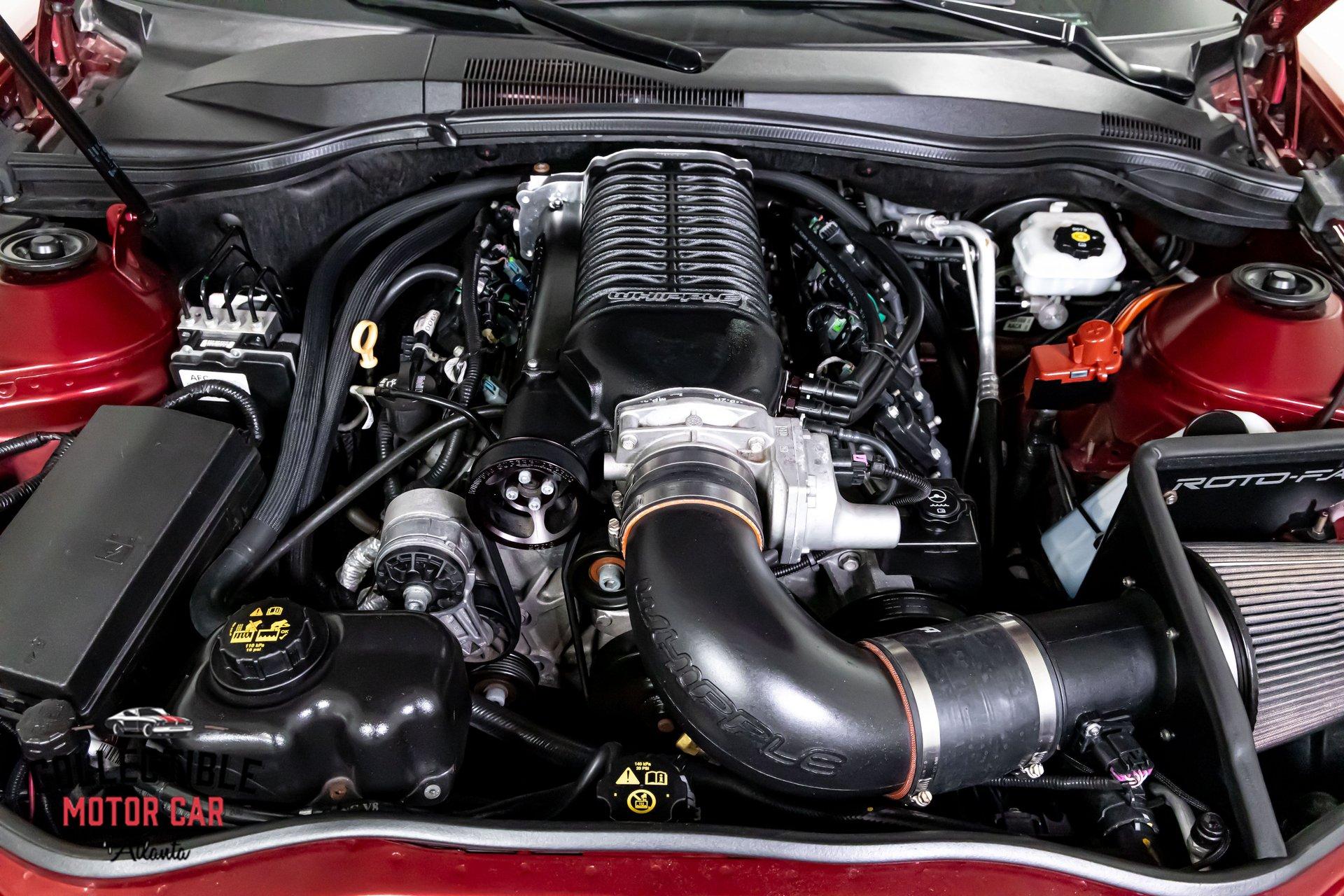 27k-Mile Supercharged 2010 Chevrolet Camaro SS — 6-Speed, Whipple, Forged Internals Highlights 6.2L LS3 V8 with Whipple supercharger kit Forged pistons & connecting rods, upgraded valve springs 6-speed manual with McLeod twin-disc clutch and MGW short shifter Alky Control methanol injection Dynatech headers with MBRP exhaust components Pfadt Racing Engineering suspension components 20" Forgeline wheels (275/40 F, 315/35 R Nitto NT05) Factory Brembo brakes, A/C, heated front seats, cruise, CD stereo Exterior Finished in red with white rally stripes and a rear lip spoiler. Equipment includes projector headlamps with halo rings, fog lamps, and dual exhaust outlets exiting the rear valance. Panels present straight with crisp gaps and a purposeful stance on the Forgelines. Wheels, Tires & Brakes 20" Forgeline silver alloys Nitto NT05 tires: 275/40R20 (front) and 315/35R20 (rear) Stopping via factory Chevrolet-branded Brembo calipers over steel rotors at all four corners. Suspension Upgraded with Pfadt components for improved control and response (springs/dampers/bushings as equipped). The car sits correctly and tracks straight; ride quality remains street friendly. Interior Black leather seats with SS headrest embroidery and contrasting white stitching. Silver dash/door accents, four-pack auxiliary gauges (oil pressure, voltage, oil temp, trans temp) on the console, and heated front seats. Comfort features include air conditioning, cruise control, and factory CD stereo. MGW short shifter provides a precise throw. Powertrain & Driveline 6.2-liter LS3 V8 enhanced with: Whipple supercharger kit Forged pistons and connecting rods Upgraded valve springs Dynatech headers feeding MBRP exhaust components Alky Control methanol injection TR6060 6-speed manual backed by a McLeod twin-disc clutch Limited-slip differential puts power to the pavement. Condition & Notes Well-kept, tastefully modified SS showing 27k miles. Why We Like It A low-mile, properly built fifth-gen with the right parts—Whipple boost, forged bottom end, Pfadt suspension, MGW/McLeod controls, Forgeline wheels—and the must-have 6-speed. It blends show-ready presentation with real performance and retains factory comforts for daily driveability.