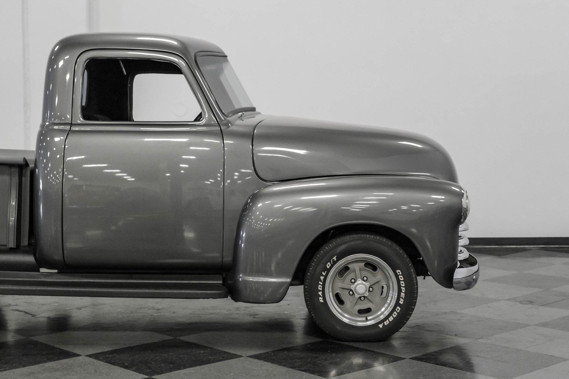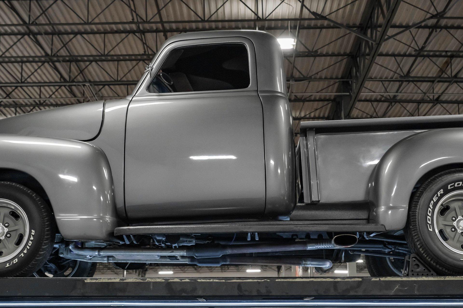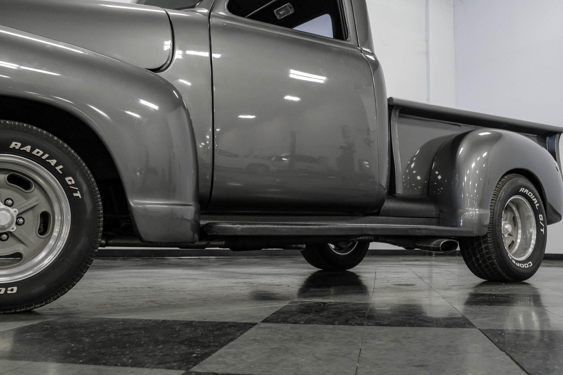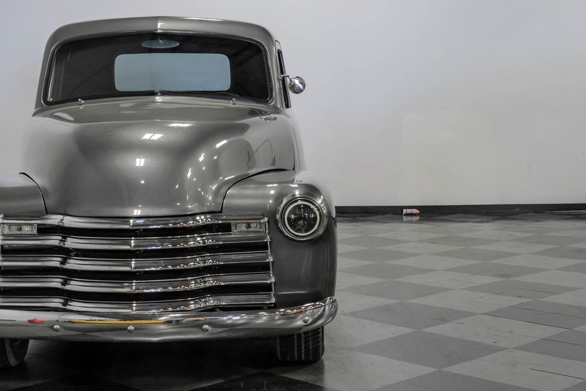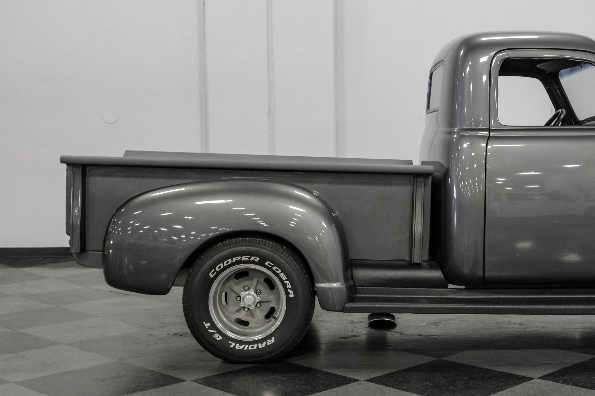 Step back in time with a modern twist in this captivating 1951 Chevrolet 3100 Restomod. This truck is more than just a vehicle; it's a statement of craftsmanship and passion, blending classic charm with contemporary performance. Imagine the joy of cruising down the road in a timeless icon reimagined for today's driving pleasure, turning heads and sparking conversations wherever you go. Given a modern look with a full dark gray repaint, a stunning cherry red wood grain bed and sleek, shaved door handles, this Chevy 3100 is ready to make your classic truck dreams come true. Inside, the cabin offers a perfect blend of vintage style and modern comfort. The custom interior features a matching headliner, door cards, and a vinyl and suede bench seat that exudes quality. Classic Instruments gauges and a flat black dash complement the sporty tilt column with a racing-style steering wheel. Modern amenities like air conditioning, heat, cruise control, and a Kenwood AM/FM/Bluetooth/Aux radio ensure a comfortable and connected ride. Under the hood, this truck houses a powerful 6.0L V8 LQ4 engine paired with a 4L60E four-speed automatic transmission that features a floor shifter styled like a manual. The engine bay is well organized, showcasing a high quality presentation with hidden wiring. Performance enhancements include billet accessory brackets, a 92mm throttle body, MSCR coil pack bracket, and an aluminum radiator with an electronic fan. The suspension is upgraded with Mustang II-style front suspension and a four-link rear with adjustable coilovers, ensuring a smooth and responsive drive. Highlights: 6.0L V8 LQ4 Engine 4L60E 4 Speed Automatic Transmission Custom Zach Dickerson Cherry Oak Wood Bed Paint Matching Rhino Liner In Bed Shaved Door Handles Side Exit Exhaust Mustang II Style Front Suspension Four Link Rear Suspension With Coilovers American Racing Salt Flat Wheels Power Front Disc Brakes Air Conditioning / Heat Kenwood AM/FM/Bluetooth/Aux Radio Custom Vinyl And Suede Interior Financing Available Vehicle Protection Plans Available Worldwide Shipping This 1951 Chevrolet 3100 Restomod combines classic aesthetics with modern upgrades, making it a fantastic choice for collectors and enthusiasts alike. Don't miss the opportunity to own a truck that offers both style and substance. Call, email, or come visit our showroom today!