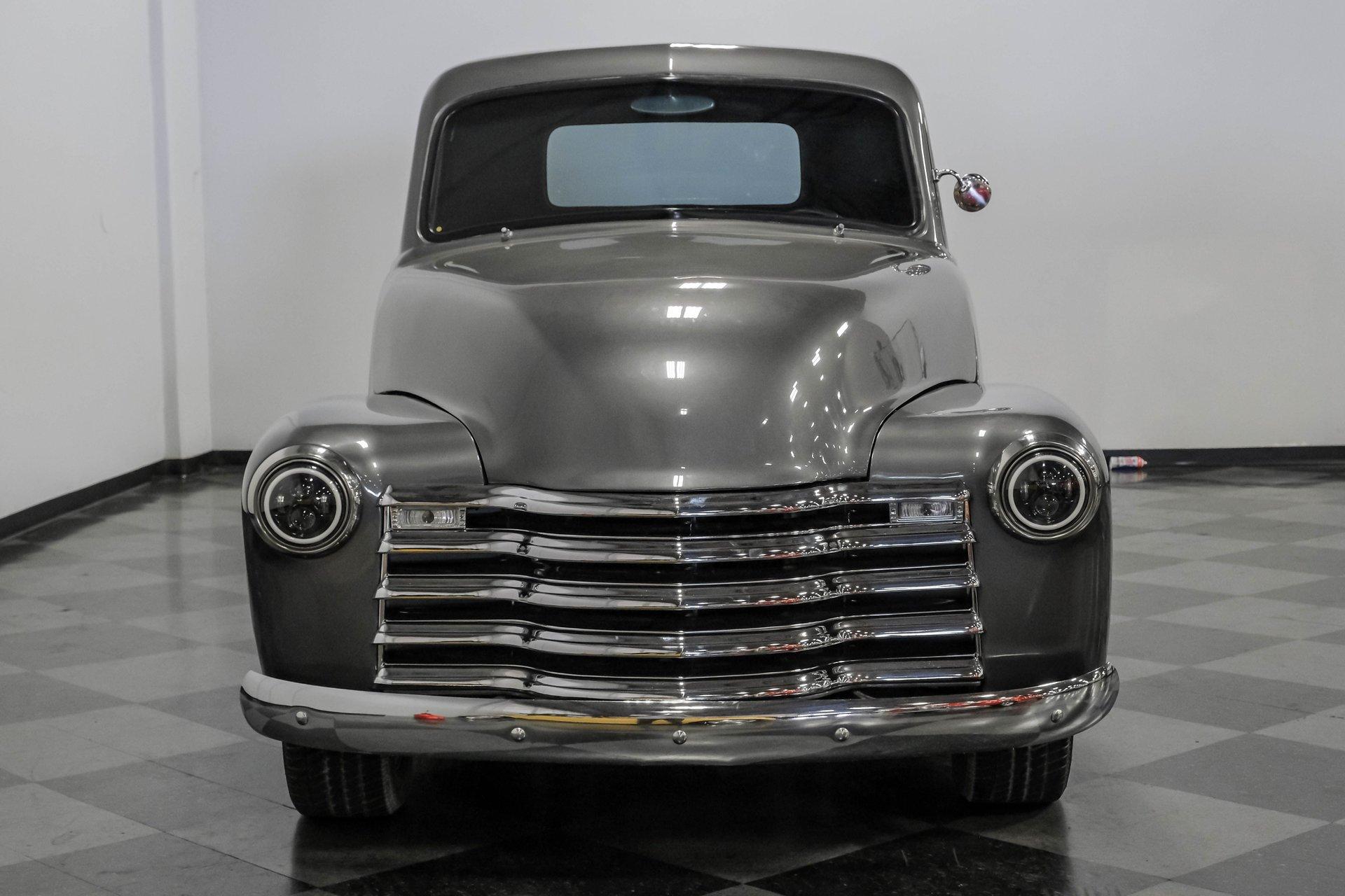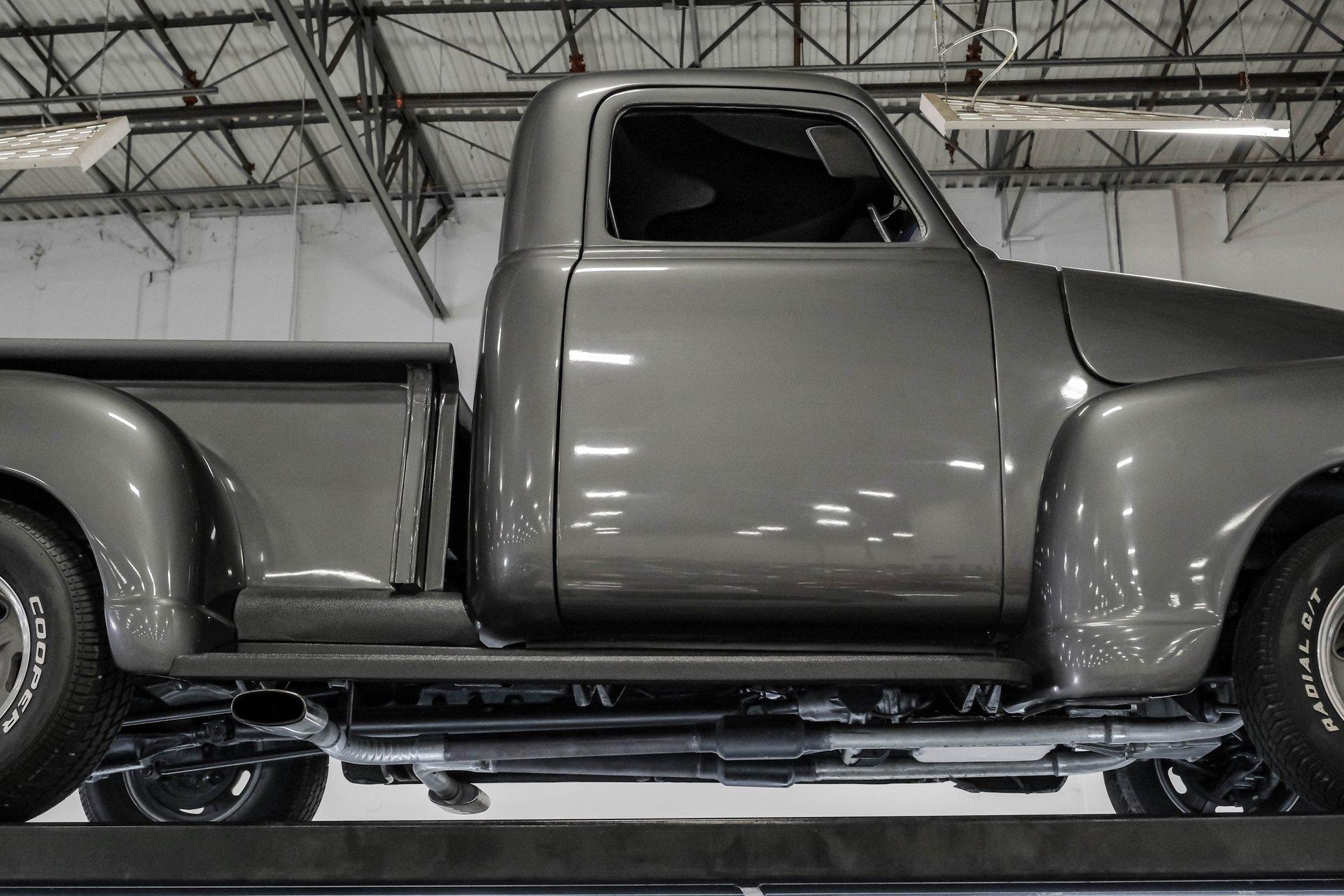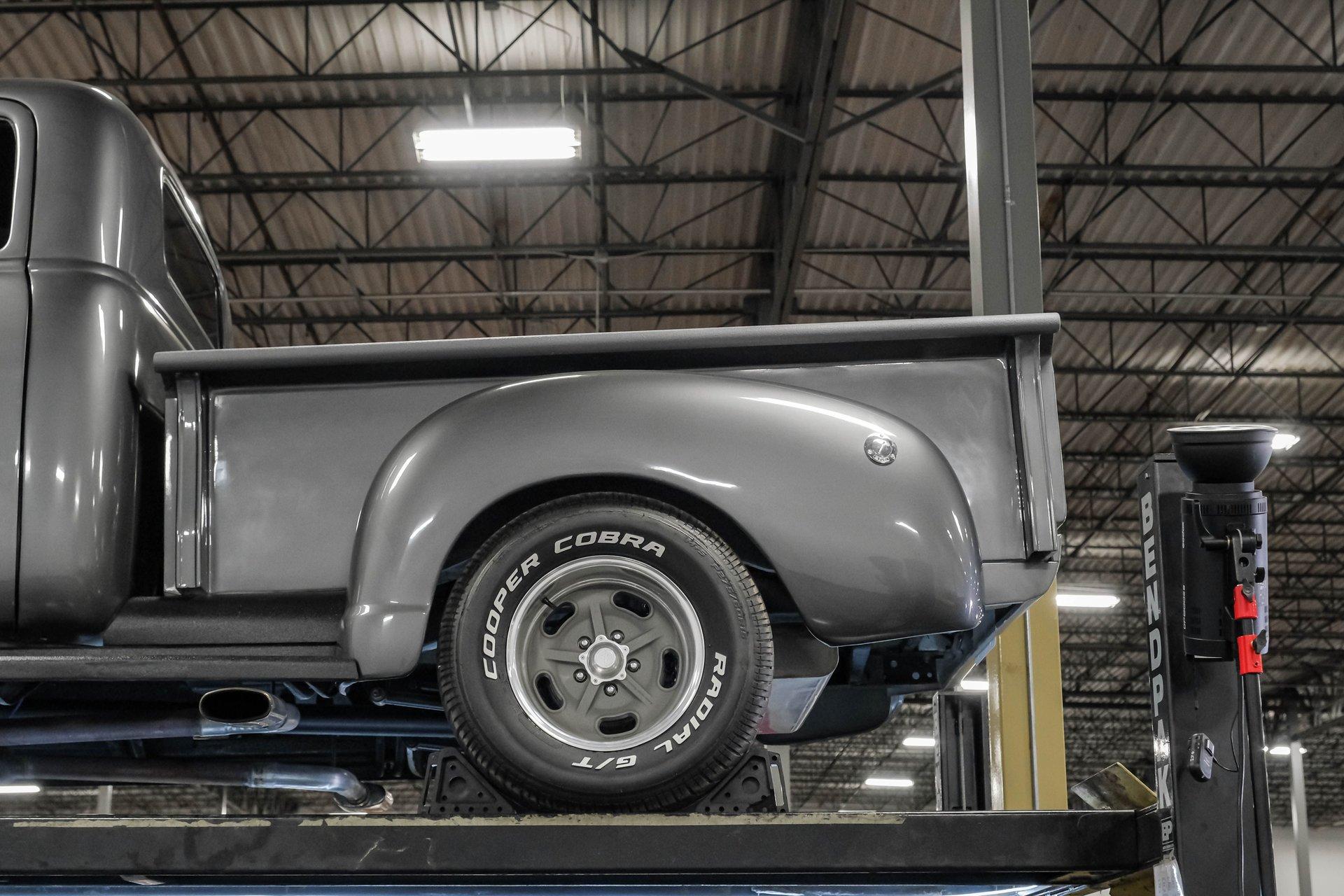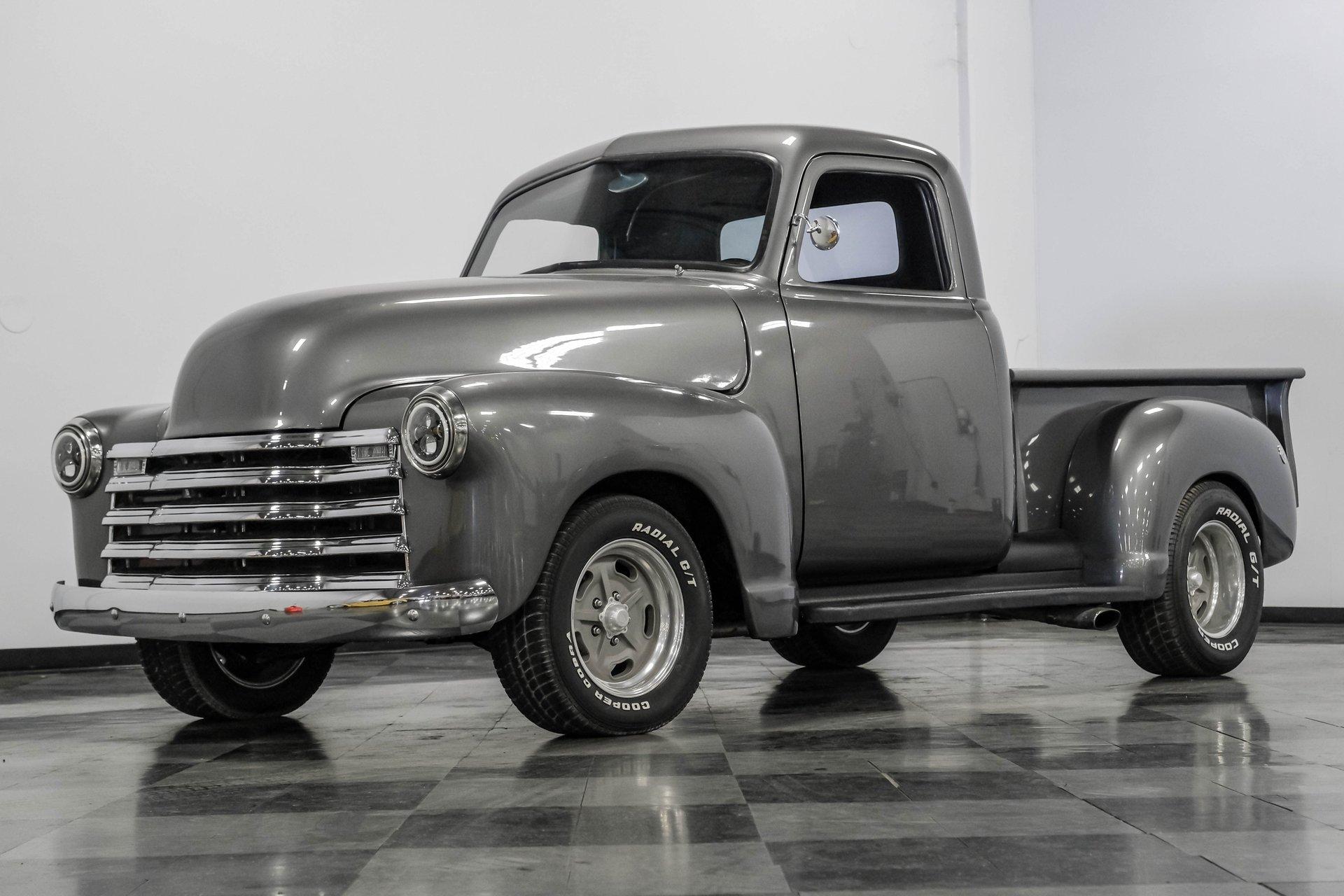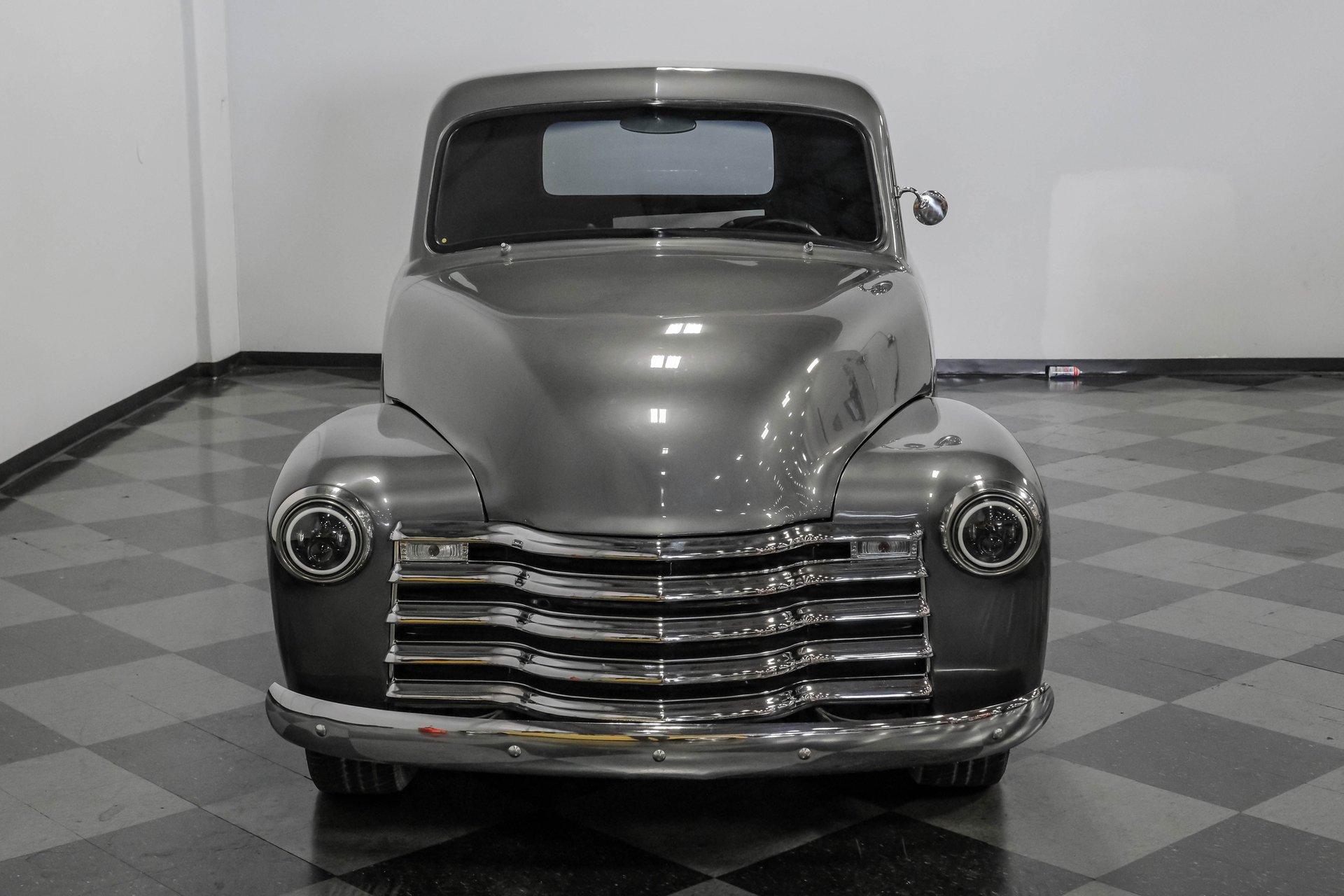 Step back in time with a modern twist in this captivating 1951 Chevrolet 3100 Restomod. This truck is more than just a vehicle; it's a statement of craftsmanship and passion, blending classic charm with contemporary performance. Imagine the joy of cruising down the road in a timeless icon reimagined for today's driving pleasure, turning heads and sparking conversations wherever you go. Given a modern look with a full dark gray repaint, a stunning cherry red wood grain bed and sleek, shaved door handles, this Chevy 3100 is ready to make your classic truck dreams come true. Inside, the cabin offers a perfect blend of vintage style and modern comfort. The custom interior features a matching headliner, door cards, and a vinyl and suede bench seat that exudes quality. Classic Instruments gauges and a flat black dash complement the sporty tilt column with a racing-style steering wheel. Modern amenities like air conditioning, heat, cruise control, and a Kenwood AM/FM/Bluetooth/Aux radio ensure a comfortable and connected ride. Under the hood, this truck houses a powerful 6.0L V8 LQ4 engine paired with a 4L60E four-speed automatic transmission that features a floor shifter styled like a manual. The engine bay is well organized, showcasing a high quality presentation with hidden wiring. Performance enhancements include billet accessory brackets, a 92mm throttle body, MSCR coil pack bracket, and an aluminum radiator with an electronic fan. The suspension is upgraded with Mustang II-style front suspension and a four-link rear with adjustable coilovers, ensuring a smooth and responsive drive. Highlights: 6.0L V8 LQ4 Engine 4L60E 4 Speed Automatic Transmission Custom Zach Dickerson Cherry Oak Wood Bed Paint Matching Rhino Liner In Bed Shaved Door Handles Side Exit Exhaust Mustang II Style Front Suspension Four Link Rear Suspension With Coilovers American Racing Salt Flat Wheels Power Front Disc Brakes Air Conditioning / Heat Kenwood AM/FM/Bluetooth/Aux Radio Custom Vinyl And Suede Interior Financing Available Vehicle Protection Plans Available Worldwide Shipping This 1951 Chevrolet 3100 Restomod combines classic aesthetics with modern upgrades, making it a fantastic choice for collectors and enthusiasts alike. Don't miss the opportunity to own a truck that offers both style and substance. Call, email, or come visit our showroom today!
