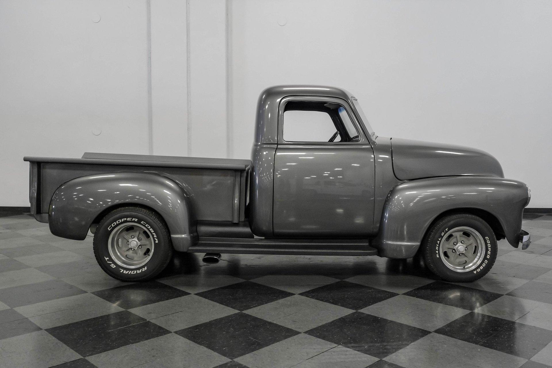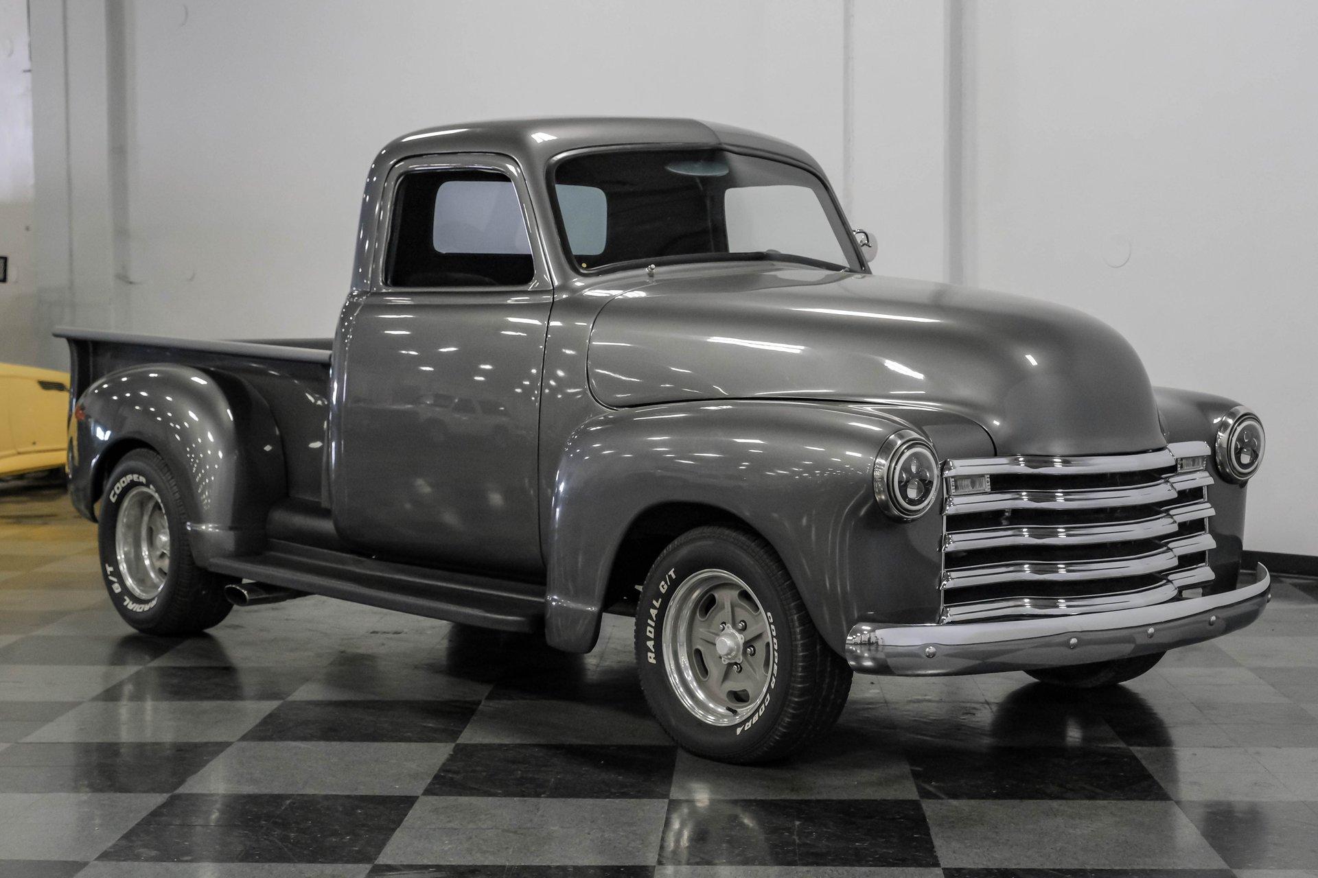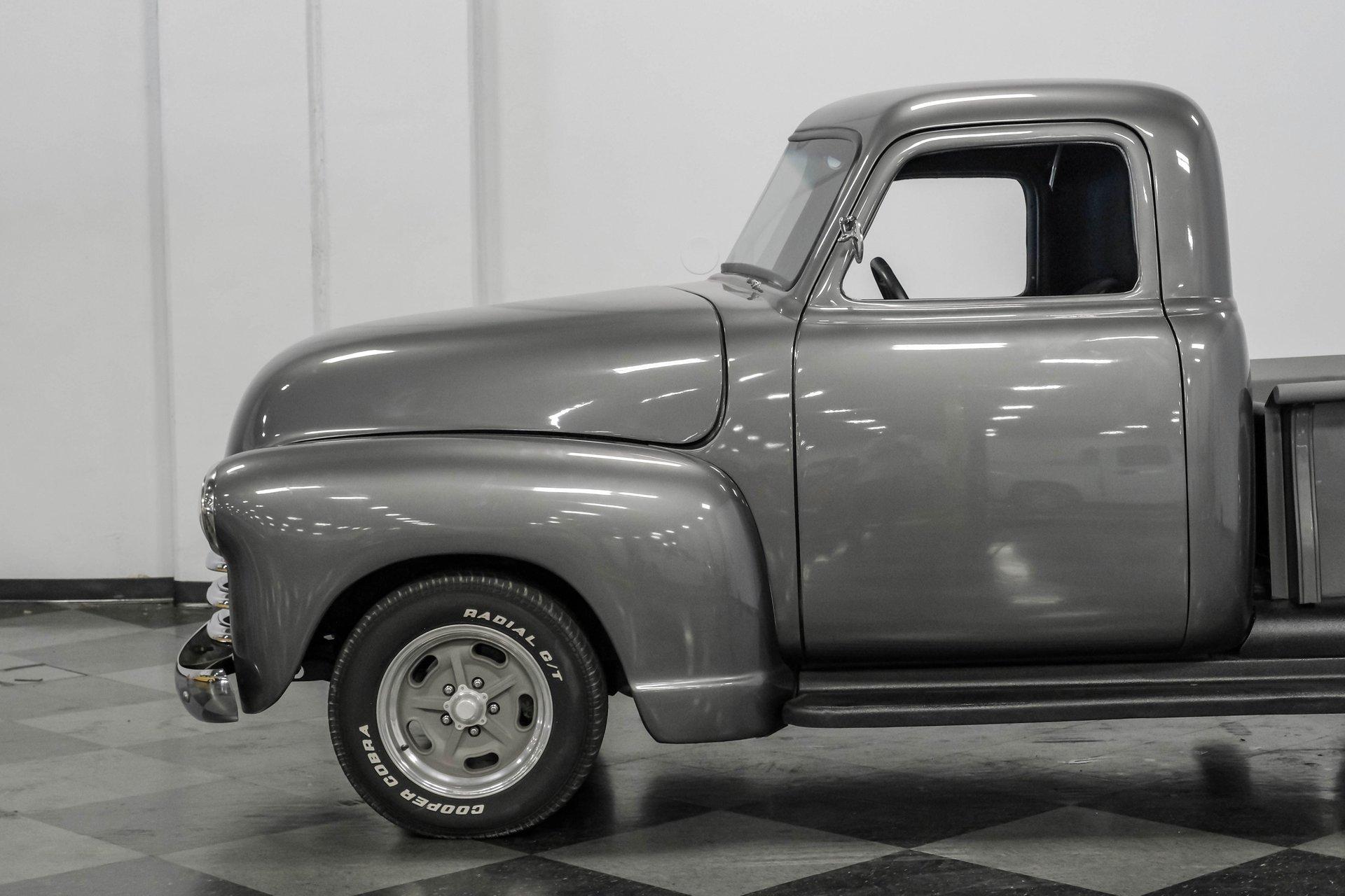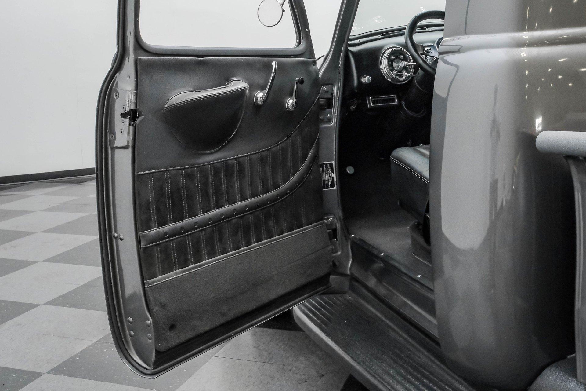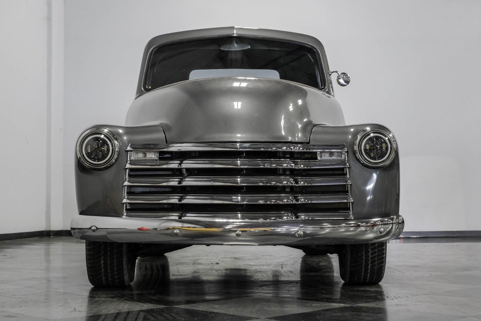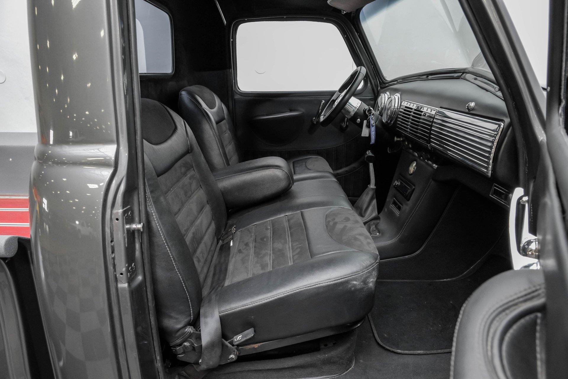 Step back in time with a modern twist in this captivating 1951 Chevrolet 3100 Restomod. This truck is more than just a vehicle; it's a statement of craftsmanship and passion, blending classic charm with contemporary performance. Imagine the joy of cruising down the road in a timeless icon reimagined for today's driving pleasure, turning heads and sparking conversations wherever you go. Given a modern look with a full dark gray repaint, a stunning cherry red wood grain bed and sleek, shaved door handles, this Chevy 3100 is ready to make your classic truck dreams come true. Inside, the cabin offers a perfect blend of vintage style and modern comfort. The custom interior features a matching headliner, door cards, and a vinyl and suede bench seat that exudes quality. Classic Instruments gauges and a flat black dash complement the sporty tilt column with a racing-style steering wheel. Modern amenities like air conditioning, heat, cruise control, and a Kenwood AM/FM/Bluetooth/Aux radio ensure a comfortable and connected ride. Under the hood, this truck houses a powerful 6.0L V8 LQ4 engine paired with a 4L60E four-speed automatic transmission that features a floor shifter styled like a manual. The engine bay is well organized, showcasing a high quality presentation with hidden wiring. Performance enhancements include billet accessory brackets, a 92mm throttle body, MSCR coil pack bracket, and an aluminum radiator with an electronic fan. The suspension is upgraded with Mustang II-style front suspension and a four-link rear with adjustable coilovers, ensuring a smooth and responsive drive. Highlights: 6.0L V8 LQ4 Engine 4L60E 4 Speed Automatic Transmission Custom Zach Dickerson Cherry Oak Wood Bed Paint Matching Rhino Liner In Bed Shaved Door Handles Side Exit Exhaust Mustang II Style Front Suspension Four Link Rear Suspension With Coilovers American Racing Salt Flat Wheels Power Front Disc Brakes Air Conditioning / Heat Kenwood AM/FM/Bluetooth/Aux Radio Custom Vinyl And Suede Interior Financing Available Vehicle Protection Plans Available Worldwide Shipping This 1951 Chevrolet 3100 Restomod combines classic aesthetics with modern upgrades, making it a fantastic choice for collectors and enthusiasts alike. Don't miss the opportunity to own a truck that offers both style and substance. Call, email, or come visit our showroom today!