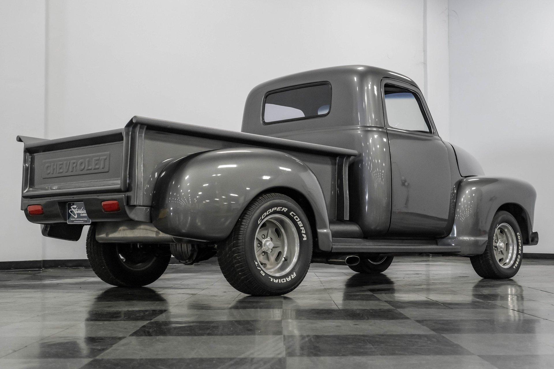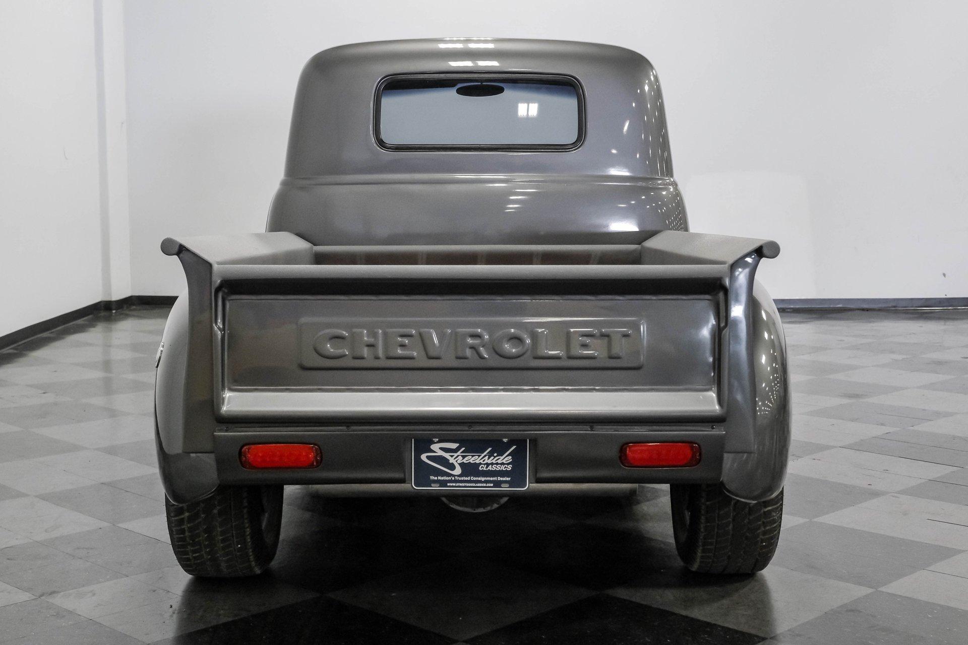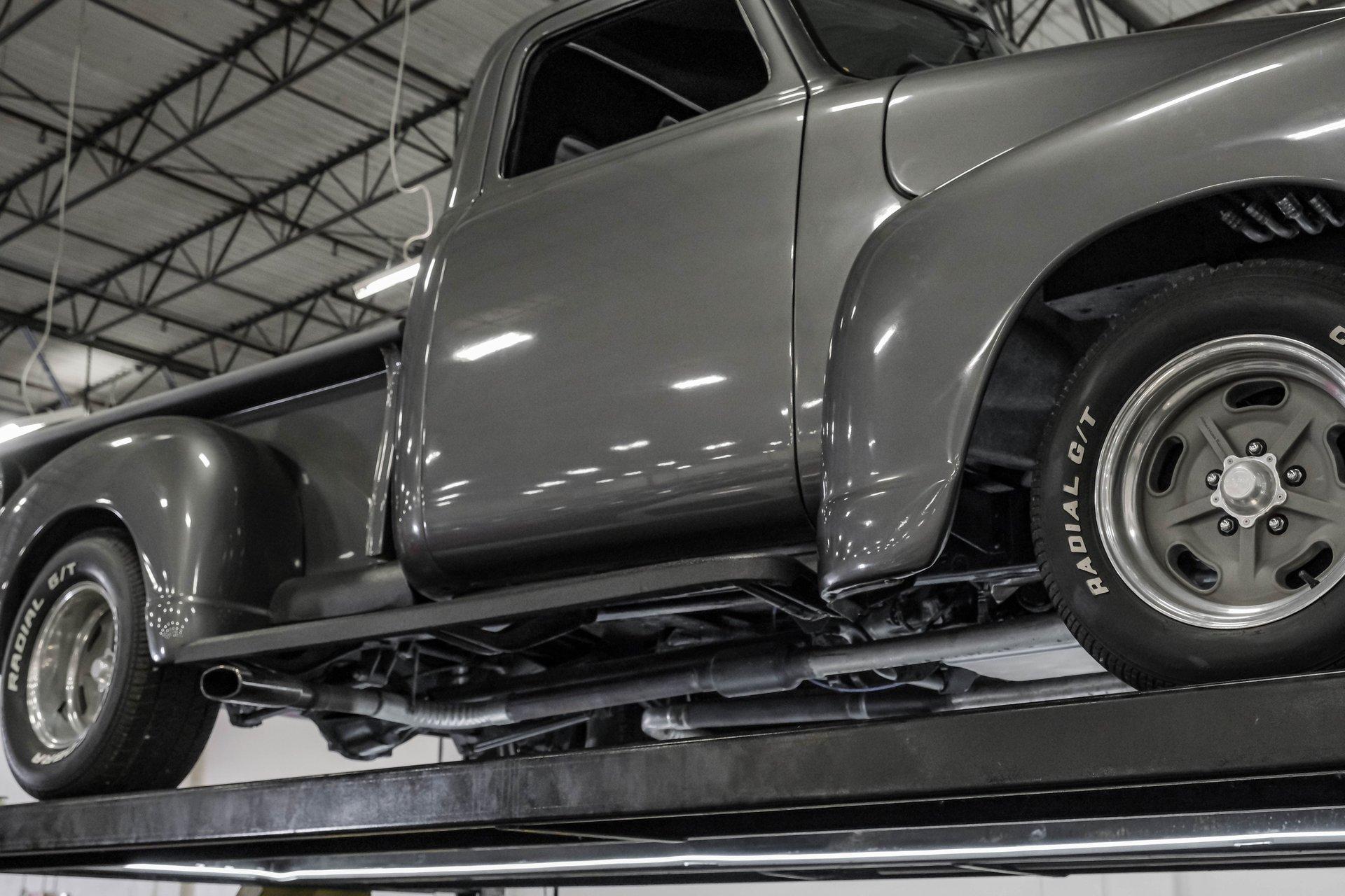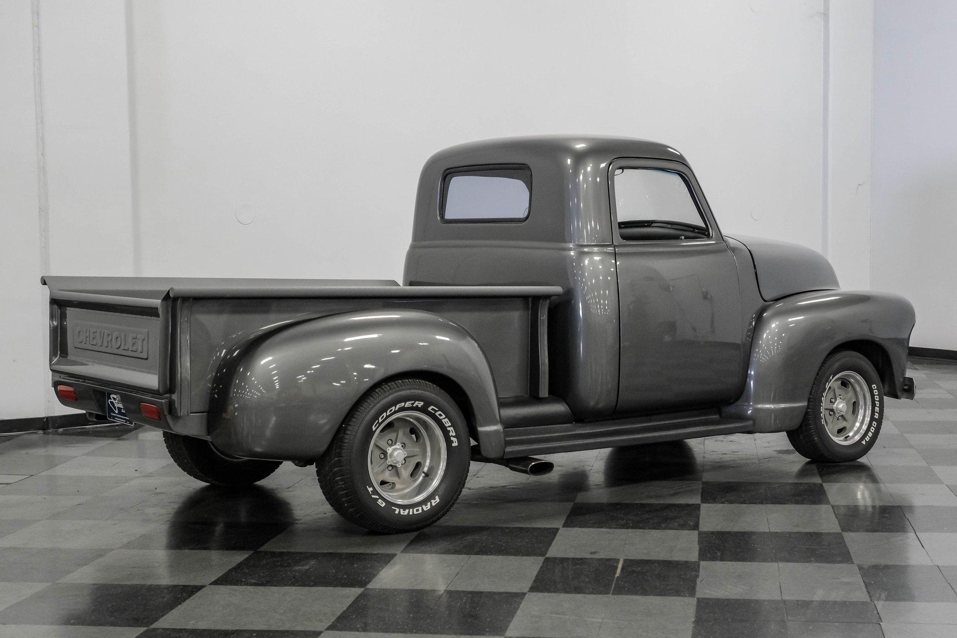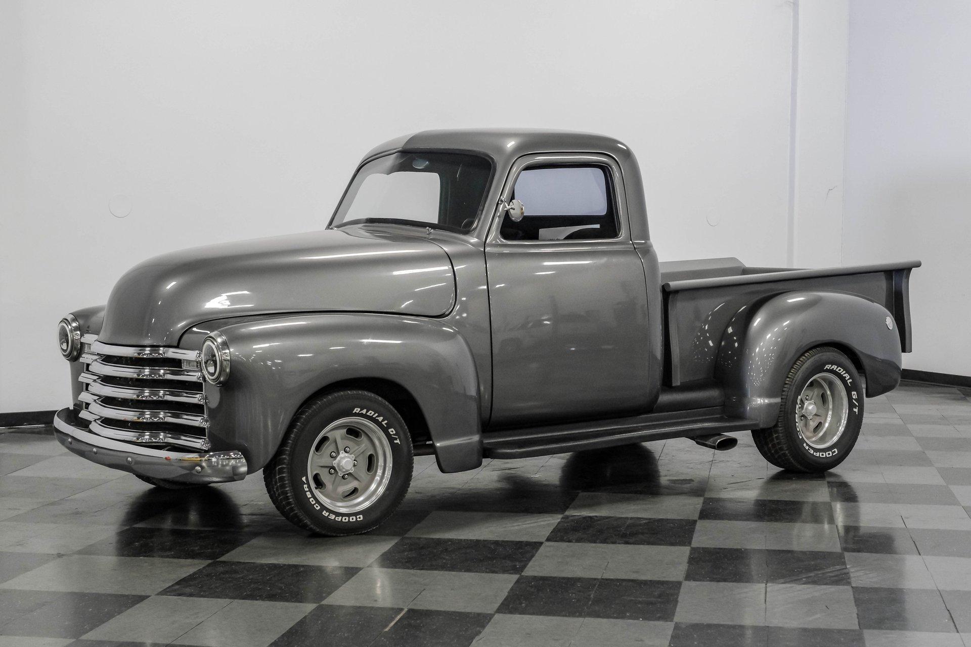 Step back in time with a modern twist in this captivating 1951 Chevrolet 3100 Restomod. This truck is more than just a vehicle; it's a statement of craftsmanship and passion, blending classic charm with contemporary performance. Imagine the joy of cruising down the road in a timeless icon reimagined for today's driving pleasure, turning heads and sparking conversations wherever you go. Given a modern look with a full dark gray repaint, a stunning cherry red wood grain bed and sleek, shaved door handles, this Chevy 3100 is ready to make your classic truck dreams come true. Inside, the cabin offers a perfect blend of vintage style and modern comfort. The custom interior features a matching headliner, door cards, and a vinyl and suede bench seat that exudes quality. Classic Instruments gauges and a flat black dash complement the sporty tilt column with a racing-style steering wheel. Modern amenities like air conditioning, heat, cruise control, and a Kenwood AM/FM/Bluetooth/Aux radio ensure a comfortable and connected ride. Under the hood, this truck houses a powerful 6.0L V8 LQ4 engine paired with a 4L60E four-speed automatic transmission that features a floor shifter styled like a manual. The engine bay is well organized, showcasing a high quality presentation with hidden wiring. Performance enhancements include billet accessory brackets, a 92mm throttle body, MSCR coil pack bracket, and an aluminum radiator with an electronic fan. The suspension is upgraded with Mustang II-style front suspension and a four-link rear with adjustable coilovers, ensuring a smooth and responsive drive. Highlights: 6.0L V8 LQ4 Engine 4L60E 4 Speed Automatic Transmission Custom Zach Dickerson Cherry Oak Wood Bed Paint Matching Rhino Liner In Bed Shaved Door Handles Side Exit Exhaust Mustang II Style Front Suspension Four Link Rear Suspension With Coilovers American Racing Salt Flat Wheels Power Front Disc Brakes Air Conditioning / Heat Kenwood AM/FM/Bluetooth/Aux Radio Custom Vinyl And Suede Interior Financing Available Vehicle Protection Plans Available Worldwide Shipping This 1951 Chevrolet 3100 Restomod combines classic aesthetics with modern upgrades, making it a fantastic choice for collectors and enthusiasts alike. Don't miss the opportunity to own a truck that offers both style and substance. Call, email, or come visit our showroom today!