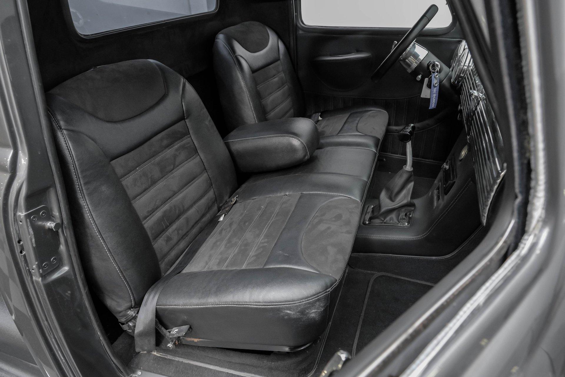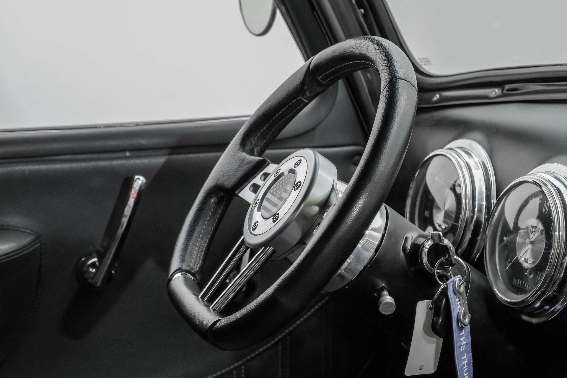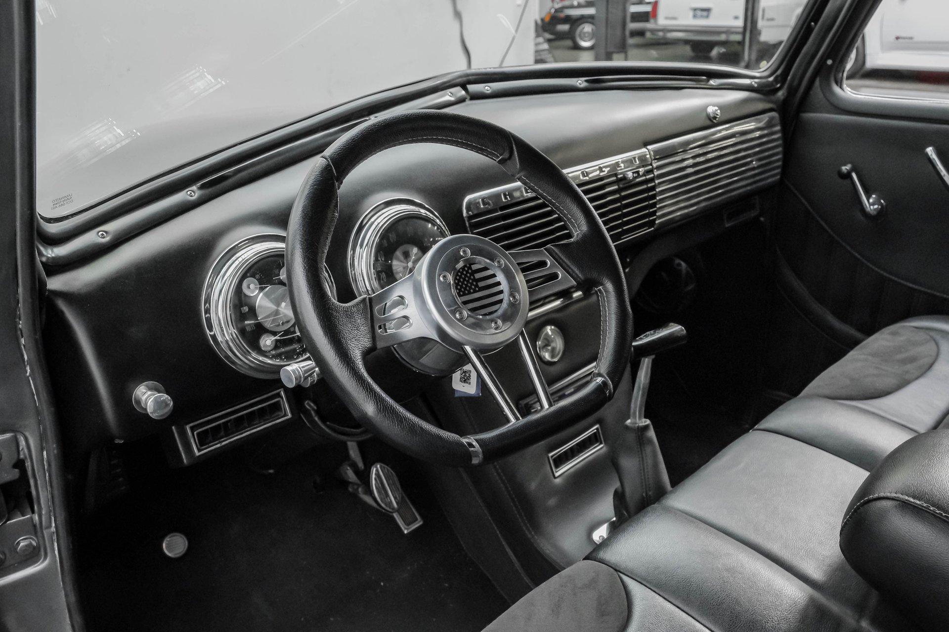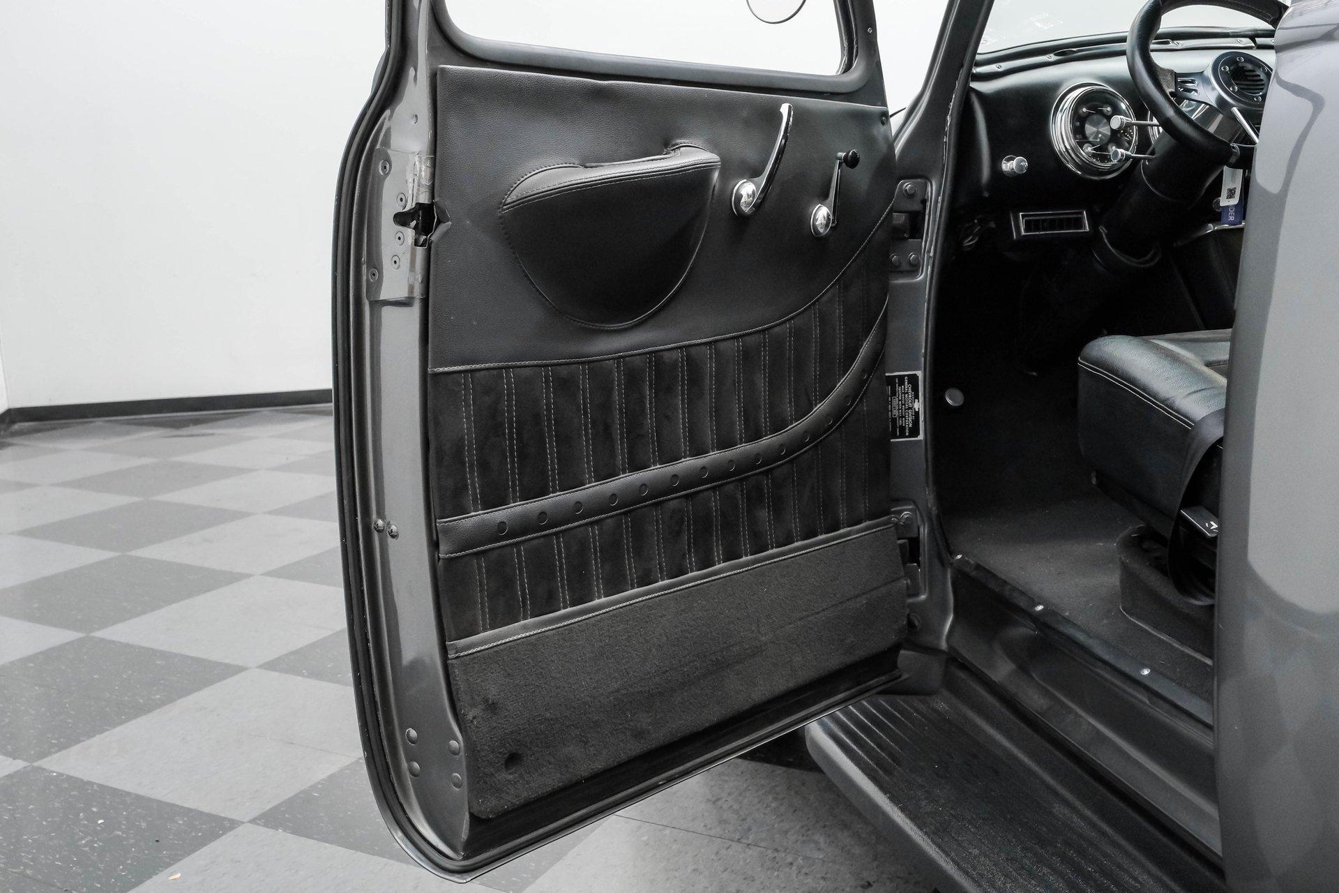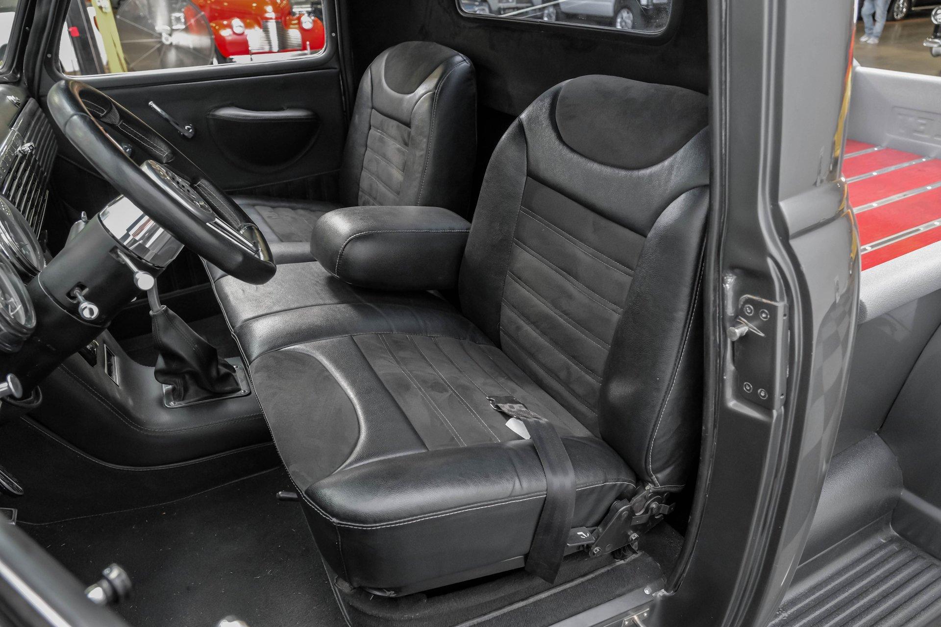 Step back in time with a modern twist in this captivating 1951 Chevrolet 3100 Restomod. This truck is more than just a vehicle; it's a statement of craftsmanship and passion, blending classic charm with contemporary performance. Imagine the joy of cruising down the road in a timeless icon reimagined for today's driving pleasure, turning heads and sparking conversations wherever you go. Given a modern look with a full dark gray repaint, a stunning cherry red wood grain bed and sleek, shaved door handles, this Chevy 3100 is ready to make your classic truck dreams come true. Inside, the cabin offers a perfect blend of vintage style and modern comfort. The custom interior features a matching headliner, door cards, and a vinyl and suede bench seat that exudes quality. Classic Instruments gauges and a flat black dash complement the sporty tilt column with a racing-style steering wheel. Modern amenities like air conditioning, heat, cruise control, and a Kenwood AM/FM/Bluetooth/Aux radio ensure a comfortable and connected ride. Under the hood, this truck houses a powerful 6.0L V8 LQ4 engine paired with a 4L60E four-speed automatic transmission that features a floor shifter styled like a manual. The engine bay is well organized, showcasing a high quality presentation with hidden wiring. Performance enhancements include billet accessory brackets, a 92mm throttle body, MSCR coil pack bracket, and an aluminum radiator with an electronic fan. The suspension is upgraded with Mustang II-style front suspension and a four-link rear with adjustable coilovers, ensuring a smooth and responsive drive. Highlights: 6.0L V8 LQ4 Engine 4L60E 4 Speed Automatic Transmission Custom Zach Dickerson Cherry Oak Wood Bed Paint Matching Rhino Liner In Bed Shaved Door Handles Side Exit Exhaust Mustang II Style Front Suspension Four Link Rear Suspension With Coilovers American Racing Salt Flat Wheels Power Front Disc Brakes Air Conditioning / Heat Kenwood AM/FM/Bluetooth/Aux Radio Custom Vinyl And Suede Interior Financing Available Vehicle Protection Plans Available Worldwide Shipping This 1951 Chevrolet 3100 Restomod combines classic aesthetics with modern upgrades, making it a fantastic choice for collectors and enthusiasts alike. Don't miss the opportunity to own a truck that offers both style and substance. Call, email, or come visit our showroom today!