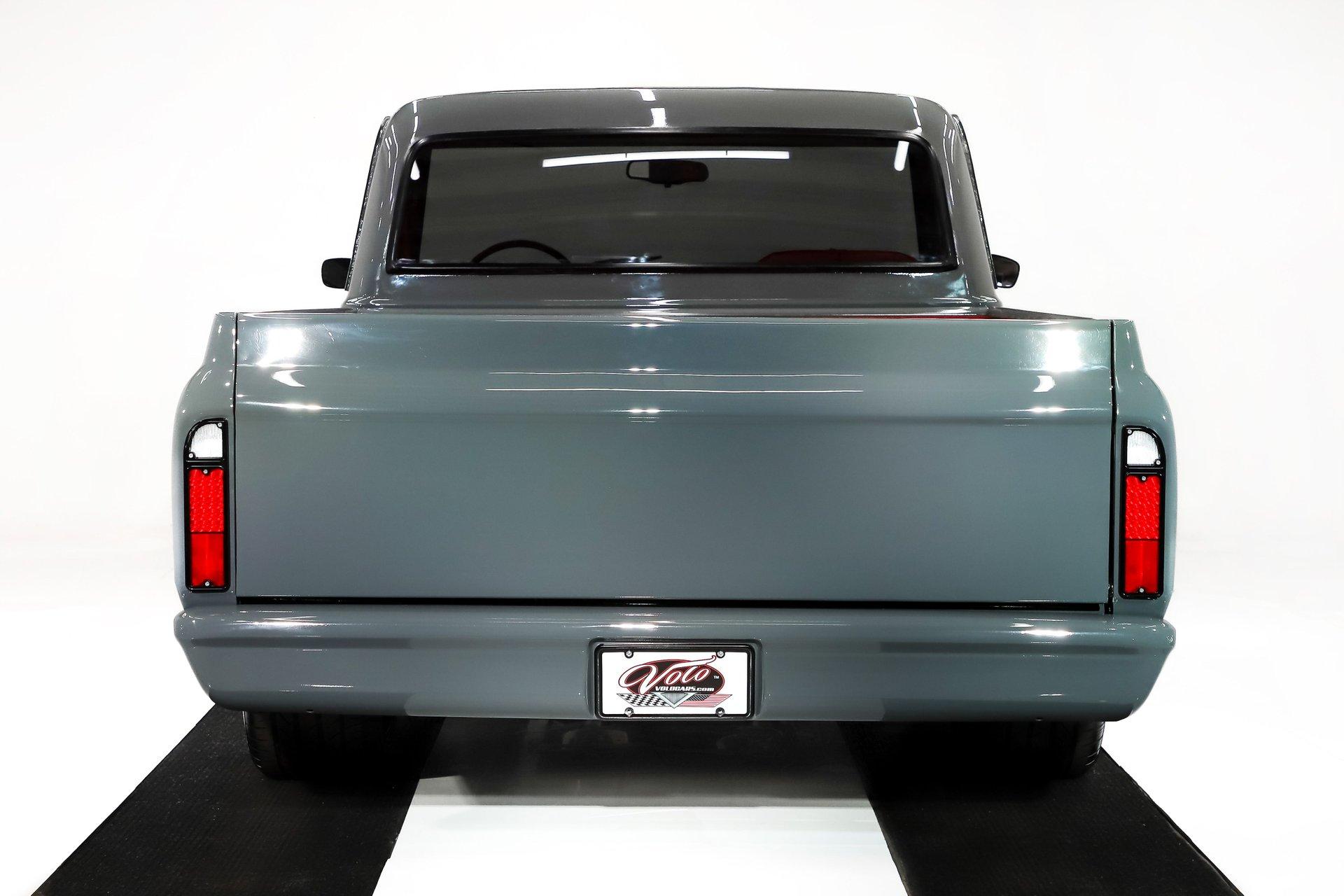 Celebrating our 65 year anniversary! This family owned and operated business was established in 1960, making us the oldest classic car dealership in America. Special thank you to all our customers for entrusting us to park the car of your dreams in your driveway while preserving automotive history for future generations to embrace and enjoy. -Grams family & Volo Museum staff INTRODUCTION: Only 425 miles on a custom build! It's slick, it's modern, it's fun and fast! EXTERIOR: This is a slick looking truck! It has had a significant amount of body mods although they appear subtle. All emblems, trim, antenna, stake holes on top of the bed, tailgate handle, marker lights and gas filler were removed and smoothed. The front bumper was removed and the valance was molded to match the body. Painted a modern non metallic destroyer Gray and it is polished out smooth and glossy! The rear bumper is smoothed out and color matched. The remaining trim is blacked out and the mirrors are custom. LED taillights, reverse lights, headlights and relocated front turn signals. New custom side glass, they eliminated the vent windows. The rest of the glass is tinted. The 22 inch US Mag wheels complete the modern look. I love that they are wrapped in performance redline tires! INTERIOR: Pow! The red pops against the gray. It was completely gutted so a beautiful custom interior could be installed. They started with an all new wiring harness and updated fuse block and the metal trim was painted a satin finish red. Then it was given new door panels, armrests and handles. The dash pad and instrument panel were replaced, it is upgraded with a full set of modern gauges that have a vintage look. The climate control panel is also upgraded with electric slides. The red deluxe wheel is on a tilt column. The TMI seats look and feel great, 3 point retractable seat belts were added. In between the seats is a custom made center console featuring cup holders that light up red and the best part of all: a 6-speed shifter! Down on the floor is fresh carpet, mats and custom kick panels. Above is a fresh headliner and visors. ENGINE COMPARTMENT: Show quality and modern reliability! This crate 5.3L packs a punch! It has direct injection, stainless headers and is dressed with coil covers that look like vintage valve covers. The front of the motor has a blacked out billet CVF runner system with mini compressor, serpentine pulleys, 1 wire alternator and modern power steering. An aluminum radiator with dual electric fans keeps it cool, it also has modern compression hose clamps. It has a custom firewall painted gloss black along with the fender wells and front filler panel. Under the hood is gloss gray and has custom hinges with gas struts. This is one slick engine compartment! TRUNK COMPARTMENT: I love the red bed liner, it really pops and is super durable! The tailgate handle is relocated to the inside of the tailgate and the fuel filler is relocated to the left rear corner of the floor. UNDERSIDE: The suspension was rebuilt and upgraded with adjustable gas shocks in front. The steering was upgraded with a power rack & pinion system. The brakes are disc in front, drum in back and use a Wilwood master cylinder. The custom stainless exhaust has a cross over pipe and Borla mufflers. The fuel system is completely custom: relocated and compatible with the fuel injection. Looking up at the red motor it is clean and has a high torque starter. The T56 6-speed manual trans uses a hydraulic clutch. The floors and frame look solid. SERVICE: We take pride in our cars and reputation. Therefore, we built a 2 million dollar, 10,000 square ft service center, and hired a team of technicians to service the essentials on every car we sell. CONCLUSION: This C10 is hot! It's modern and tastefully done. The gray is very popular and the red adds excitement, maybe not as much as that 6-speed though! With only 425 miles it is ready for you to enjoy. For nearly 30 years, I, Jay Grams, have personally written the highlights for almost every car in our collection. What I provide is my professional opinion based on my experience with these vehicles. However, opinions can vary, and I strongly recommend a personal inspection to form your own view. Our sales team is always available to answer any questions you may have. One great option is to request a personalized walk-around video, where we can showcase the car and share our team’s insights. **Our cars are displayed within a museum setting. If you are interested in a specific vehicle, please schedule an appointment with a salesperson to view it. Without an appointment, there is an admission fee to enter the showroom. If you decide to purchase a car, your admission will be refunded, and you'll receive a one-year museum membership. ☎️ 815 385 3644 9-5 central 📧 Sales@volocars.com Answered ASAP Air conditioning Power steering Rack & pinion Fuel injection Bucket seats Console Custom gauges Tilt deluxe wheel Tinted glass Bedliner LED lights 22” wheels Performance redlines