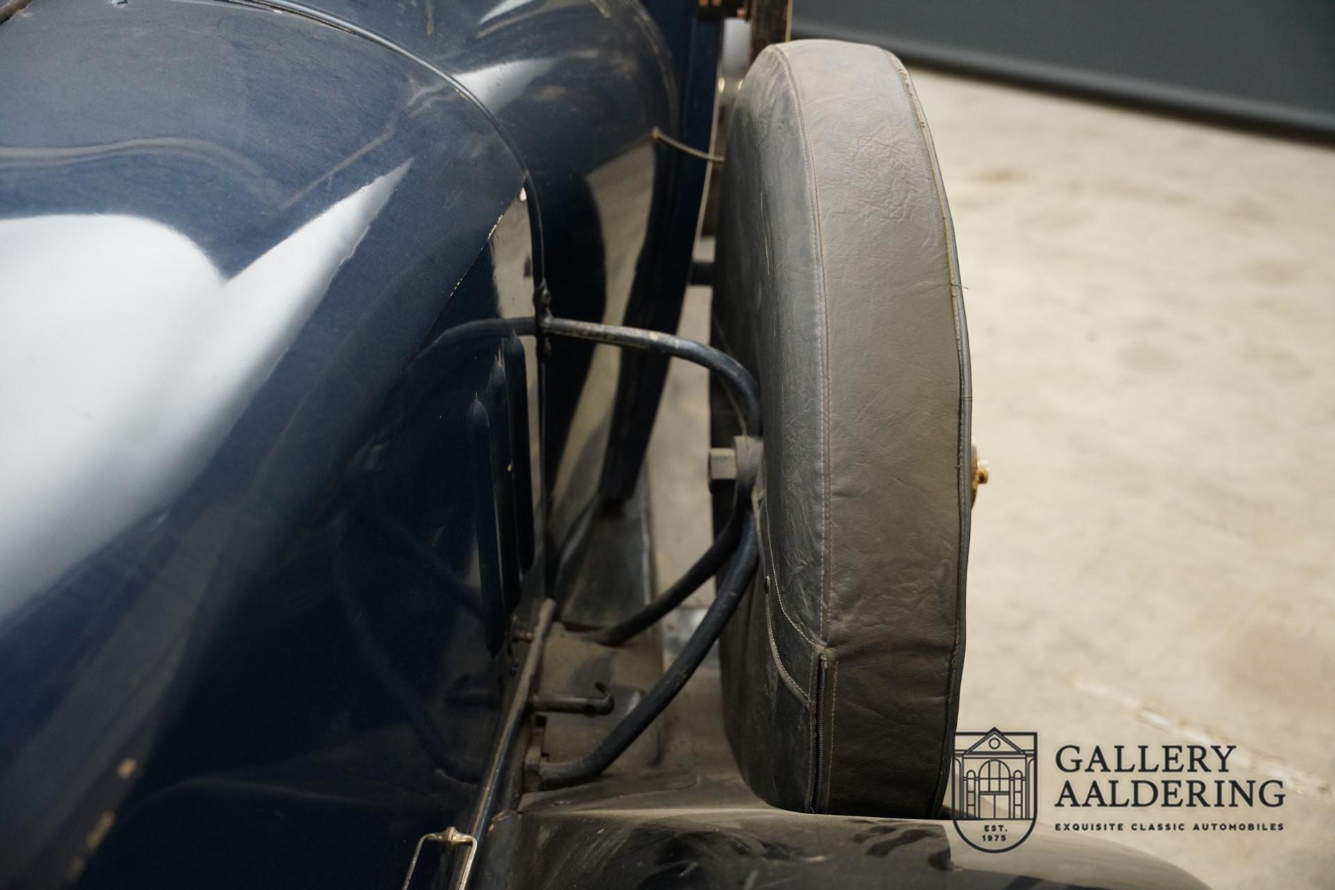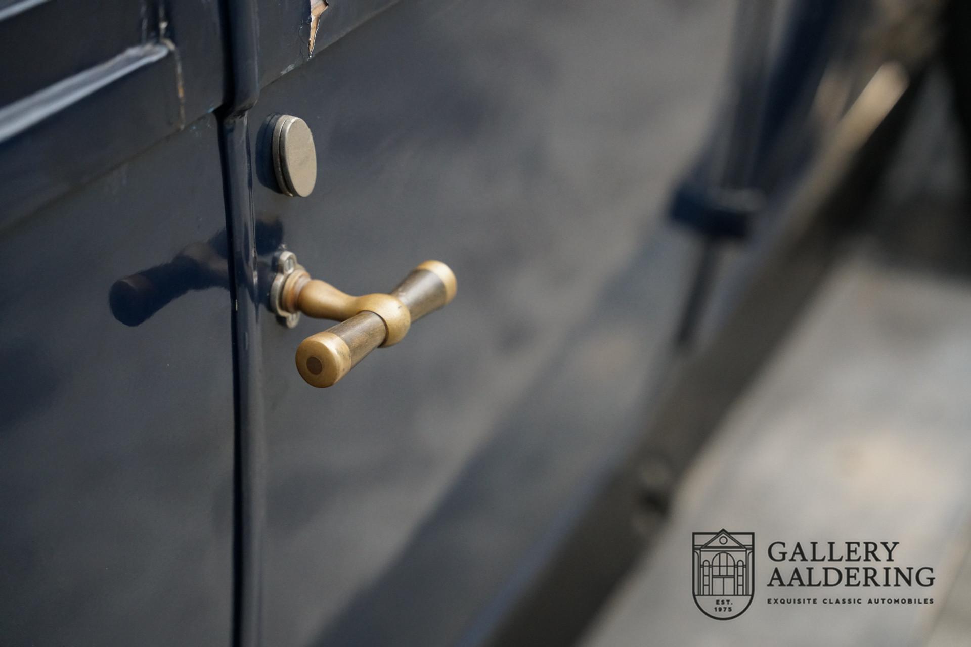 For its age, the bodywork is remarkably good shape. The car is even partly original with correct alignment. The C1 was given a blue finish at the time. The paintwork still looks good with only minor signs of the effect the years have had. The interior trim consists of black leather on the drivers and passengers seat with the typical Avions Voisin Art-Deco designed cloth upholstery in the back. It certainly creates an absolutely unique look. Just as special are the two little stool in front of the rear bench that doubles up as footstools for the rear passengers.