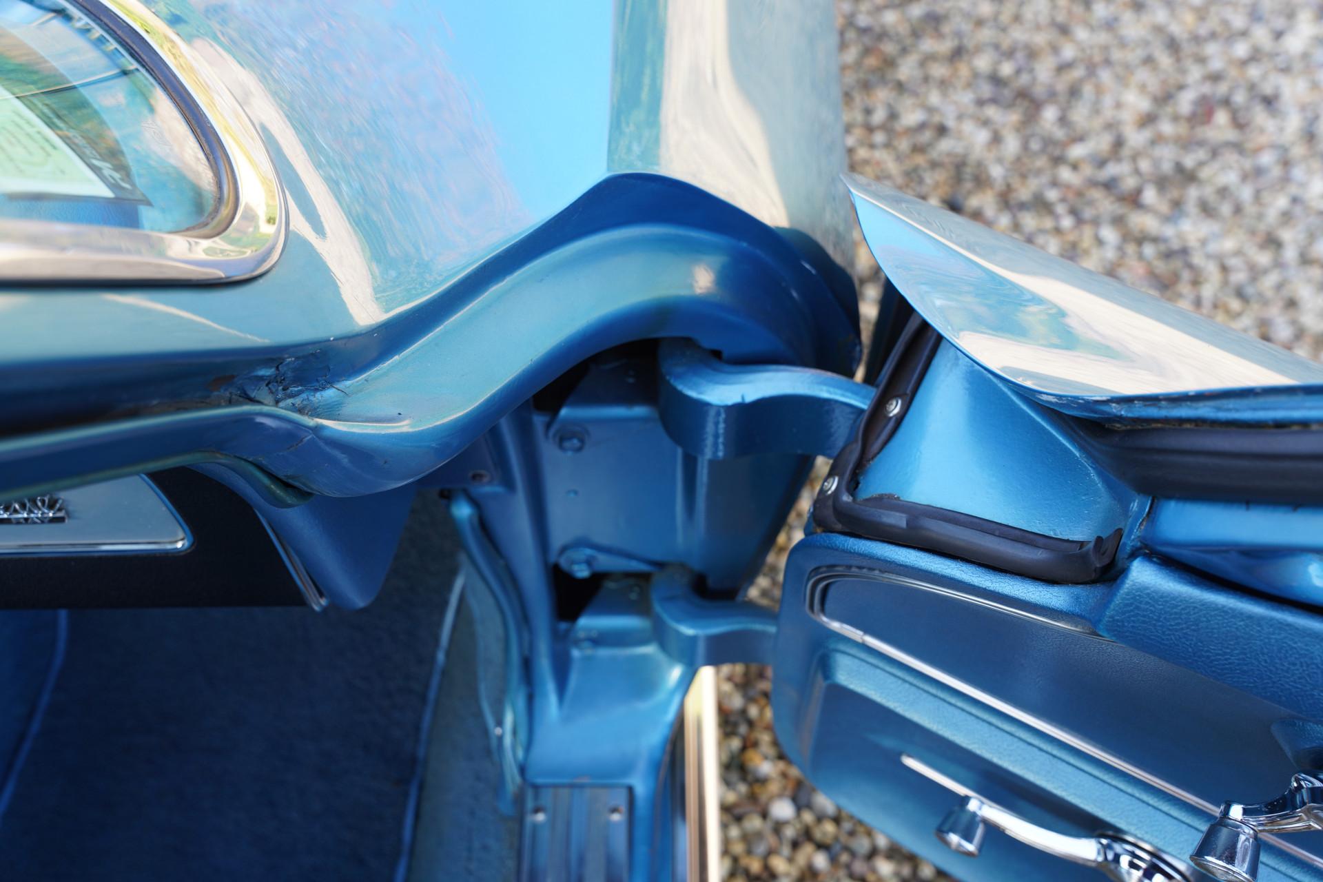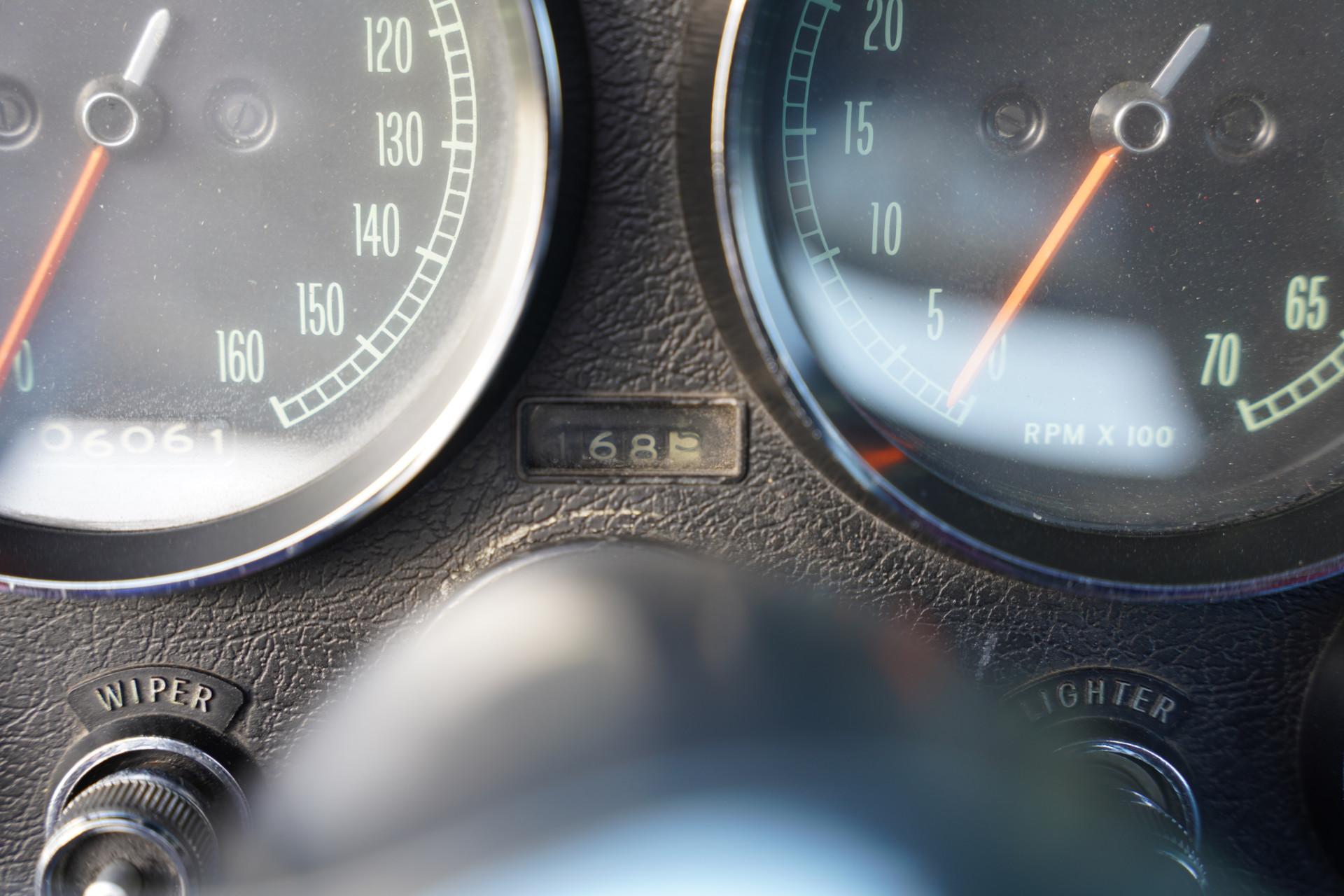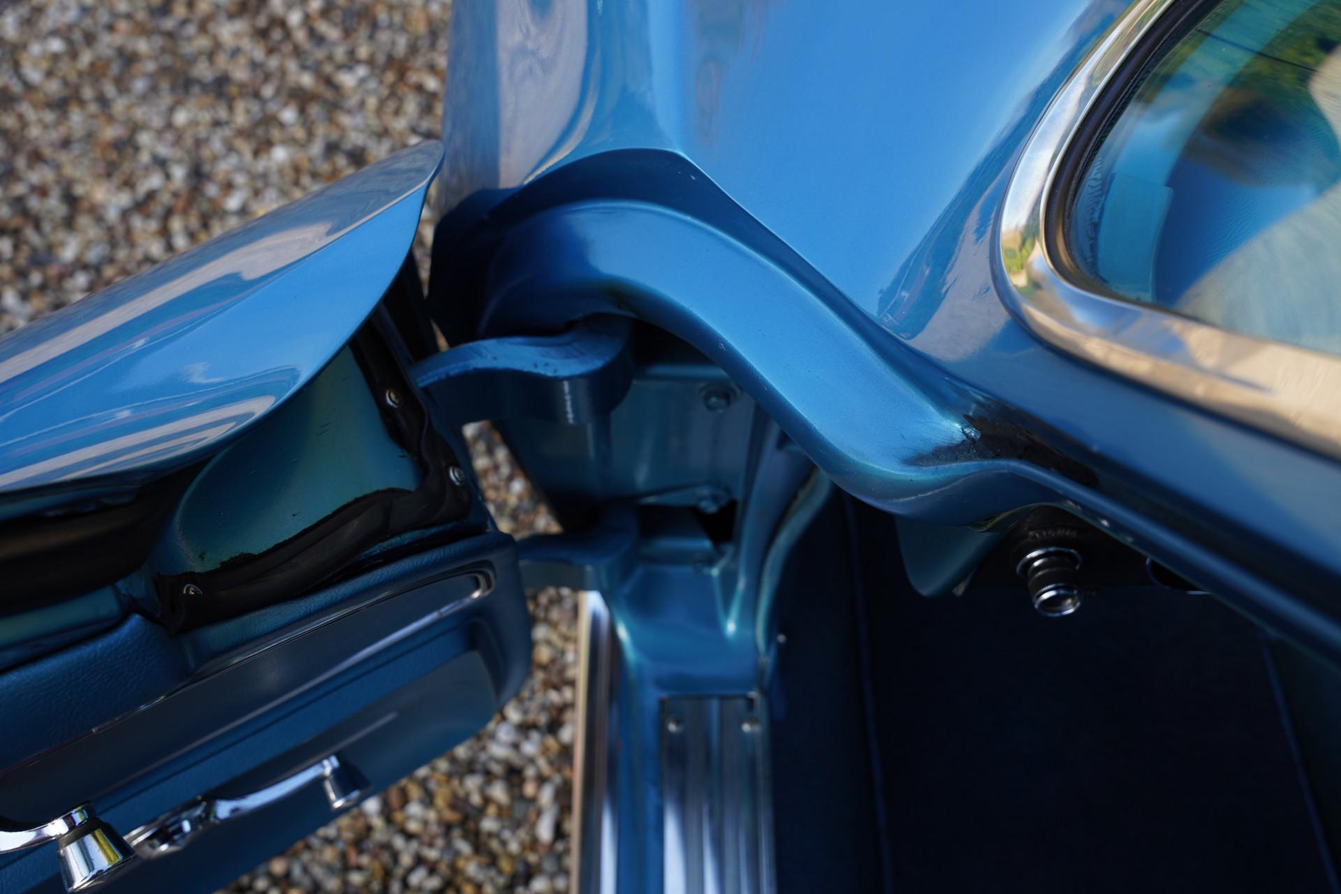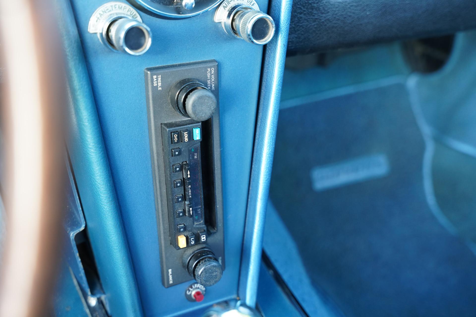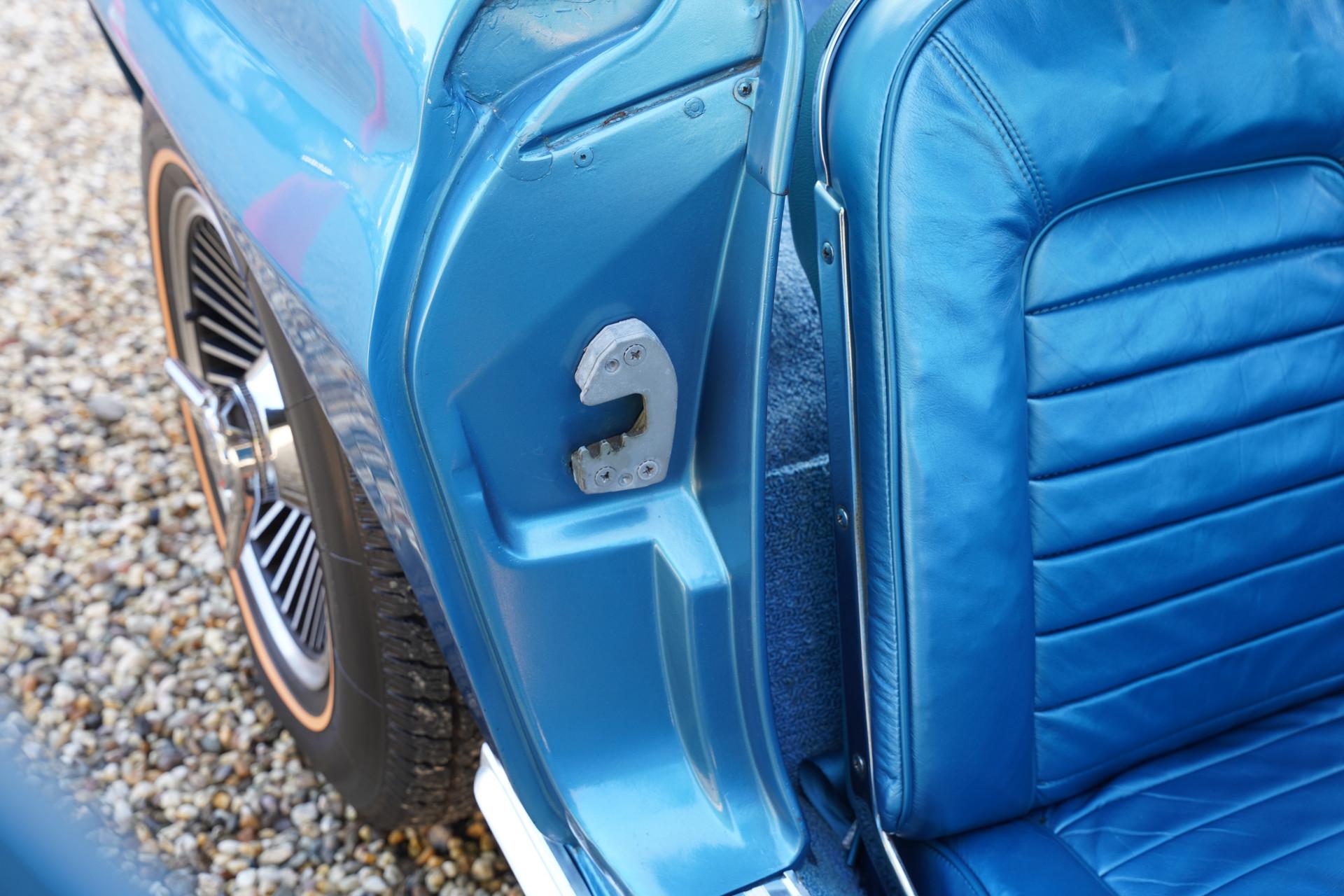 A characteristic features of this generation of Corvette's is the colourful interiors. They were either colour-coded or decked out in a big contrasting trim., This Nassau Blue Sting Ray the choice was clearly in favour of matching metallic blue interior trim. The blue on blue theme is to use one word fantastic! The contrast of a few bits of black and aluminium trim provide a great cabin space to be in, especially with that large wooden steering wheel and you right foot firmly in charge of huge 304 hp 327 V8.