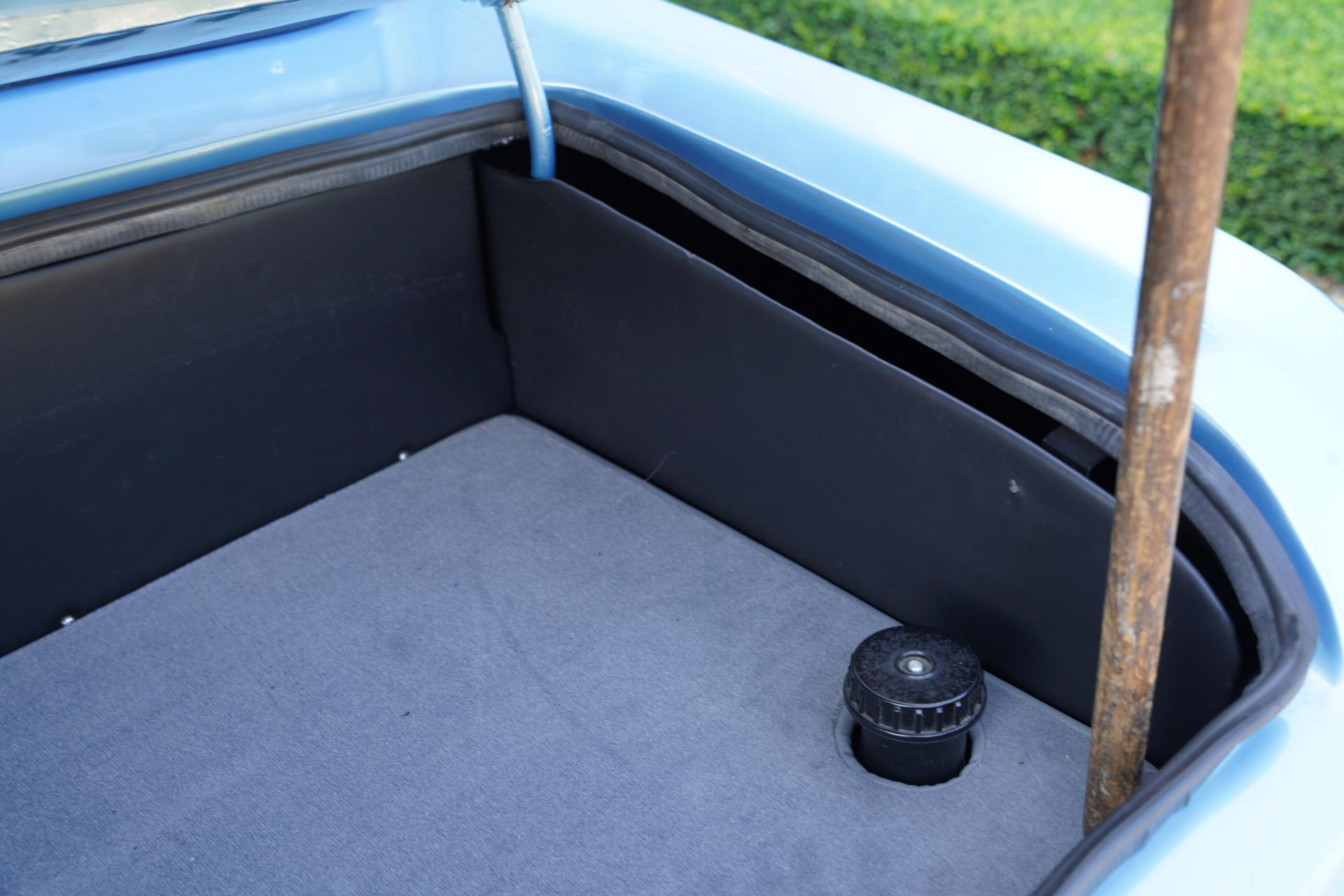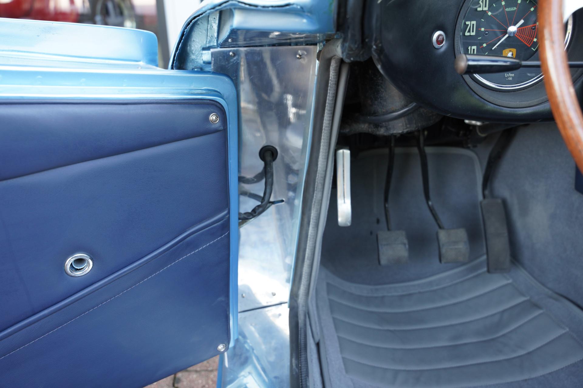 The color combination is nothing short of breathtaking: “Azzurro Marmolada” on the outside, paired with a luxurious blue leather interior. A timeless and elegant pairing that perfectly complements the character of the car. The bodywork displays excellent panel fitment, the paint has been professionally applied, and the convertible top fits beautifully.