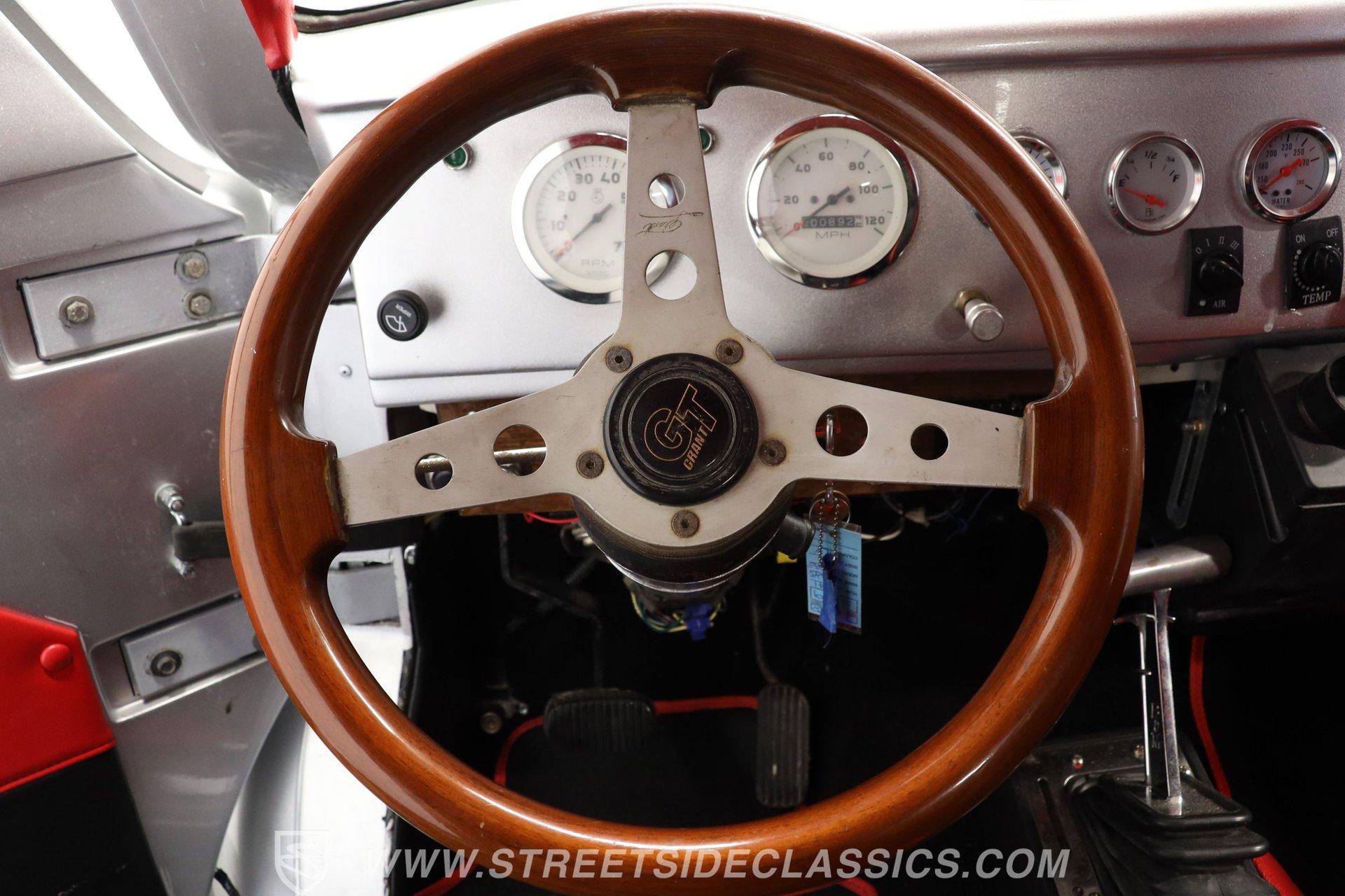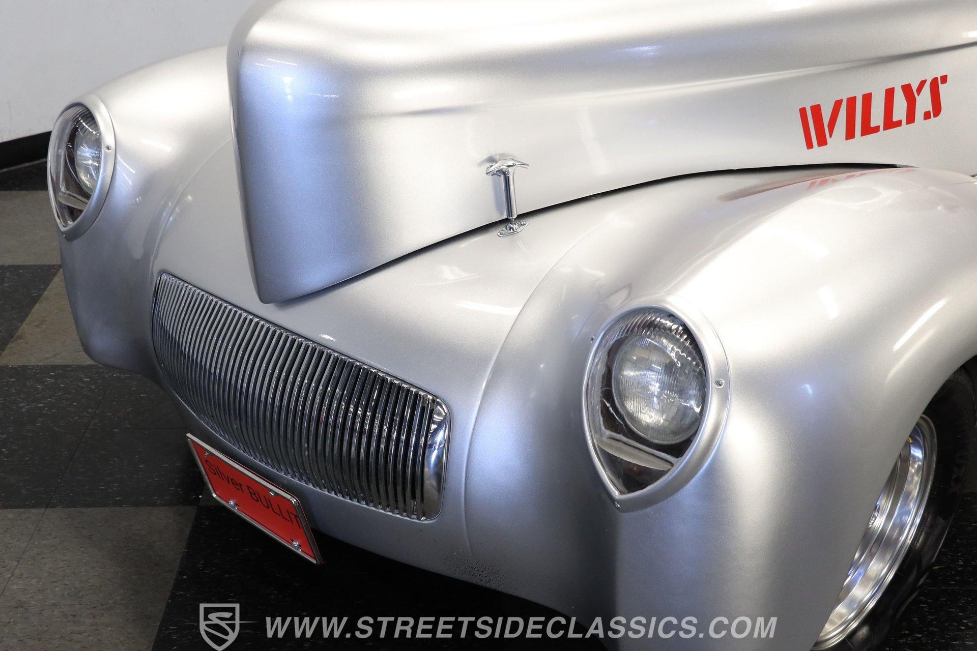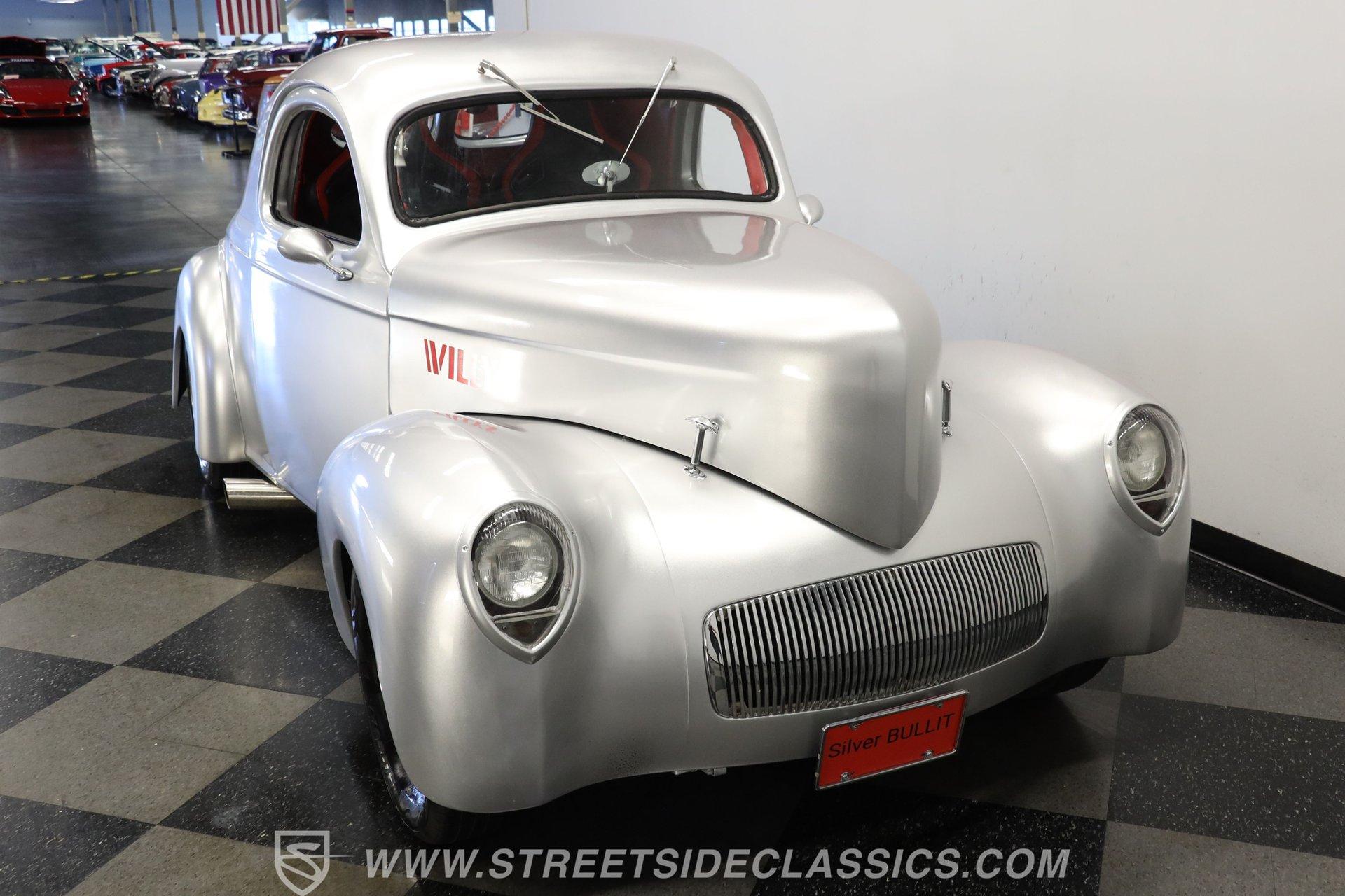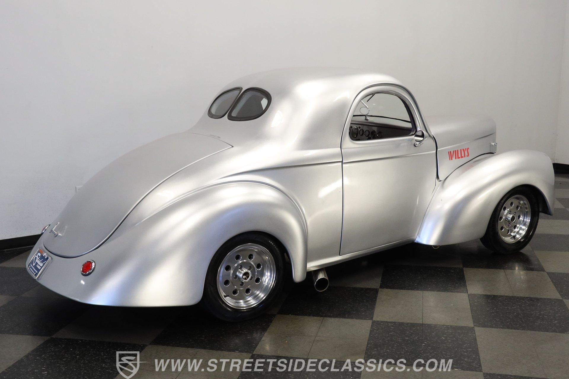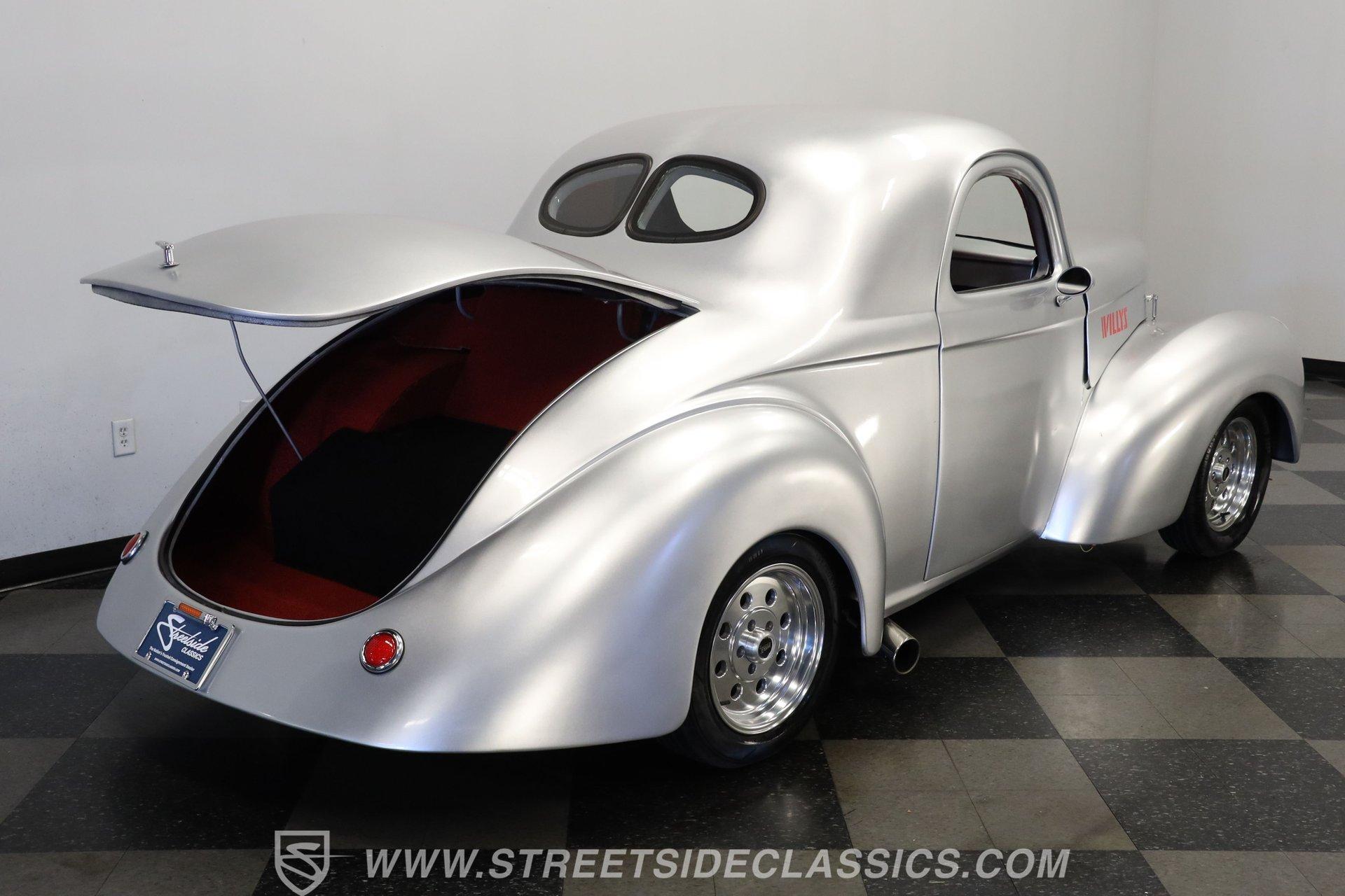 When Willys Overland Motors decided to modernize the appearance of its offerings as the '40s were approaching, it was largely a "Hail Mary" move intended to energize flagging sales. But the results were met with an enthusiastic response, and consumers were drawn to the much more futuristic look of the company's new product line. Little did they know that the move would also inspire legions of modded car enthusiasts, who embraced the new cars as the foundations of countless aftermarket projects. This 1941 Willys Coupe serves as testimony to the design skills of its manufacturer. Dressed in Silver Ice Metallic paint and outfitted with shaved door handles, it gives off an unmistakably aggressive aura, and, with its robust drivetrain pairing with an all-fiberglass body and fenders, it features an outstanding power-to-weight ratio to back it up. The interior echoes the same theme, sporting a pair of aftermarket black and red bucket seats with pronounced bolsters for extra support during spirited driving, with a B&M ratchet shifter in between them. The dash area has been painted to match the exterior, with a Grant woodgrain steering wheel added to the mix that creates a nice contrast to its silver background. A full collection of white-faced aftermarket gauges is on hand, and a JVC AM/FM/CD stereo sits just to the right of them to attend to your audio requests. All the components for the air conditioning system are in place, and it runs on modern refrigerant, so it likely won't take much to get it blowing nice and cold again. This coupe is equipped to perform. It features a 350-cubic-inch V8 that's fed by an Edelbrock 4-barrel carburetor perched on top of a high-rise manifold by the same manufacturer, and - with its weight-saving fiberglass body yielding an outstanding power-to-weight ratio - it doesn't take much imagination to picture the results. The addition of an HEI distributor and an aluminum radiator brings maximized spark and better temperature control. It rides on a Street Beast suspension with adjustable coilovers up front and air shocks in back, while power brakes with discs up front bring it to prompt, fade-resistant stops. HIGHLIGHTS 350-CUBIC-INCH V8 ENGINE 4-BARREL EDELBROCK CARBURETOR EDELBROCK HIGH-RISE MANIFOLD 3-SPEED AUTOMATIC TH350 TRANSMISSION DUAL SIDE-EXIT EXHAUSTS WITH GLASSPACK-STYLE MUFFLERS SHORTY HEADERS STREET BEAST CHASSIS WITH FRONT ADJUSTABLE COILOVERS REAR AIR SHOCKS POWER BRAKES, WITH DISCS IN FRONT 15" WELD RACING WHEELS FIBERGLASS BODY YIELDS OUTSTANDING POWER TO WEIGHT RATIO STRIKING SILVER ICE METALLIC PAINT BLACK AND RED VINYL UPHOLSTERY BUCKET SEATS AM/FM/CD STEREO In full possession of the look that has captivated aftermarket enthusiasts for ages, this 1941 Willys Coupe rides on a set of 15" Weld Racing wheels that are perfectly in keeping with its unabashedly aggressive appearance. This attention-getting cruiser is sure to stand out in any automotive crowd. Call today!