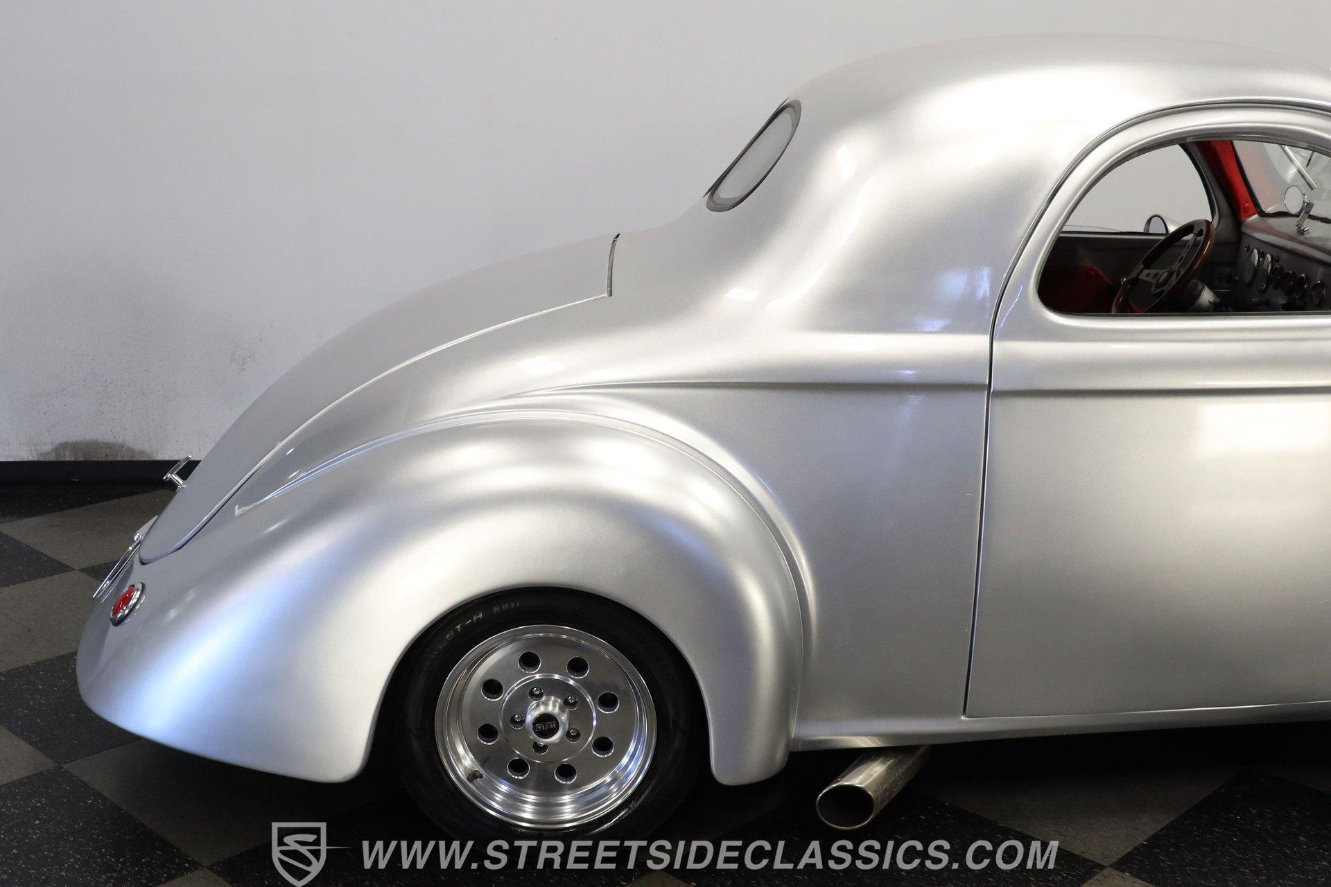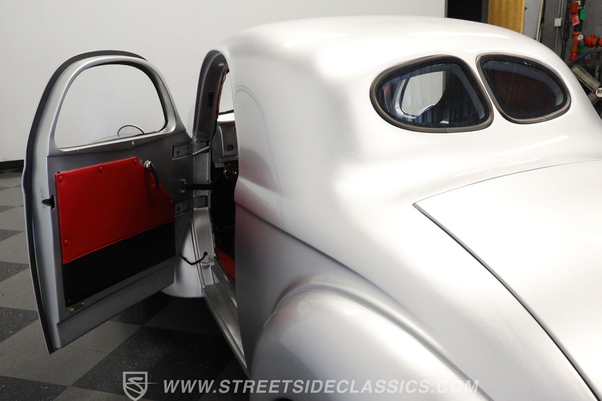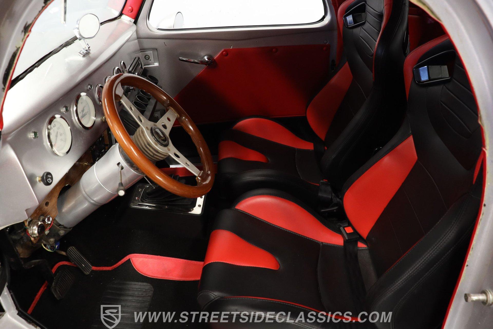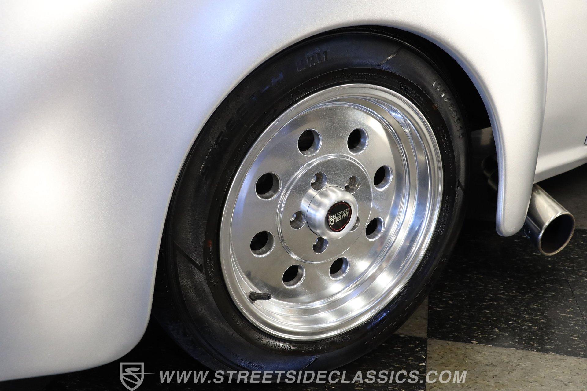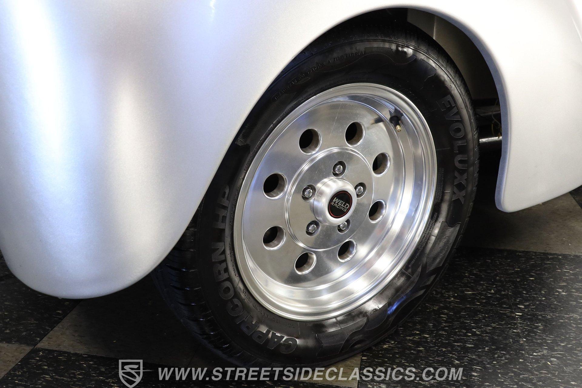 When Willys Overland Motors decided to modernize the appearance of its offerings as the '40s were approaching, it was largely a "Hail Mary" move intended to energize flagging sales. But the results were met with an enthusiastic response, and consumers were drawn to the much more futuristic look of the company's new product line. Little did they know that the move would also inspire legions of modded car enthusiasts, who embraced the new cars as the foundations of countless aftermarket projects. This 1941 Willys Coupe serves as testimony to the design skills of its manufacturer. Dressed in Silver Ice Metallic paint and outfitted with shaved door handles, it gives off an unmistakably aggressive aura, and, with its robust drivetrain pairing with an all-fiberglass body and fenders, it features an outstanding power-to-weight ratio to back it up. The interior echoes the same theme, sporting a pair of aftermarket black and red bucket seats with pronounced bolsters for extra support during spirited driving, with a B&M ratchet shifter in between them. The dash area has been painted to match the exterior, with a Grant woodgrain steering wheel added to the mix that creates a nice contrast to its silver background. A full collection of white-faced aftermarket gauges is on hand, and a JVC AM/FM/CD stereo sits just to the right of them to attend to your audio requests. All the components for the air conditioning system are in place, and it runs on modern refrigerant, so it likely won't take much to get it blowing nice and cold again. This coupe is equipped to perform. It features a 350-cubic-inch V8 that's fed by an Edelbrock 4-barrel carburetor perched on top of a high-rise manifold by the same manufacturer, and - with its weight-saving fiberglass body yielding an outstanding power-to-weight ratio - it doesn't take much imagination to picture the results. The addition of an HEI distributor and an aluminum radiator brings maximized spark and better temperature control. It rides on a Street Beast suspension with adjustable coilovers up front and air shocks in back, while power brakes with discs up front bring it to prompt, fade-resistant stops. HIGHLIGHTS 350-CUBIC-INCH V8 ENGINE 4-BARREL EDELBROCK CARBURETOR EDELBROCK HIGH-RISE MANIFOLD 3-SPEED AUTOMATIC TH350 TRANSMISSION DUAL SIDE-EXIT EXHAUSTS WITH GLASSPACK-STYLE MUFFLERS SHORTY HEADERS STREET BEAST CHASSIS WITH FRONT ADJUSTABLE COILOVERS REAR AIR SHOCKS POWER BRAKES, WITH DISCS IN FRONT 15" WELD RACING WHEELS FIBERGLASS BODY YIELDS OUTSTANDING POWER TO WEIGHT RATIO STRIKING SILVER ICE METALLIC PAINT BLACK AND RED VINYL UPHOLSTERY BUCKET SEATS AM/FM/CD STEREO In full possession of the look that has captivated aftermarket enthusiasts for ages, this 1941 Willys Coupe rides on a set of 15" Weld Racing wheels that are perfectly in keeping with its unabashedly aggressive appearance. This attention-getting cruiser is sure to stand out in any automotive crowd. Call today!
