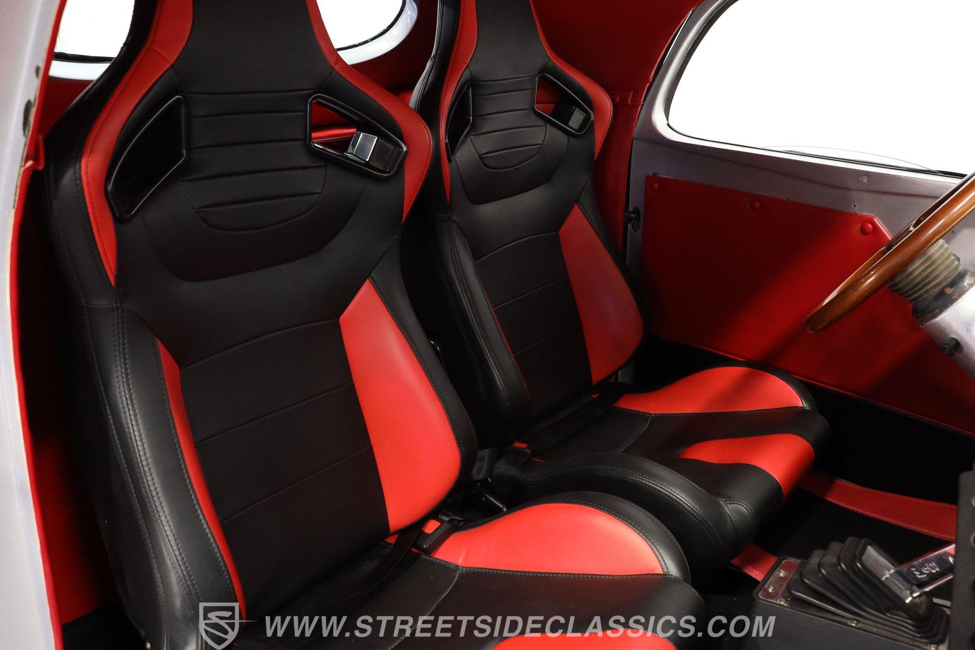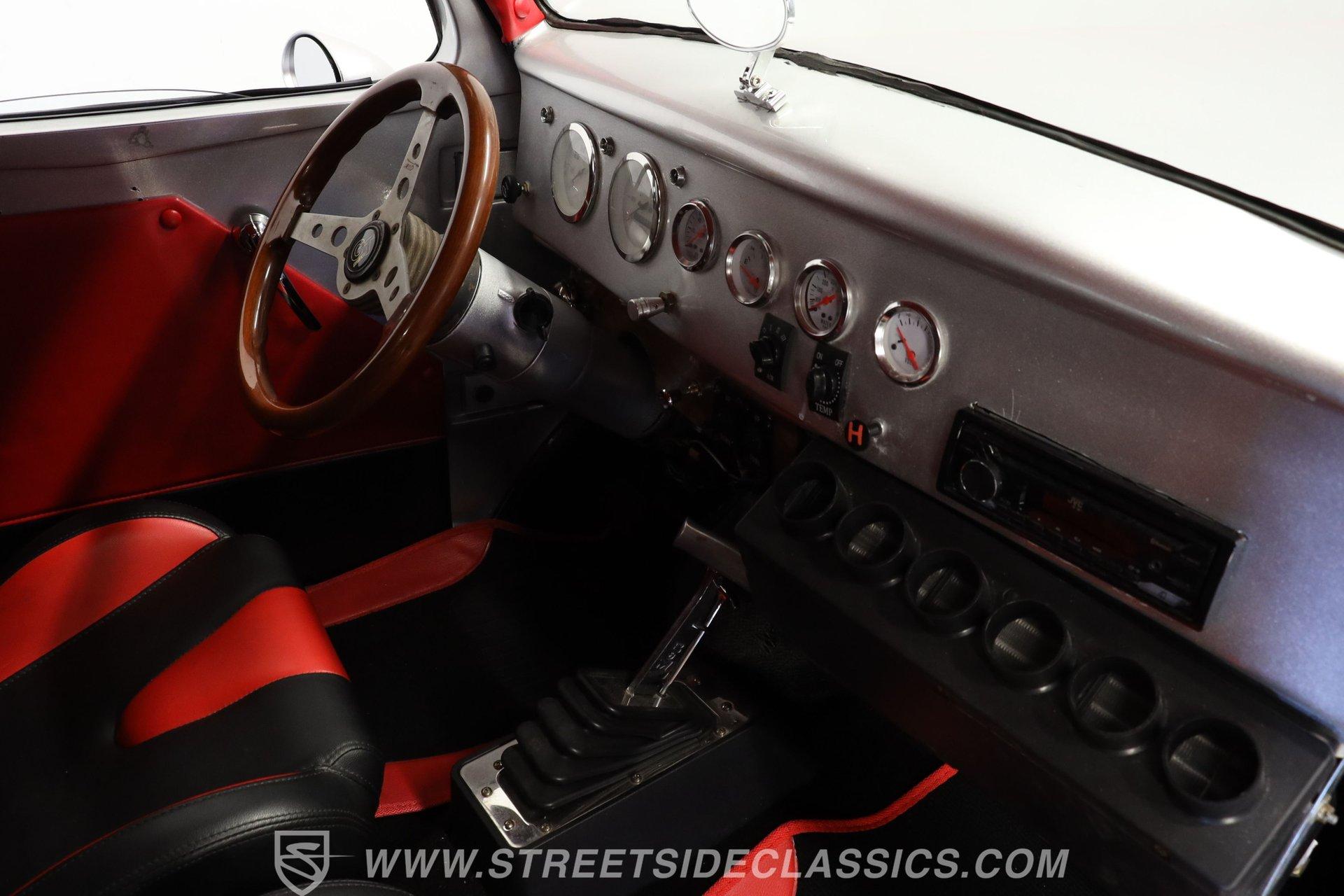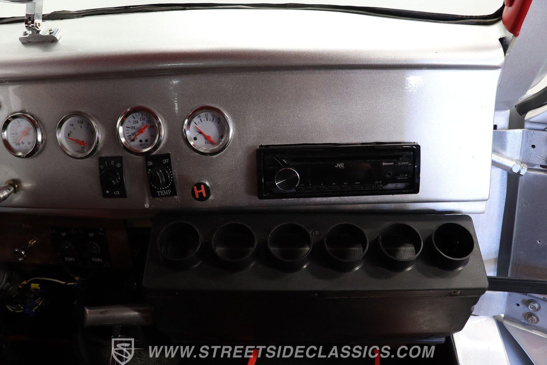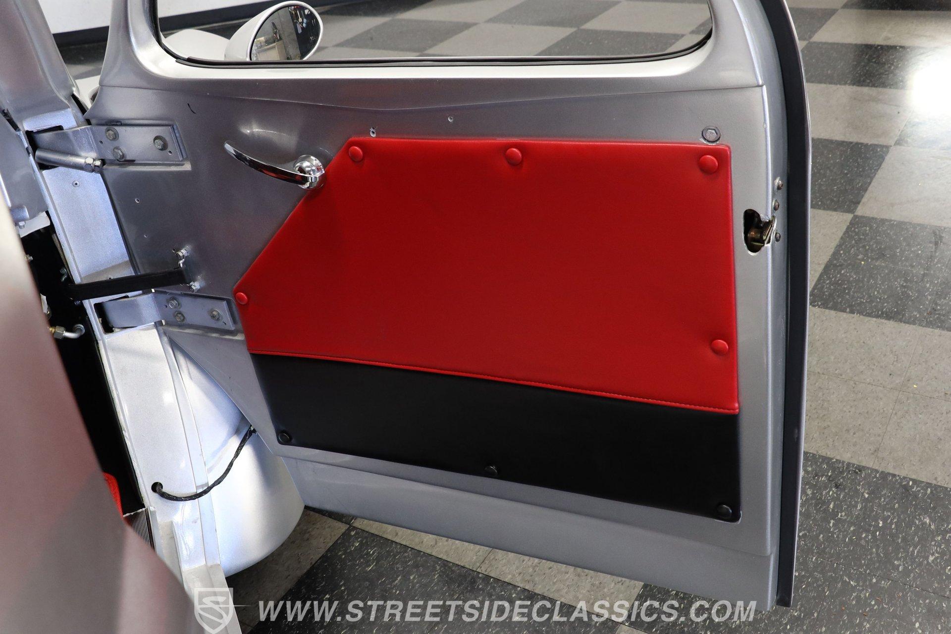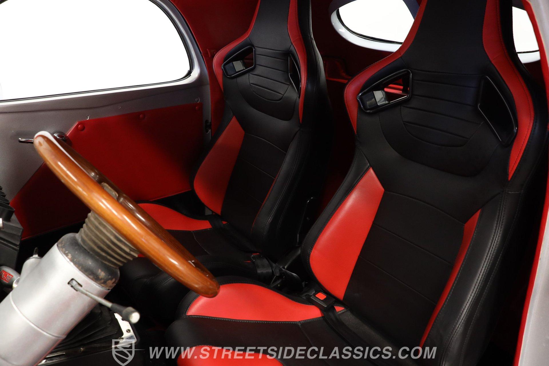 When Willys Overland Motors decided to modernize the appearance of its offerings as the '40s were approaching, it was largely a "Hail Mary" move intended to energize flagging sales. But the results were met with an enthusiastic response, and consumers were drawn to the much more futuristic look of the company's new product line. Little did they know that the move would also inspire legions of modded car enthusiasts, who embraced the new cars as the foundations of countless aftermarket projects. This 1941 Willys Coupe serves as testimony to the design skills of its manufacturer. Dressed in Silver Ice Metallic paint and outfitted with shaved door handles, it gives off an unmistakably aggressive aura, and, with its robust drivetrain pairing with an all-fiberglass body and fenders, it features an outstanding power-to-weight ratio to back it up. The interior echoes the same theme, sporting a pair of aftermarket black and red bucket seats with pronounced bolsters for extra support during spirited driving, with a B&M ratchet shifter in between them. The dash area has been painted to match the exterior, with a Grant woodgrain steering wheel added to the mix that creates a nice contrast to its silver background. A full collection of white-faced aftermarket gauges is on hand, and a JVC AM/FM/CD stereo sits just to the right of them to attend to your audio requests. All the components for the air conditioning system are in place, and it runs on modern refrigerant, so it likely won't take much to get it blowing nice and cold again. This coupe is equipped to perform. It features a 350-cubic-inch V8 that's fed by an Edelbrock 4-barrel carburetor perched on top of a high-rise manifold by the same manufacturer, and - with its weight-saving fiberglass body yielding an outstanding power-to-weight ratio - it doesn't take much imagination to picture the results. The addition of an HEI distributor and an aluminum radiator brings maximized spark and better temperature control. It rides on a Street Beast suspension with adjustable coilovers up front and air shocks in back, while power brakes with discs up front bring it to prompt, fade-resistant stops. HIGHLIGHTS 350-CUBIC-INCH V8 ENGINE 4-BARREL EDELBROCK CARBURETOR EDELBROCK HIGH-RISE MANIFOLD 3-SPEED AUTOMATIC TH350 TRANSMISSION DUAL SIDE-EXIT EXHAUSTS WITH GLASSPACK-STYLE MUFFLERS SHORTY HEADERS STREET BEAST CHASSIS WITH FRONT ADJUSTABLE COILOVERS REAR AIR SHOCKS POWER BRAKES, WITH DISCS IN FRONT 15" WELD RACING WHEELS FIBERGLASS BODY YIELDS OUTSTANDING POWER TO WEIGHT RATIO STRIKING SILVER ICE METALLIC PAINT BLACK AND RED VINYL UPHOLSTERY BUCKET SEATS AM/FM/CD STEREO In full possession of the look that has captivated aftermarket enthusiasts for ages, this 1941 Willys Coupe rides on a set of 15" Weld Racing wheels that are perfectly in keeping with its unabashedly aggressive appearance. This attention-getting cruiser is sure to stand out in any automotive crowd. Call today!