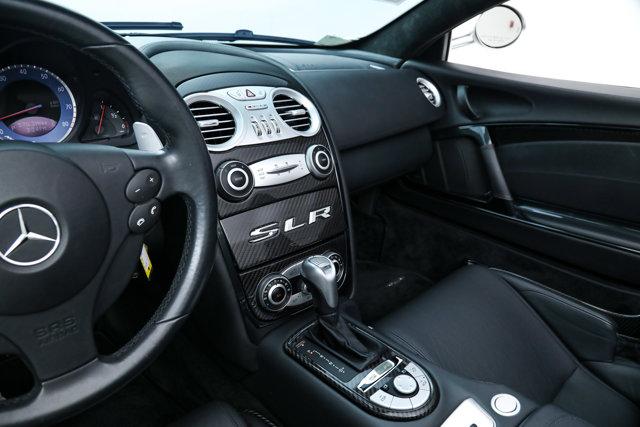 Mercedes-Benz SLR McLaren RoadsterFerrari Maserati Alfa Romeo of Fort Lauderdale is thrilled to present this gorgeous Mercedes-Benz SLR McLaren Roadster. Finished in Crystal Laurite Silver over Black Silver Arrow Leather, the SLR McLaren Roadster has barely been driven by two previous owners. Recently service by our technicians, it is in impeccable condition throughout. No longer in production, this is a rare opportunity to own one of the most outrageous exotic cars ever produced, complete with all the comforts of a Mercedes-Benz.Factory Options:- Black Silver Arrow Leather Upholstery ($9,950)- Black Carbon Fiber Trim ($1,550)- Red Brake Calipers ($850)The SLR McLaren Roadster is built as standard with Power Adjustable Carbon Fiber Sport Seats, Automatic Transmission, Aluminum Trim, Multi-Function Sport Steering Wheel with Shift Paddles, Dual-Zone Climate Control, Bose Premium Sound System with AudioPilot Technology, Bluetooth, Bi-Xenon Headlamps, ESP, TPMS, and more.Developed jointly with McLaren Automotive, the Mercedes-Benz SLR Roadster is the open-top variant of the SLR, and is motivated by the same hand-built AMG 5.5L supercharged V8. The amazing engine outputs 617HP and catapults the SLR to well over 200 MPH, while huge Carbon-Ceramic Brakes and a sophisticated Electronic Stability Program ensure proper road manners. The front-mid-engine placement aids handling and much of the body is constructed from lightweight carbon fiber. The long-hood and short deck offer classic proportions in a futuristic body unlike anything else on the road. The SLR Roadster is in a league of its own.If you are in the market for a pristine example of an SLR McLaren Roadster, please call or email us today.