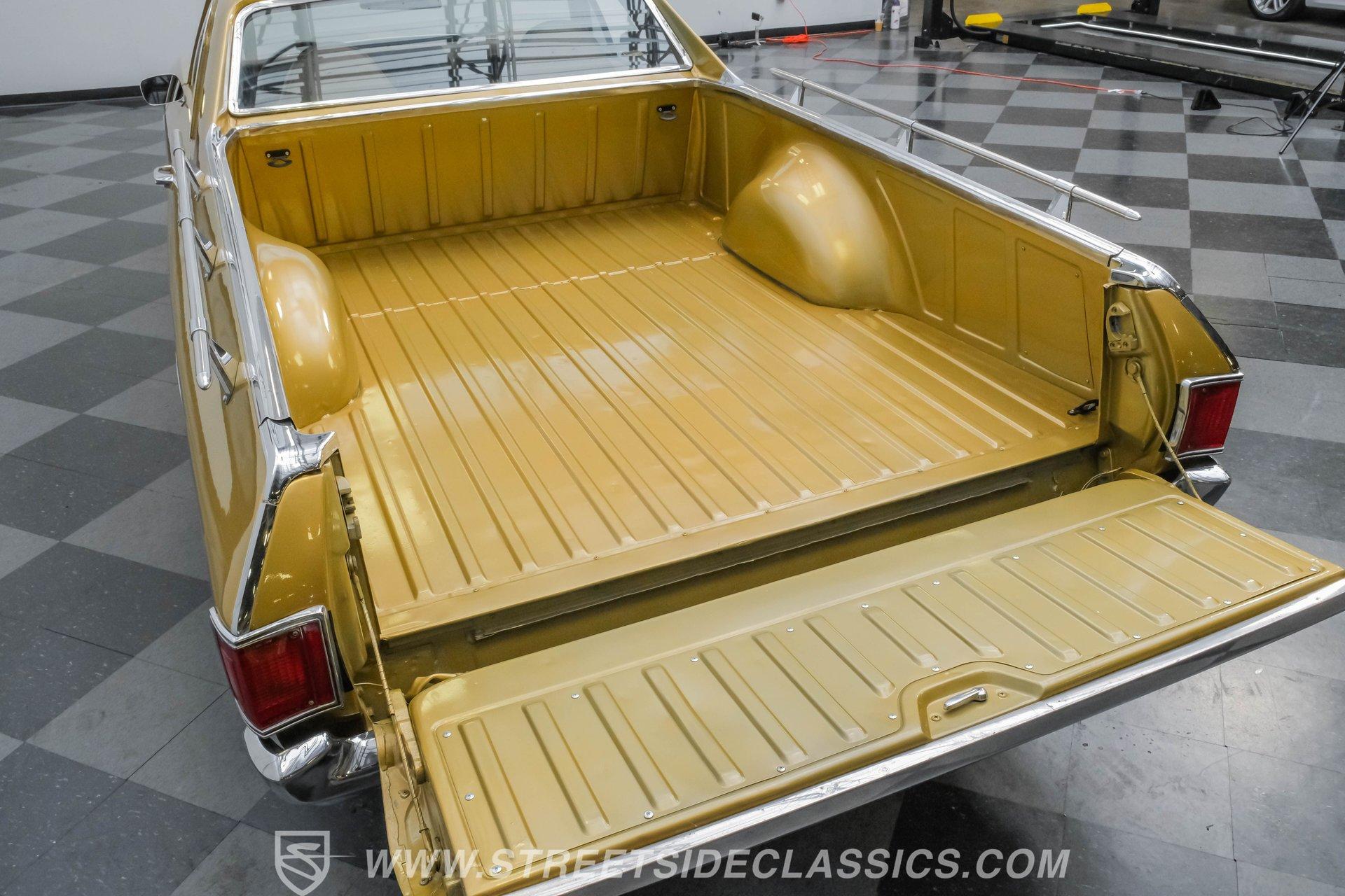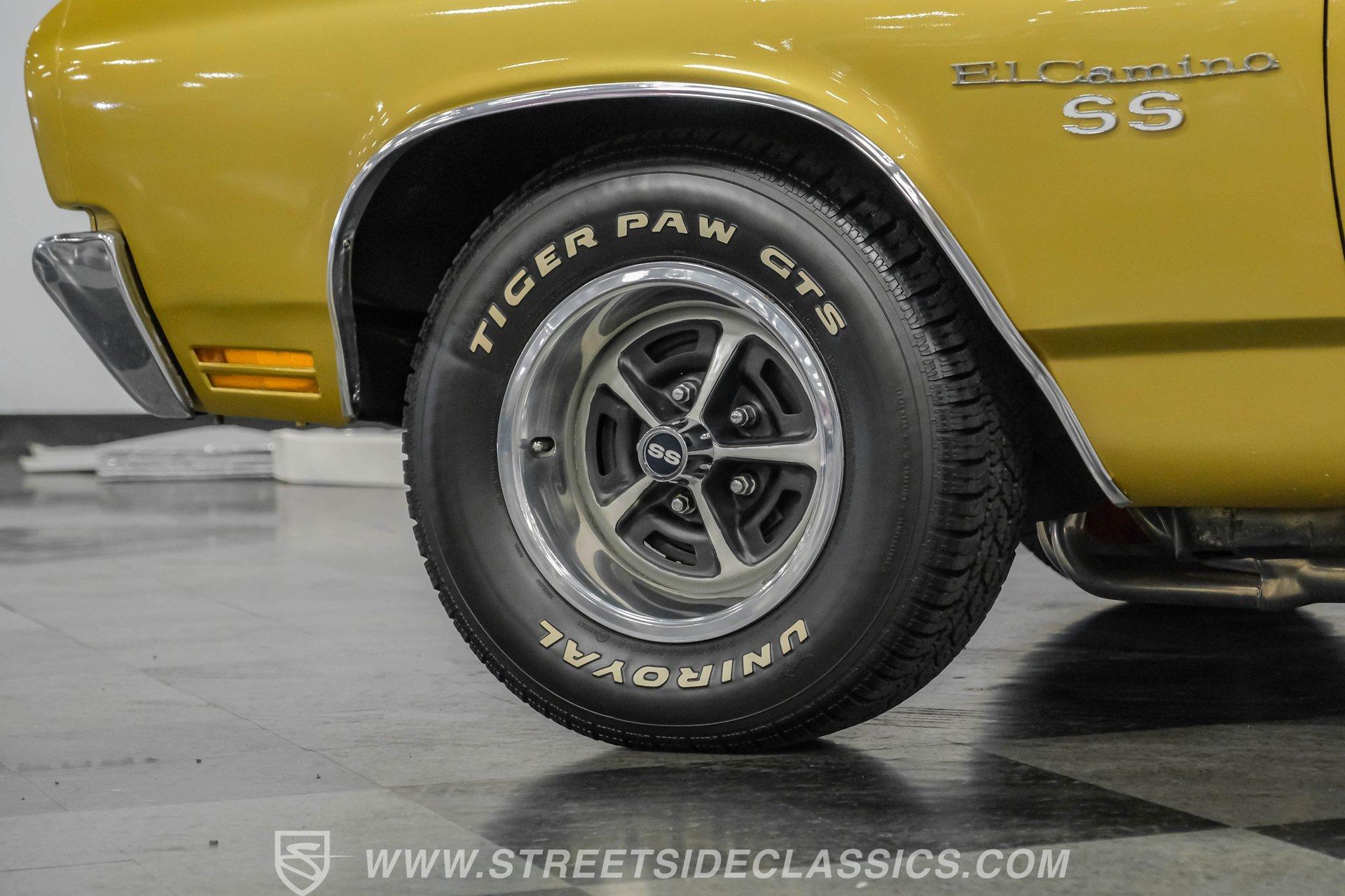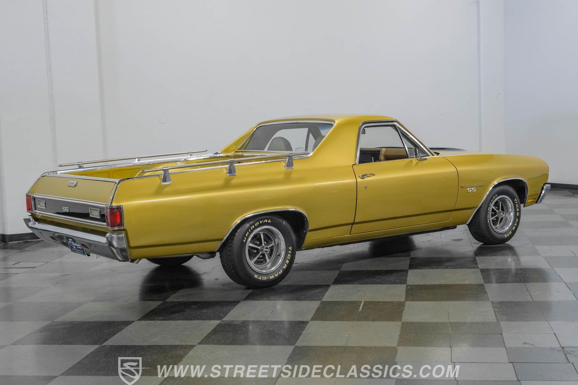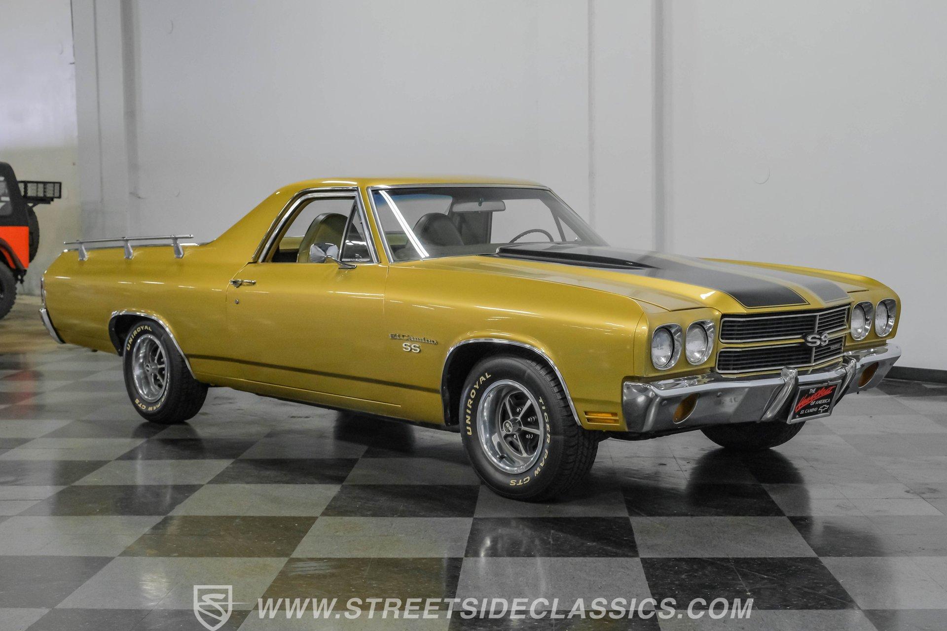 There is something truly special about a classic vehicle that tells a story beyond just transportation. Owning such a car means becoming part of that legacy, a statement of passion and appreciation for automotive history. This 1970 Chevrolet El Camino SS Tribute embodies that spirit perfectly with its bold design and tribute details that turn heads wherever it goes. If you're looking for a classic that combines muscle car attitude with practical utility, this El Camino might just be the perfect fit for your collection. Step inside and experience a unique blend of comfort and style. The interior features cloth and vinyl bucket seats that swivel, adding a quirky touch to its classic charm. The dash includes factory gauges and a tilt steering column with the original SS Chevrolet steering wheel. A floor shifter with a console enhances the driving experience, while factory air conditioning ensures comfort on warmer days. The AM/FM cassette player is still on display in the dash, completing the vintage vibe inside this ride. Under the hood, this El Camino boasts a numbers-matching 307 V8 engine paired with a smooth-shifting TH350 3-speed automatic transmission. Power steering and power brakes, including disc brakes up front and drums in the rear, provide a responsive and controlled ride. The drivetrain runs well, delivering classic muscle car performance, with air shocks in the rear suspension helping to maintain a smooth ride. Highlights Numbers Matching 307 V8 Engine TH350 3-Speed Automatic Transmission Power Steering Factory Air Conditioning Power Front Disc Brakes Cloth And Vinyl Swivel Bucket Seats Tilt Steering Column Champagne Gold Repaint (Factory Correct Color) With Black Painted Stripes Chrome Bed Rails Rear Air Shocks Financing Available Vehicle Protection Plans Available Worldwide Shipping This 1970 Chevrolet El Camino SS Tribute offers a compelling mix of classic style, solid performance, and unique interior features that make it a standout choice for enthusiasts and collectors alike. Don't miss the chance to own a piece of automotive history. Call, email, or come visit our showroom today!