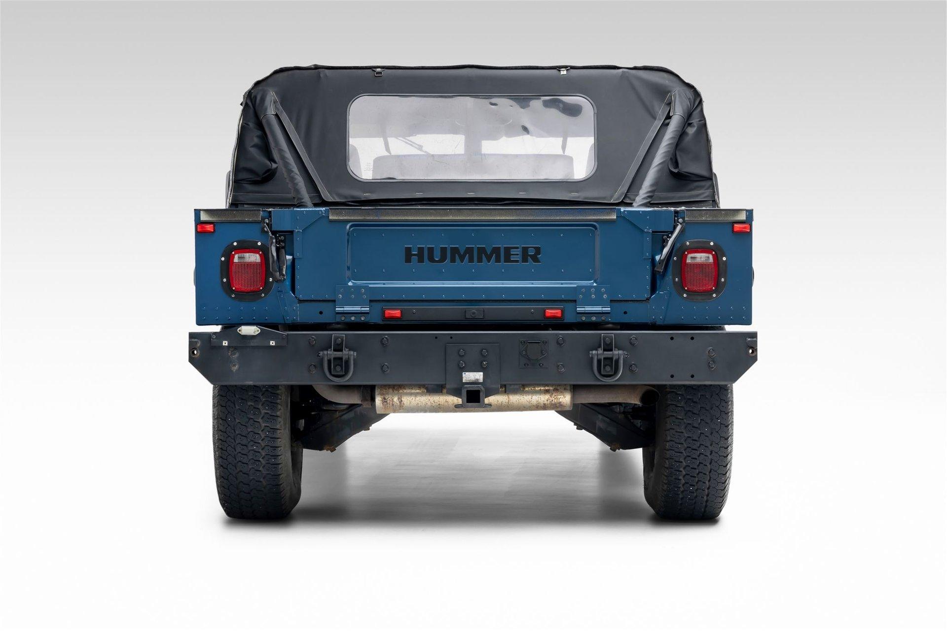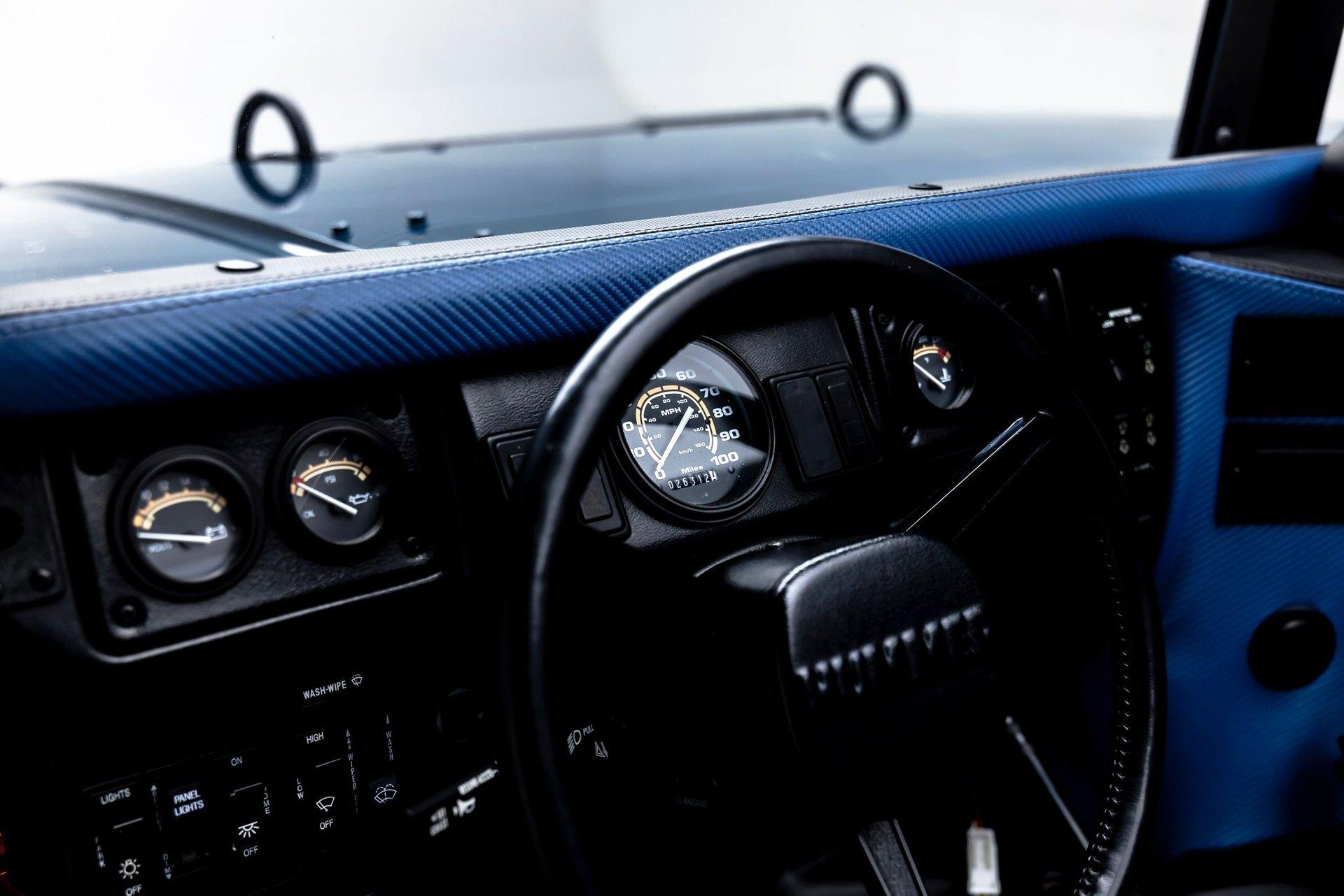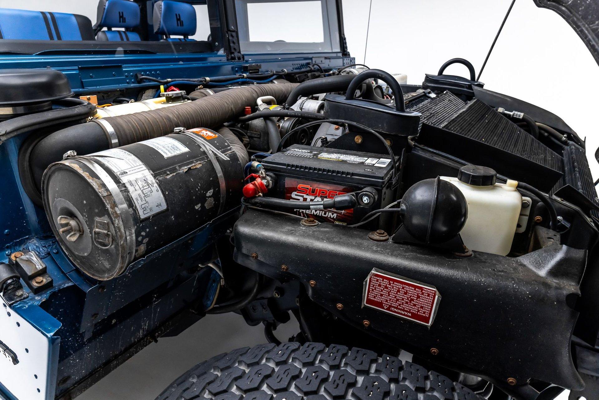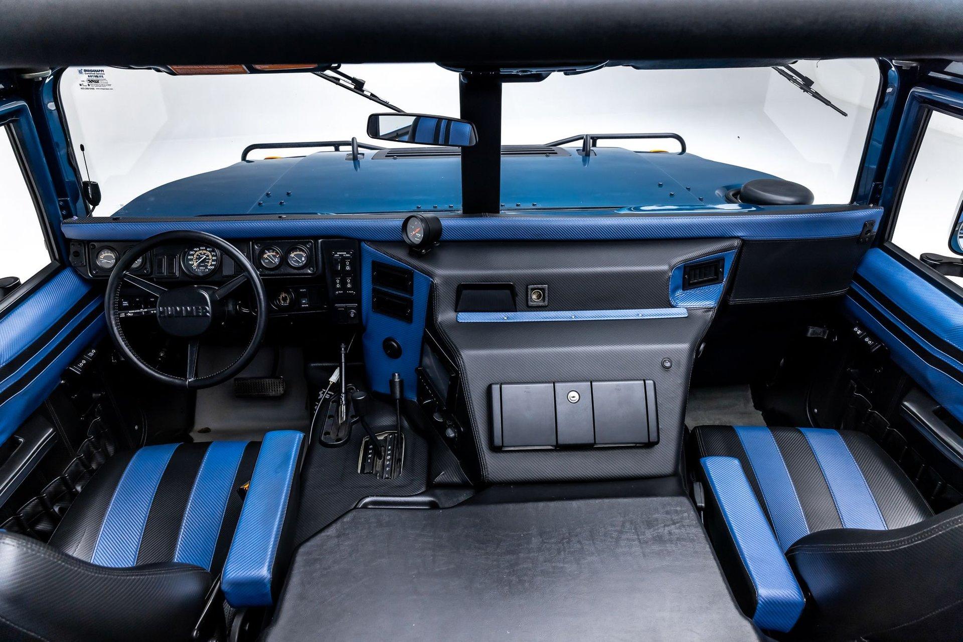 First introduced in 1985 as the High Mobility Multipurpose Wheeled Vehicle (HMMWV), the original Hummer served exclusively in military roles before its civilian debut in 1992. Much of its battlefield engineering carried over unchanged, giving the truck a unique tactical character. It could ford two and a half feet of water, push through deep snow, climb loose sand, and work confidently across rugged terrain. Protected driveline components were routed through reinforced tubes to protect against impacts. The result was a road-legal vehicle with commanding presence and genuine go-anywhere capability—bold, distinctive, and unmistakably shaped by its military origins. This 1995 AM General Hummer H1 is one of just 260 open four-passenger examples with full doors produced that year. It is believed to be the only example finished in the metallic blue shade with paint meter readings indicating original paint. According to its clean CARFAX Vehicle History Report, it was first registered in Calgary, Alberta, Canada, in November 1995. Remarkably, it remained with its original owner for 27 years before it passed to another Calgary resident in February 2022. From there, the car was imported to the U.S. in November 2024 with only its third steward and current owner. It sports 20-inch Off Road TIS body color-matched wheels with Central Tire Inflation System (CTIS) shod with large 35x12.5-inch Toyo Open Country tires. CTIS allows the driver to inflate or deflate the H1’s tires on the move, adjusting pressures to suit changing terrain and dramatically improving mobility and comfort both off-road and on. The interior has been upgraded with custom two-tone black-and-blue upholstery, with additional seating for two added between the two original rear seats. Additionally, the truck was upgraded with an impressive Pioneer Bluetooth stereo and an Alpine amplifier, or with the option to use the two Alpine wireless headphones when more discretion is required. More than 30 years since its launch, the Hummer H1 remains one of the most recognizable vehicles produced. They have been praised for their military-inspired design, go-anywhere capabilities, and ease of customization. As a result, finding a nicely presented, low-mileage example such as this H1 Four-Door Soft-Top Pickup with less than 29,000 miles is becoming an increasingly difficult task, making this the ideal example that is sure to draw attention both on and off the road.