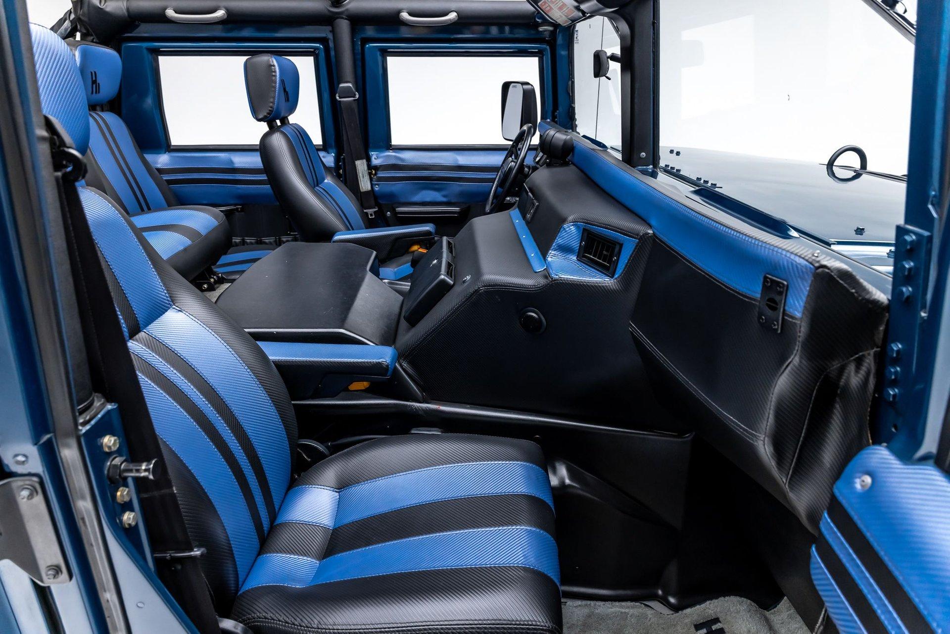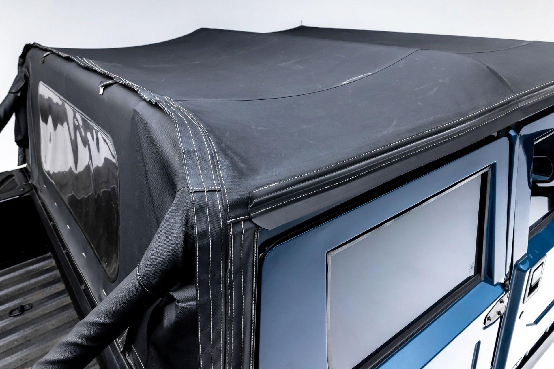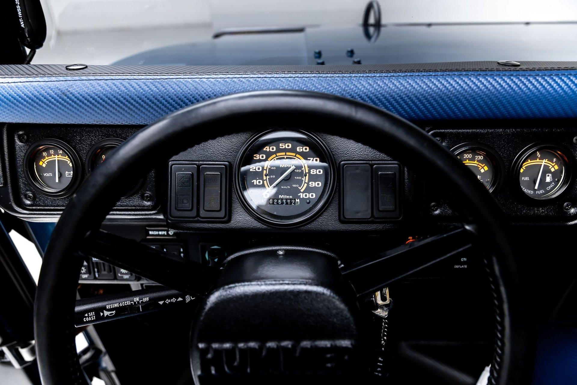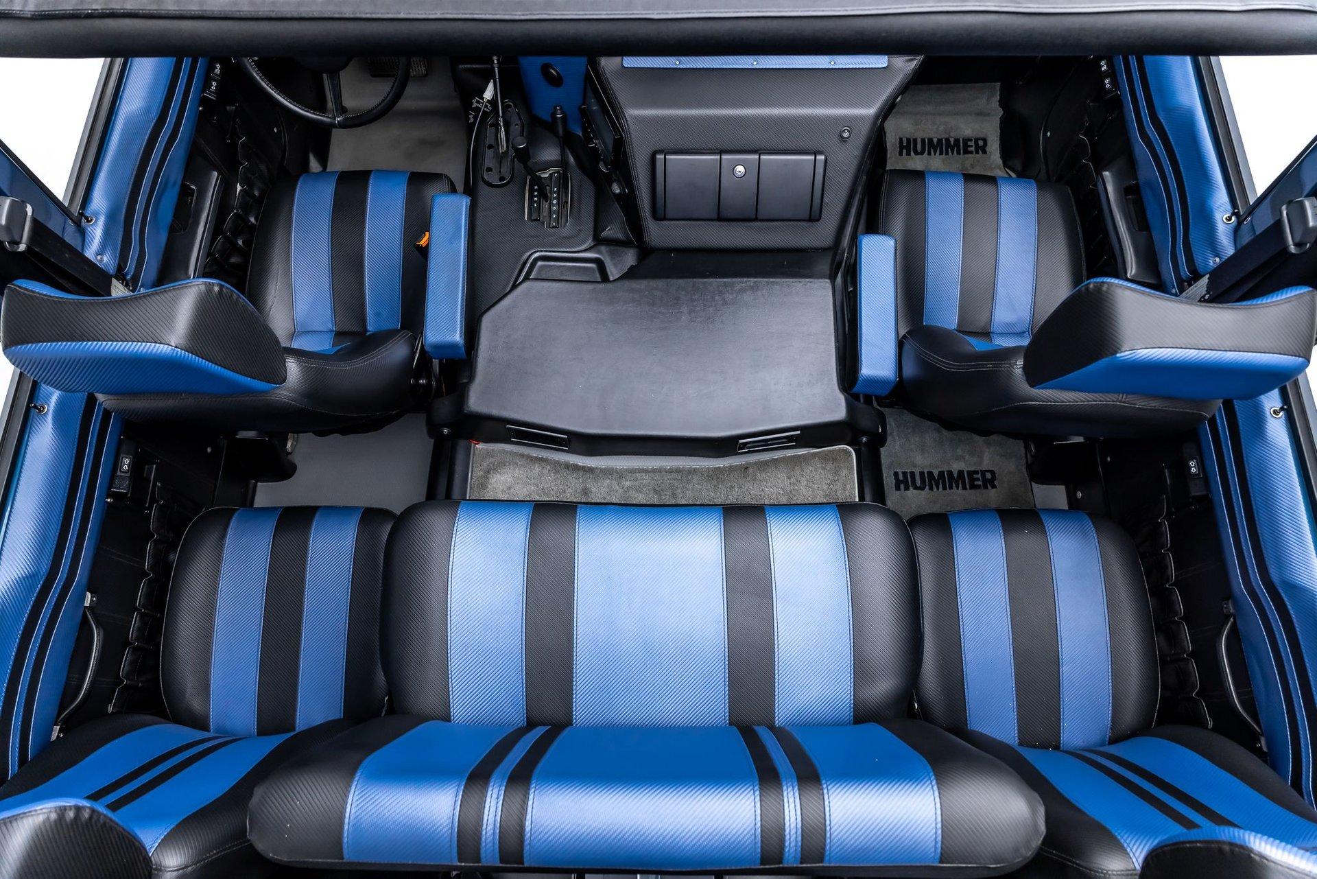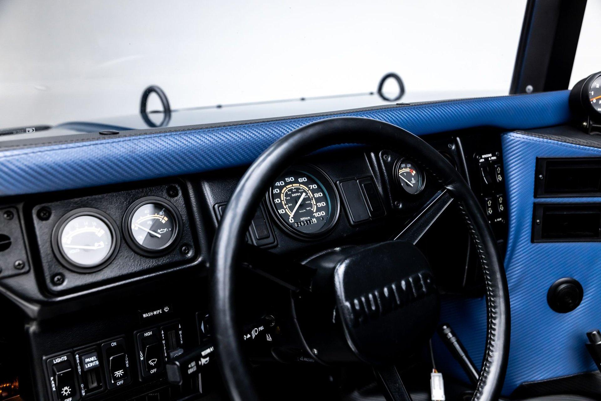 First introduced in 1985 as the High Mobility Multipurpose Wheeled Vehicle (HMMWV), the original Hummer served exclusively in military roles before its civilian debut in 1992. Much of its battlefield engineering carried over unchanged, giving the truck a unique tactical character. It could ford two and a half feet of water, push through deep snow, climb loose sand, and work confidently across rugged terrain. Protected driveline components were routed through reinforced tubes to protect against impacts. The result was a road-legal vehicle with commanding presence and genuine go-anywhere capability—bold, distinctive, and unmistakably shaped by its military origins. This 1995 AM General Hummer H1 is one of just 260 open four-passenger examples with full doors produced that year. It is believed to be the only example finished in the metallic blue shade with paint meter readings indicating original paint. According to its clean CARFAX Vehicle History Report, it was first registered in Calgary, Alberta, Canada, in November 1995. Remarkably, it remained with its original owner for 27 years before it passed to another Calgary resident in February 2022. From there, the car was imported to the U.S. in November 2024 with only its third steward and current owner. It sports 20-inch Off Road TIS body color-matched wheels with Central Tire Inflation System (CTIS) shod with large 35x12.5-inch Toyo Open Country tires. CTIS allows the driver to inflate or deflate the H1’s tires on the move, adjusting pressures to suit changing terrain and dramatically improving mobility and comfort both off-road and on. The interior has been upgraded with custom two-tone black-and-blue upholstery, with additional seating for two added between the two original rear seats. Additionally, the truck was upgraded with an impressive Pioneer Bluetooth stereo and an Alpine amplifier, or with the option to use the two Alpine wireless headphones when more discretion is required. More than 30 years since its launch, the Hummer H1 remains one of the most recognizable vehicles produced. They have been praised for their military-inspired design, go-anywhere capabilities, and ease of customization. As a result, finding a nicely presented, low-mileage example such as this H1 Four-Door Soft-Top Pickup with less than 29,000 miles is becoming an increasingly difficult task, making this the ideal example that is sure to draw attention both on and off the road.