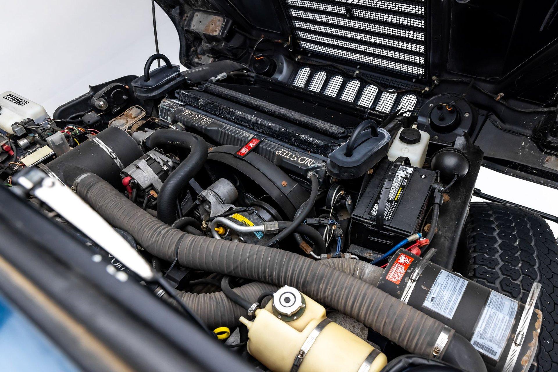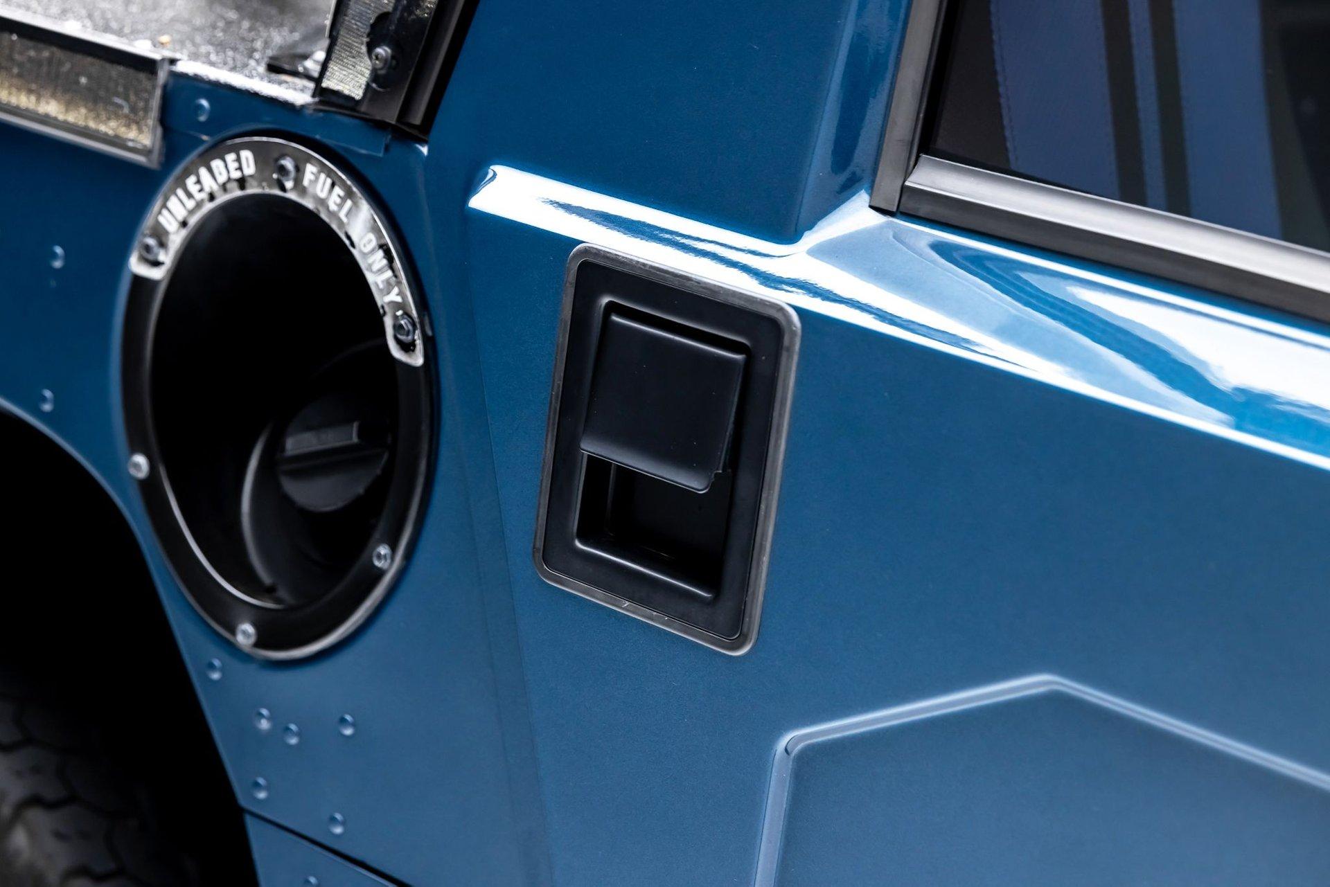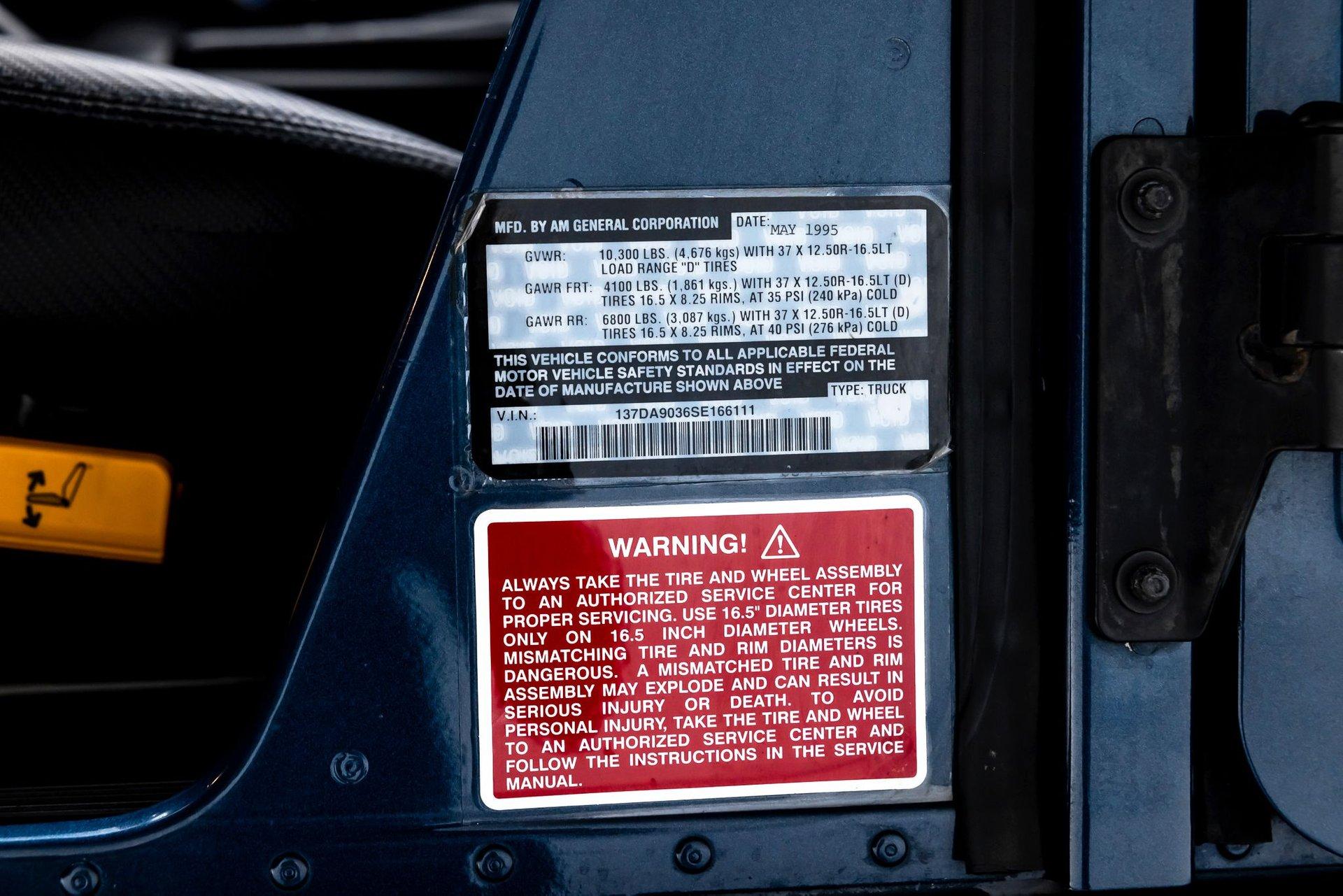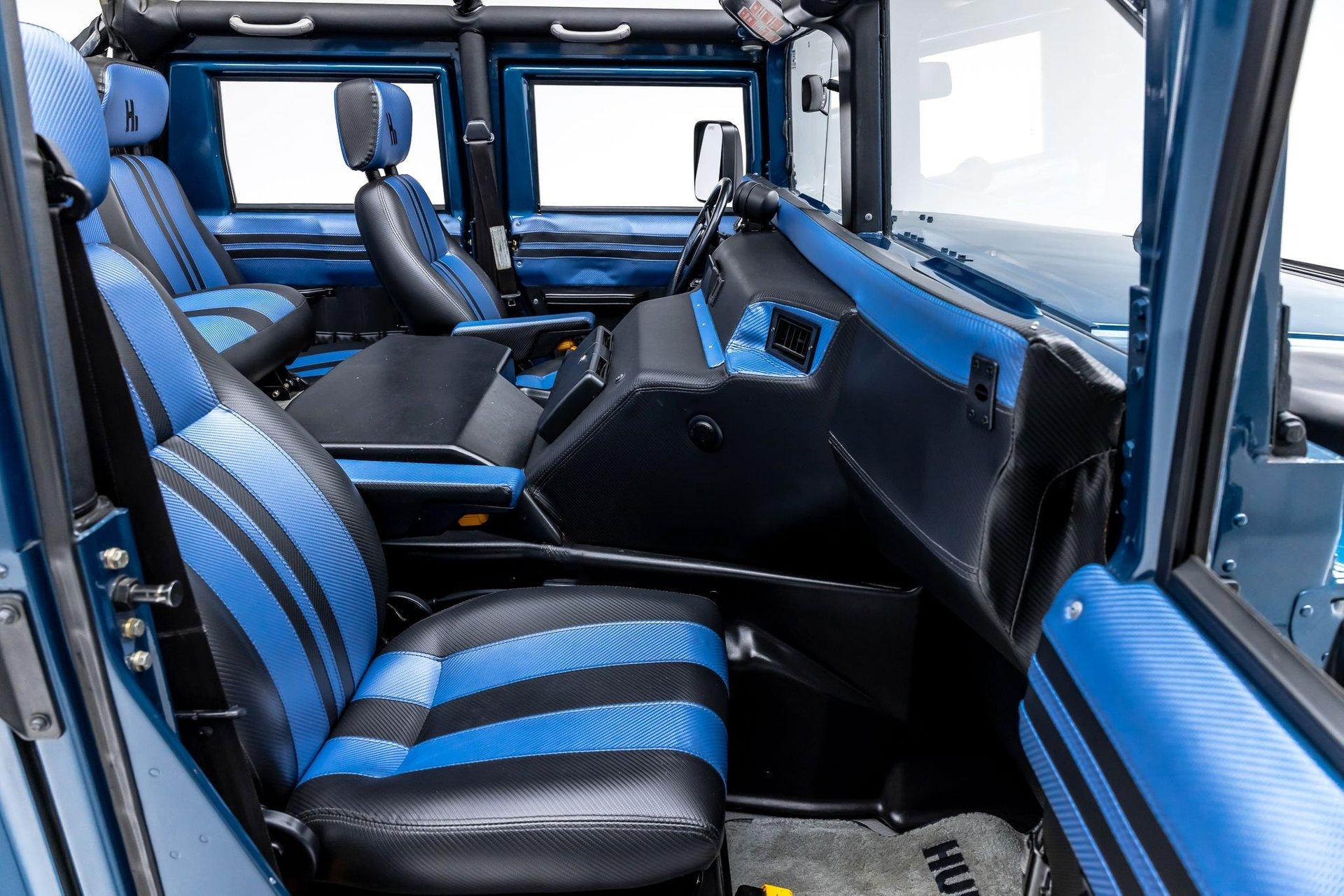 First introduced in 1985 as the High Mobility Multipurpose Wheeled Vehicle (HMMWV), the original Hummer served exclusively in military roles before its civilian debut in 1992. Much of its battlefield engineering carried over unchanged, giving the truck a unique tactical character. It could ford two and a half feet of water, push through deep snow, climb loose sand, and work confidently across rugged terrain. Protected driveline components were routed through reinforced tubes to protect against impacts. The result was a road-legal vehicle with commanding presence and genuine go-anywhere capability—bold, distinctive, and unmistakably shaped by its military origins. This 1995 AM General Hummer H1 is one of just 260 open four-passenger examples with full doors produced that year. It is believed to be the only example finished in the metallic blue shade with paint meter readings indicating original paint. According to its clean CARFAX Vehicle History Report, it was first registered in Calgary, Alberta, Canada, in November 1995. Remarkably, it remained with its original owner for 27 years before it passed to another Calgary resident in February 2022. From there, the car was imported to the U.S. in November 2024 with only its third steward and current owner. It sports 20-inch Off Road TIS body color-matched wheels with Central Tire Inflation System (CTIS) shod with large 35x12.5-inch Toyo Open Country tires. CTIS allows the driver to inflate or deflate the H1’s tires on the move, adjusting pressures to suit changing terrain and dramatically improving mobility and comfort both off-road and on. The interior has been upgraded with custom two-tone black-and-blue upholstery, with additional seating for two added between the two original rear seats. Additionally, the truck was upgraded with an impressive Pioneer Bluetooth stereo and an Alpine amplifier, or with the option to use the two Alpine wireless headphones when more discretion is required. More than 30 years since its launch, the Hummer H1 remains one of the most recognizable vehicles produced. They have been praised for their military-inspired design, go-anywhere capabilities, and ease of customization. As a result, finding a nicely presented, low-mileage example such as this H1 Four-Door Soft-Top Pickup with less than 29,000 miles is becoming an increasingly difficult task, making this the ideal example that is sure to draw attention both on and off the road.