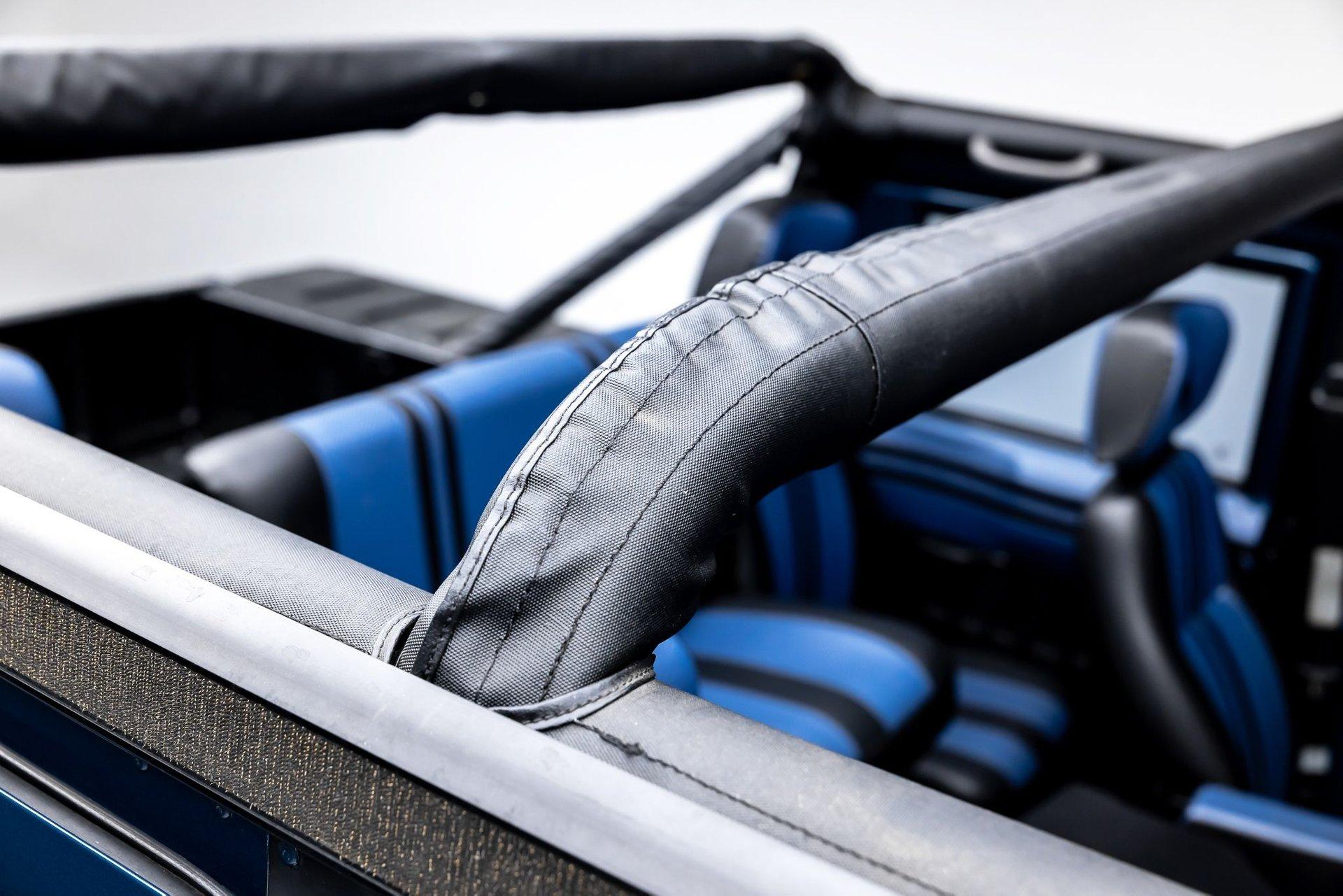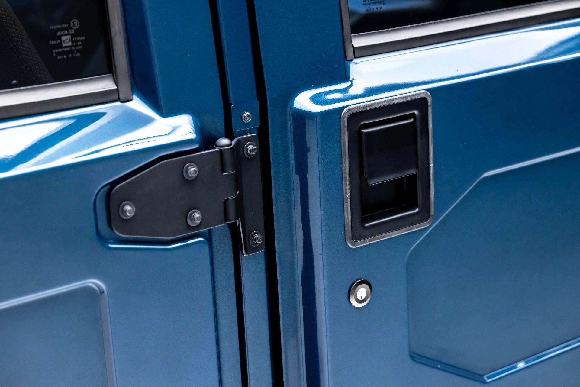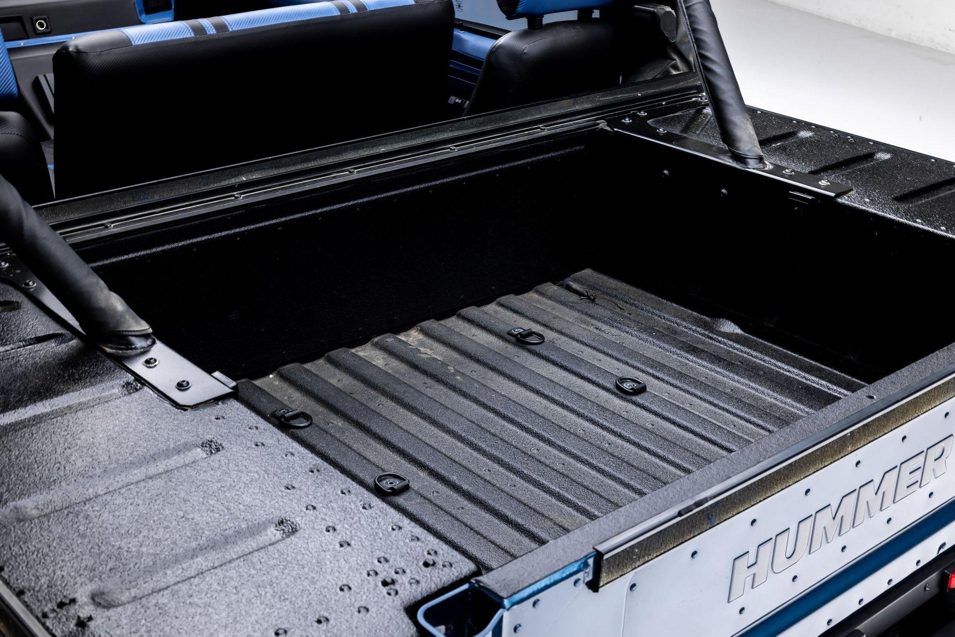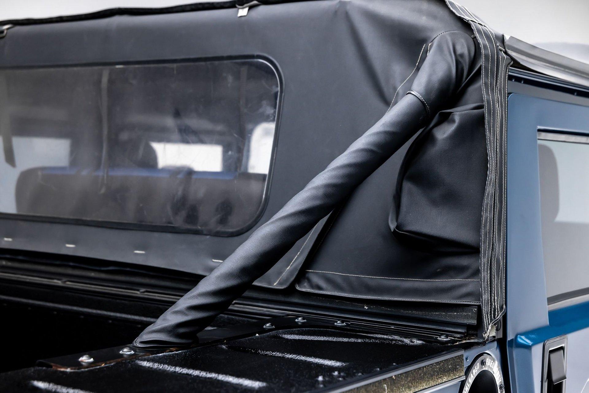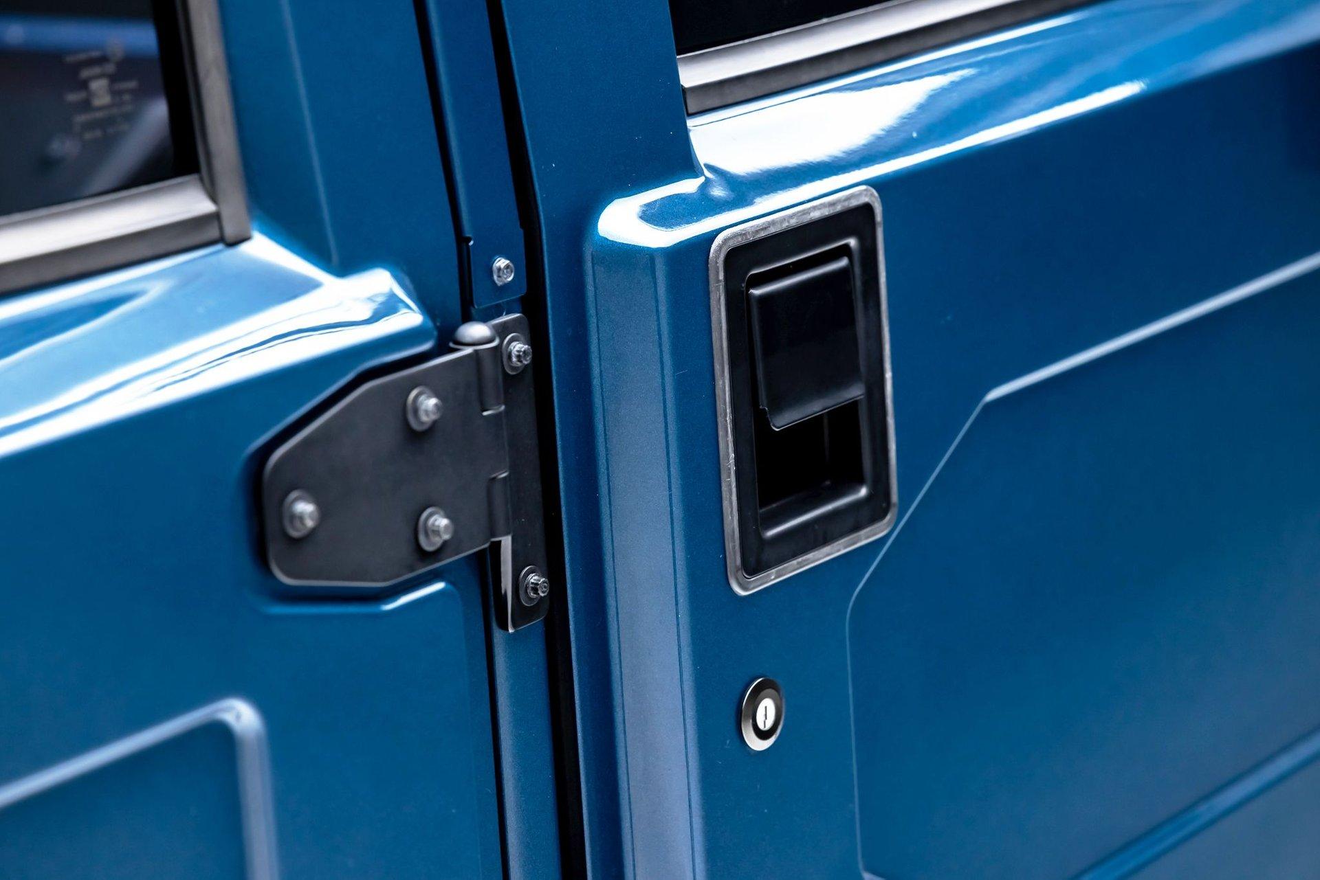 First introduced in 1985 as the High Mobility Multipurpose Wheeled Vehicle (HMMWV), the original Hummer served exclusively in military roles before its civilian debut in 1992. Much of its battlefield engineering carried over unchanged, giving the truck a unique tactical character. It could ford two and a half feet of water, push through deep snow, climb loose sand, and work confidently across rugged terrain. Protected driveline components were routed through reinforced tubes to protect against impacts. The result was a road-legal vehicle with commanding presence and genuine go-anywhere capability—bold, distinctive, and unmistakably shaped by its military origins. This 1995 AM General Hummer H1 is one of just 260 open four-passenger examples with full doors produced that year. It is believed to be the only example finished in the metallic blue shade with paint meter readings indicating original paint. According to its clean CARFAX Vehicle History Report, it was first registered in Calgary, Alberta, Canada, in November 1995. Remarkably, it remained with its original owner for 27 years before it passed to another Calgary resident in February 2022. From there, the car was imported to the U.S. in November 2024 with only its third steward and current owner. It sports 20-inch Off Road TIS body color-matched wheels with Central Tire Inflation System (CTIS) shod with large 35x12.5-inch Toyo Open Country tires. CTIS allows the driver to inflate or deflate the H1’s tires on the move, adjusting pressures to suit changing terrain and dramatically improving mobility and comfort both off-road and on. The interior has been upgraded with custom two-tone black-and-blue upholstery, with additional seating for two added between the two original rear seats. Additionally, the truck was upgraded with an impressive Pioneer Bluetooth stereo and an Alpine amplifier, or with the option to use the two Alpine wireless headphones when more discretion is required. More than 30 years since its launch, the Hummer H1 remains one of the most recognizable vehicles produced. They have been praised for their military-inspired design, go-anywhere capabilities, and ease of customization. As a result, finding a nicely presented, low-mileage example such as this H1 Four-Door Soft-Top Pickup with less than 29,000 miles is becoming an increasingly difficult task, making this the ideal example that is sure to draw attention both on and off the road.