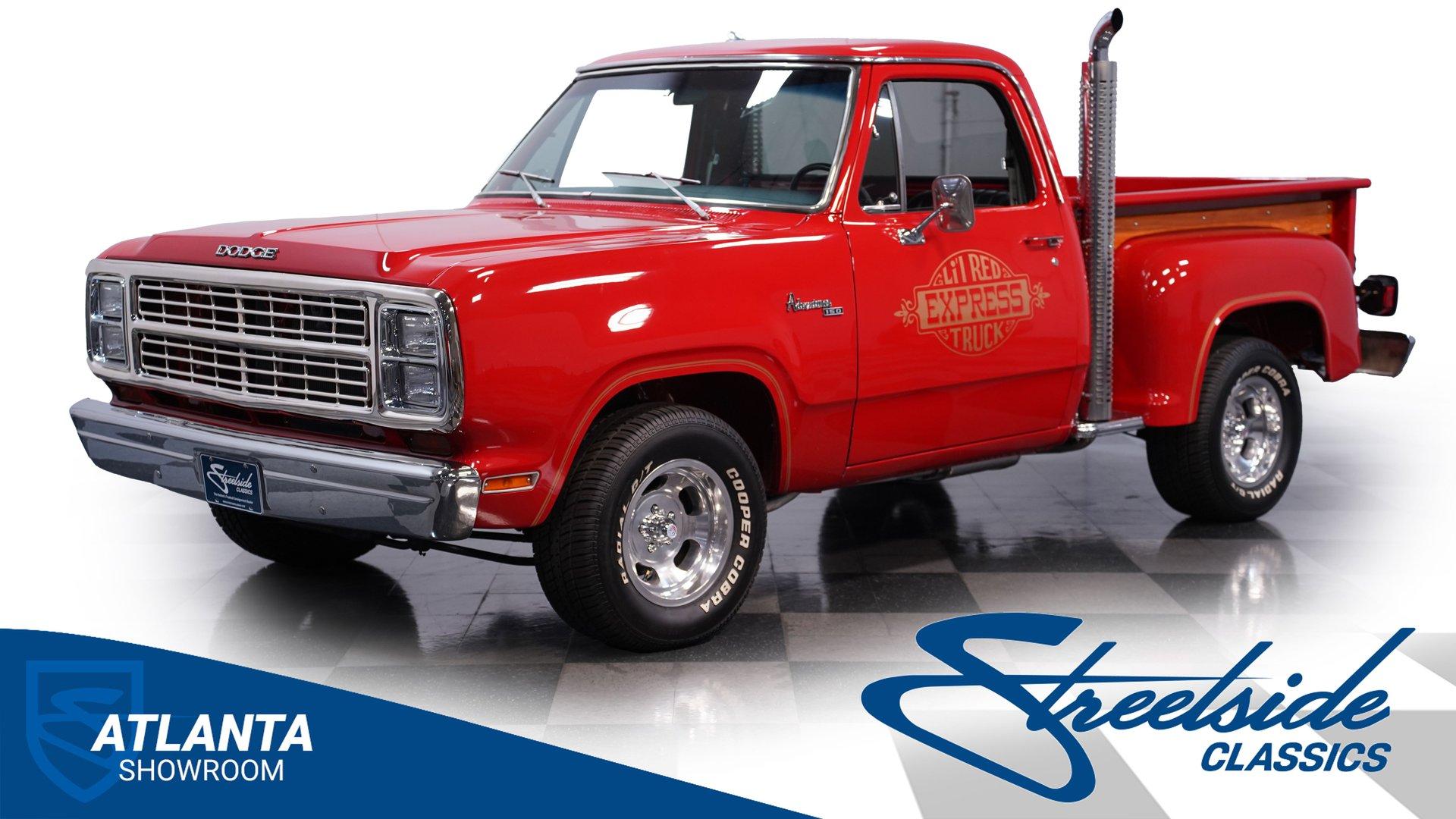 The 1979 Dodge Lil Red Express Adventurer D150 holds a special place in automotive lore as the fastest American-made vehicle from 0 to 100 mph as tested by Car and Driver in 1978. A meticulous restoration has brought this classic truck back to its former glory. The bed floor, as well as the distinctive side trim and tailgate wood is finished beautifully with glossy coats of varnish, highlighting the craftsmanship and attention to detail that went into its revival. The Medium Canyon Red paint was laid down over an arrow-straight body with mirror gloss finish. The door graphics are authentic in appearance; however, they have been artfully painted and clear coated to duplicate the original factory decals and are smooth to touch – just an example of the thought and care that went into the restoration of this very special truck. The period-correct 15-inch U.S. 5-slot wheels, shod with 275/60R15 Cooper Cobra Radial G/T tires, underscore the truck's muscular appearance. Inside, the black bucket seats with a folding armrest offer a comfortable ride. The truck is equipped with power steering and power brakes, as well as an ungraded Sanyo AM/FM/cassette radio with Dual door mounted speakers provide cruising music. This particular model's drivability is affirmed by its smooth-running 360 V8 engine equipped with an Edelbrock intake topped with a Holley carburetor. The engine is backed by a robust A727 Torqueflite automatic transmission ensures that the performance matches the aggressive styling of the vertical exhaust stacks and the iconic red paintwork. The dual exhaust is fitted with rumbling Danomax mufflers for the perfect nostalgic sound. HIGHLIGHTS: 360 V8 Engine 3-Speed Automatic A727 Torqueflite Transmission Full Repaint in the Truck's Signature Red Color Black Vinyl Bucket Seats Power Steering and Power Brakes Dual Exhaust with the Model's Signature Vertical Stacks 15-inch U.S. Mag Wheels 275/60R15 Cooper Cobra Radial G/T Tires Upgraded AM/FM/Cassette Radio Detailed Restoration This handsome 1979 Dodge Lil Red Express is a collector's dream. It's a vibrant slice of late-70s automotive enthusiasm, ready to be cherished and enjoyed by its next owner. Call today!