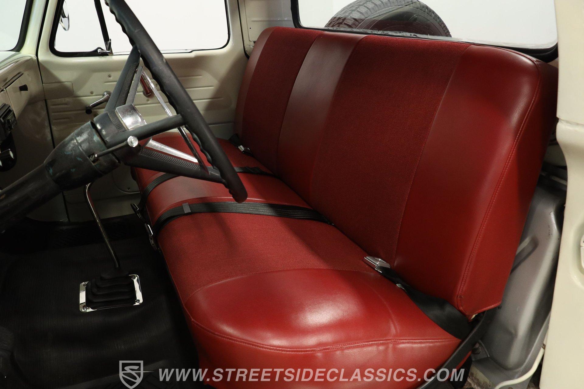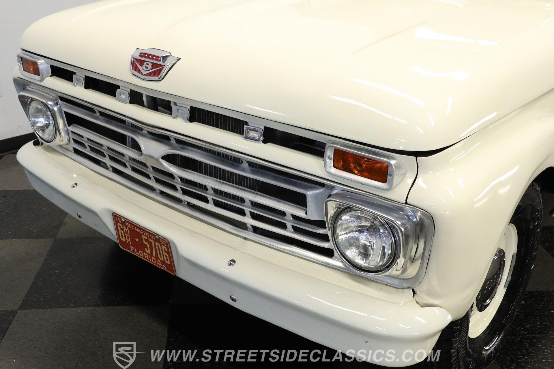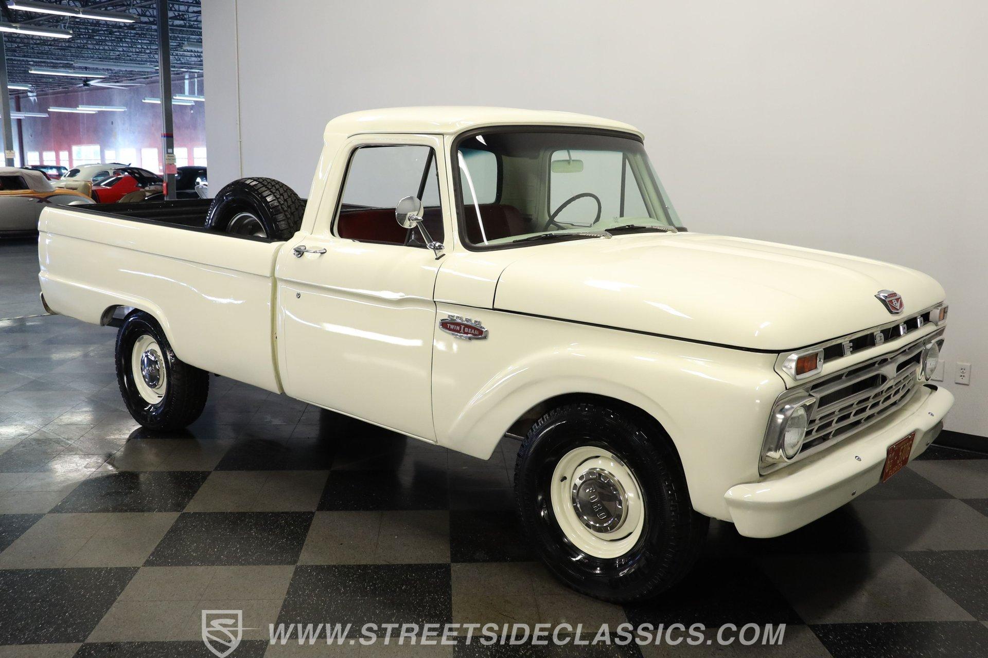 Step back in time and experience the timeless appeal of a classic American pickup that embodies rugged charm and a legacy of hard work and style. This 1965 Ford F-100 stands as a testament to an era when trucks were built to last and turn heads wherever they roamed. It's more than just a vehicle; it's a rolling piece of history that captures the spirit of the open road and the pride of ownership. Whether parked at a car show or cruising down the boulevard, this F-100 demands attention and admiration. Inside, you'll find a well-preserved interior that balances vintage authenticity with subtle modern touches. The bench seat, upholstered in a tasteful combination of vinyl and cloth, offers both comfort and classic styling. The dashboard paint maintains a clean and fresh look, while the addition of a Pioneer radio with large speakers brings your favorite tunes to life, enhancing every drive. The skull-adorned floor shifter adds a unique personality to this well-cared-for cabin. Under the hood, this Ford F-100 boasts a robust 352 V8 engine paired with a smooth-shifting 3-speed manual transmission rebuilt in 2018. Performance is enhanced by a Holley four-barrel carburetor and intake manifold, while an upgraded aluminum radiator with dual electric fans ensures optimal cooling. Chrome Edelbrock valve covers and a chrome breather add a touch of shine to the engine bay, which presents very well overall. Power steering and power brakes contribute to a confident and responsive driving experience that honors the truck's heritage while offering reliable performance. Highlights: 1965 Ford F-100 Long Bed 352 V8 Engine Since Rebuilt 3 Speed Manual Transmission Rebuilt 2018 Holley Four Barrel Carburetor Holley Intake Manifold Upgraded Aluminum Radiator With Dual Electric Fans Chrome Edelbrock Valve Covers Power Steering Power Brakes Factory Style Exhaust Manifolds Pioneer Radio And Speakers Installed Combination Vinyl And Cloth Bench Seat Paint In Good Condition With Minor Imperfections Wheels Color Matched To Body Financing Available Vehicle Protection Plans Available Worldwide Shipping This 1965 Ford F-100 offers a blend of classic style and mechanical reliability that makes it an excellent choice for collectors and enthusiasts alike. Don't miss the chance to own a piece of automotive history that's ready to be enjoyed today. Call, email, or come visit our showroom today! Be sure to ask about our services offered; Financing, Vehicle Protection Plan, Insurance, and Transportation to your driveway!