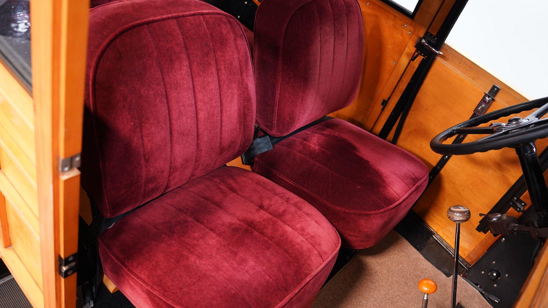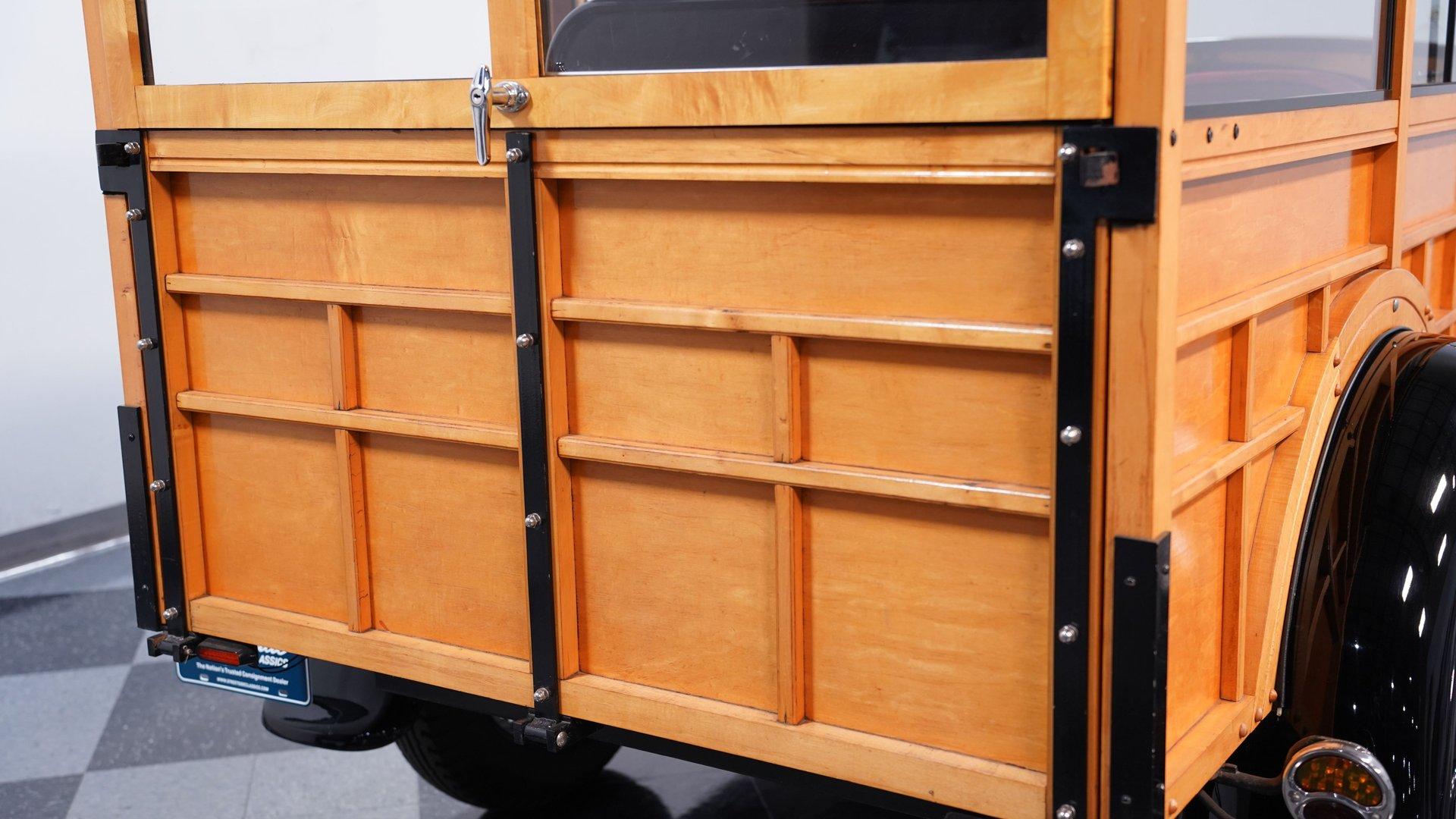 This 1930 Ford Model A woody wagon is a true eye-catcher because it brings a craftsman level of style to an already desirable classic. And nice updates everywhere from the seating to the overdrive gear makes this more fun to enjoy without taking away from the very vintage atmosphere. You can't help but take a little extra time staring at a vehicle made with real wood. The glossy lumber instantly lets everyone know this car is more than just another one from an assembly line. And this has the right look of a craftsman build with well-fitting joints and an even gloss across the panels. Even without the wood body, this one has an attractive style. The maroon paint complements the black on the fenders. The wire wheels, fender-mounted spare, and full vinyl roof cover really gives this a detailed classic style. The look of lumber continues inside. The doors, dash, and roof beams all look quite nice. And there are great vintage details, like the sliding window panels and the bright gauge panel. There are also plenty of stylish additions, like the side mirror and flower vase. Plus, the velour seating is absolutely comfy. But above all, these were built as work vehicles. The "station wagon" name has its roots in taking hotel guests to and from the train station. And you can still see those roots in the large cargo area with a split tailgate to load the really big stuff. We doubt you'll be lugging back any steamer trunks anymore, but it does make it easy to bring a cooler, chairs, and plenty of supplies to the car shows. And you will be showing this one off, because it was really made to be driven. Model As have Ford's 201 cubic-inch motor, and this one has a clean look that will have you lifting the cool butterfly hood wherever you park. Because this one was built to be a driver, you can see it has been kept up over the years. You'll even spot a handy upgrade to an alternator. The motor runs well, and the clutch and three-speed manual transmission have a clean action to make driving nice. And there's even an upgrade to a manually engaged overdrive to really make the most out of your gears. HIGHLIGHTS: 201 CI 4 Cylinder Engine 3-Speed Manual Transmission Mitchell Overdrive Single Exhaust System Alternator Upgrade Tilt Front Windshield 19" Wheels in 4.75/5.00-19 Tires Classic Woody Wagon Side-Mount Tire Running Boards James Lupert Leakless Water Pump Floor-Mounted Shifter Cloth/Mohair-Style Door and Trim Panels Clear Dash Gauges Complete with owner's manual, woodies are great cruisers, and this one really does it right. Whether you want to enjoy the weekend byways or hit the parade route, this 1930 Ford Model A station wagon is a charming way to have a great time. Call today!