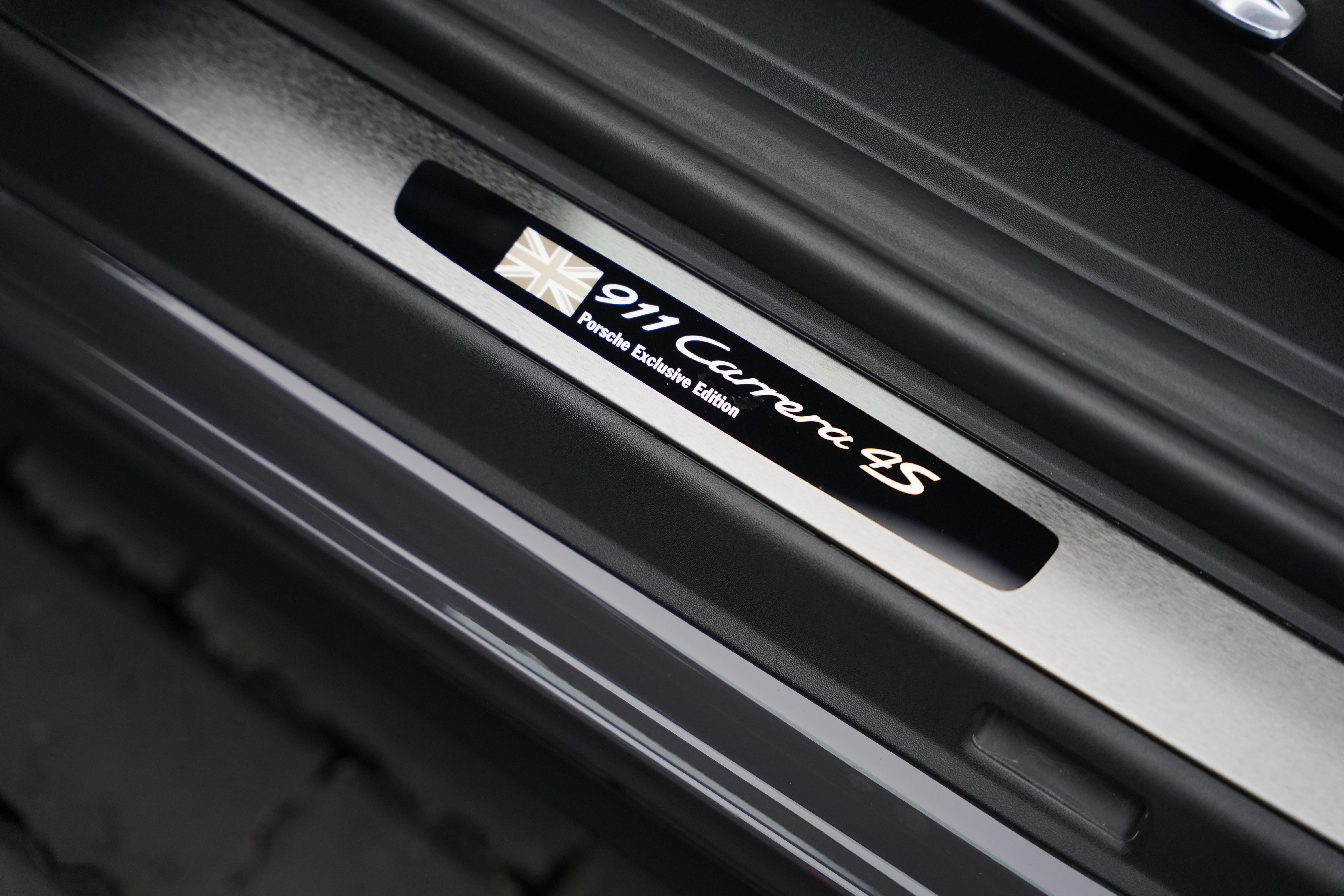 The interior continues the Exclusive specification with an extensive array of options. Swathes of Black Soft Grain leather can be found within, featuring Porsche crests to the headrest and Union Jack embossed to the central armrest. Specification highlights include fully electric, heated Sports seats with memory function, cruise control, Chrono pack, ISOFIX front seat, auto dimming mirrors, illuminated sill guards, SportDesign steering wheel, BOSE surround system, front and rear park assist and PCM with Navigation.