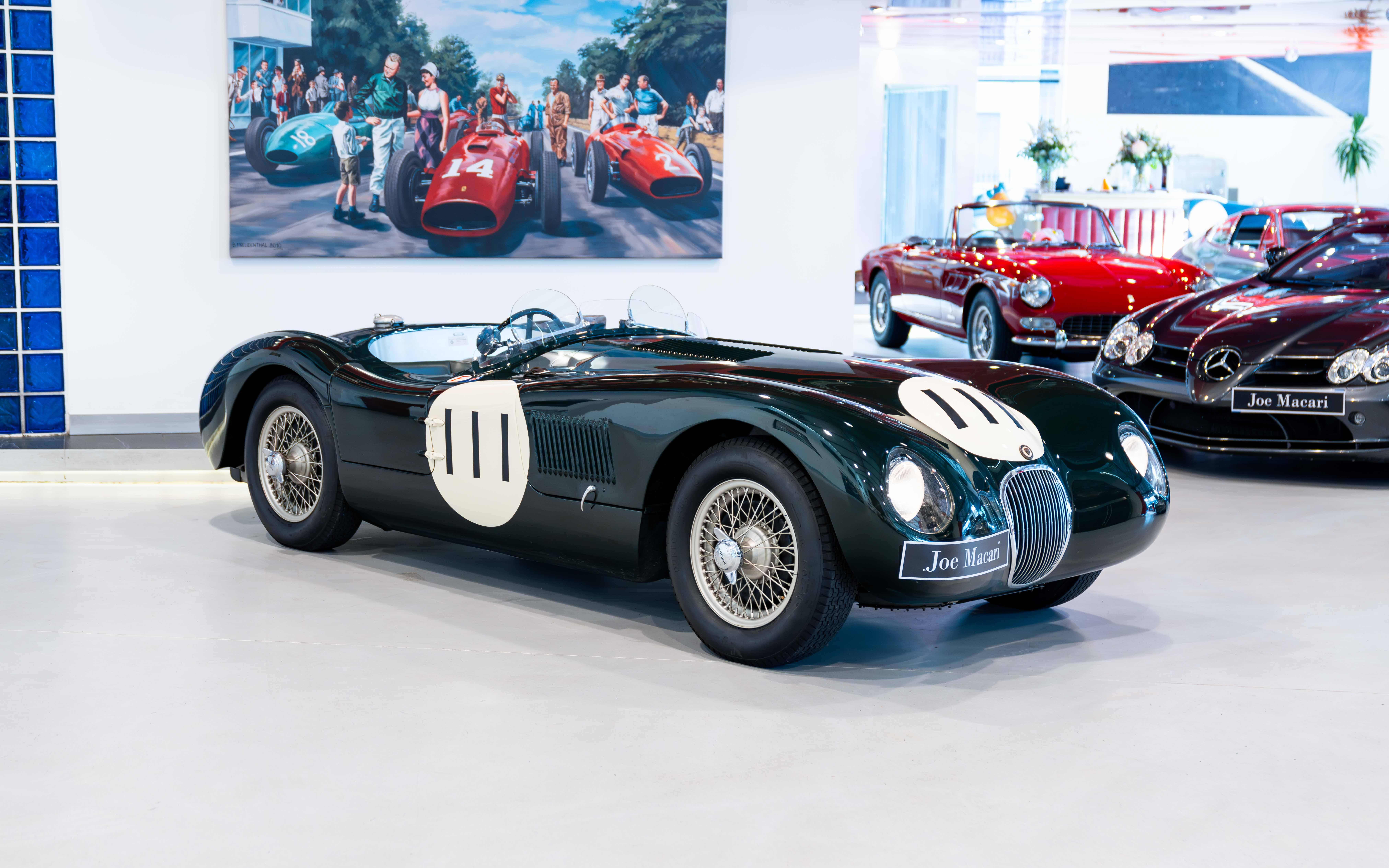 From its sensational debut victory at Le Mans in 1951 to a repeat triumph in 1953, the C-Type established Jaguar as a dominant force on the world stage. With only fifty-three examples built, it remains one of the most desirable and significant competition cars ever made. Among its early admirers were three Formula One World Champions, Guiseppe Farina, Alberto Ascari and Juan-Manuel Fangio, all of whom chose to own C-Types as road cars. At its introduction the model represented the very best of contemporary engineering and was among the most advanced road vehicles of its time.
