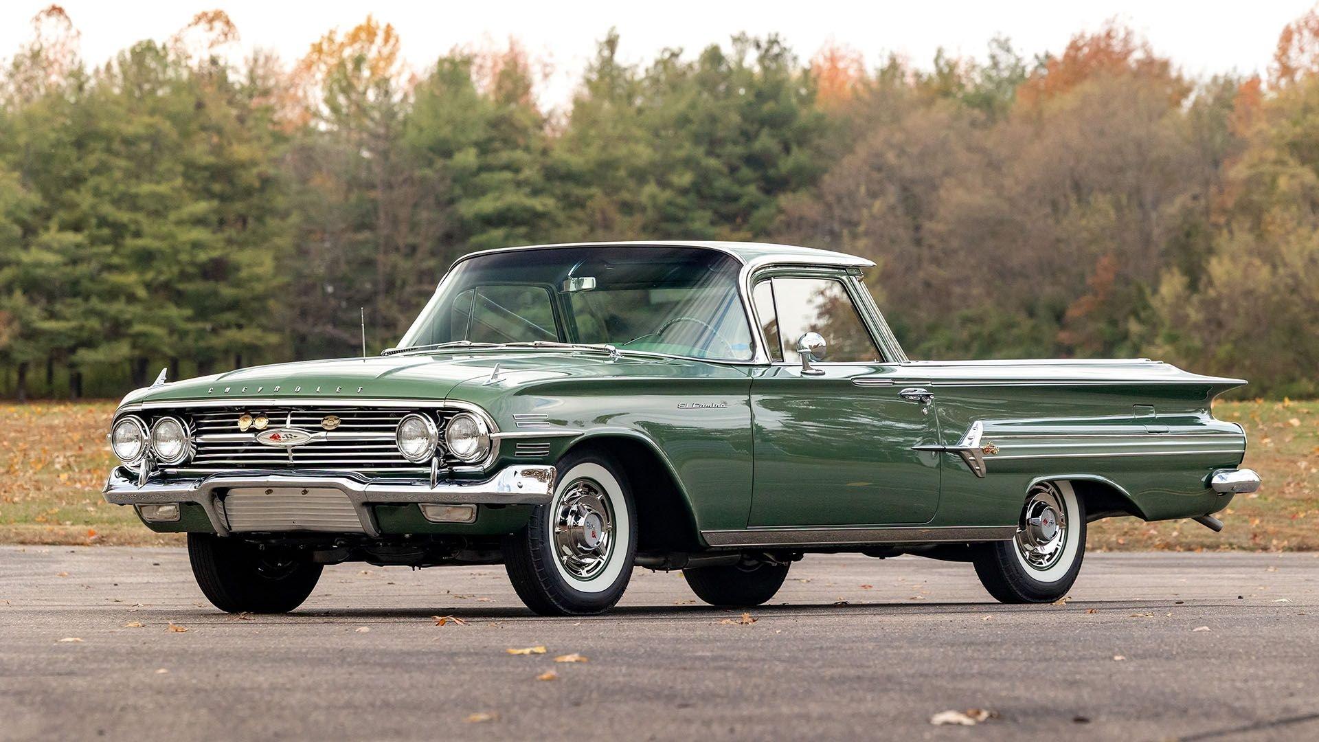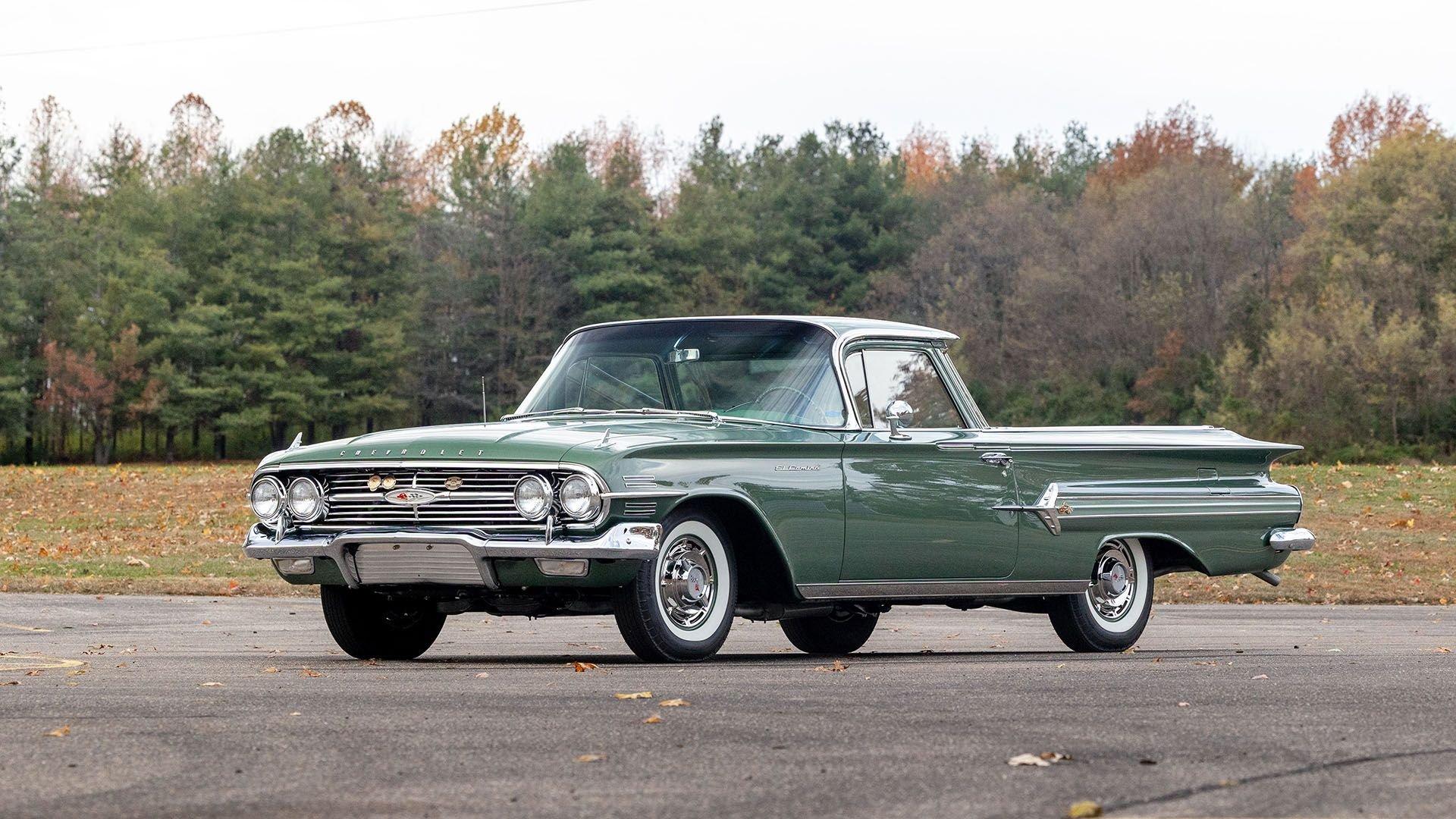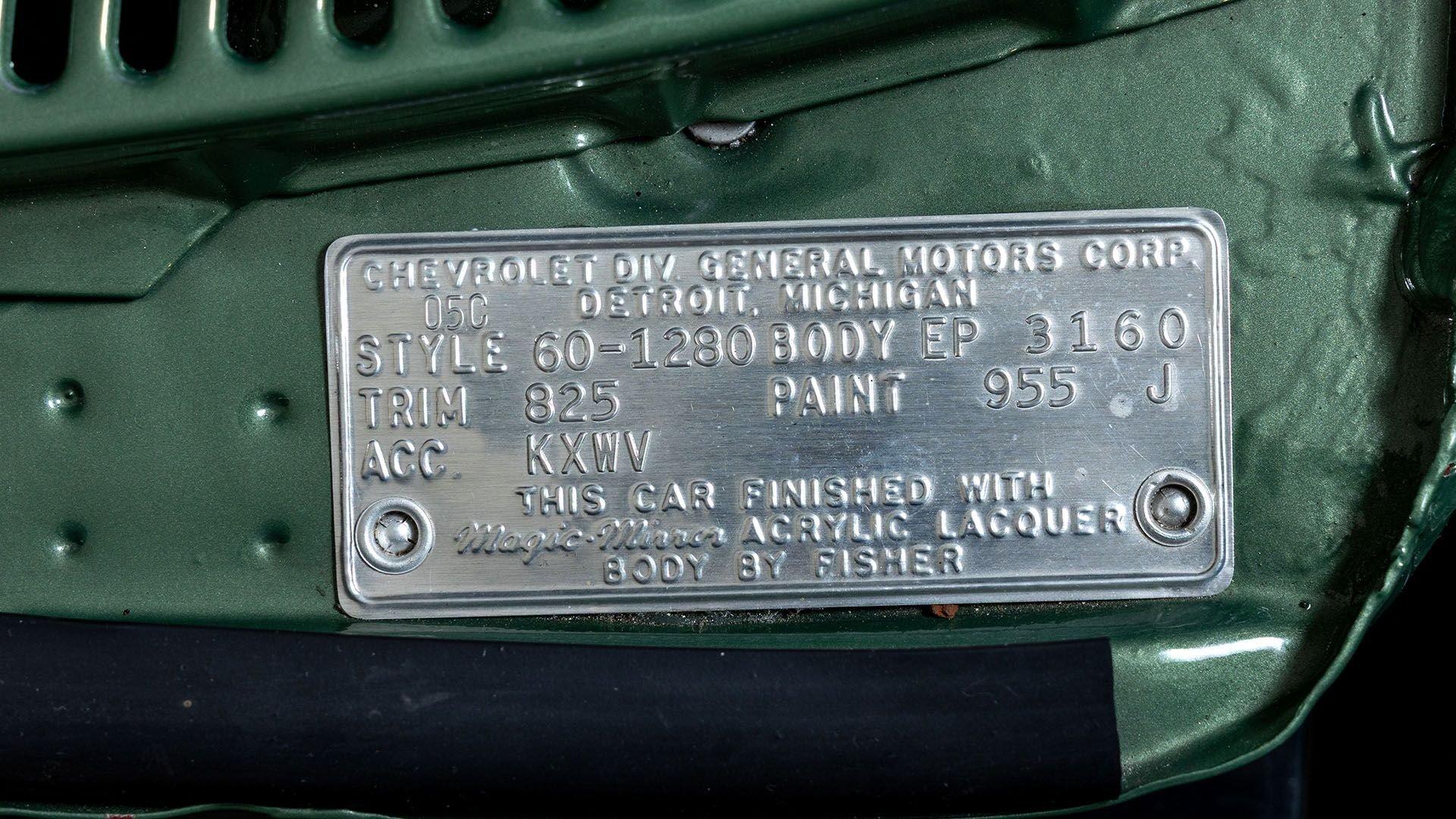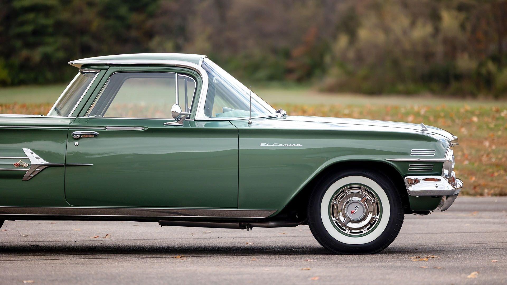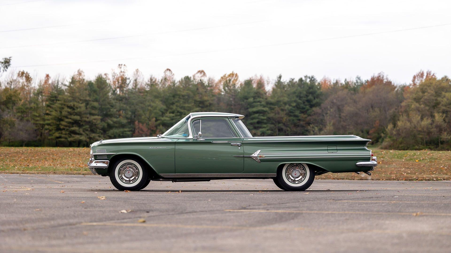 Chassis No. 01280J247372 Engine No. TI0I6G Constructed as part of the initial wave of dual-use car-based pickup trucks, the Chevrolet El Camino and its arch-rival, the Ford Ranchero, pioneered new ground for America’s two leading automakers. As is well known, it was the El Camino that dominated and became synonymous with the segment. Yet, because of its do-it-all utilitarian nature, few survive today, and even fewer exhibit rare factory options and the unique color combination this example from The Bill Spurling Collection possesses. This first-generation El Camino wears its as-born color scheme of two-tone Cascade Green and Jade Green, smartly matched inside with a two-tone, green-upholstered interior with black, white, and green houndstooth seat inserts. Its extensive suite of factory options includes air conditioning, power steering, power brakes, power windows, power seat, an overhead compass, a Wonderbar radio, cruise control, and more. Perhaps most importantly, this El Camino carries the model designation “1280,” the highly desirable code denoting V8 power with two 283 cu-in and five large 348 cu-in variants among them. The V8 engine serial suffix “G” indicates it is fitted with a 348 cu-in 250-horsepower variant specific to the two-speed Powerglide transmission with a single four-barrel Carter carburetor producing an impressive 300 lb-ft of torque. In 2003, the V8-powered El Camino was acquired by well-known and passionate collector William “Tom” Gerrard, who saw the significance of the car and commissioned a full and comprehensive restoration by Harbor Auto Restoration of Rockledge, Florida. Upon completion in late 2004, Gerrard and the El Camino went on to a decade of high-level concours success. The early years were focused on touring the country in AACA competition, racking up AACA Junior and Senior National wins along with Grand National First Prizes including “Best Senior Truck at a National Meet” in 2005. This was followed by Vintage Chevrolet Club of America (VCCA) Junior Awards culminating in two VCCA National First Place Senior Awards in 2011 and 2016 with 994 out of 1000 points scored at their National Meet at Lake Tahoe. It proudly wears multiple AACA and VCCA awards on its front grille as a testament to the high quality of its restoration. Later, this rare El Camino joined the Carmel, California-based collection of Jackie and Gary Runyon, noted for its devotion to the best of General Motors’ mid-century American classics. In 2022, it joined The Bill Spurling Collection, where it has been prized for its rarity, uncommon color combination, V8 power, and exacting restoration. Opportunities to acquire a fully restored, award-winning first-generation El Camino like this are exceptionally rare, making it a must-have for serious collectors.