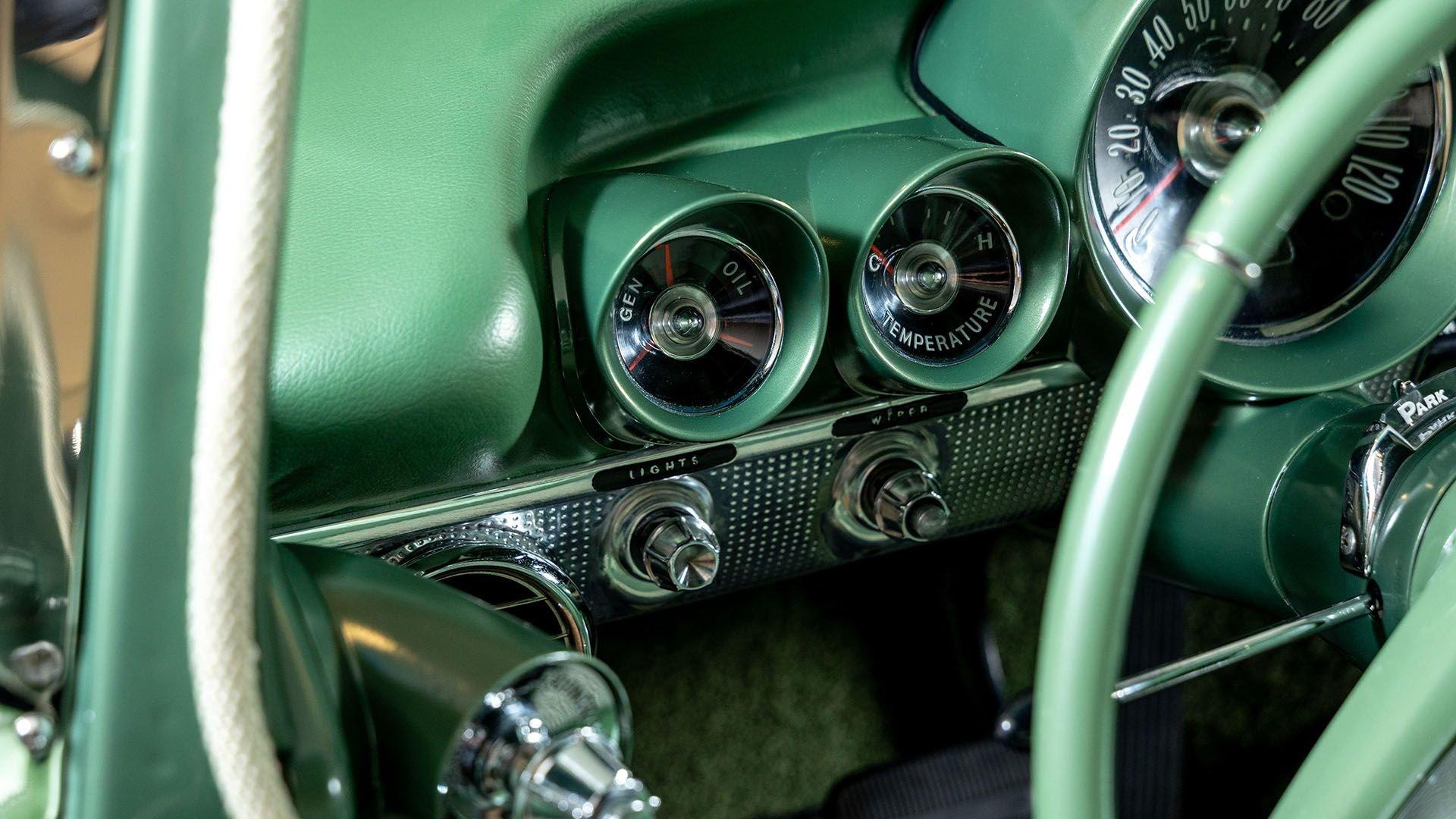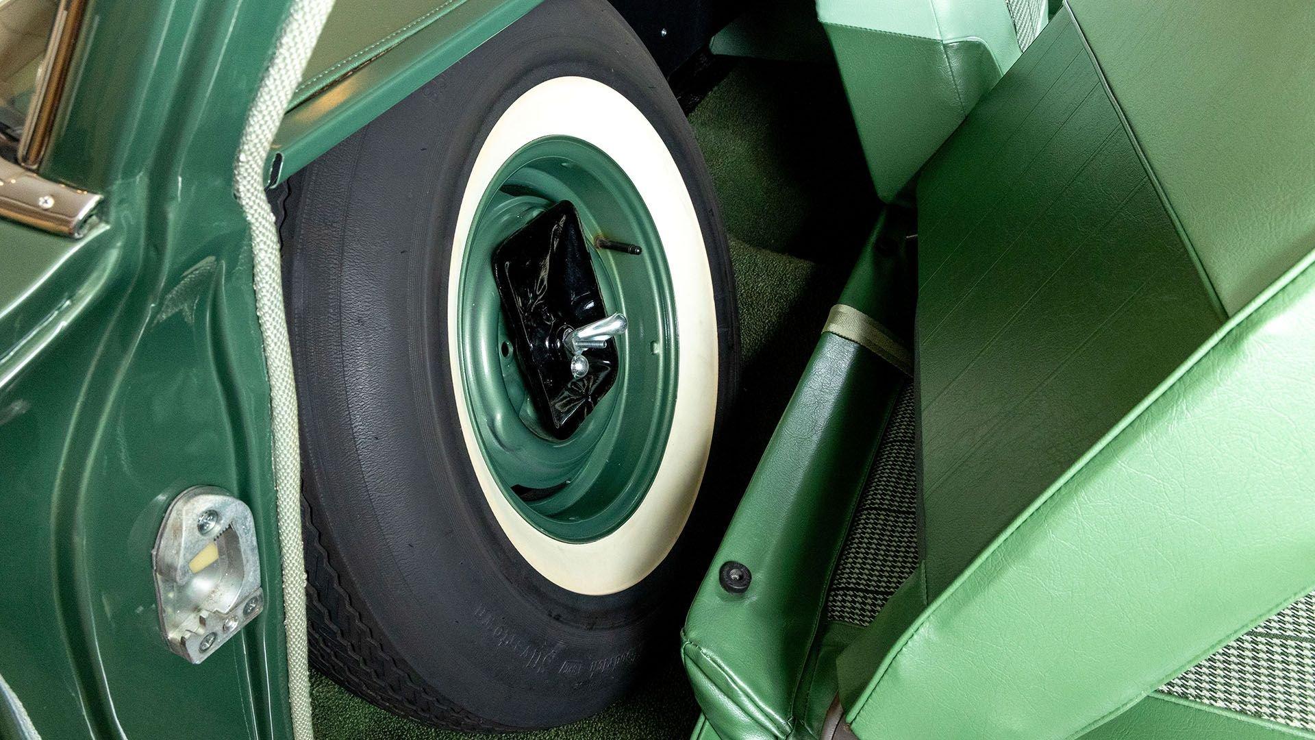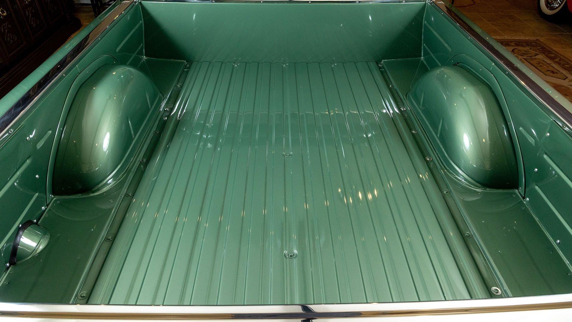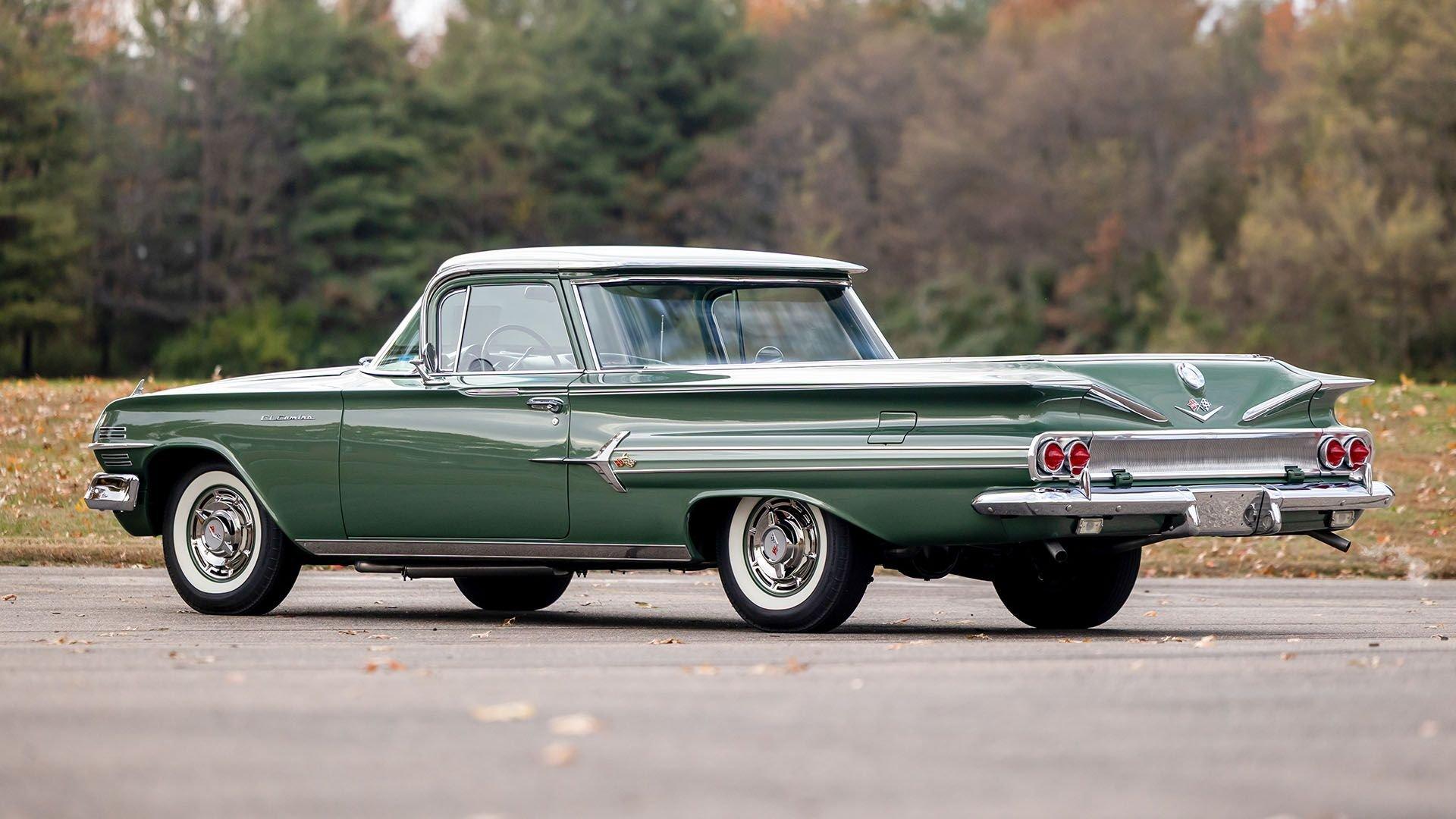 Chassis No. 01280J247372 Engine No. TI0I6G Constructed as part of the initial wave of dual-use car-based pickup trucks, the Chevrolet El Camino and its arch-rival, the Ford Ranchero, pioneered new ground for America’s two leading automakers. As is well known, it was the El Camino that dominated and became synonymous with the segment. Yet, because of its do-it-all utilitarian nature, few survive today, and even fewer exhibit rare factory options and the unique color combination this example from The Bill Spurling Collection possesses. This first-generation El Camino wears its as-born color scheme of two-tone Cascade Green and Jade Green, smartly matched inside with a two-tone, green-upholstered interior with black, white, and green houndstooth seat inserts. Its extensive suite of factory options includes air conditioning, power steering, power brakes, power windows, power seat, an overhead compass, a Wonderbar radio, cruise control, and more. Perhaps most importantly, this El Camino carries the model designation “1280,” the highly desirable code denoting V8 power with two 283 cu-in and five large 348 cu-in variants among them. The V8 engine serial suffix “G” indicates it is fitted with a 348 cu-in 250-horsepower variant specific to the two-speed Powerglide transmission with a single four-barrel Carter carburetor producing an impressive 300 lb-ft of torque. In 2003, the V8-powered El Camino was acquired by well-known and passionate collector William “Tom” Gerrard, who saw the significance of the car and commissioned a full and comprehensive restoration by Harbor Auto Restoration of Rockledge, Florida. Upon completion in late 2004, Gerrard and the El Camino went on to a decade of high-level concours success. The early years were focused on touring the country in AACA competition, racking up AACA Junior and Senior National wins along with Grand National First Prizes including “Best Senior Truck at a National Meet” in 2005. This was followed by Vintage Chevrolet Club of America (VCCA) Junior Awards culminating in two VCCA National First Place Senior Awards in 2011 and 2016 with 994 out of 1000 points scored at their National Meet at Lake Tahoe. It proudly wears multiple AACA and VCCA awards on its front grille as a testament to the high quality of its restoration. Later, this rare El Camino joined the Carmel, California-based collection of Jackie and Gary Runyon, noted for its devotion to the best of General Motors’ mid-century American classics. In 2022, it joined The Bill Spurling Collection, where it has been prized for its rarity, uncommon color combination, V8 power, and exacting restoration. Opportunities to acquire a fully restored, award-winning first-generation El Camino like this are exceptionally rare, making it a must-have for serious collectors.