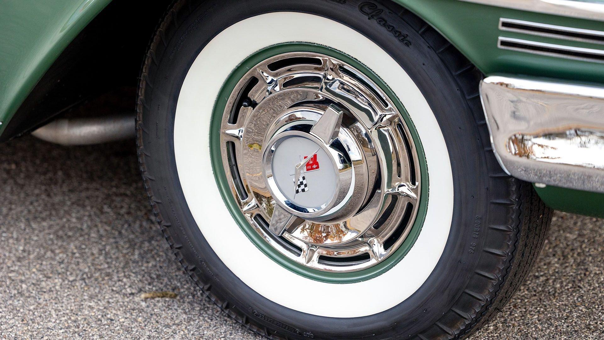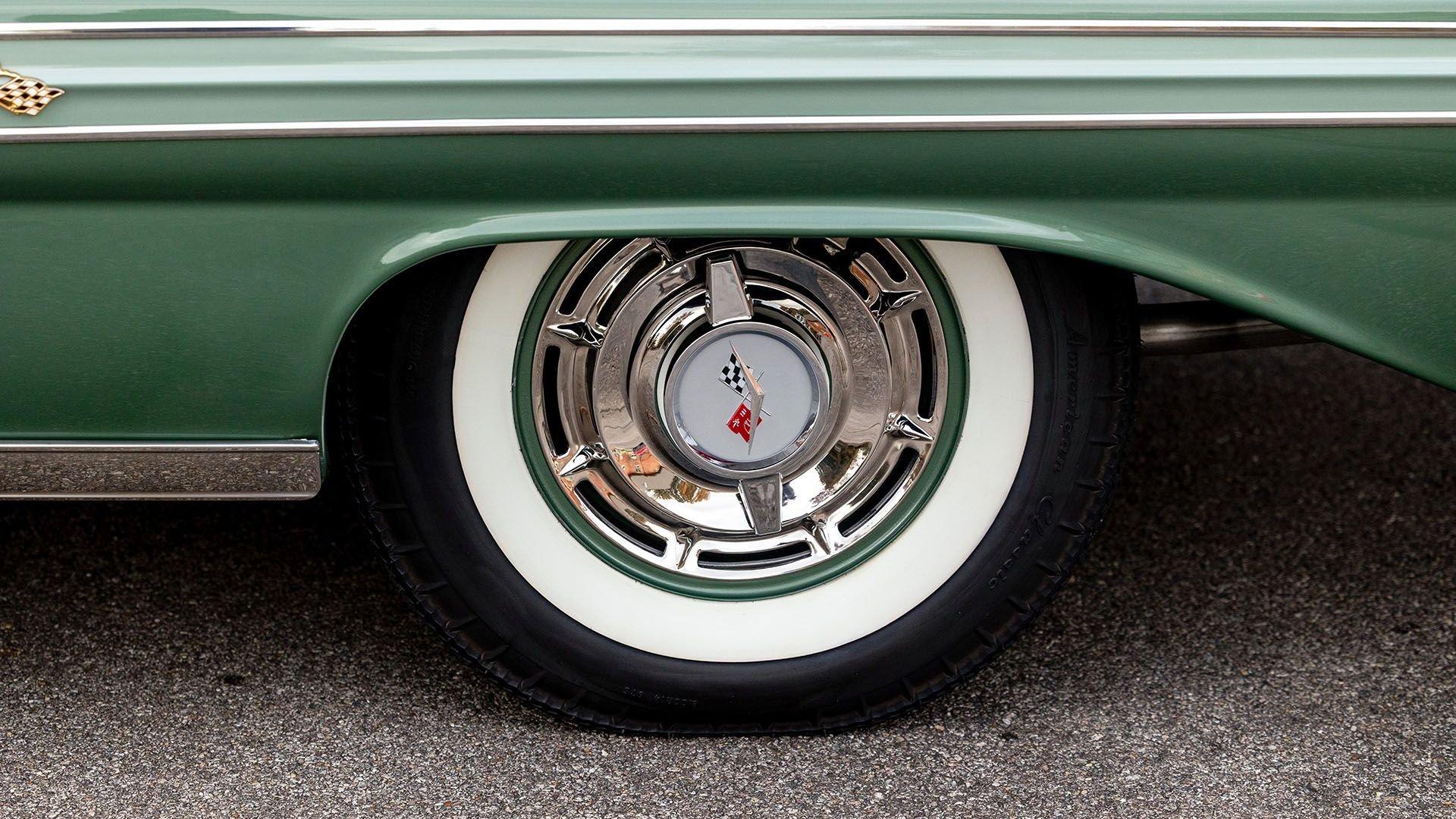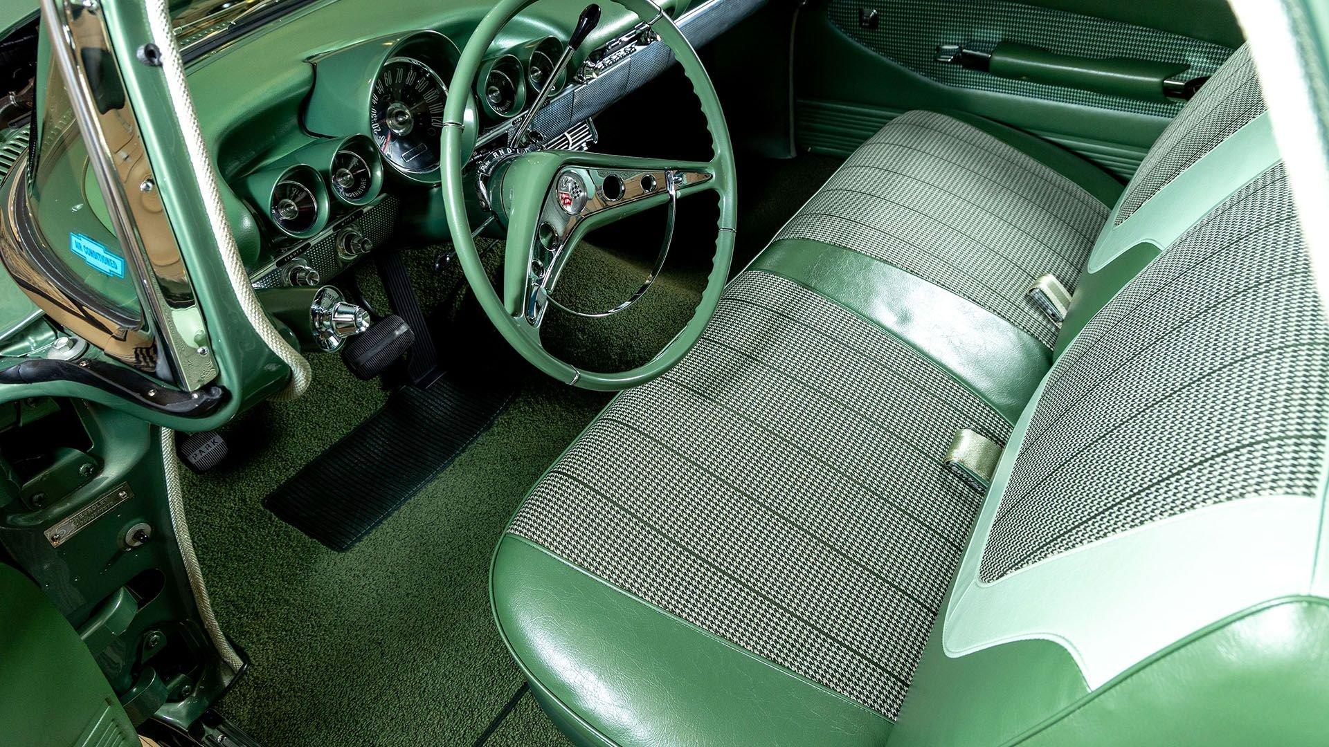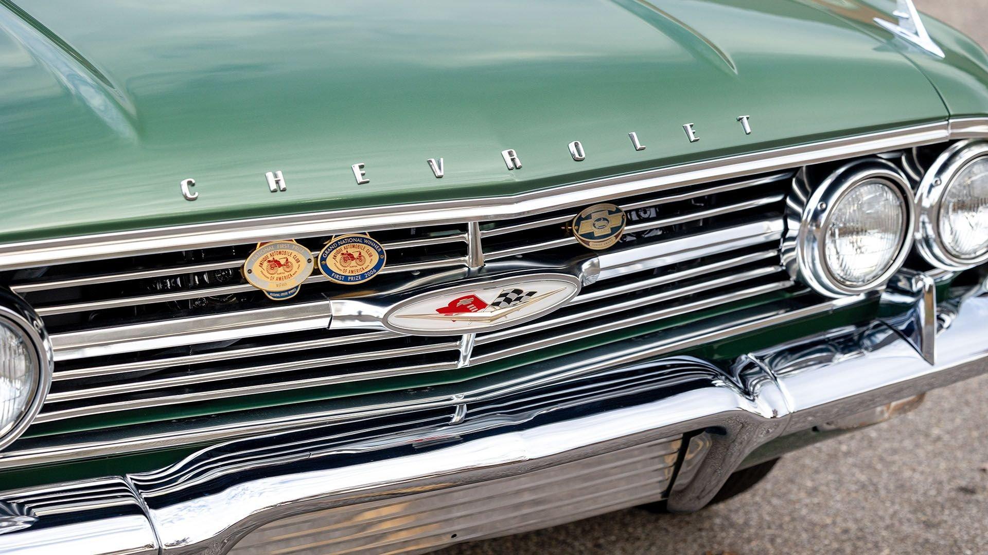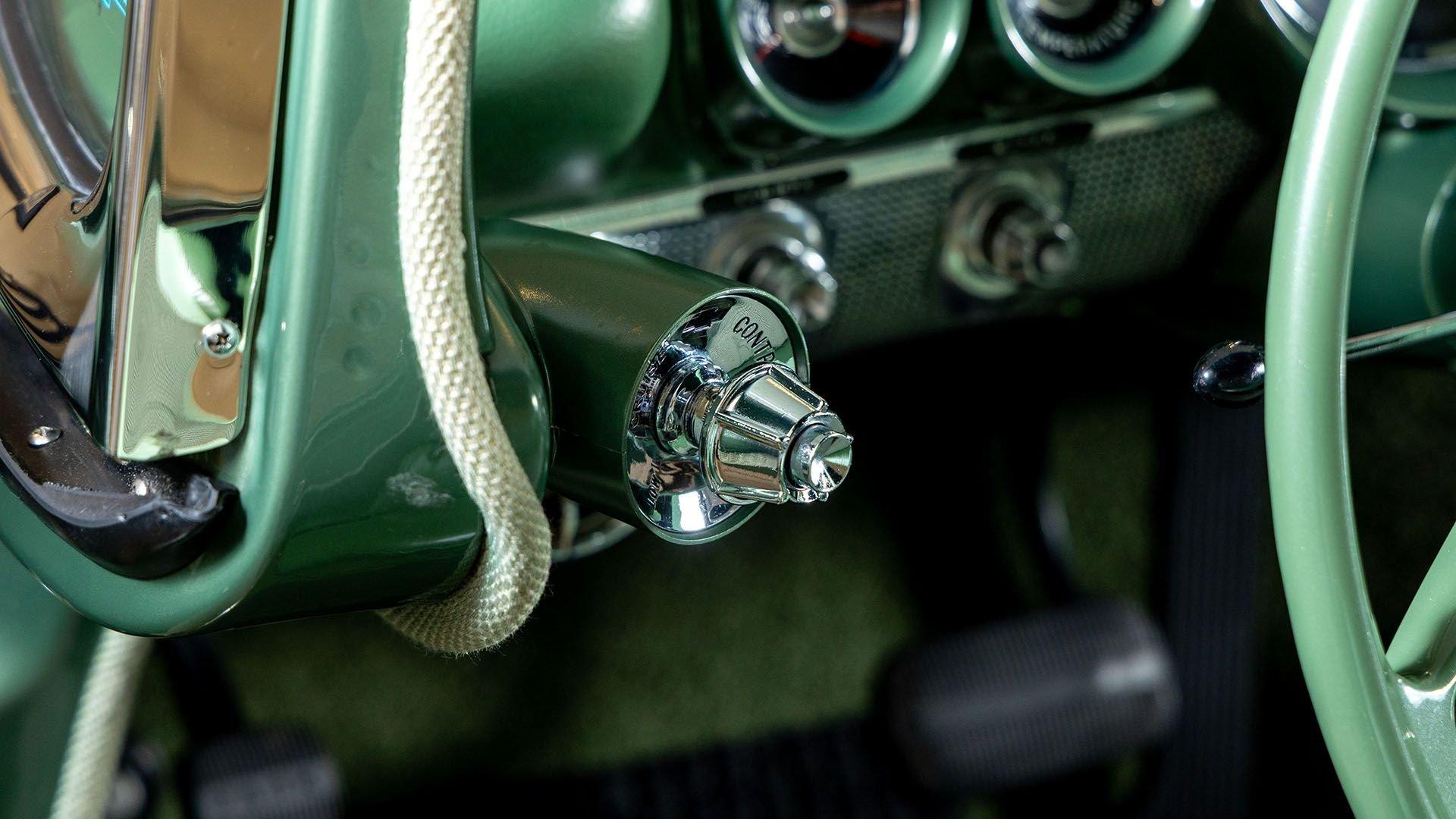 Chassis No. 01280J247372 Engine No. TI0I6G Constructed as part of the initial wave of dual-use car-based pickup trucks, the Chevrolet El Camino and its arch-rival, the Ford Ranchero, pioneered new ground for America’s two leading automakers. As is well known, it was the El Camino that dominated and became synonymous with the segment. Yet, because of its do-it-all utilitarian nature, few survive today, and even fewer exhibit rare factory options and the unique color combination this example from The Bill Spurling Collection possesses. This first-generation El Camino wears its as-born color scheme of two-tone Cascade Green and Jade Green, smartly matched inside with a two-tone, green-upholstered interior with black, white, and green houndstooth seat inserts. Its extensive suite of factory options includes air conditioning, power steering, power brakes, power windows, power seat, an overhead compass, a Wonderbar radio, cruise control, and more. Perhaps most importantly, this El Camino carries the model designation “1280,” the highly desirable code denoting V8 power with two 283 cu-in and five large 348 cu-in variants among them. The V8 engine serial suffix “G” indicates it is fitted with a 348 cu-in 250-horsepower variant specific to the two-speed Powerglide transmission with a single four-barrel Carter carburetor producing an impressive 300 lb-ft of torque. In 2003, the V8-powered El Camino was acquired by well-known and passionate collector William “Tom” Gerrard, who saw the significance of the car and commissioned a full and comprehensive restoration by Harbor Auto Restoration of Rockledge, Florida. Upon completion in late 2004, Gerrard and the El Camino went on to a decade of high-level concours success. The early years were focused on touring the country in AACA competition, racking up AACA Junior and Senior National wins along with Grand National First Prizes including “Best Senior Truck at a National Meet” in 2005. This was followed by Vintage Chevrolet Club of America (VCCA) Junior Awards culminating in two VCCA National First Place Senior Awards in 2011 and 2016 with 994 out of 1000 points scored at their National Meet at Lake Tahoe. It proudly wears multiple AACA and VCCA awards on its front grille as a testament to the high quality of its restoration. Later, this rare El Camino joined the Carmel, California-based collection of Jackie and Gary Runyon, noted for its devotion to the best of General Motors’ mid-century American classics. In 2022, it joined The Bill Spurling Collection, where it has been prized for its rarity, uncommon color combination, V8 power, and exacting restoration. Opportunities to acquire a fully restored, award-winning first-generation El Camino like this are exceptionally rare, making it a must-have for serious collectors.