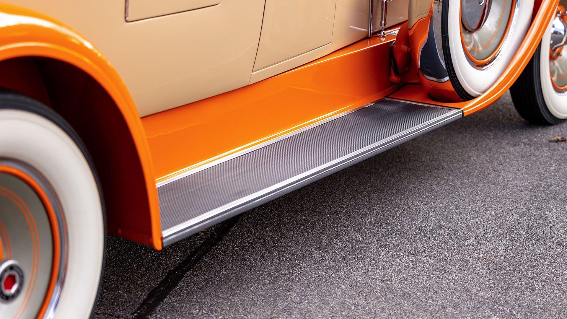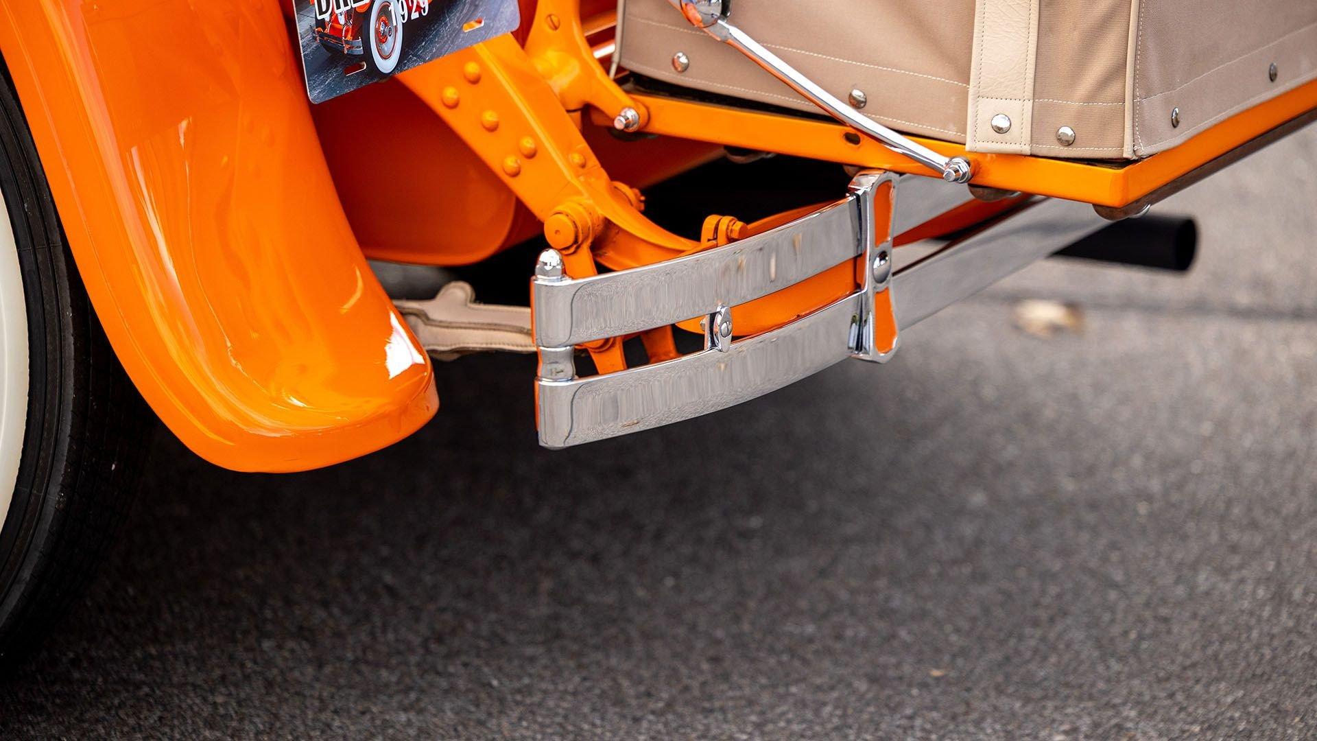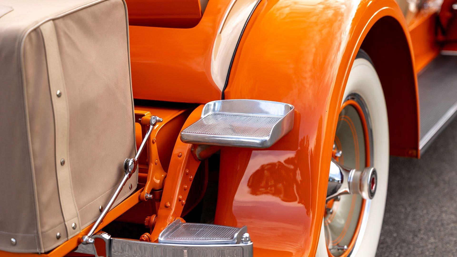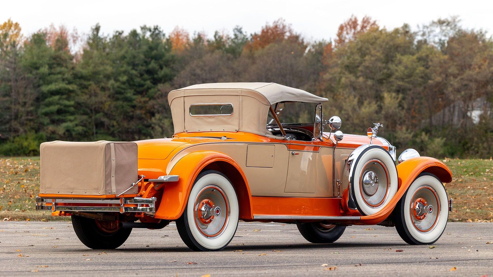 Vehicle No. 177711 Chassis No. 178112 Engine No. 178175C Introduced in August 1928, Packard’s Sixth Series offered an extensive range of body styles across four chassis: the Standard Eight rode 126½- and 133½-inch wheelbases, while the premium Custom and Deluxe Eights used longer 140½- and 145½-inch frames and featured the 384.8‑cubic-inch Straight-Eight engine, with nine main bearings and 105 horsepower. Among the most striking bodies on offer was the Runabout. This two-passenger open model is defined by its close-coupled proportions, low windshield, and often sporting sophisticated multi-tone liveries with bold beltline molding. Rakish and attention-grabbing, it became a favorite of the young and affluent, admired then and now. The 640 Custom Eight Roadster offered here was, according to its firewall vehicle number tag, sold initially on 7 June 1929 by the Parker-Harris Company of Memphis, Tennessee. It was later fully restored to the striking two-tone orange and ivory color palette it wears today, paired with tan leather upholstery and a matching canvas top, all accented with delicate orange pinstriping throughout—colors that would look equally at home drawing attention in Palm Beach or along the Newport shoreline. Its jaunty presentation includes disc wheels, dual side-mounted spares secured by Oakes tire locks with chrome covers and mirrors, cast-aluminum toe boards, and a marbled horn button and gearshift knob. The car is additionally outfitted with the iconic Goddess of Speed mascot, radiator stone guard, Trippe lights, dual spotlights, a Spartan horn and a Packard-badged trunk with a canvas cover. In 1986, the car was shown in AACA competition by then-owner Harry T. Douglas of Connecticut. It earned a National First Prize on 7 June at the Southeastern Division National Spring Meet in Kingsport, Tennessee, followed by its Senior National Award on 21 September at the Eastern Division Special National Fall Meet in Wilmington, New York . Douglas was a passionate admirer of 1929 Packards as he owned and exhibited several examples over the years. Later, the car joined the Gateway Automobile Museum, which acquired it from Pennsylvania collector Herb Lewenthal in the summer of 2003. It remained a treasured exhibit in John Hendricks’ Colorado-based collection for two decades where it was on display with over 100 prominent American cars. Hendricks, famously the founder of the Discovery Channel, created the museum to celebrate the American automotive industry’s impact throughout history. During 2023's Pebble Beach Car Week, the highly regarded museum entrusted Broad Arrow Auctions with its entire collection including this Sixth Series Custom Eight Runabout where it joined the equally prestigious Bill Spurling Collection. Since entering the collection, the car has been freshly tuned both cosmetically and mechanically, including having its porcelain on the exhaust manifold renewed. As noted during the on-site inspection performed by a leading and highly knowledgeable Broad Arrow car specialist, its restoration has been carefully preserved. As a result, this Packard is well positioned to be enjoyed at numerous concours or touring events throughout the country in fantastic style.