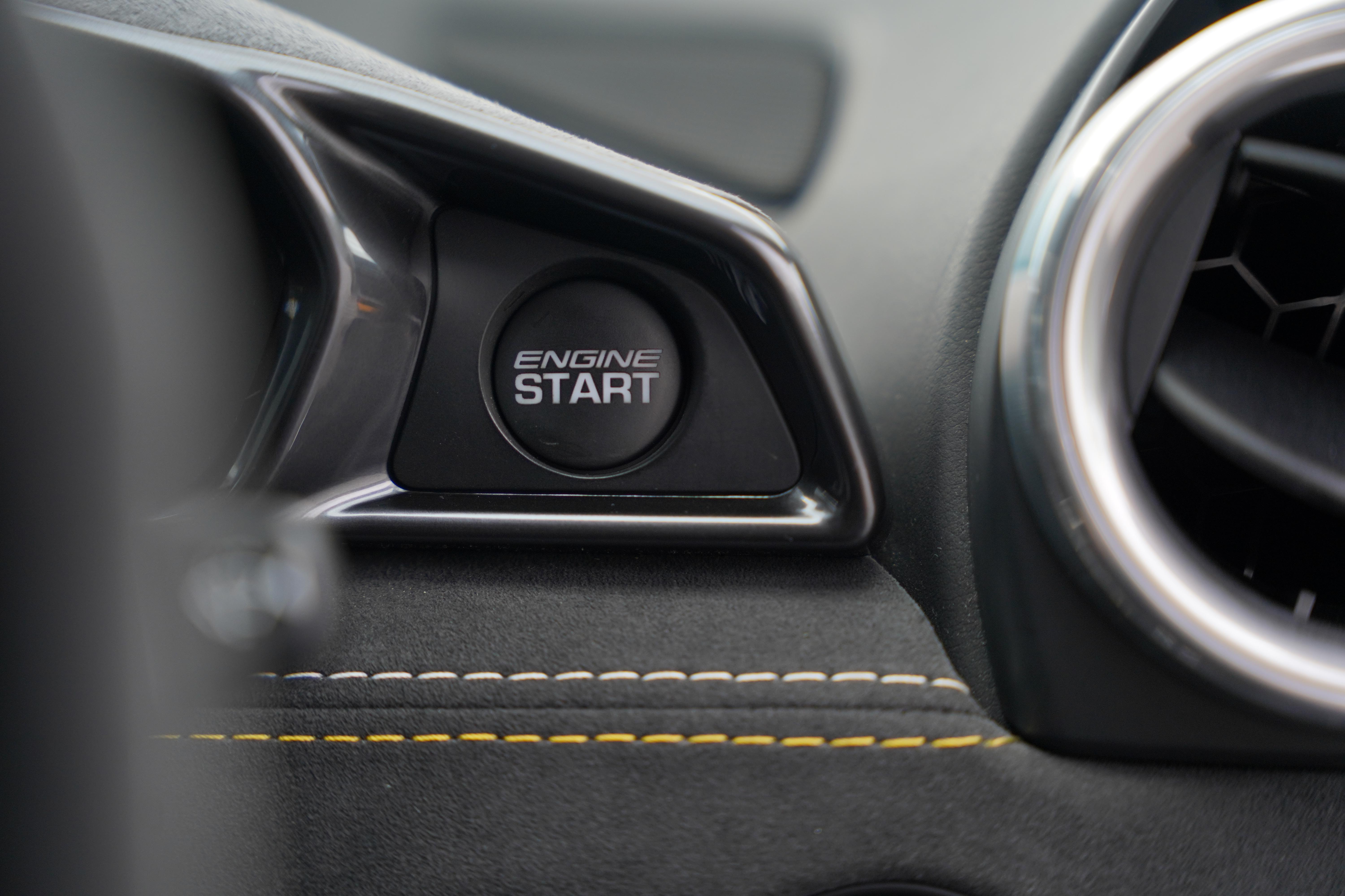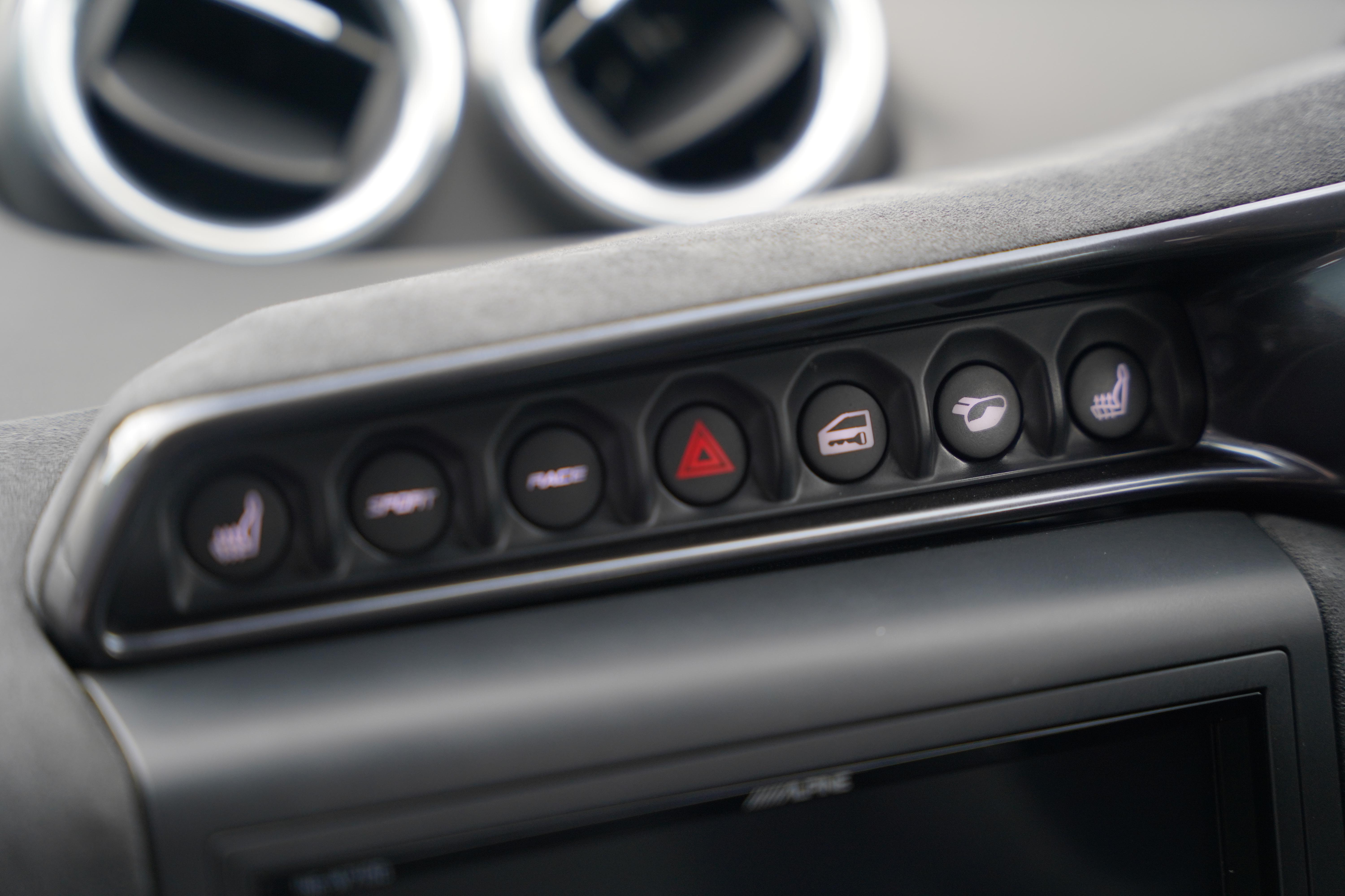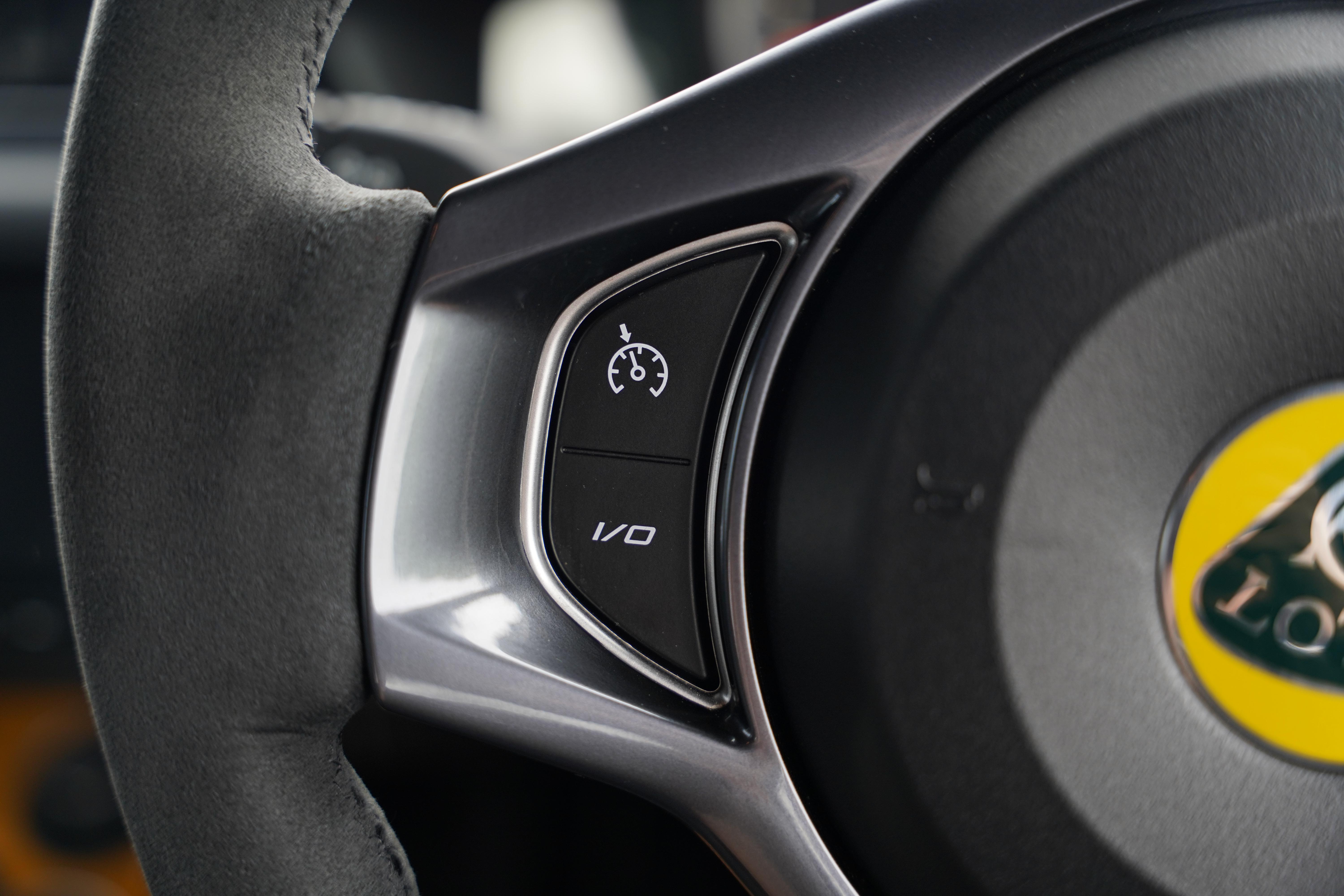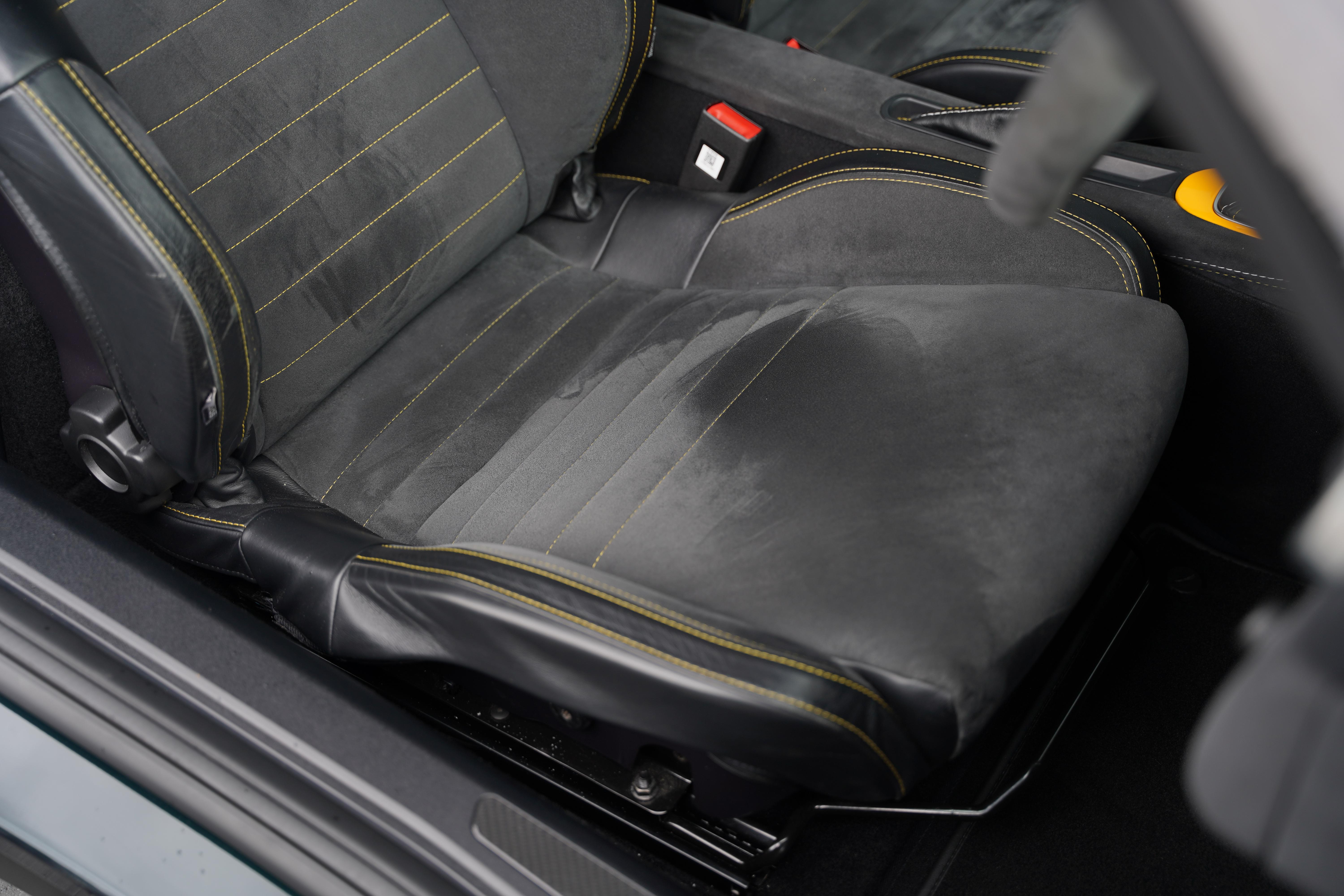 The interior is completed in black alcantara, with yellow and silver contrasting twin stitch, as well as leather bolsters to the seats. An alcantara steering wheel continues the theme. The yellow highlights continue with a full yellow interior colour pack. The seating configuration in this Evora is 2+0. Standard specification includes cruise control, heated seats, switchable exhaust valve, Sport and Race modes, Alpine touchscreen infotainment system, air conditioning and satelite navigation.