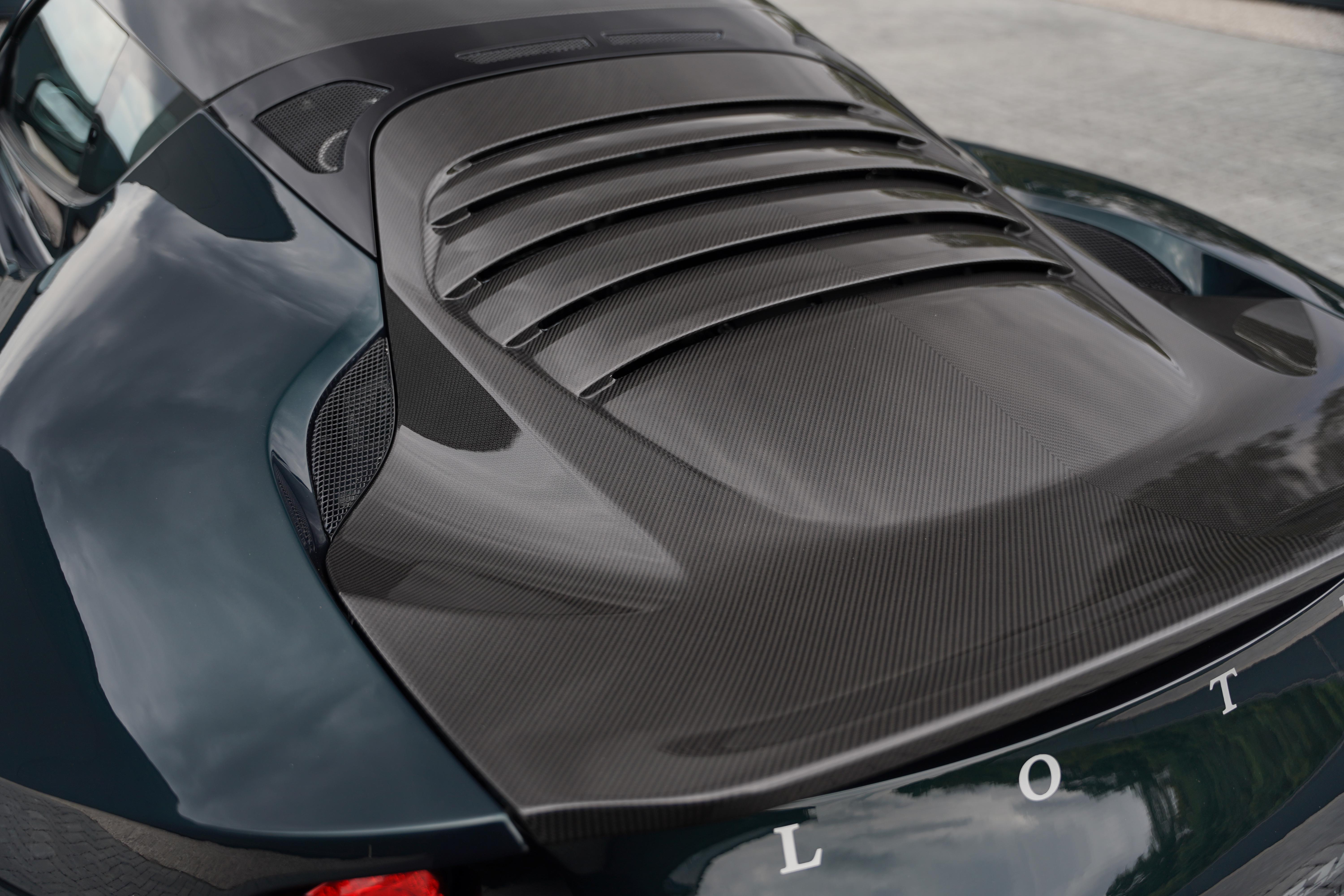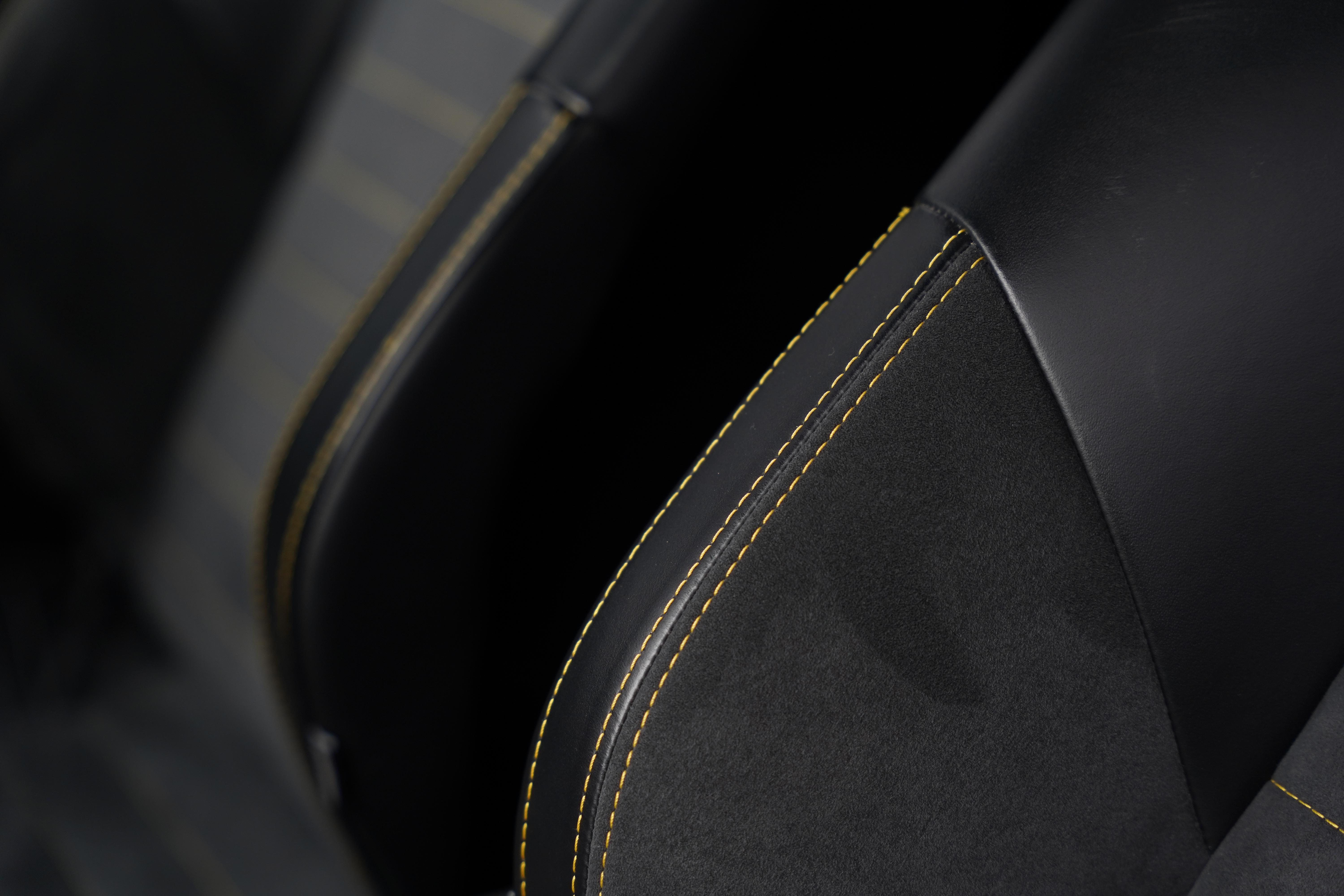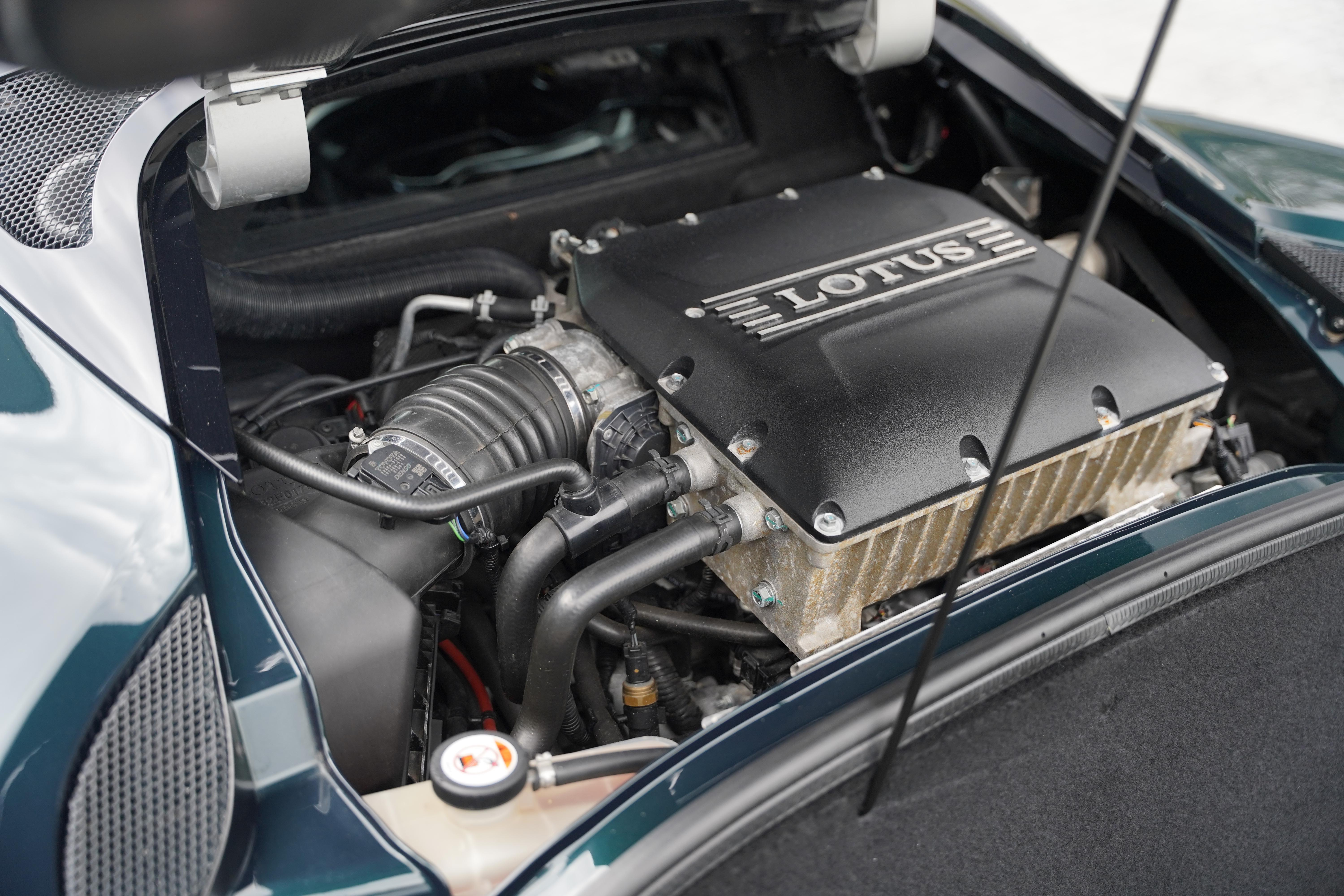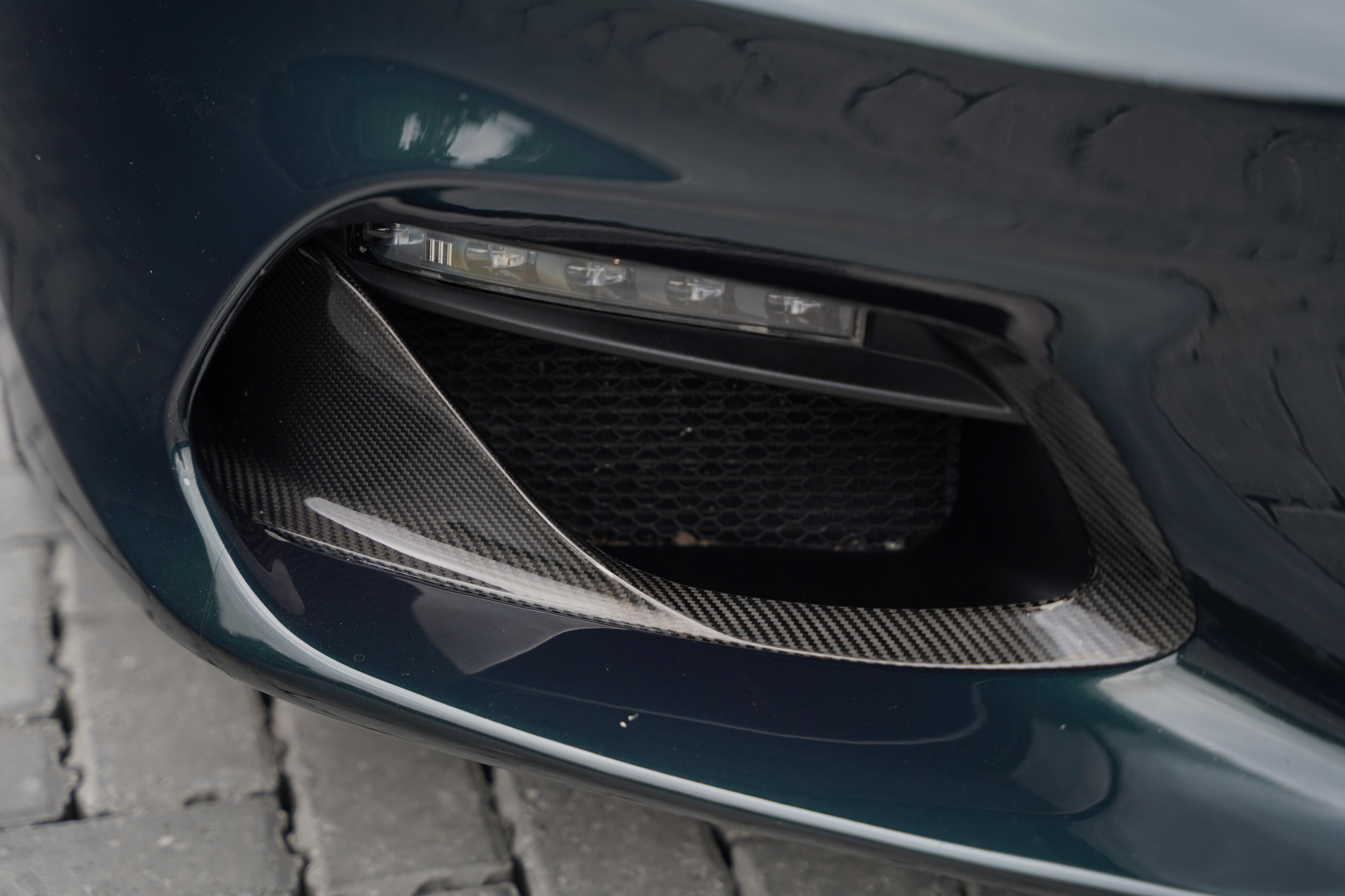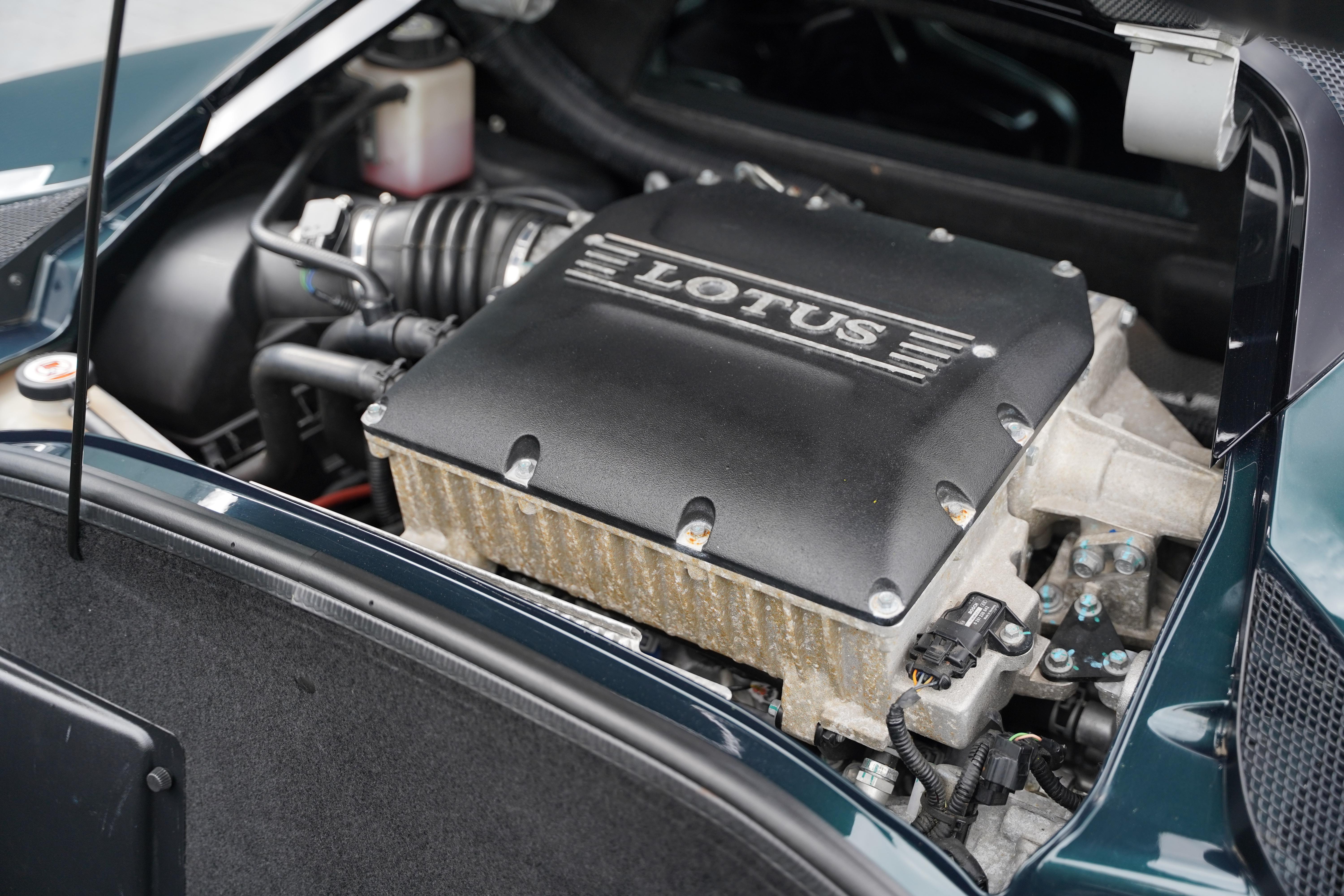 Presented in the rare, but elegant Empire Green metallic paint and featuring the carbon fibre roof and decklid that is specific to this model, the exterior is completed with satin black lightweight forged wheels, and yellow AP Racing brake calipers. Additional carbon fibre feature includes the front and rear bumper inserts and front inspection panel.