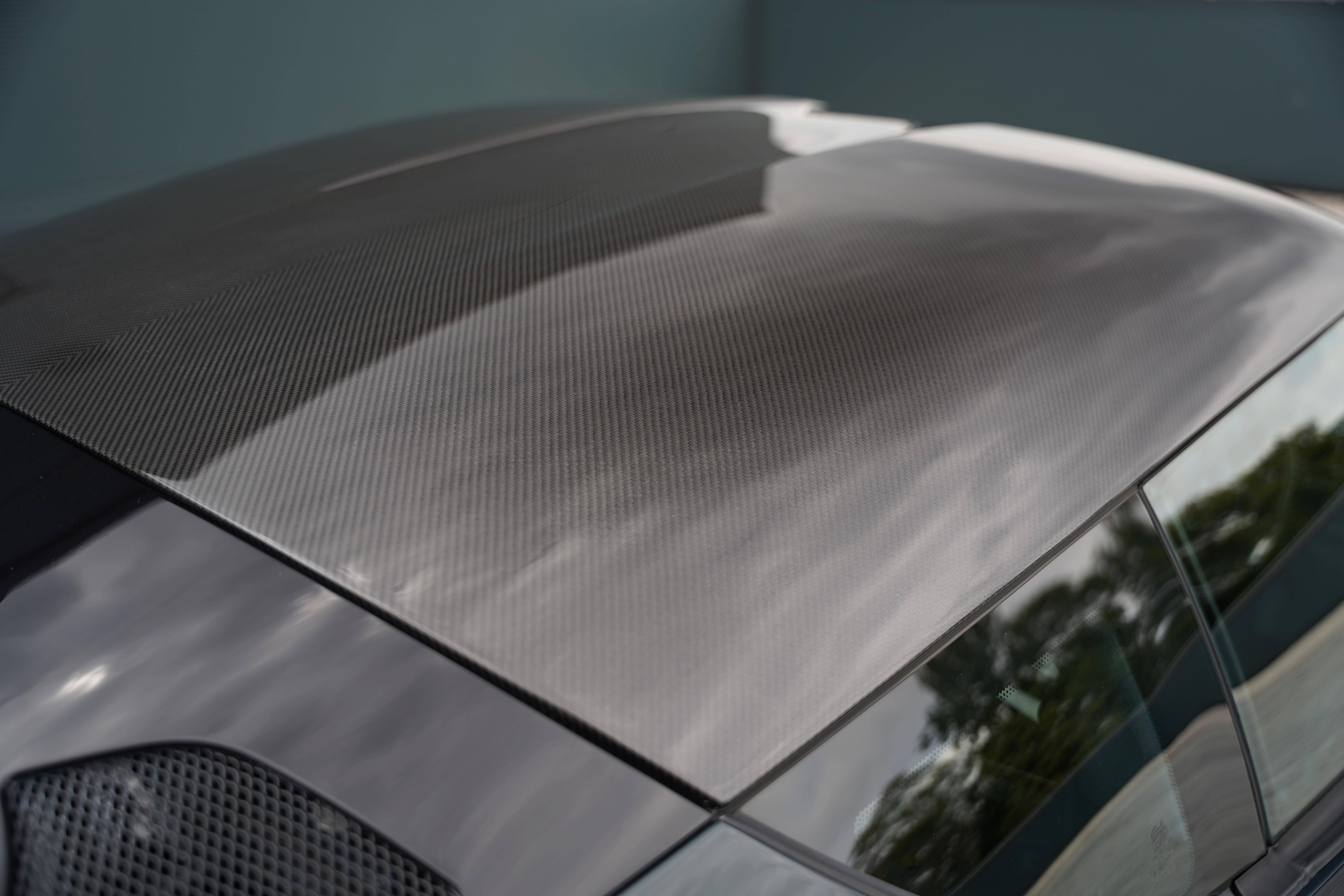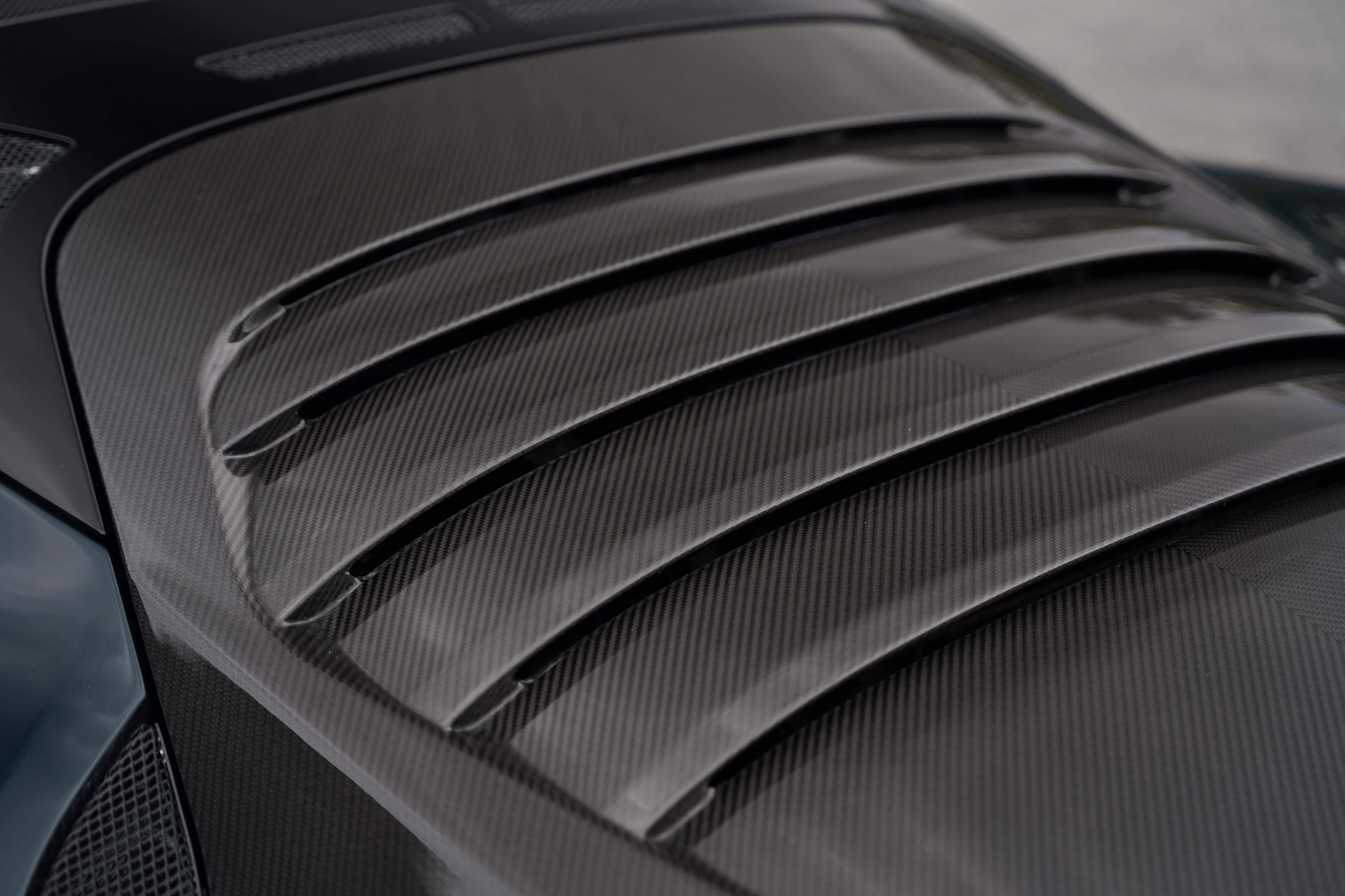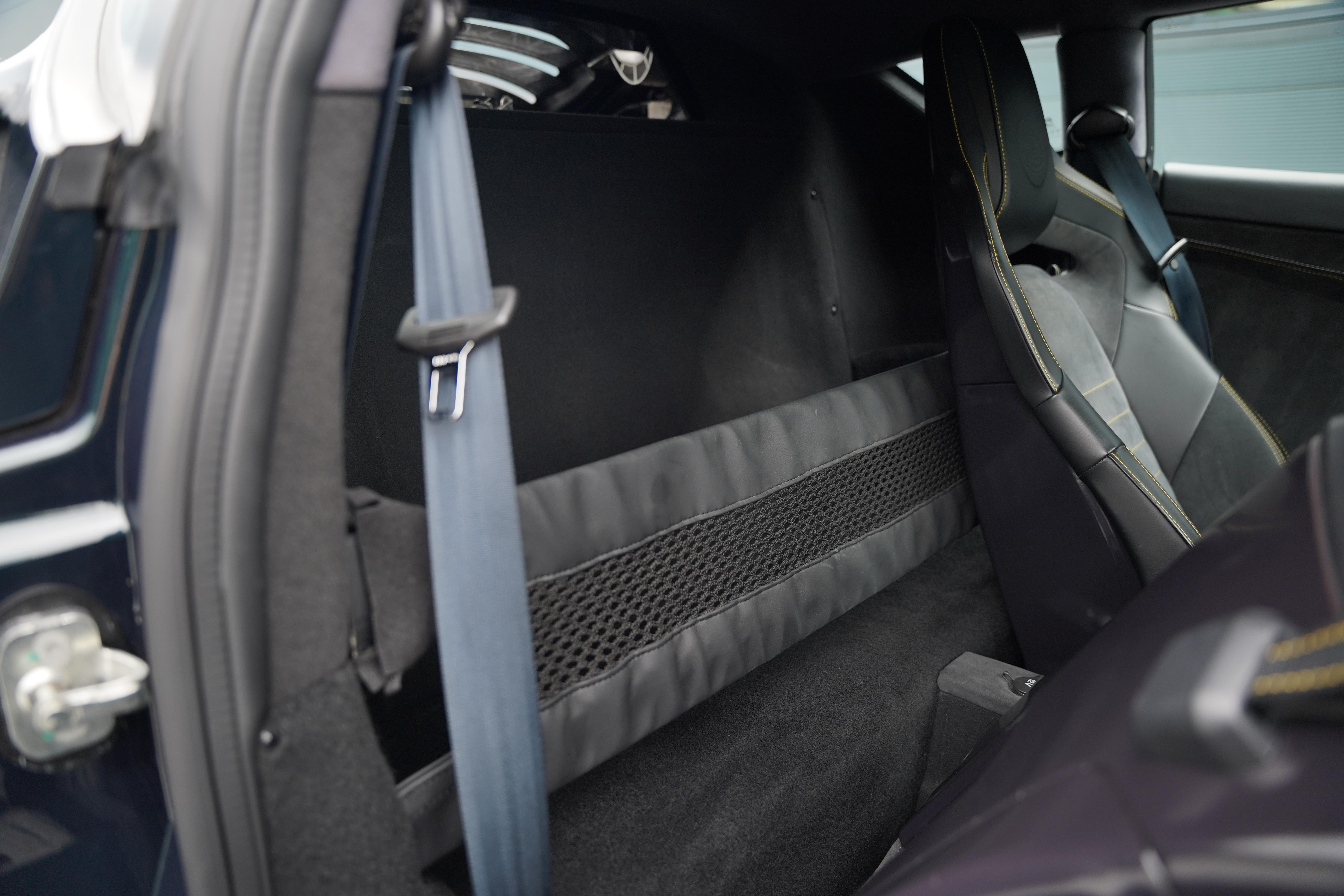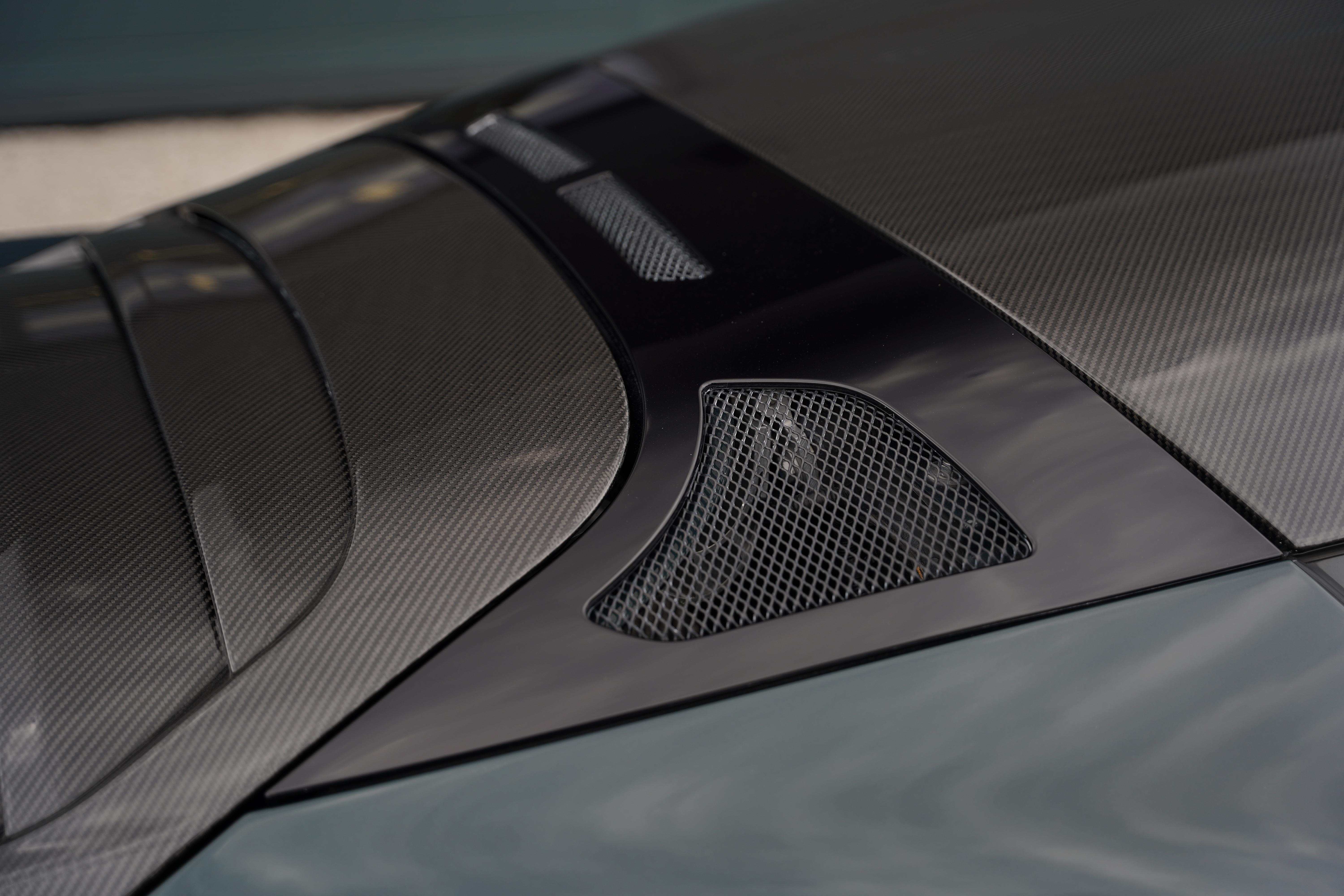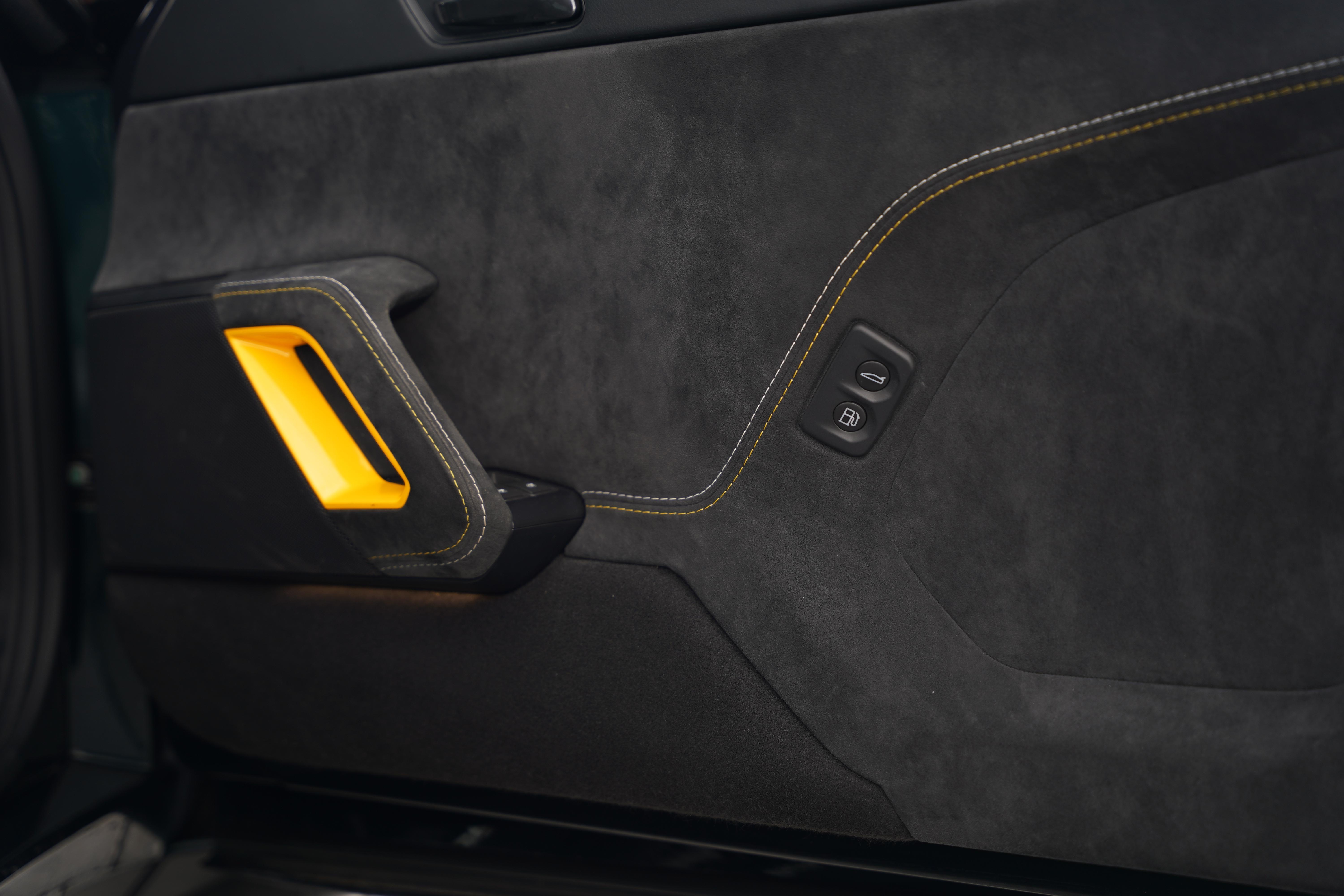 Presented in the rare, but elegant Empire Green metallic paint and featuring the carbon fibre roof and decklid that is specific to this model, the exterior is completed with satin black lightweight forged wheels, and yellow AP Racing brake calipers. Additional carbon fibre feature includes the front and rear bumper inserts and front inspection panel.