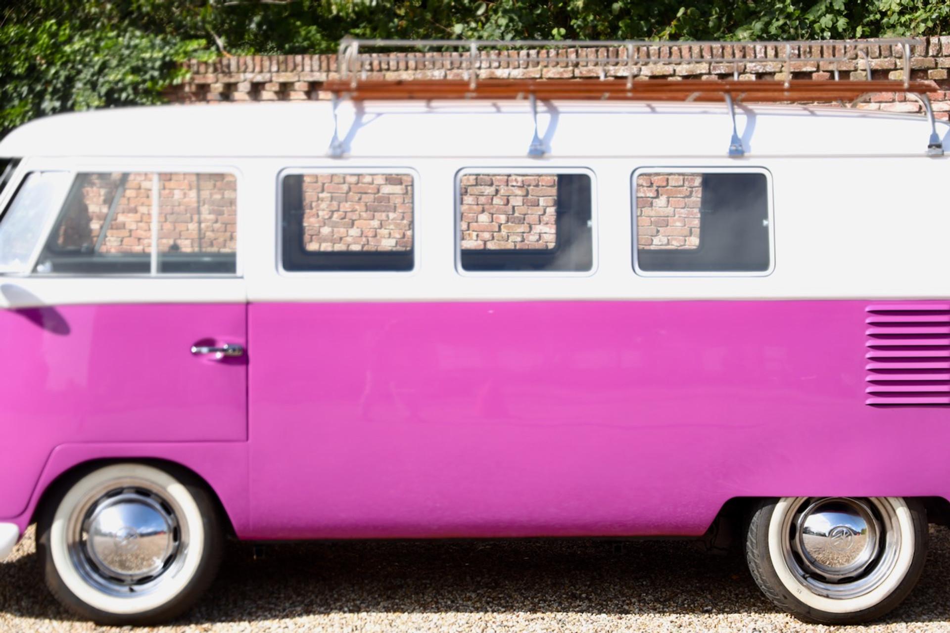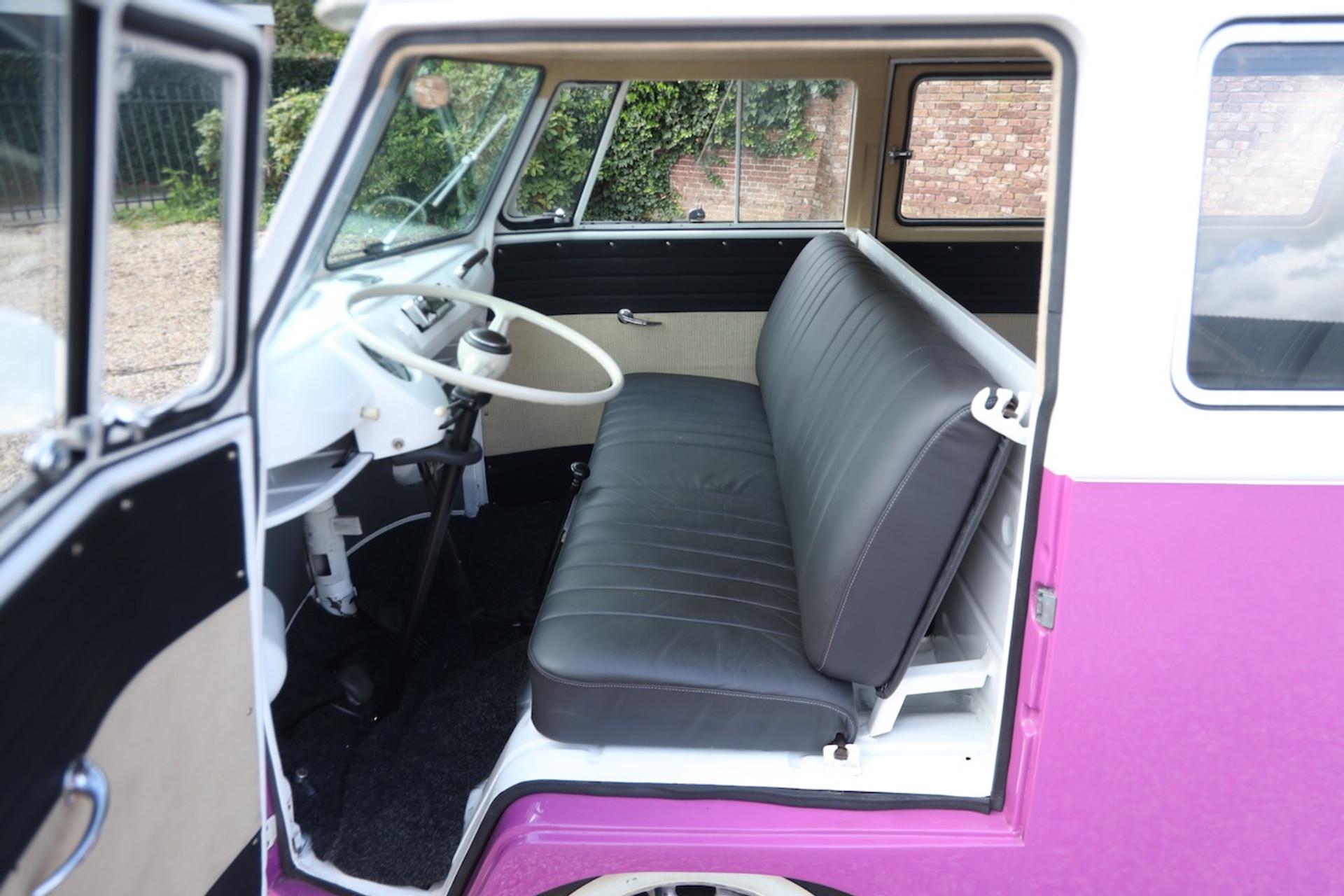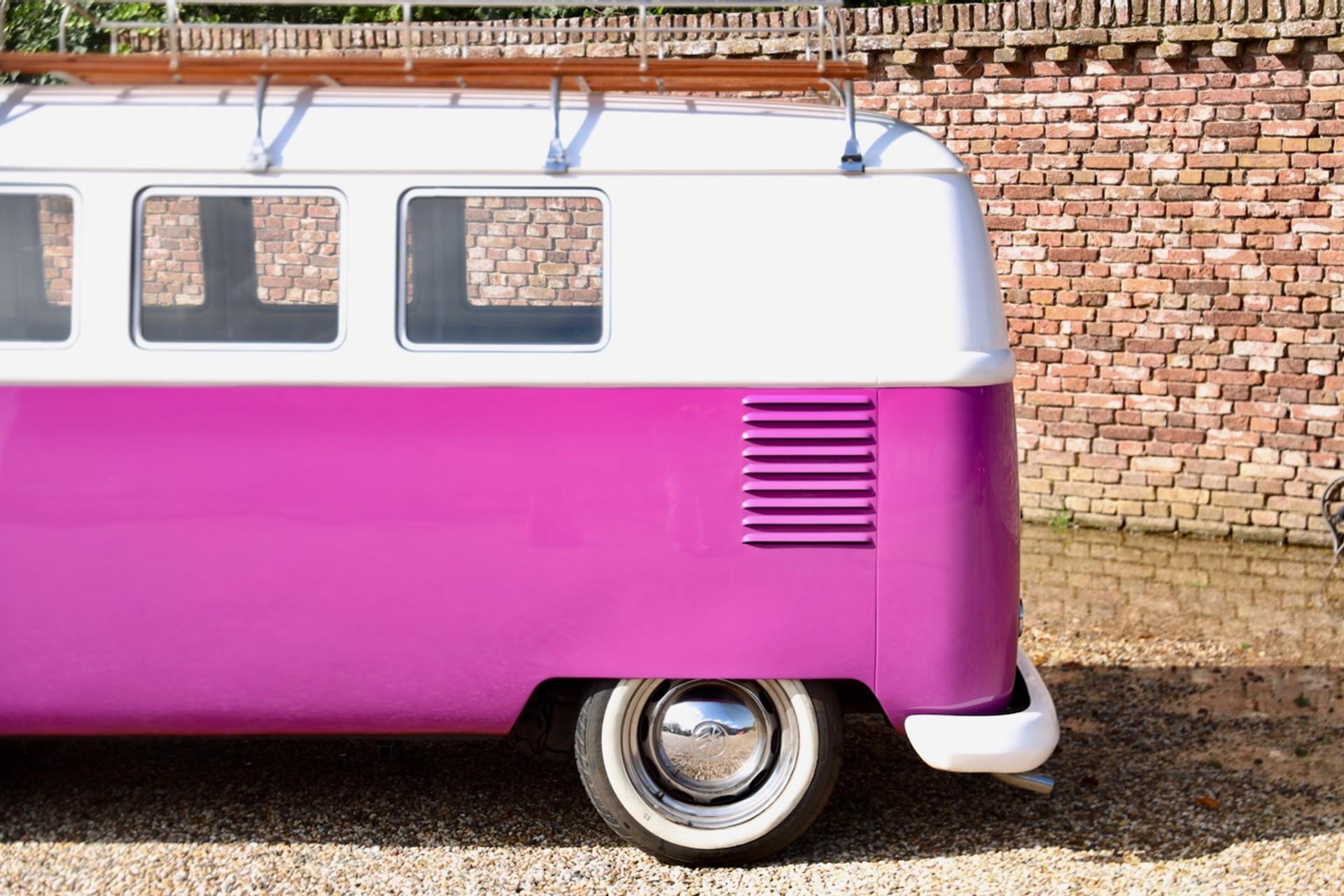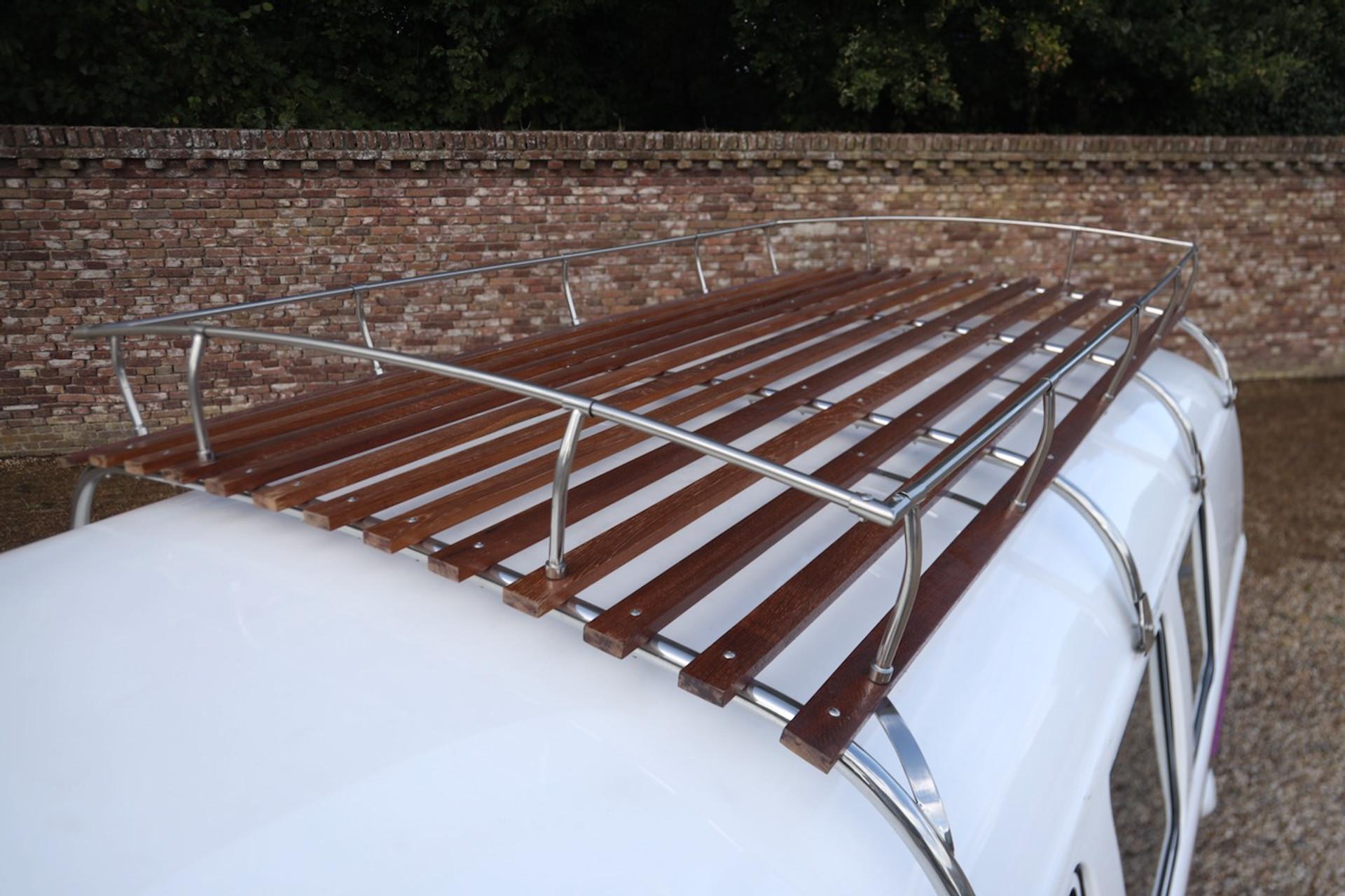 This 1958 example is the result of a carefully executed older restoration. It is an 11-window Combi, restored with meticulous attention to detail and authenticity by a Dutch enthusiast. The result is a bus that fully retains the charm of the classic T1 while standing out with its vibrant and lively appearance: an exterior in white complemented by an amethyst-colored top, a combination that immediately draws attention and perfectly suits the iconic character of this Microbus.