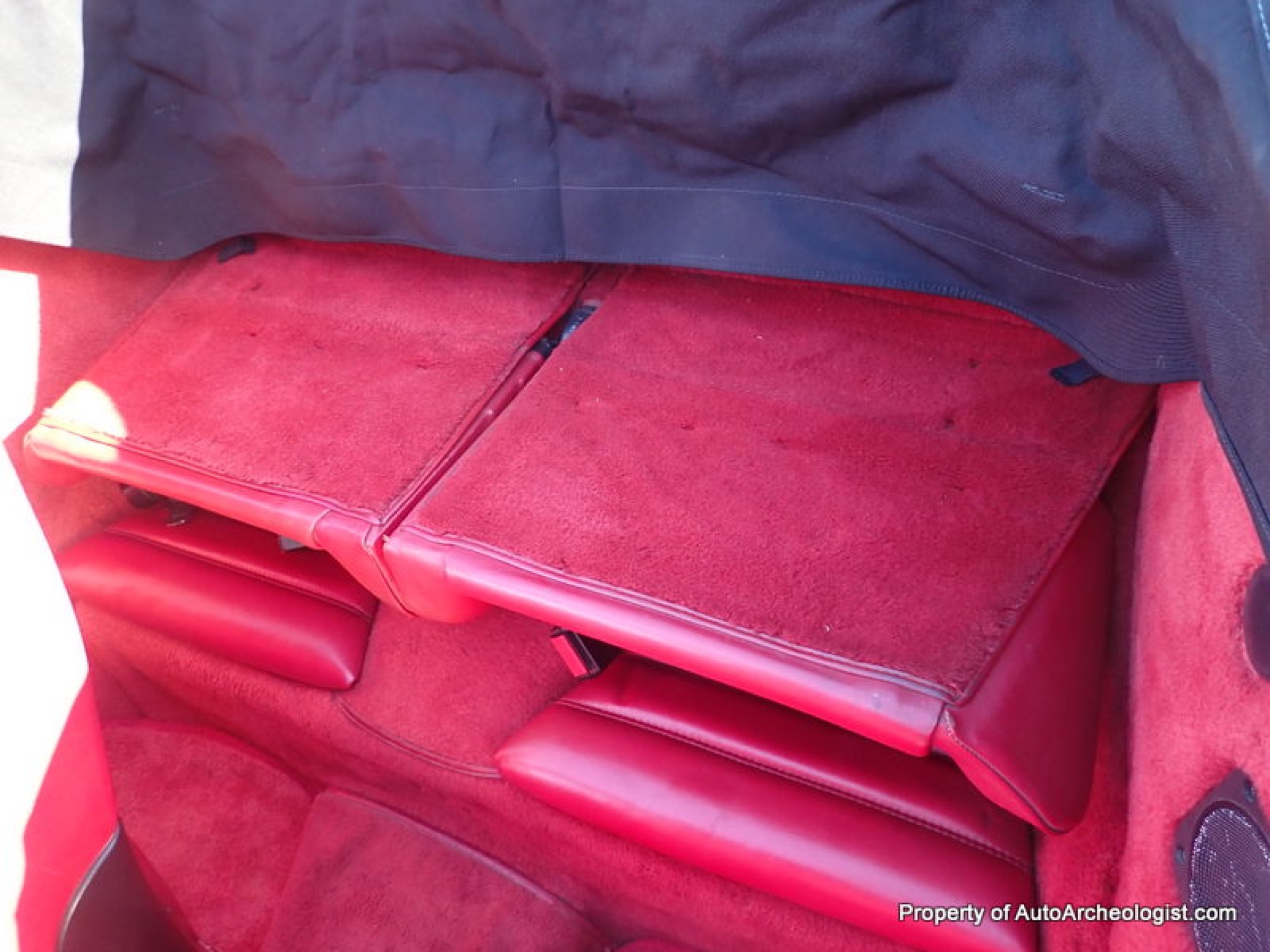 From the factory this car was ordered with a slew of options, including: AC (currently inop due to lack of R12 ), power windows, Power slotted/drilled disc brakes F&R, 4 way power, heated full leather sport seats, power mirror, special leather Lipstick Red interior,Monterey radio (no longer in car - replaced with an Alpine head unit), Limited Slip differential, High Intensity window washer, headlight washers, central electric locks, alarm (missing the alarm key), 16" Fuch aluminum wheels, auto climate control, electric top (after all switches have been replaced and the top was working at the beginning of the summer, it again is not working - it can be lowered and raised manually), cruise control, and carpet in the "frunk" as opposed to the rubber liner.