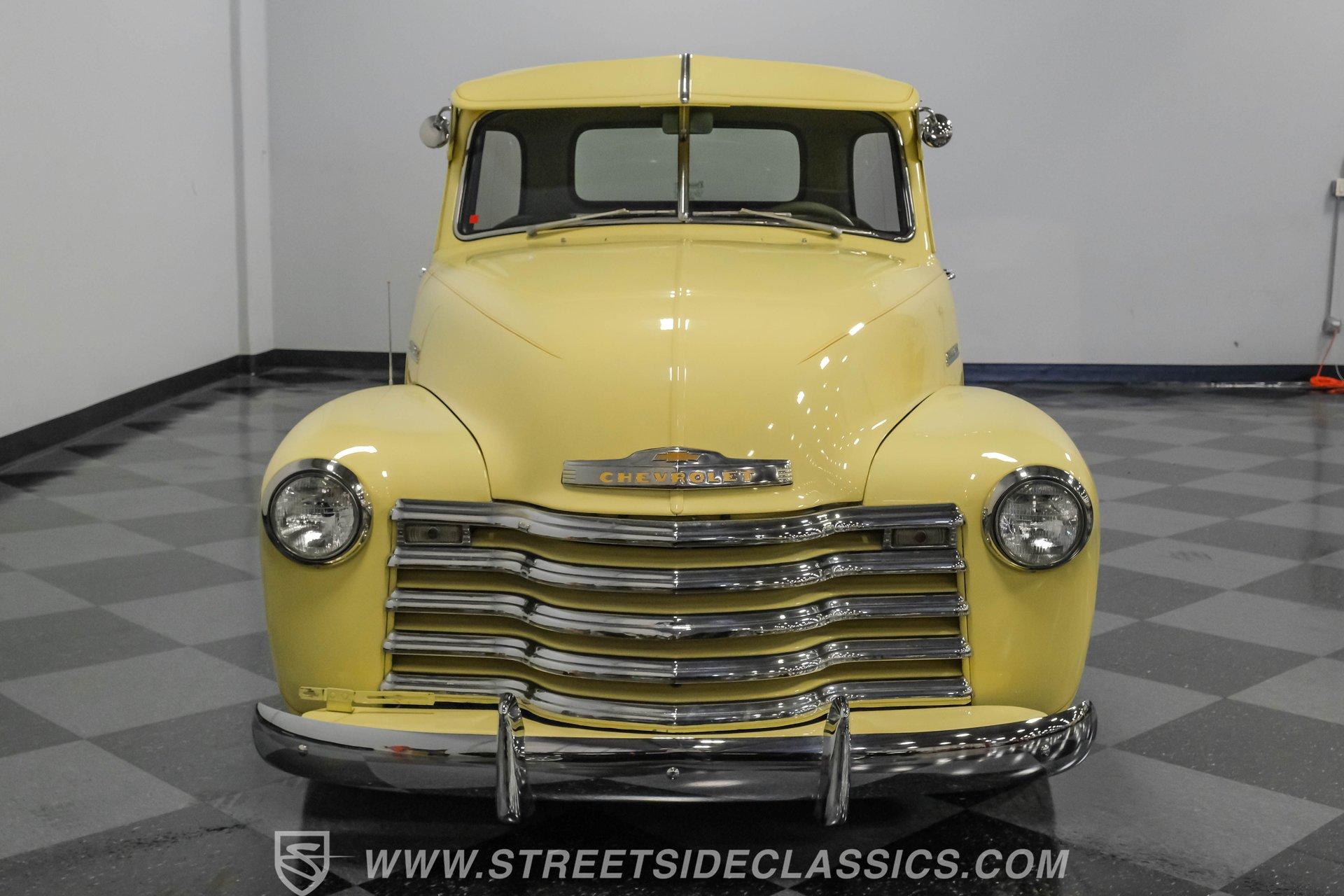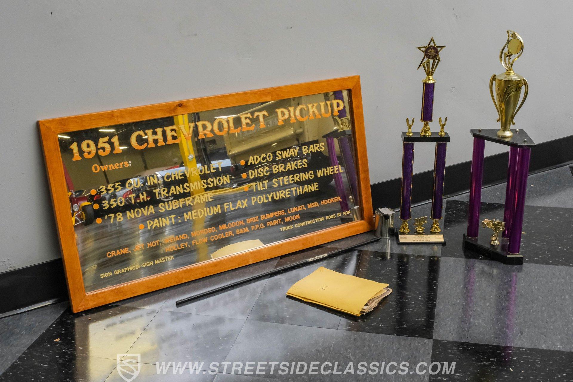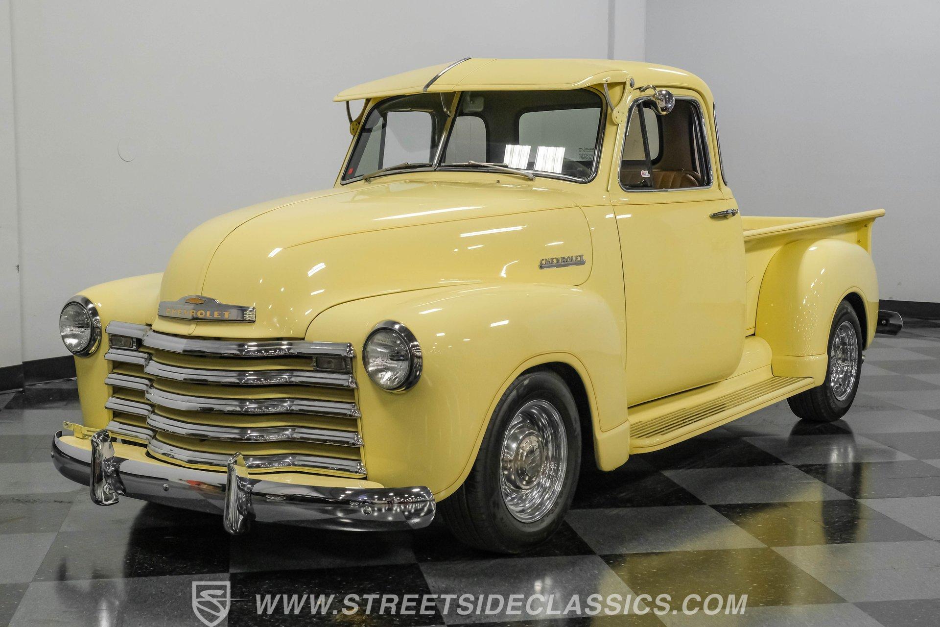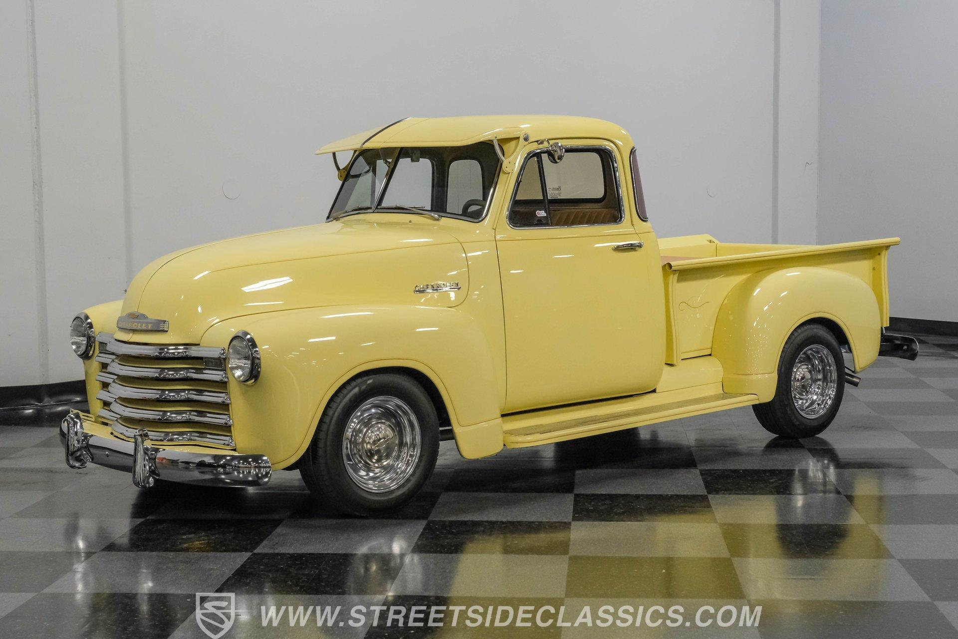 This classic truck carries the spirit of the 1950s with its timeless design and impeccable craftsmanship, evoking memories of simpler days and open roads. Its restoration tells a story of dedication and passion, making it a statement piece for collectors and enthusiasts alike. If you've ever dreamed of owning a truck that embodies both heritage and style, the 1951 Chevrolet 3100 5 Window is the perfect choice to start that journey. Inside, you'll find a cabin that balances vintage appeal with comfort and functionality. The tan leather bench seat offers a luxurious feel, complemented by matching door panels and a tan headliner and carpets that enhance the warm ambiance. The factory dash features retrofitted white face VDO gauges, while the Lecarra leather-wrapped steering wheel adds a touch of elegance and control. Modern conveniences like an under-dash air conditioning system and an older Clarion AM/FM cassette player bring a hint of today's comfort to this classic interior. Under the hood, this truck boasts a rebuilt 355 V8 engine paired with a smooth 3-speed automatic transmission controlled by a column shifter. The engine bay is a showcase of chrome detailing and organization, reflecting the same care as the exterior paint. Equipped with a Holley carburetor and a Weiand intake manifold, this setup promises a lively and responsive driving experience. The power steering and front disc brakes enhance control and safety, while the suspension upgrades, including a 1978 Nova front clip and tubular A-arms, ensure a smooth and confident ride. Highlights: 355 V8 Engine Rebuilt 3 Speed Automatic Transmission Holley Carburetor Installed Weiand Intake Manifold Chrome Detailed Engine Bay Under Dash Air Conditioning Tan Leather Bench Seat Interior Lecarra Leather Wrapped Steering Wheel Factory Dash With VDO Gauges Custom Pinstriped Medium Flax Paint Wood Plank Bed With Storage Box Front Disc Brakes, Rear Drum Brakes Power Steering 15" Chrome Wheels With Chevrolet Hubcaps Financing Available Vehicle Protection Plans Available Worldwide Shipping This 1951 Chevrolet 3100 5 Window is a rare find that blends classic aesthetics with thoughtful upgrades, making it an excellent addition to any collection or a standout ride for weekend cruises. With its stunning presentation and smooth performance, it invites you to create new memories behind the wheel. Call, email, or come visit our showroom today!