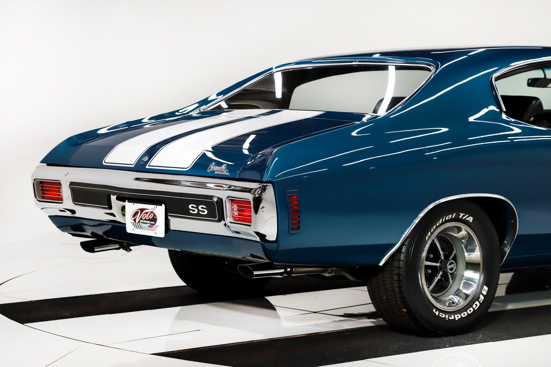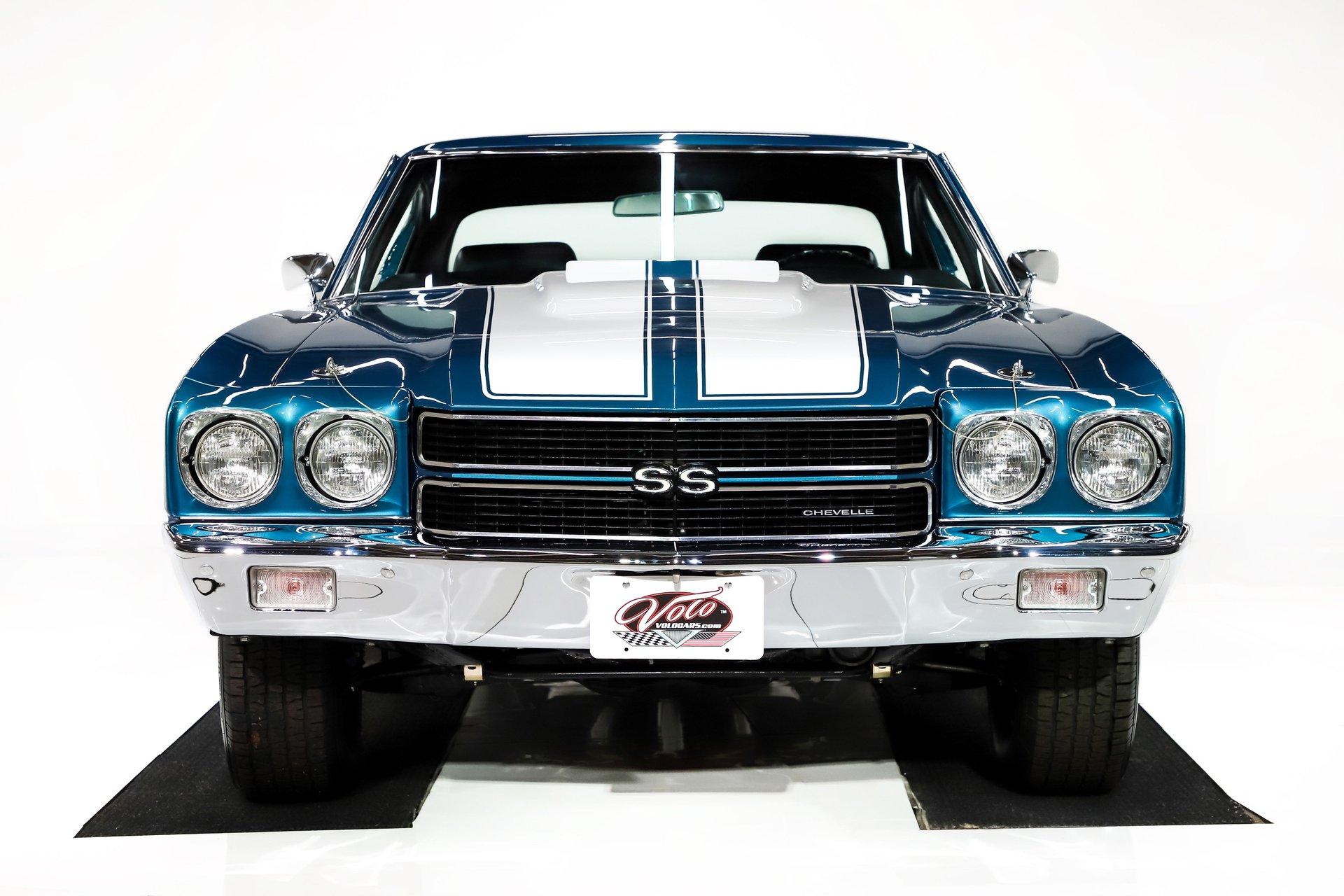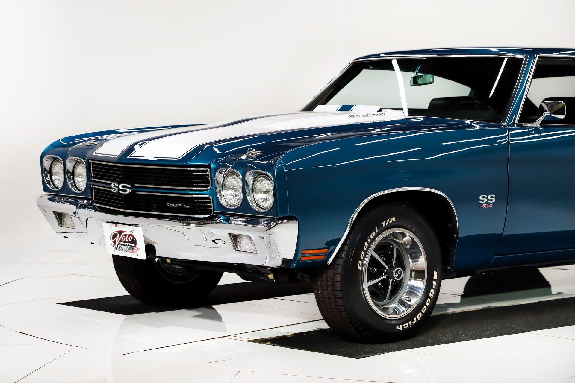 Celebrating our 65 year anniversary! This family owned and operated business was established in 1960, making us the oldest classic car dealership in America. Special thank you to all our customers for entrusting us to park the car of your dreams in your driveway while preserving automotive history for future generations to embrace and enjoy. -Grams family & Volo Museum staff INTRODUCTION: Hit the “buy it now” right now before someone else gets this incredible Chevelle! It has a high quality body off frame restoration with outstanding fit, finishes and functions. Very desirable factory colors, a GM crate motor, a 4-speed and cowl induction! EXTERIOR: I've just walked around this car twice and I'm going to tell you it looks amazing. The body is absolutely straight, the panels fit square and flush even where the hood meets the headlight bezels. That is an actual cowl induction hood with a flapper door. This beauty is smooth from the rockers to the roof. Repainted in its very desirable factory Fathom Blue top and bottom without a vinyl top. Painted with Chromabase, the metallic is laid out evenly and the clear coat is polished smooth as glass. The white stripes are painted on in the proper dimensions. All of the Chrome including bumpers, bezels, handles, mirrors etc was replaced, same goes for all of the stainless moldings, emblems and grille. The weatherstrips have been replaced and the windshield is new. It has reproduction 15x7 inch SS wheels in front, 15x8s in back all wrapped in BF Goodrich tires. It even has correct T3 headlamps! INTERIOR: Completely restored from carpet to headliner! Restored exceptionally well too, everything fits right. The seats are rebuilt and are firm with tight fitting upholstery. Door panels, carpet, headliner, armrests were all replaced. The entire dash area is restored. It has factory gauges with an LS-6 tachometer and a working clock. That AM FM radio is actually updated with modern internals- it's Bluetooth! The center console is new and has a correct Muncie shifter with a chrome ball. It has 6x9 speakers under the correct mesh rear shelf, an owner's manual in the glove and working interior lights. All the bits and pieces are in excellent shape. This car keeps getting better! ENGINE COMPARTMENT: It is immaculate and every component is proper. The heartbeat is a GM Performance crate 454 making 450hp and 500 lbs of torque! It includes aluminum heads and intake, a dual feed Street Avenger Holley carb, HEI ignition system and a set of Hedman headers. Too top it off it has a complete and functional cowl induction system. New power steering, power brake with cadmium plated booster, wiper motor and the squirters are hooked up. The wiring harness was replaced, alternator is fresh, horns work. It has reproduction GM hoses and clamps along with spring clamp battery cables. All the metal surfaces are painted beautifully, it even has the dust shields. Everything is installed neatly, it doesn't get much cleaner than this! TRUNK COMPARTMENT: One of the best I've seen! Talk about clean and complete, the stickers aren't even wrinkled like they all do! Under the trunk lid and jamb are as slick as the car. The weatherstrip, mat and wiring harness were replaced. Inside is pristine metal with a super clean spatter finish. It has a new matching BFG tire and SS wheel along with a reproduction jack. UNDERSIDE: Even underneath this car is beautiful, it was completely rebuilt and detailed. It has the F-41 suspension which includes swaybars and boxed rear control arms. The steering and suspension were rebuilt. It has a Pypes stainless exhaust with x-pipe and SS tips. The fuel system was replaced including a polished tank. The brake system was rebuilt, lines and e-brake cables were replaced. It has discs in front, drums in back. Looking up at the motor it is fresh and has a new high torque starter. The M-21 4-speed was professionally rebuilt by a Muncie specialist. The original 12 bolt, code CRU, with 3.31 posi was rebuilt with Richmond gears and Eaton posi unit. The floors look pristine and have a gloss black finish. SERVICE: We take pride in our cars and reputation. Therefore, we built a 2 million dollar, 10,000 square ft service center, and hired a team of technicians to service the essentials on every car we sell. CONCLUSION: Outstanding! I look at a lot of cars and I can really appreciate this one. The fit, finishes and functions are exceptional throughout. The crate 454, a 4-speed, cowl induction and Fathom Blue are highly desirable features and this car has them all. Not only does it have all that, it is also incredibly nice. Don't miss this one, I sincerely mean it! For nearly 30 years, I, Jay Grams, have personally written the highlights for almost every car in our collection. What I provide is my professional opinion based on my experience with these vehicles. However, opinions can vary, and I strongly recommend a personal inspection to form your own view. Our sales team is always available to answer any questions you may have. One great option is to request a personalized walk-around video, where we can showcase the car and share our team’s insights. **Our cars are displayed within a museum setting. If you are interested in a specific vehicle, please schedule an appointment with a salesperson to view it. Without an appointment, there is an admission fee to enter the showroom. If you decide to purchase a car, your admission will be refunded, and you'll receive a one-year museum membership. ☎️ 815 385 3644 9-5 central 📧 Sales@volocars.com Answered ASAP Power steering Power disc brakes F-41 suspension 3.31 posi Cowl induction Bucket seats Console Factory gauges Am-Fm Bluetooth Stripes 15” SS wheels