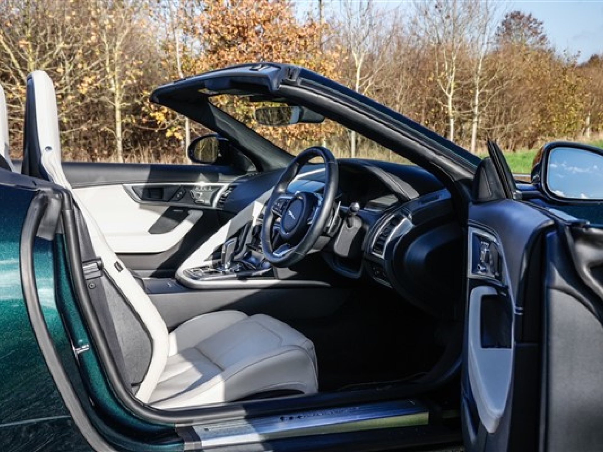 This example, offered by Autostorico, is a 2021 “21 plate” Jaguar F-Type 2.0 R-Dynamic Convertible finished in British Racing Green metallic with an Ivory leather interior — a timeless and highly sought-after combination.