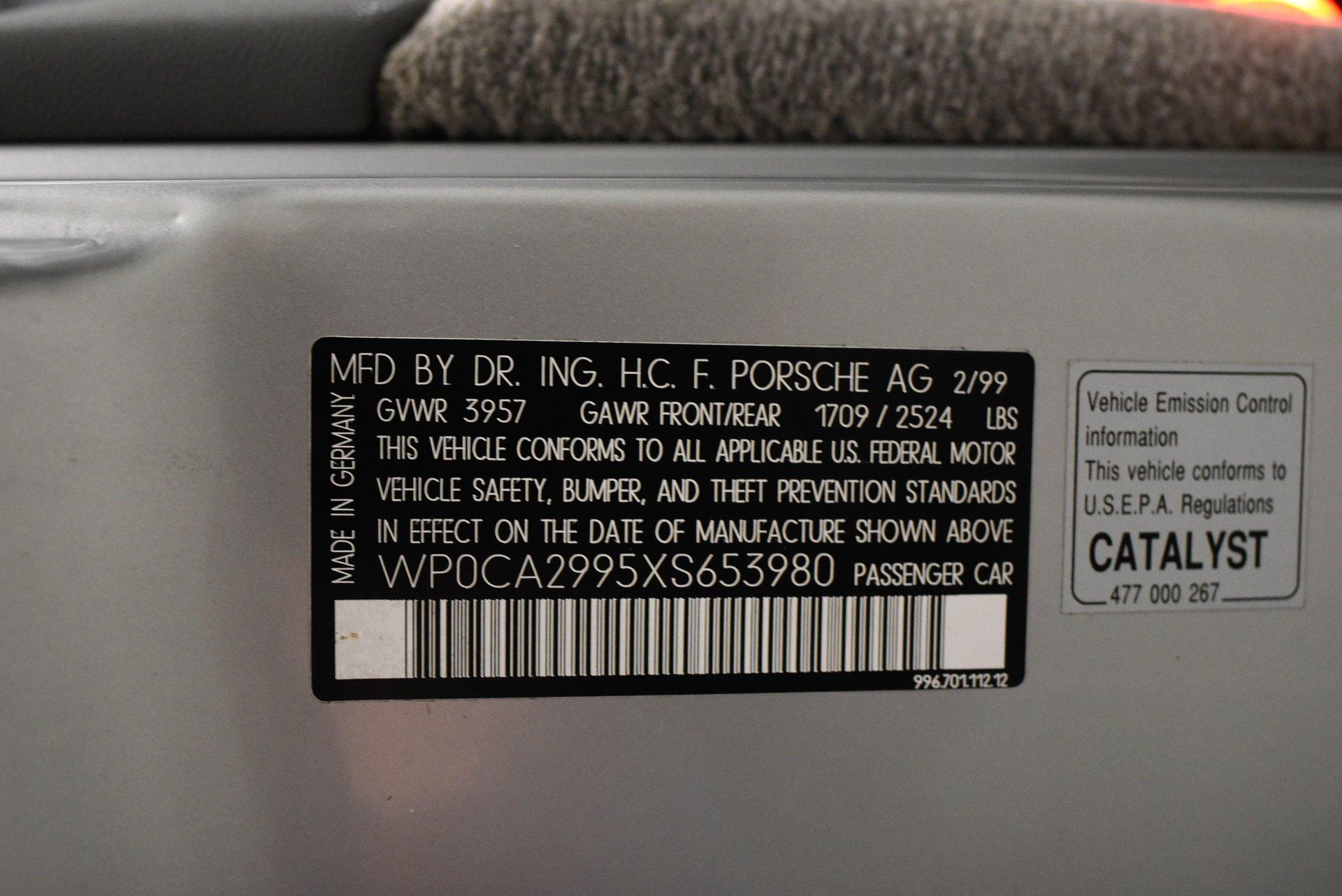 This absolutely "AS NEW" 12130 actual mile 996 Cabriolet has a perfect CARFAX with annual services PLUS! The car comes with both hard and soft top, each are in like new condition. EVERYTHING about the car is as if it just left the showroom in 1999. Tires are new Michelins, Car just received fluid change and refresh. IMS BEARING has been replaced. Interior looks and smells as they did in 1999.The car runs and drives as one would expect a well serviced garaged kept 1999 911,smooth,strong,and correct. Review ALL the pictures of the car with top down, hard top on, and soft top up. Presentation includes undercarriage pictures showing a clean dry engine with cosmoline still on surfaces. Review the pictures posted, if the car holds interest contact Jeff Frazier at 615-971-4409 or email jeff@jpfrazier.com.Telephone calls and emails will be answered 9-5 Monday thru Friday Central time. The car is located 25 miles east of downtown Nashville Tn in our indoor facility. . Contact Jeff Frazier at 615-971-4409 or email jeff@jpfrazier.com This and other European Collectibles may be reviewed at WWW.JPFRAZIER.com E-DISCLAIMER: This vehicle description is accurate to the best of our knowledge at the time posted All information provided is true to our best efforts, but not guaranteed, and we assume no liability for any omissions or errors. We do sell classic cars in a variety of conditions, and may not see every imperfection or issue per vehicle. Our cars are sold as-is and without warranty. Price does not include state, city, or county taxes, title, license, registration, or shipping. Independent inspections by marque specialists are welcomed and encouraged as all sales are final